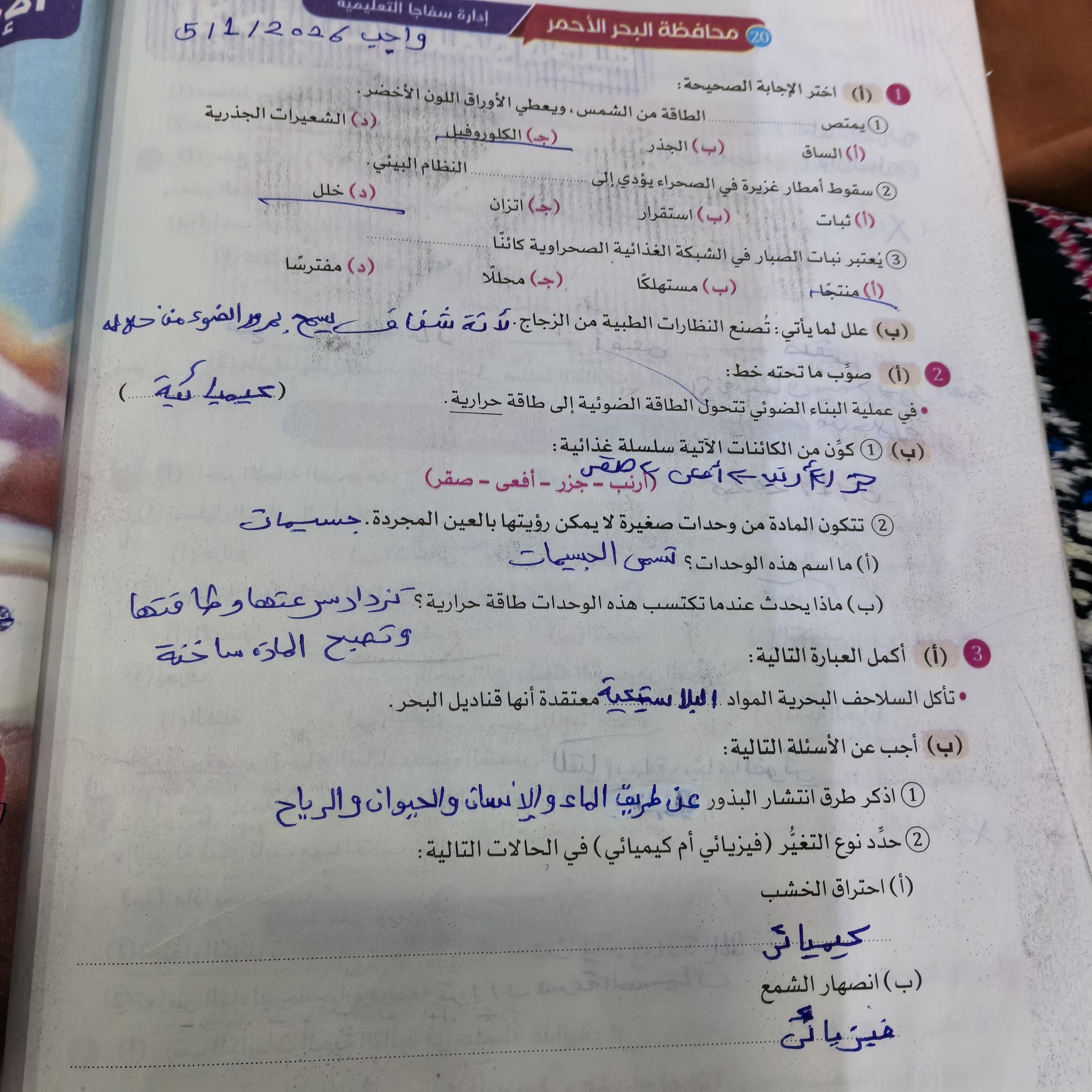واجب العلوم 🪼 💕 👊 💮 🌸 💮