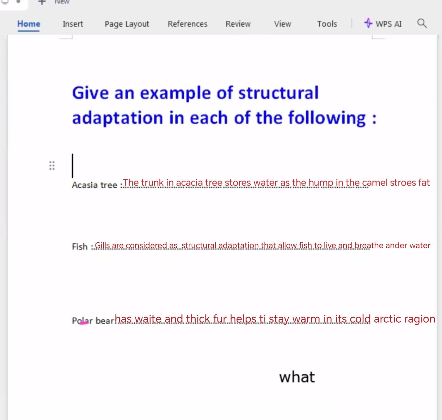 homework mention the structural adaptation and the behavioral adaptation in acacia tree