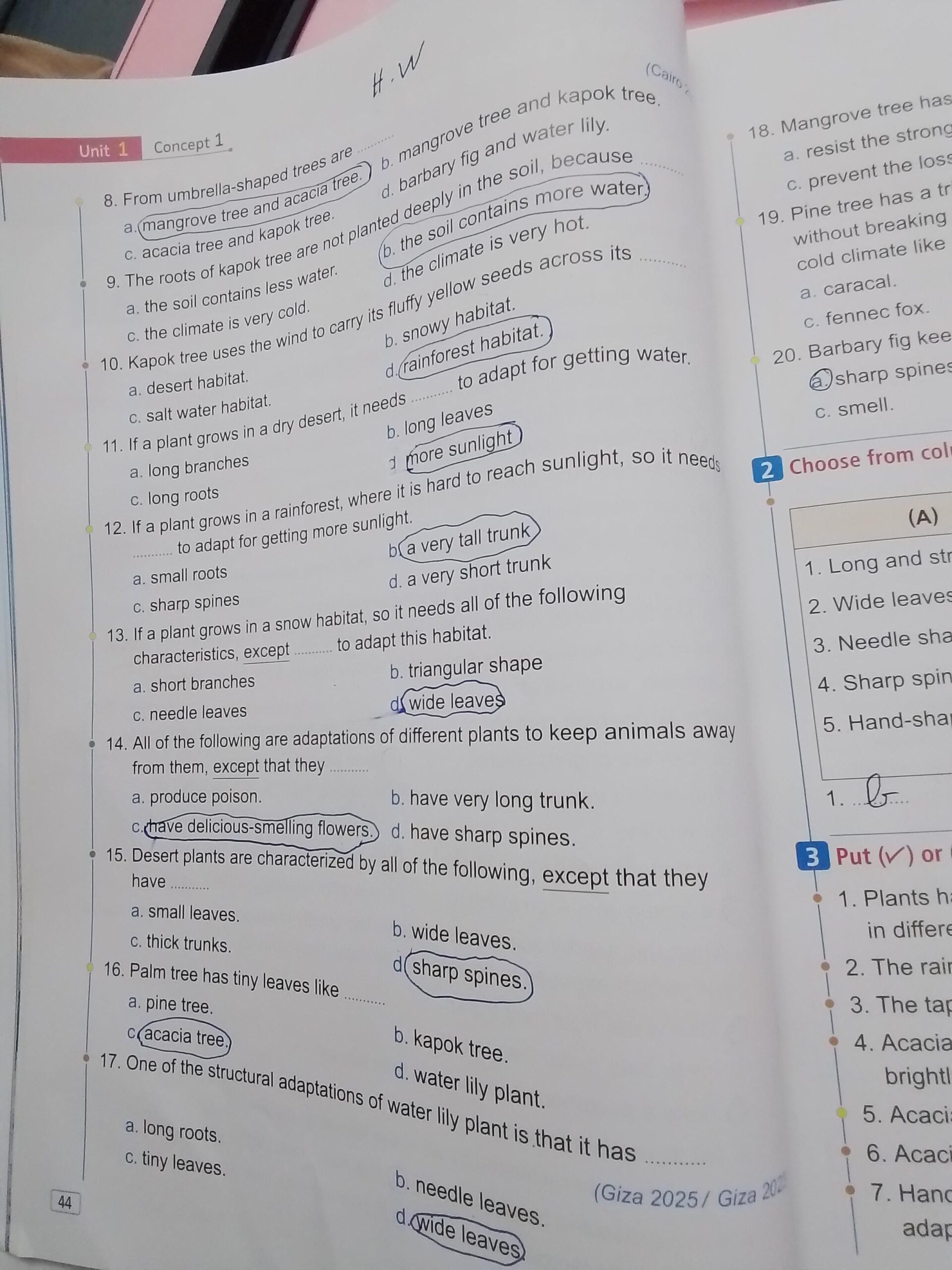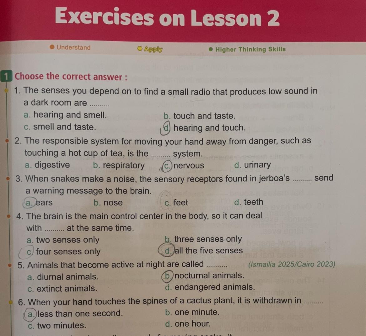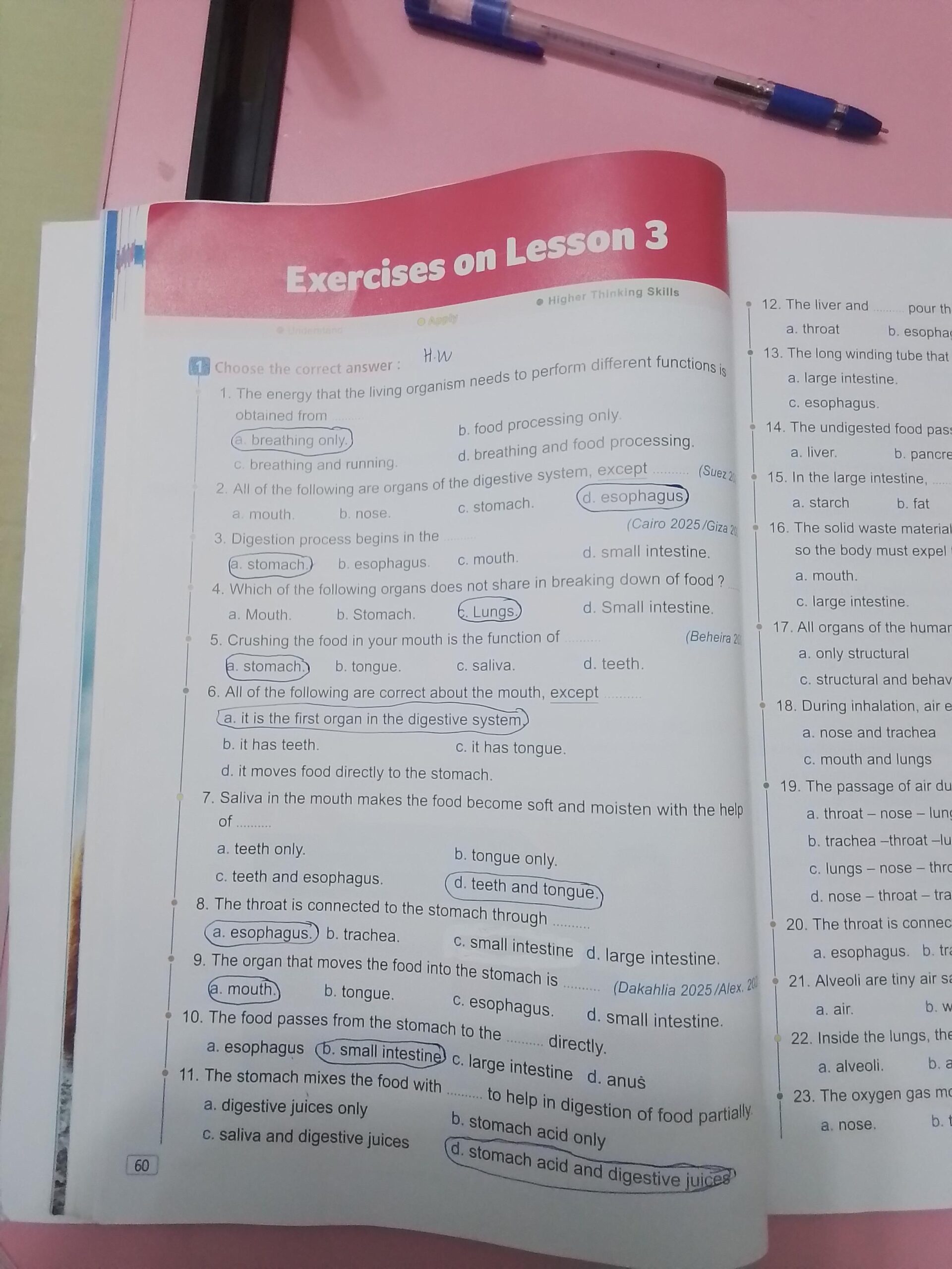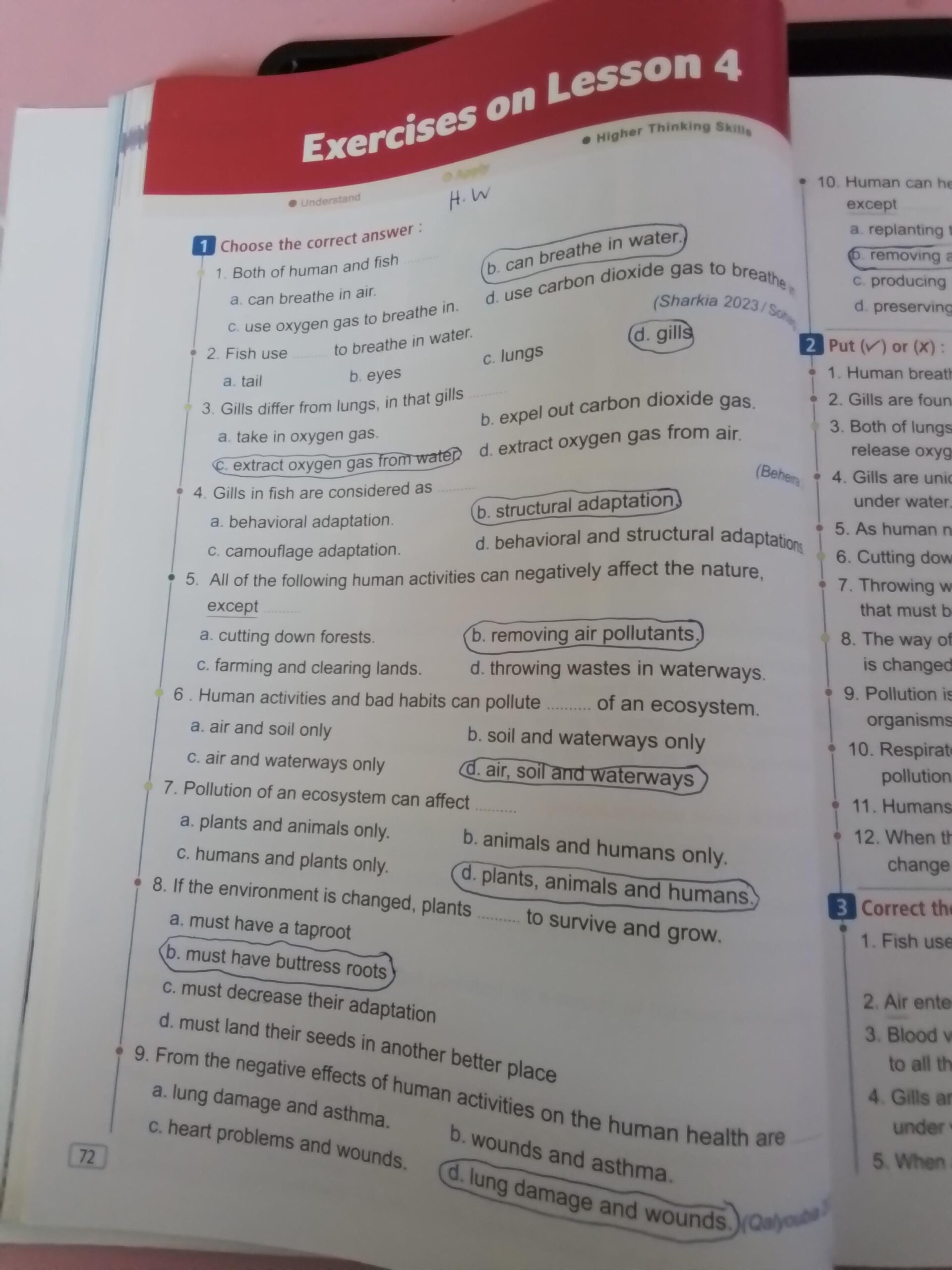 Homework choose the correct answer question in page 20&21