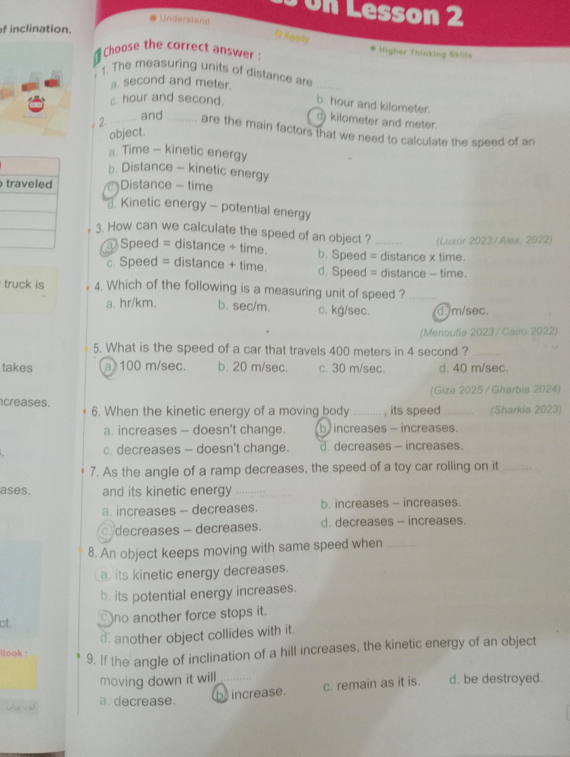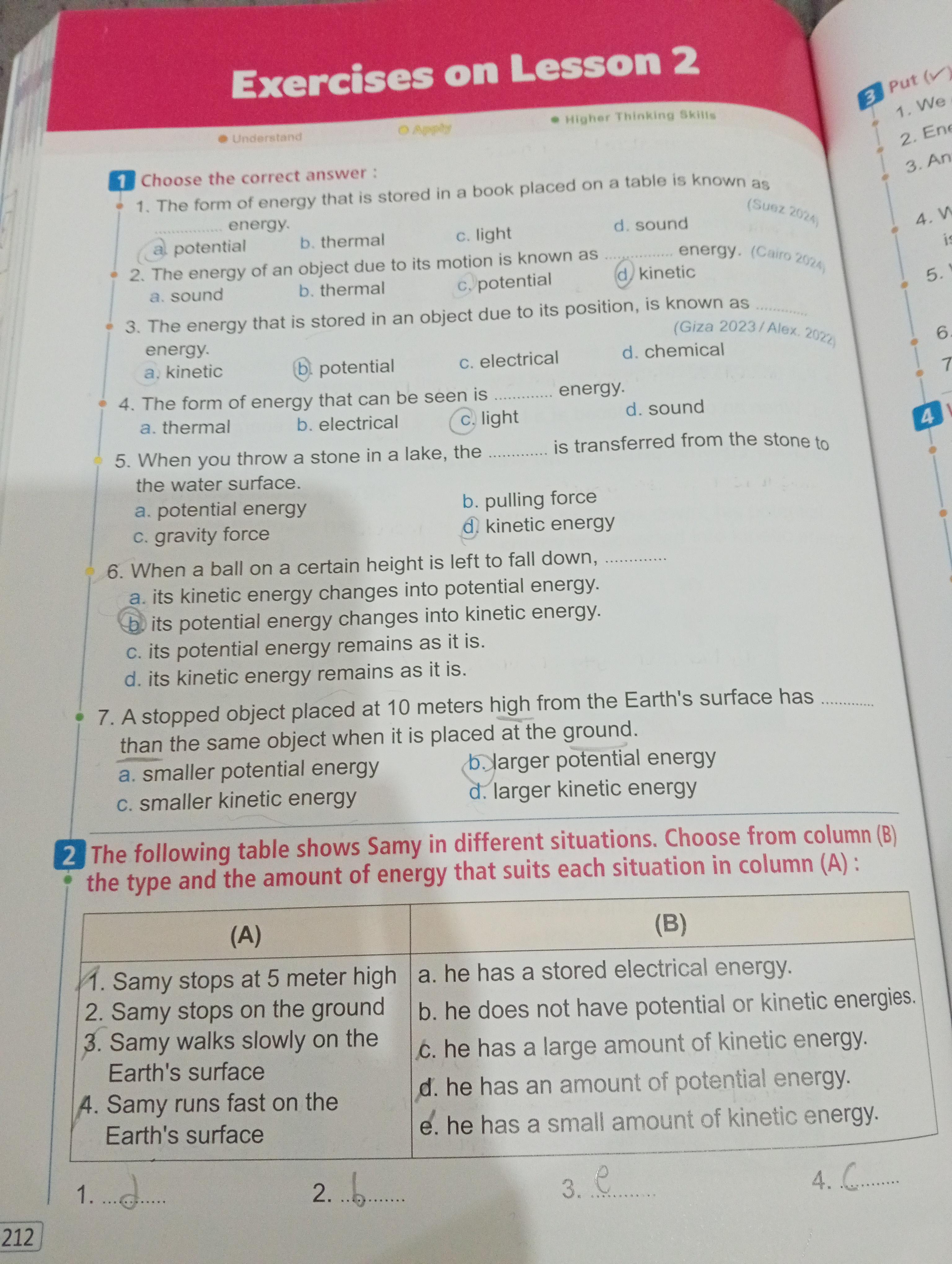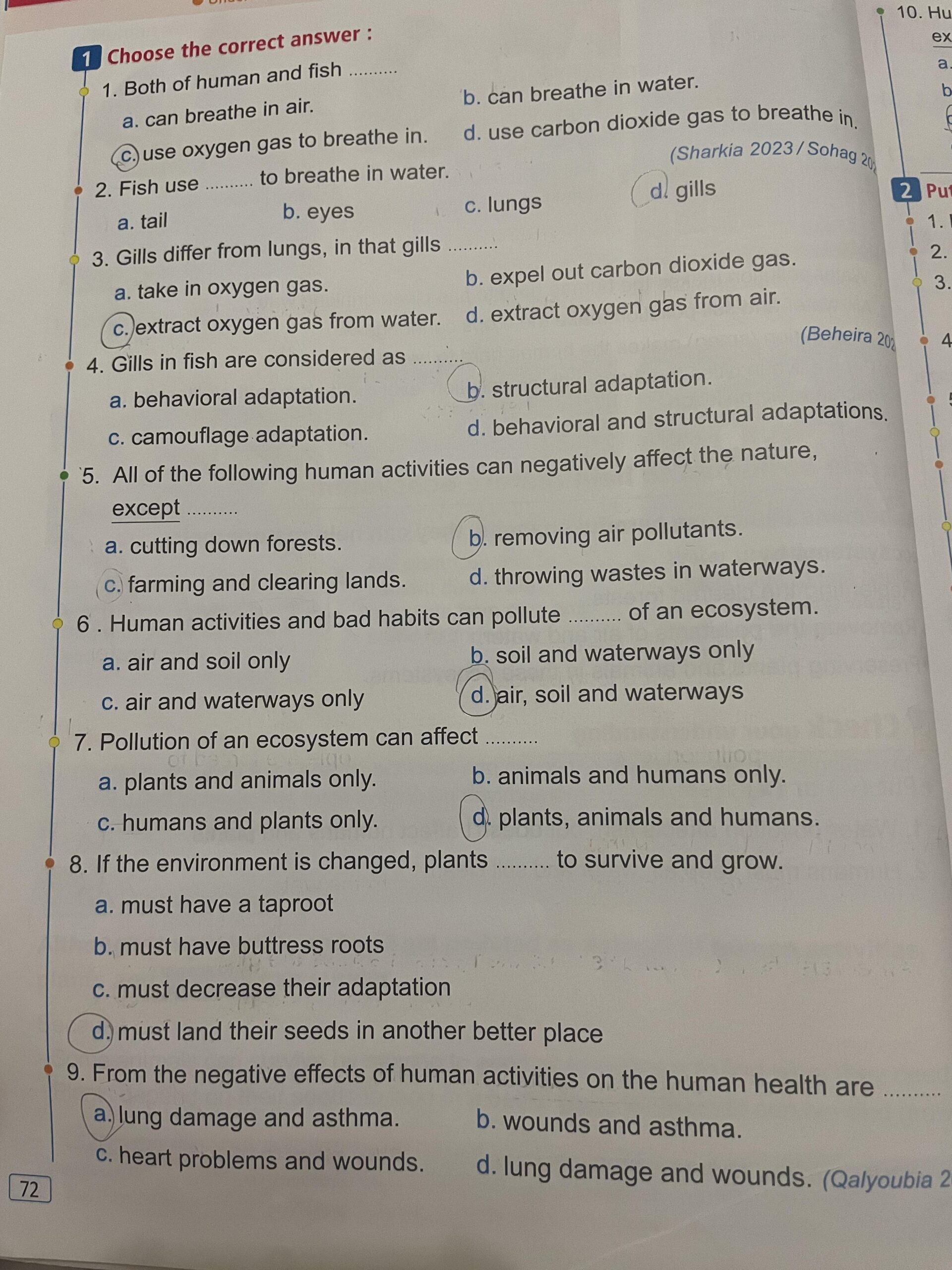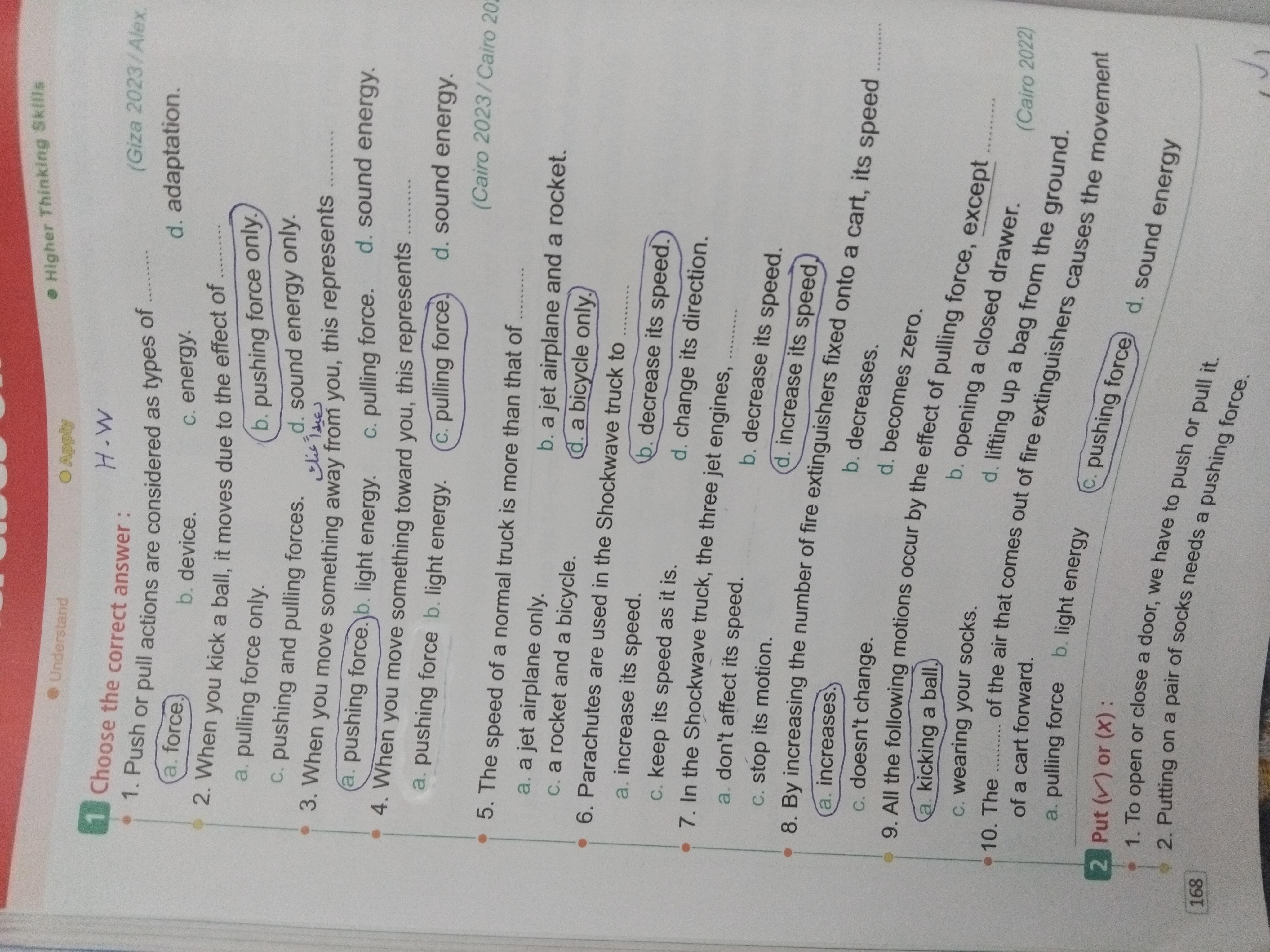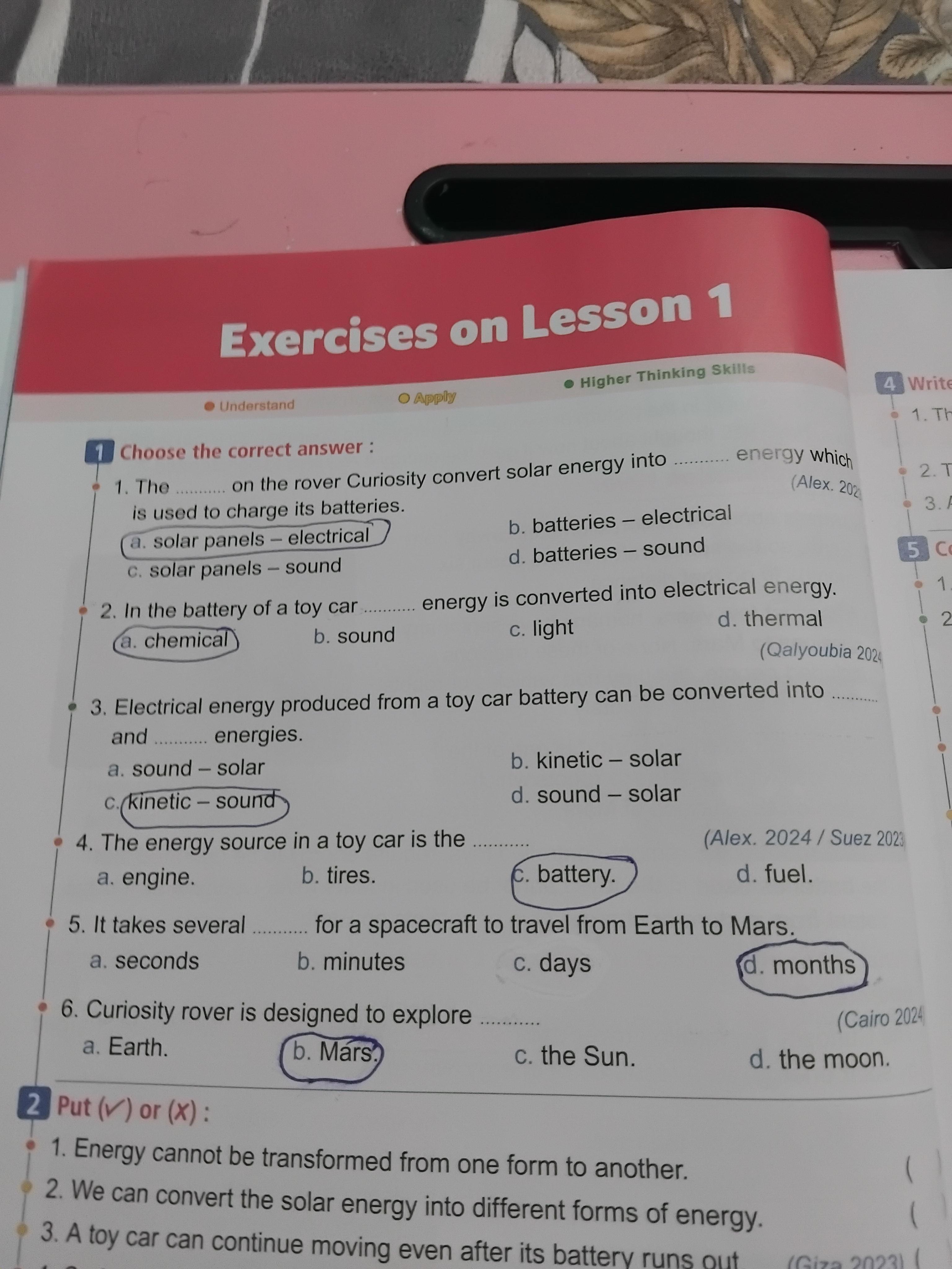 Homework choose the correct answer question in page 20&21