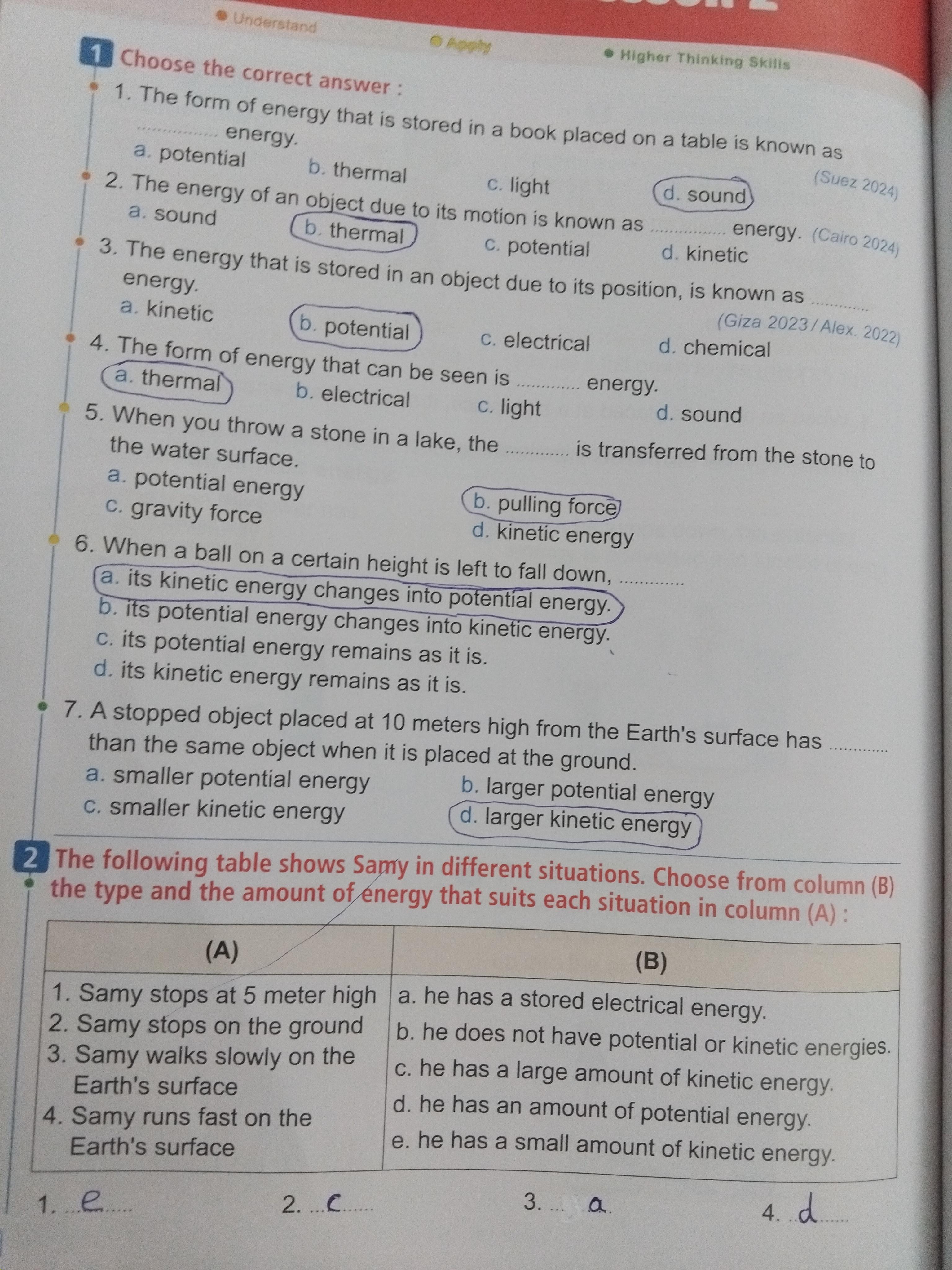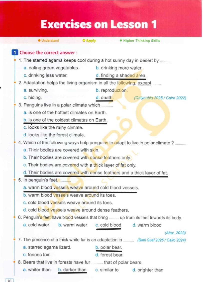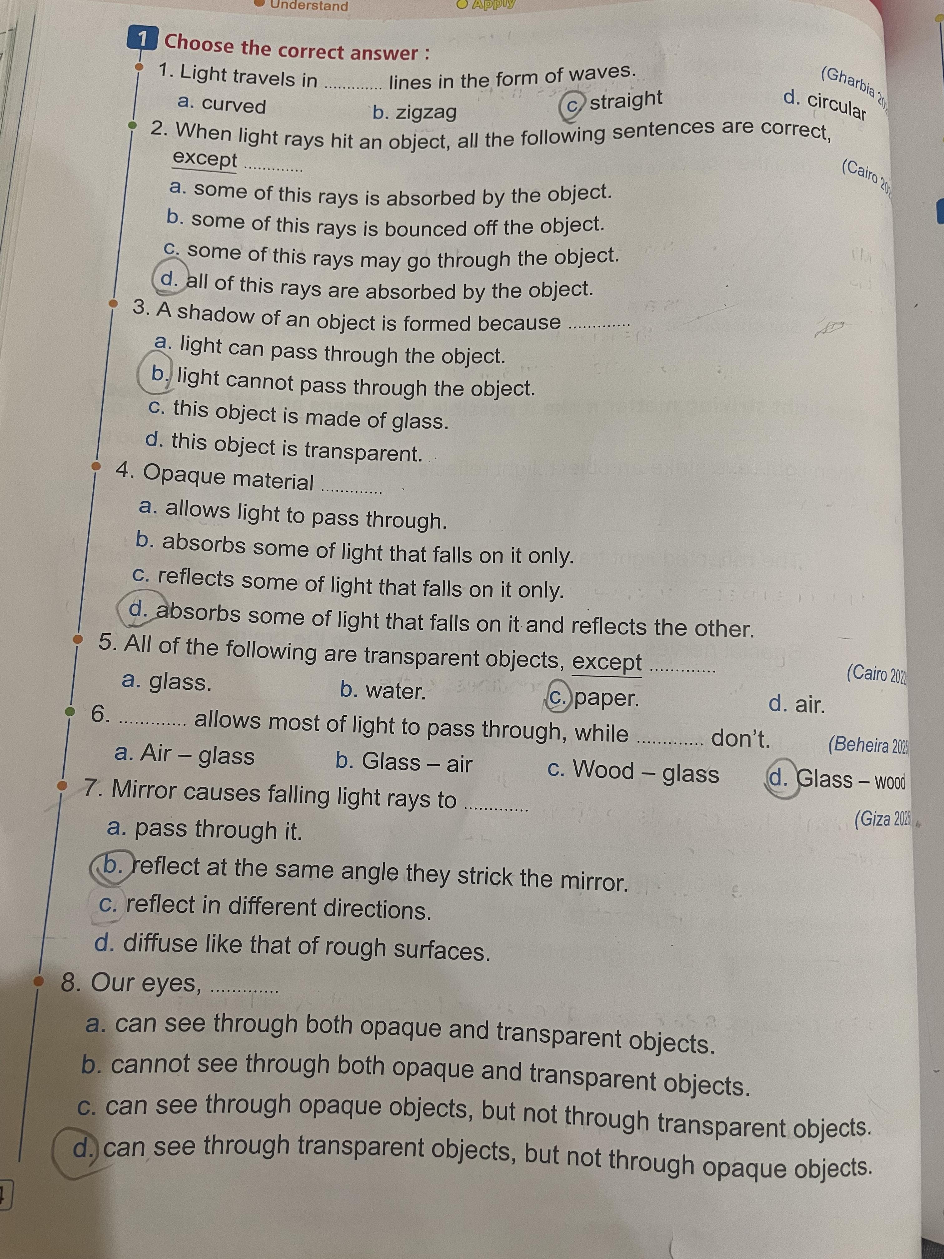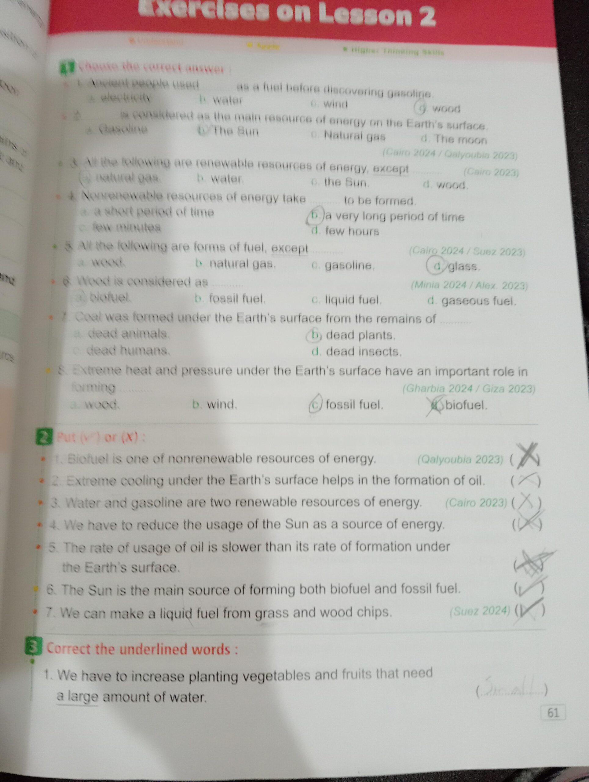 Homework choose the correct answer question in page 20&21
