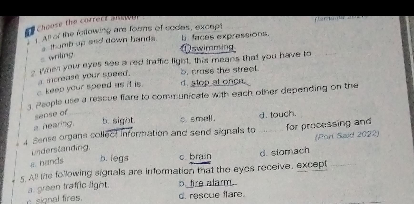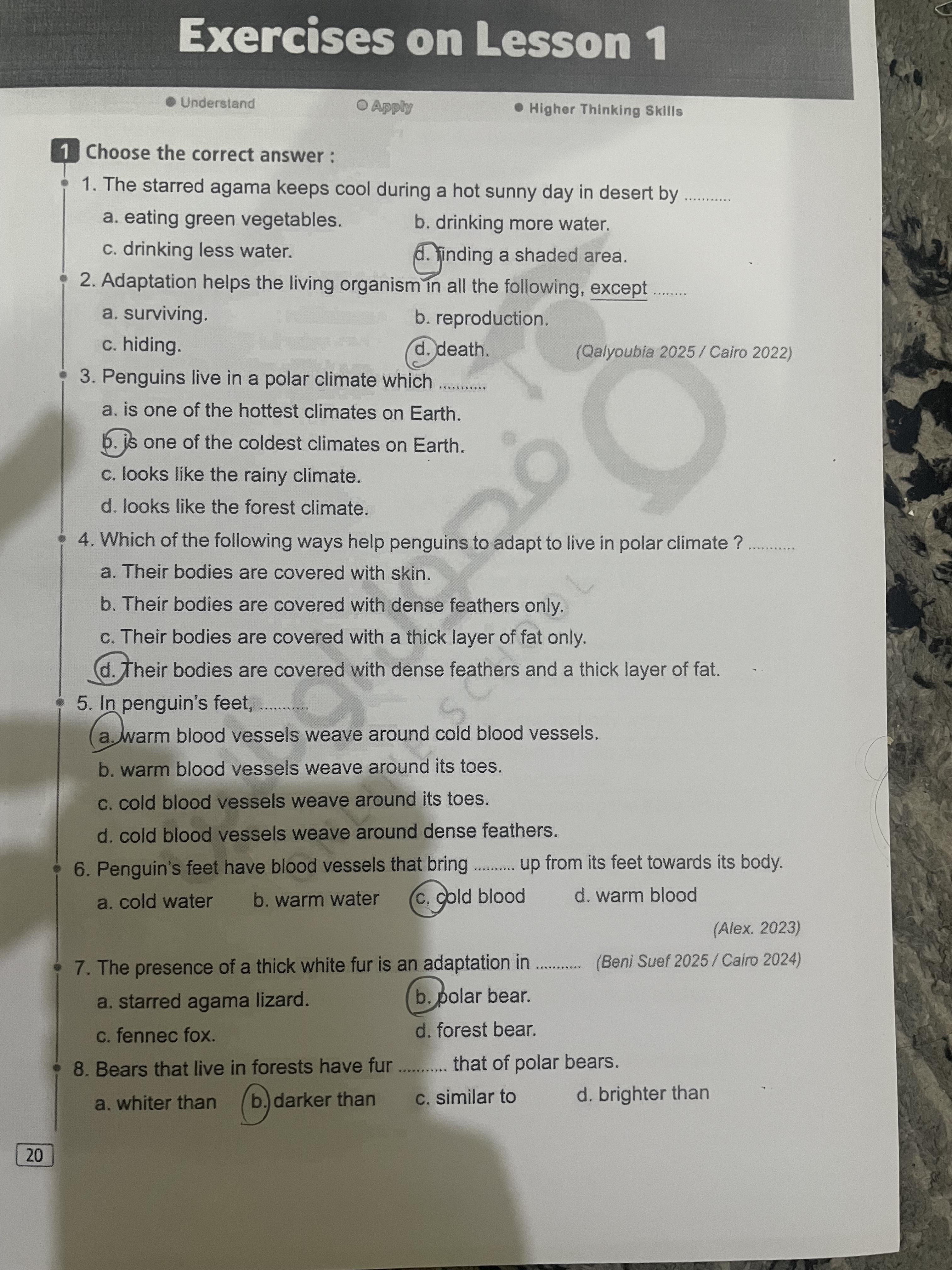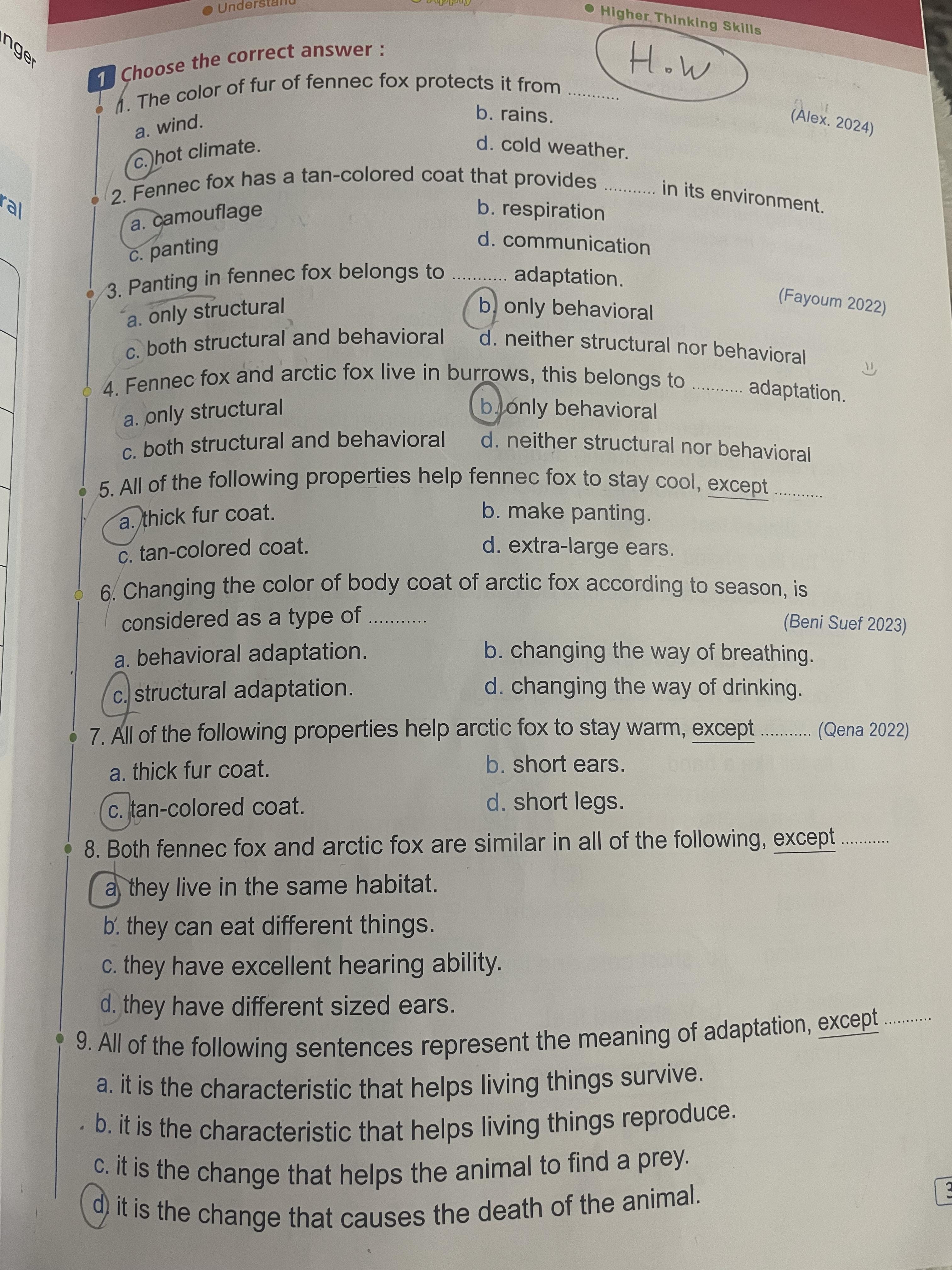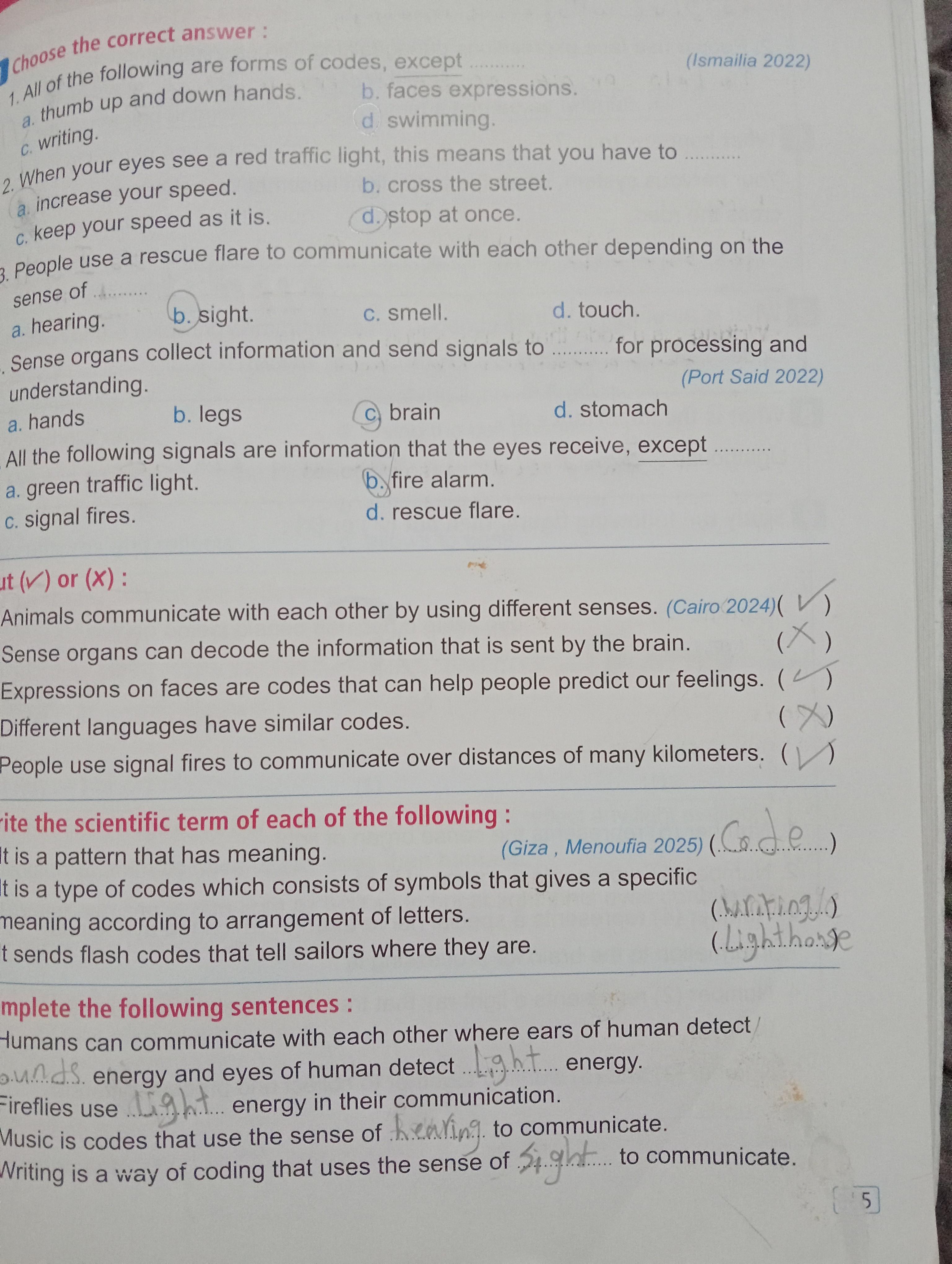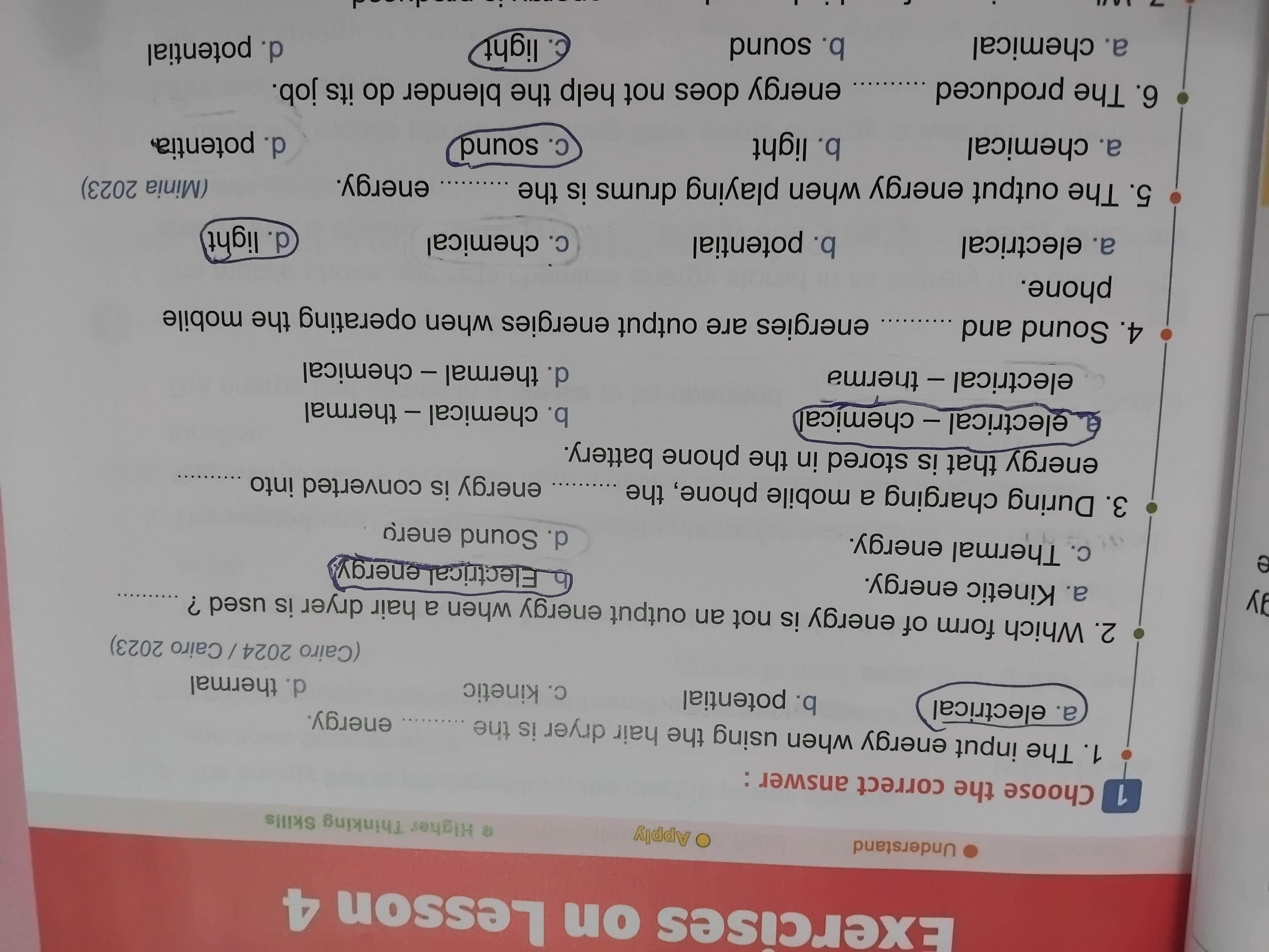 Homework choose the correct answer question in page 20&21