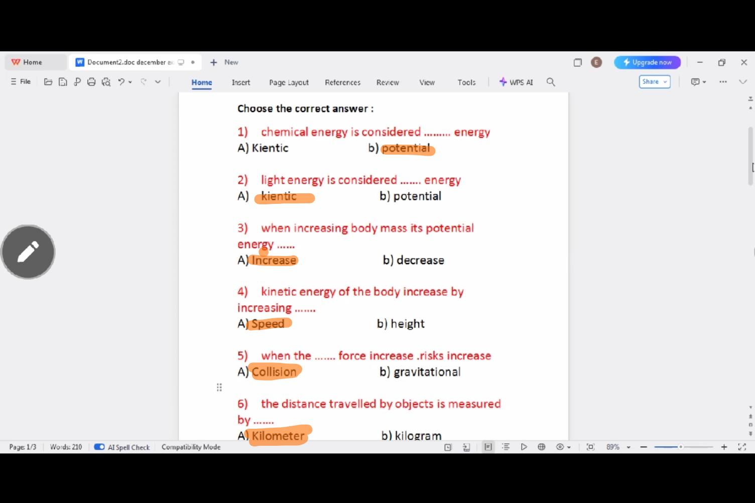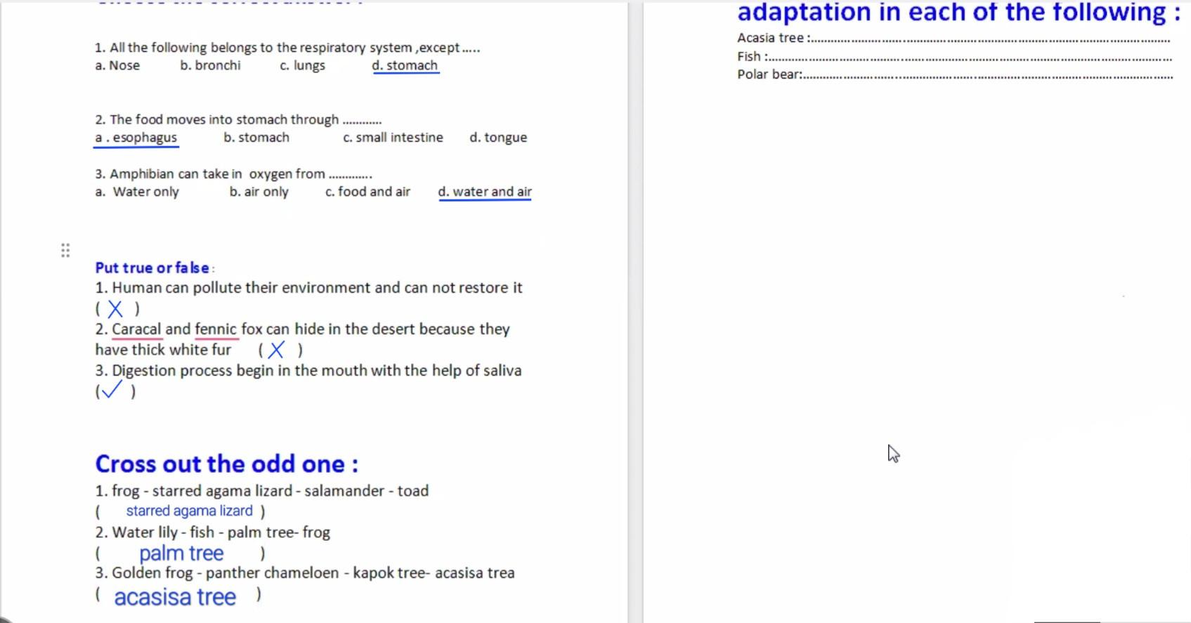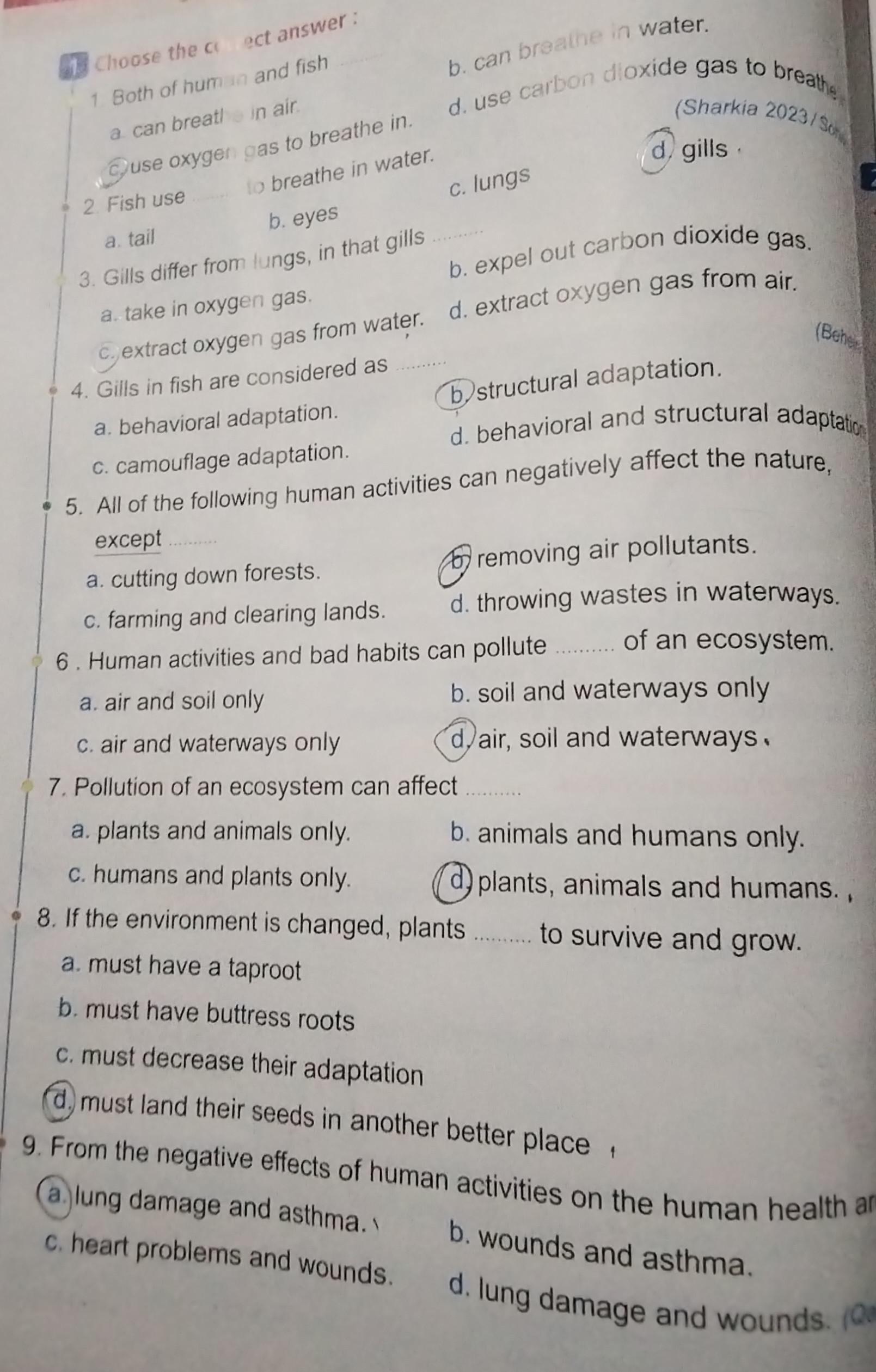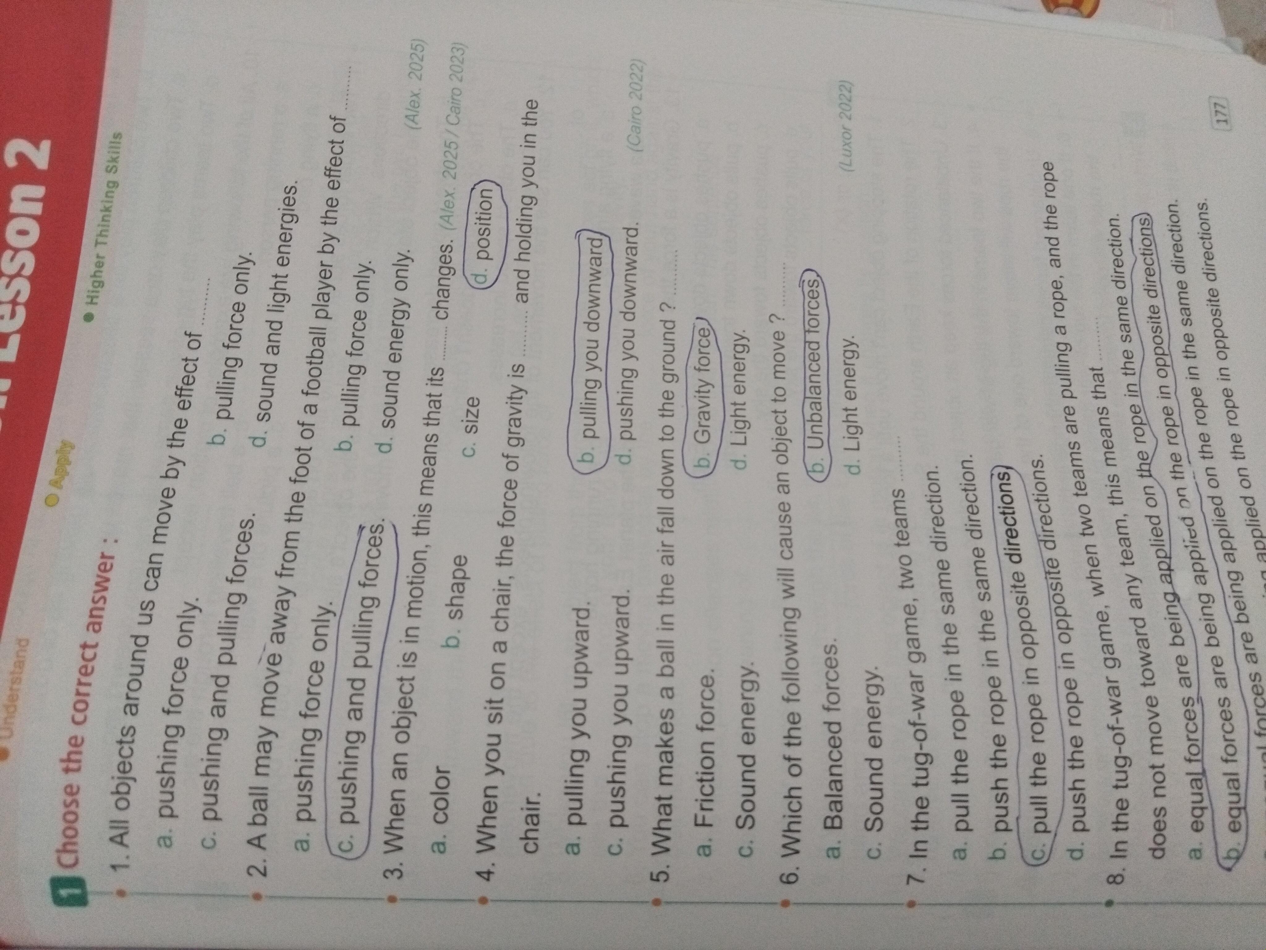 Homework choose the correct answer question in page 20&21