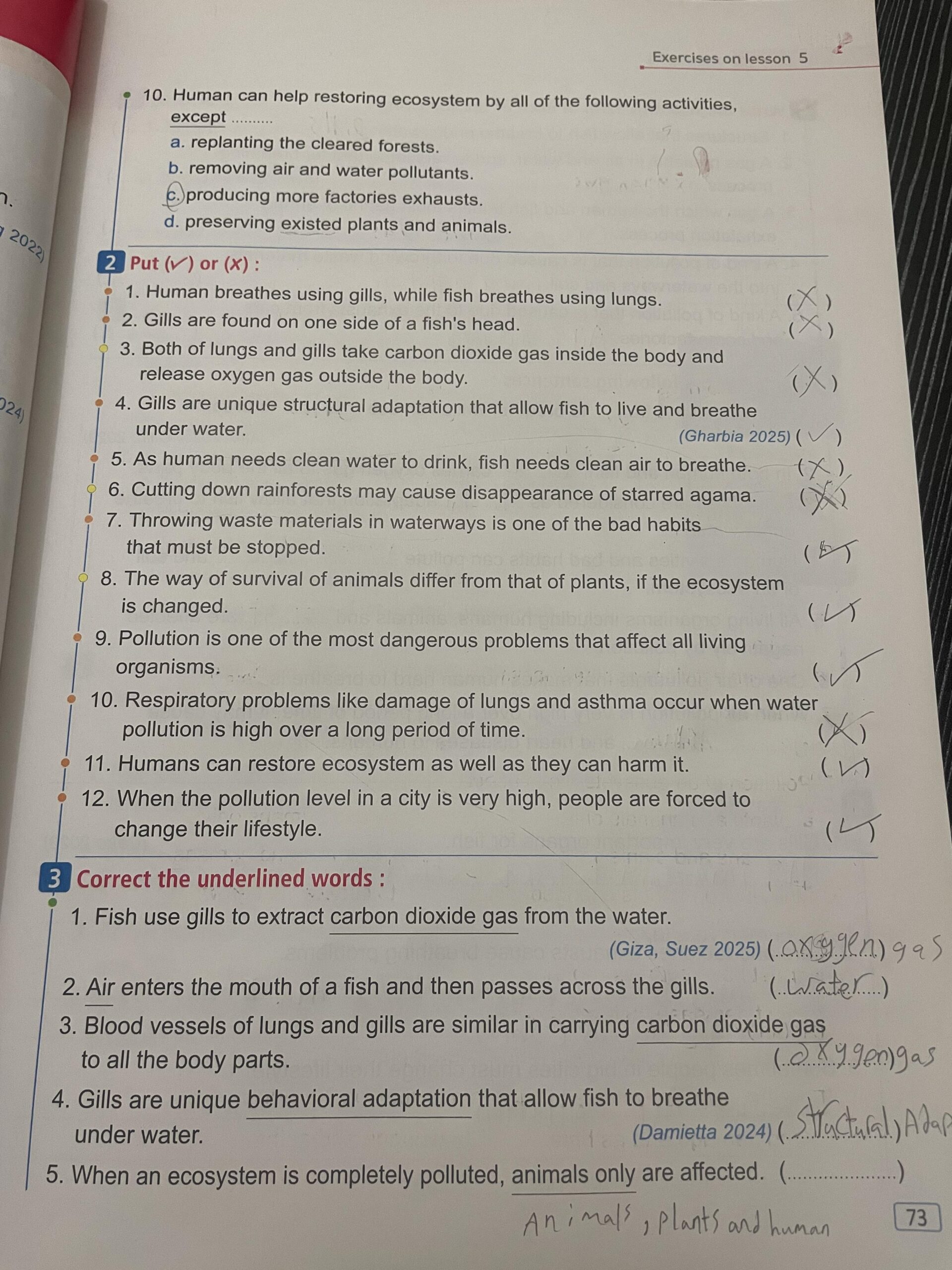 homework page 72 &73 choose the correct answer question