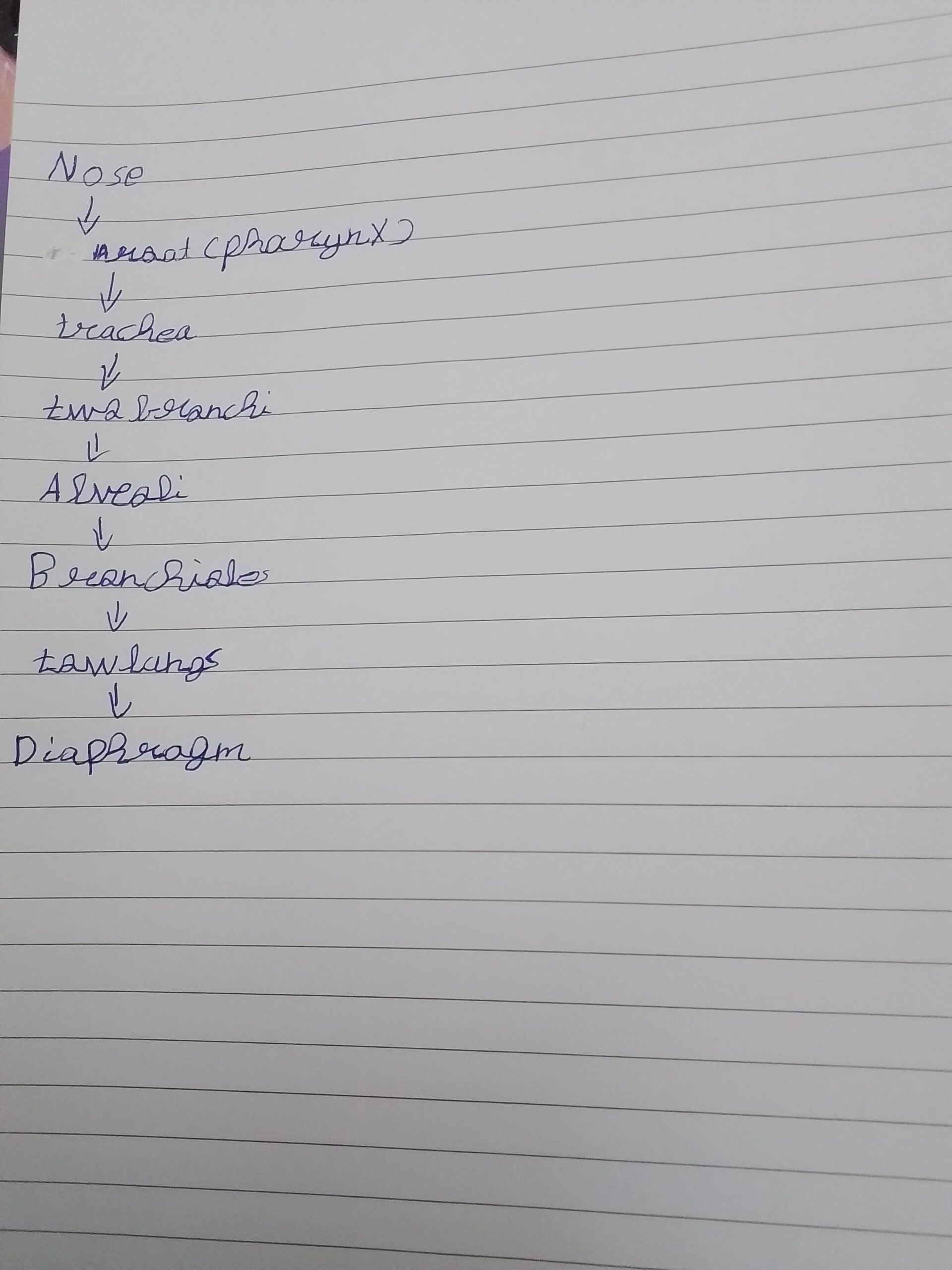 Homework trace the air until reaching alveoli