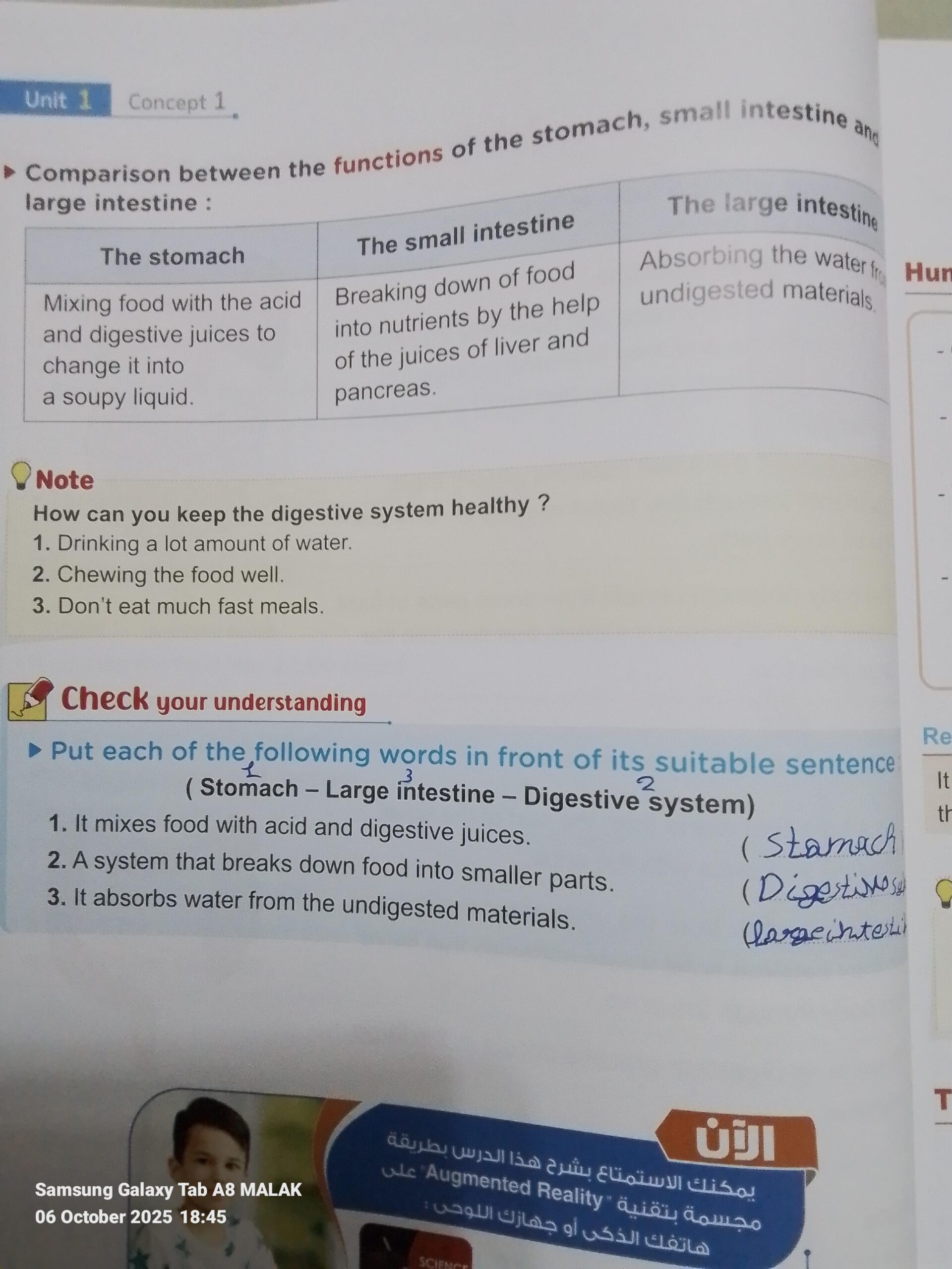 homework Trace food bite from mouth to small intestine