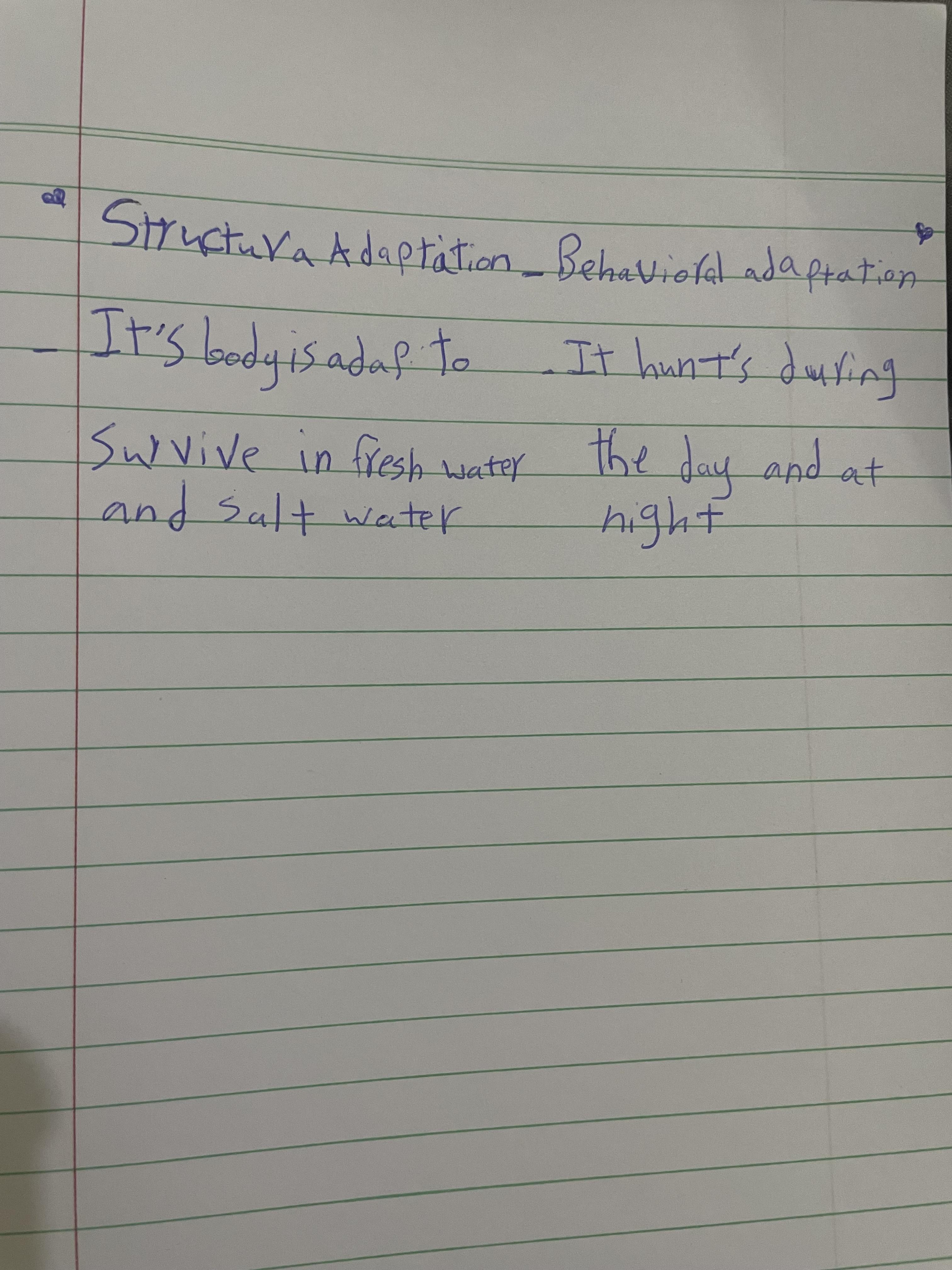 homwork mention types of structural and behavioral adaptation in bull shark