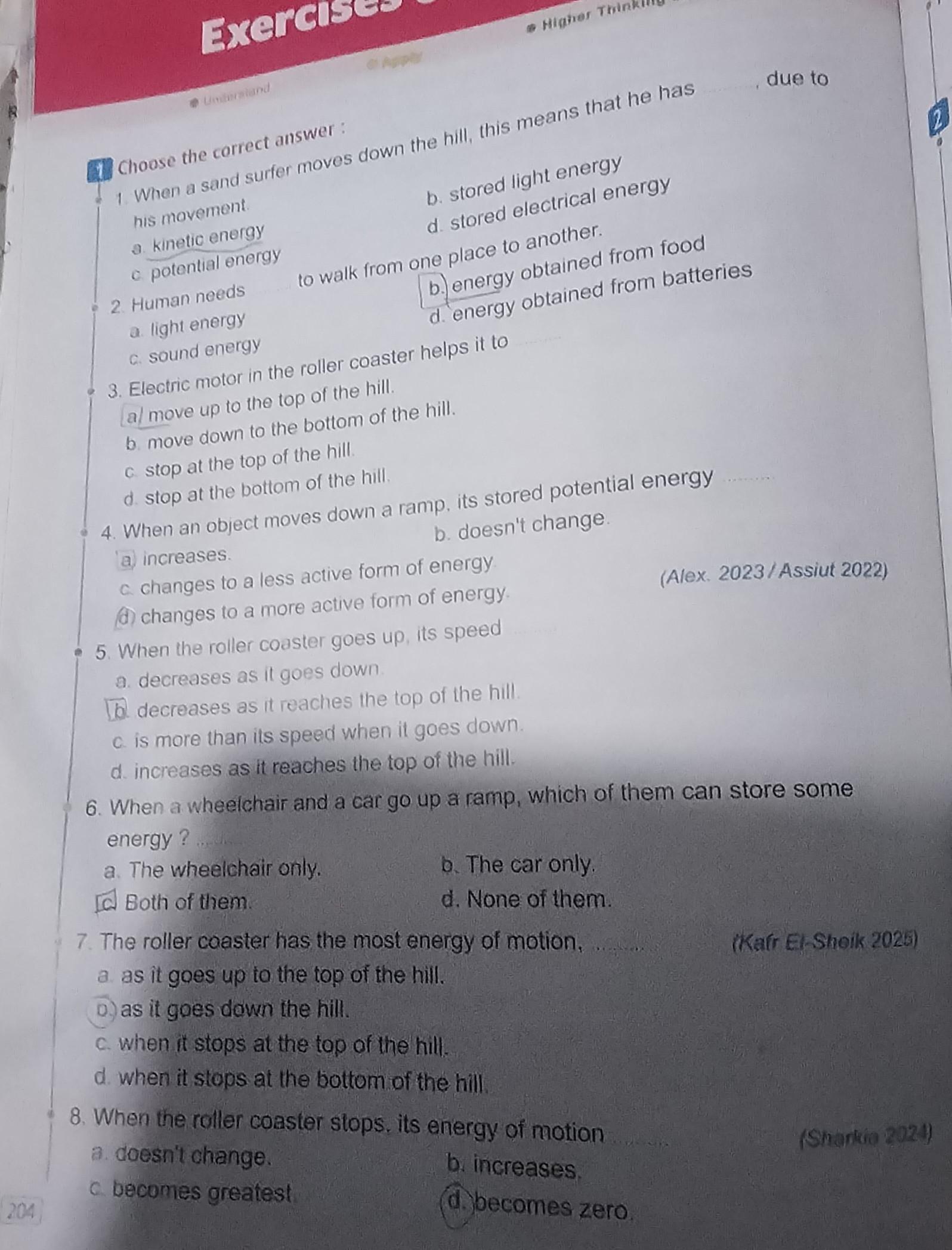 choose the correct answer question in page 204-205