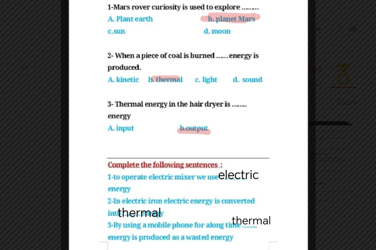 مس انا حله كل الاسئله