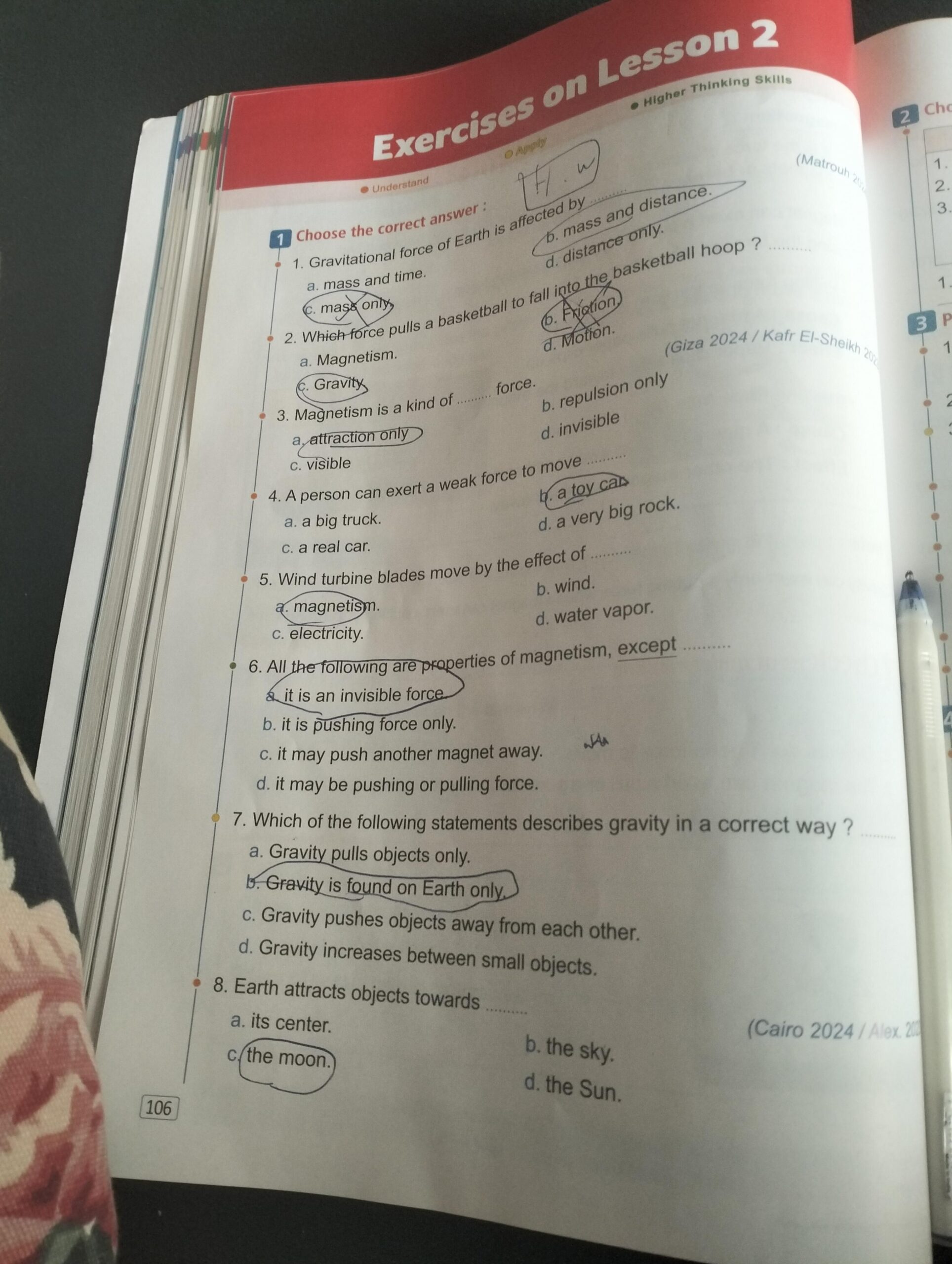 finished lesson 3 homework exercises page 33 choose the correct answer from 1 to 8