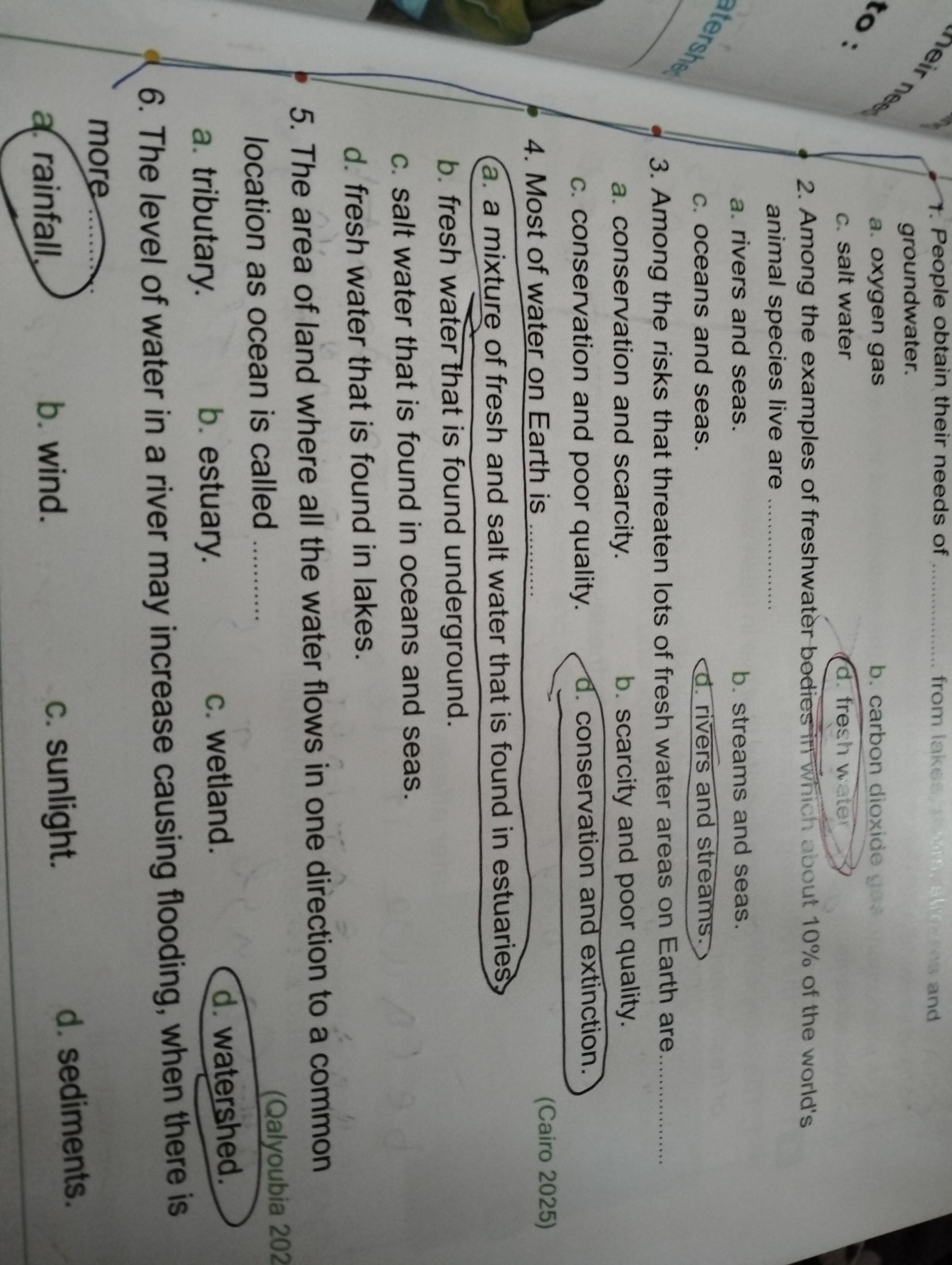 finished lesson 4 homework choose the coreect answer question from 1 to5 page 39