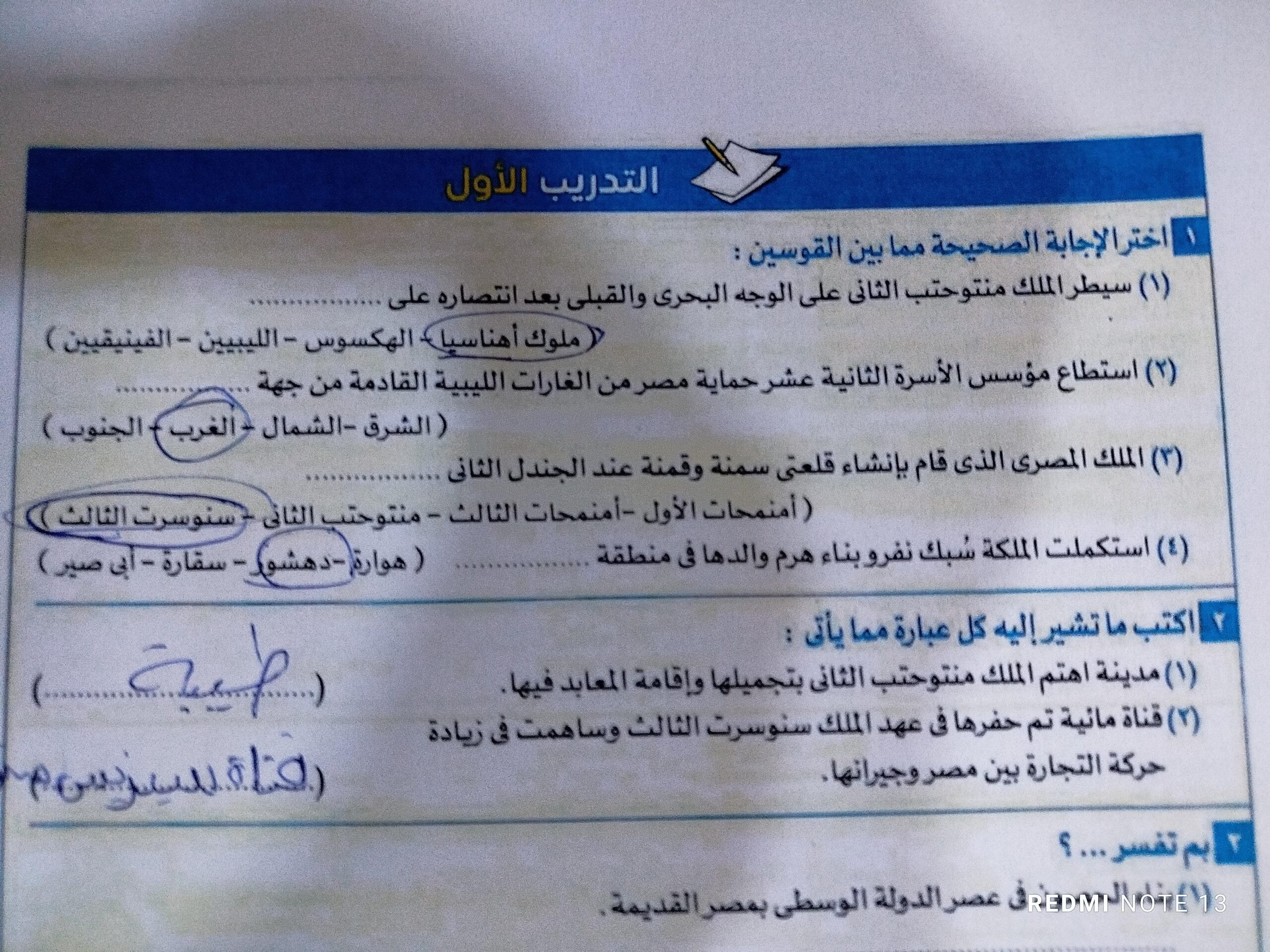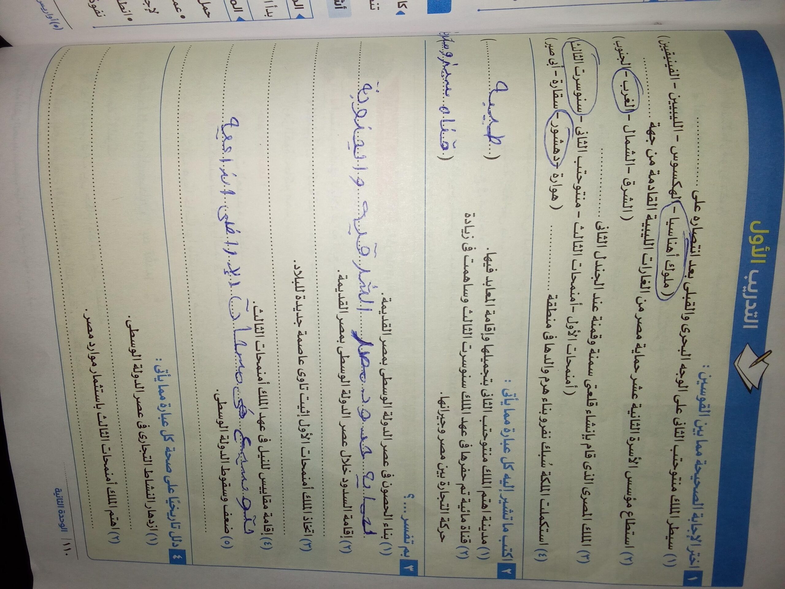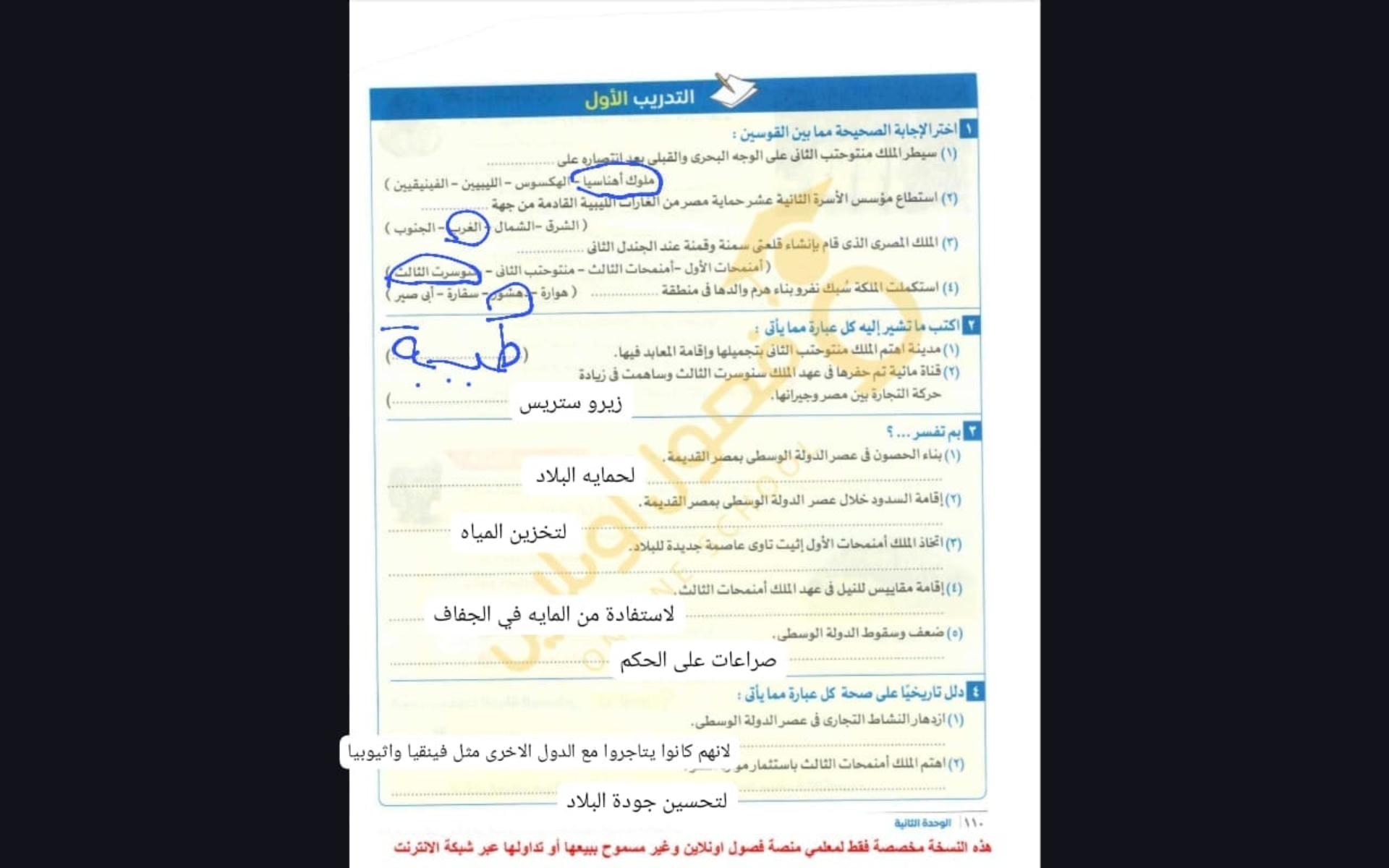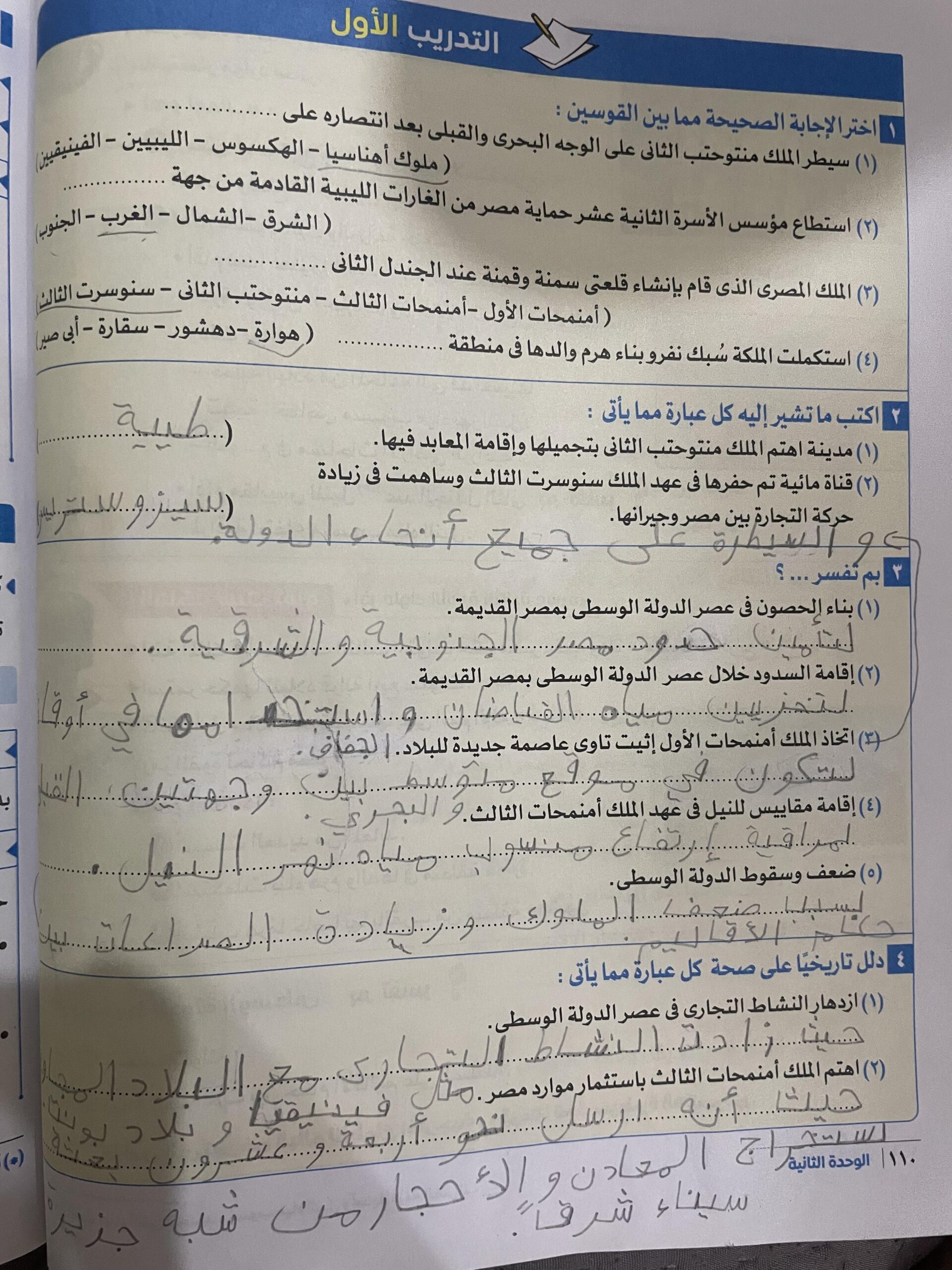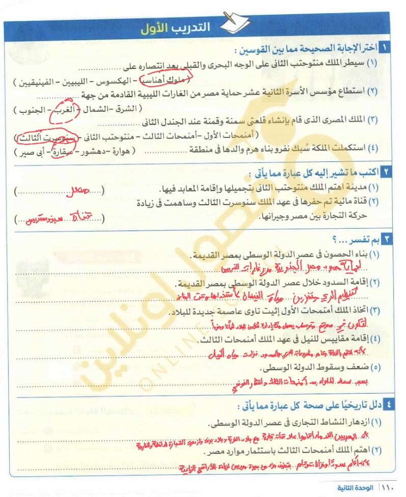 اخدنا الجزء الاول من الدوله الوسطي والواجب تدريب 1 ص 110