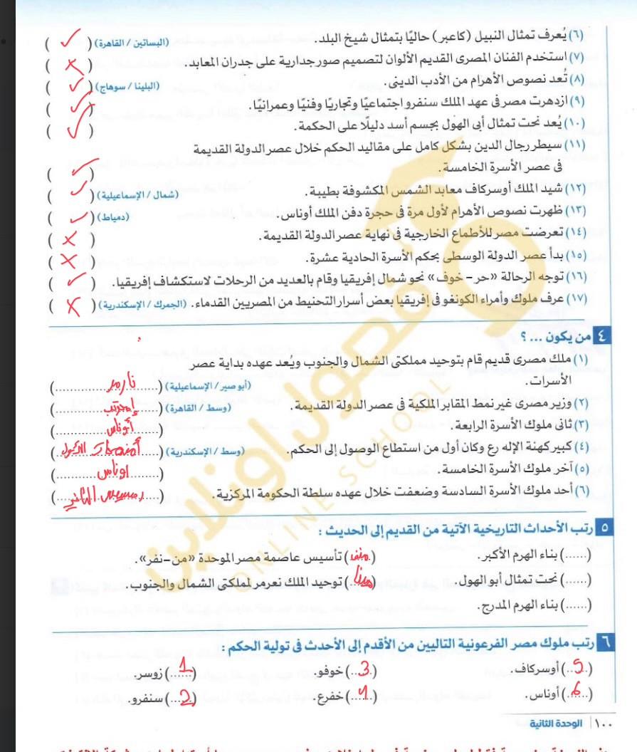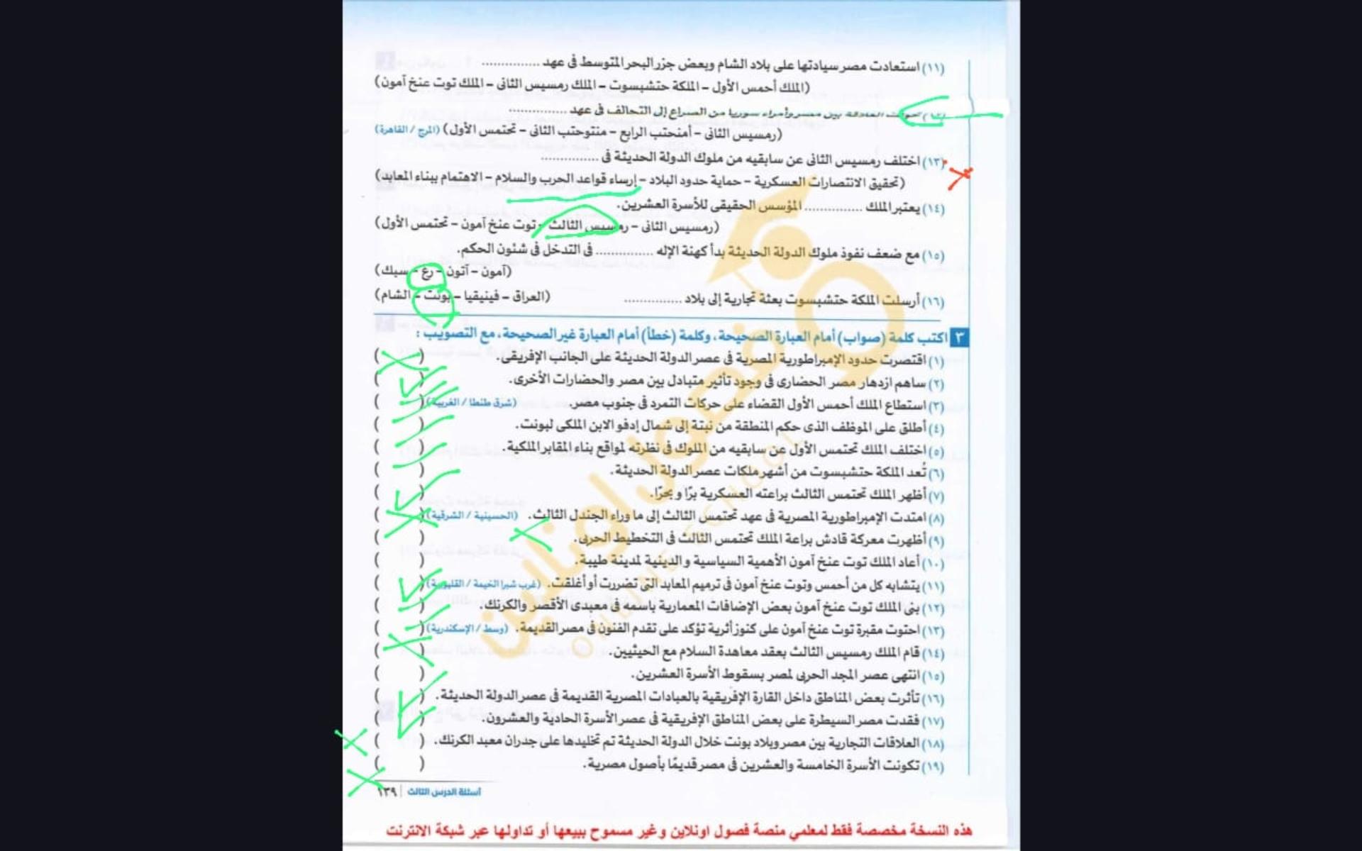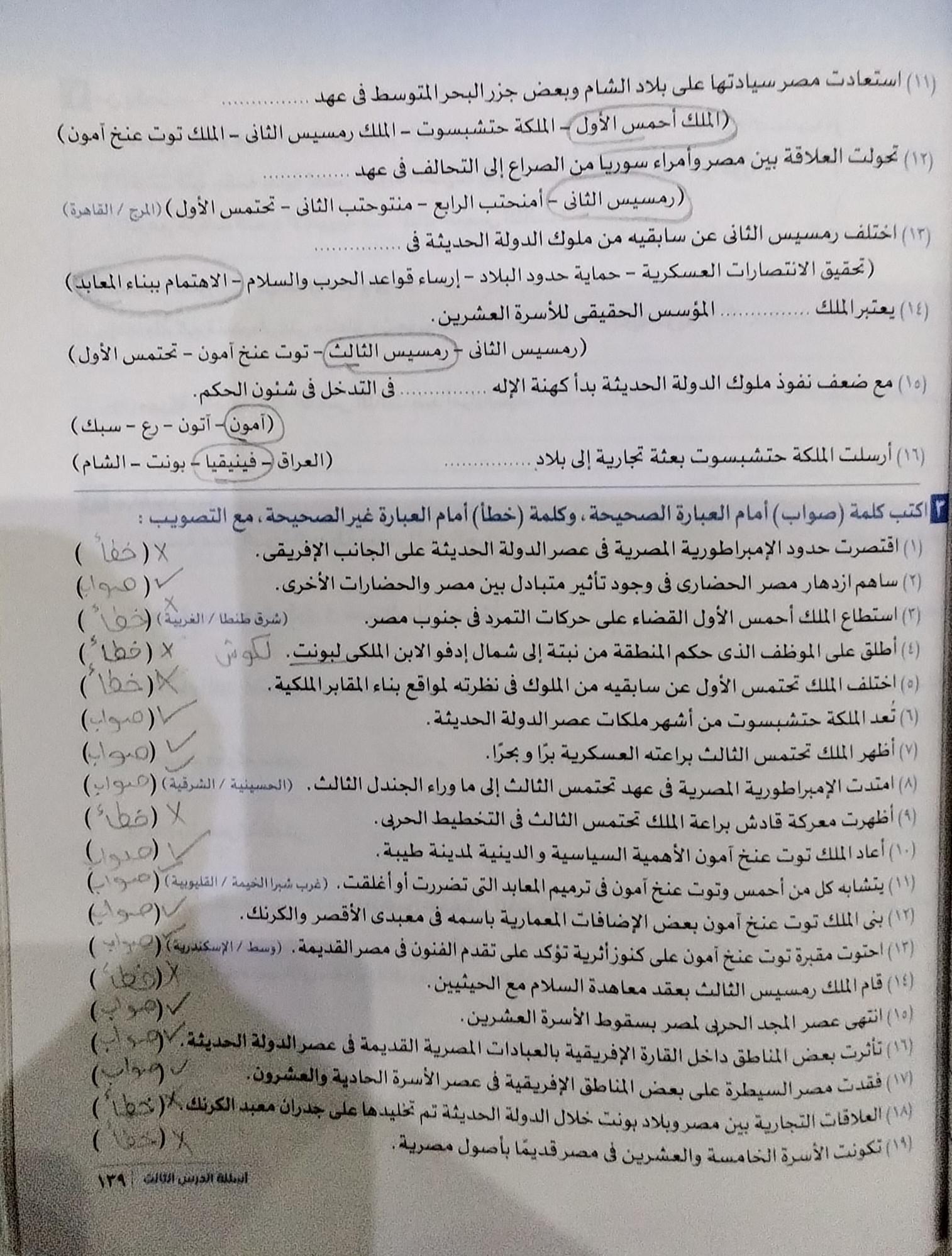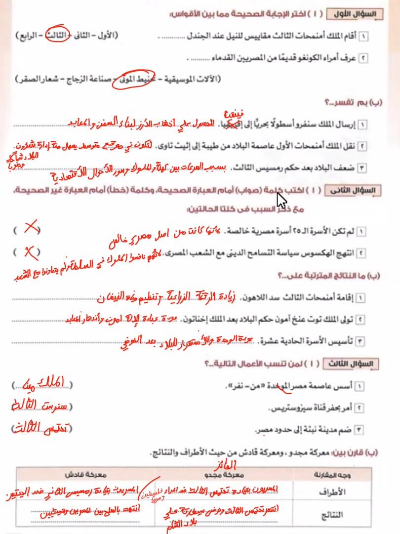 اخدنا اليوم الجزء التاني من الدوله الحديثه ووقفنا عند توت عنخ امون ولا يوجد واجب