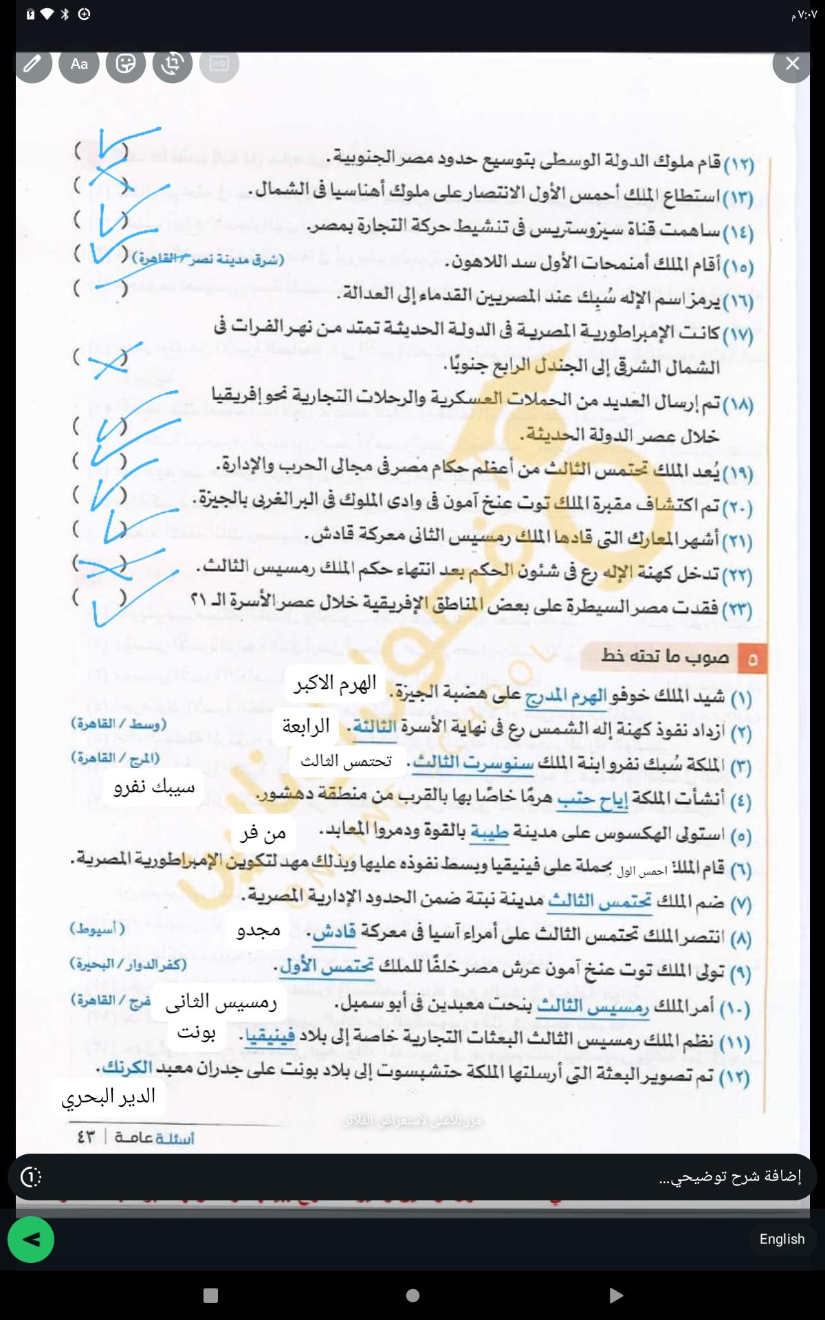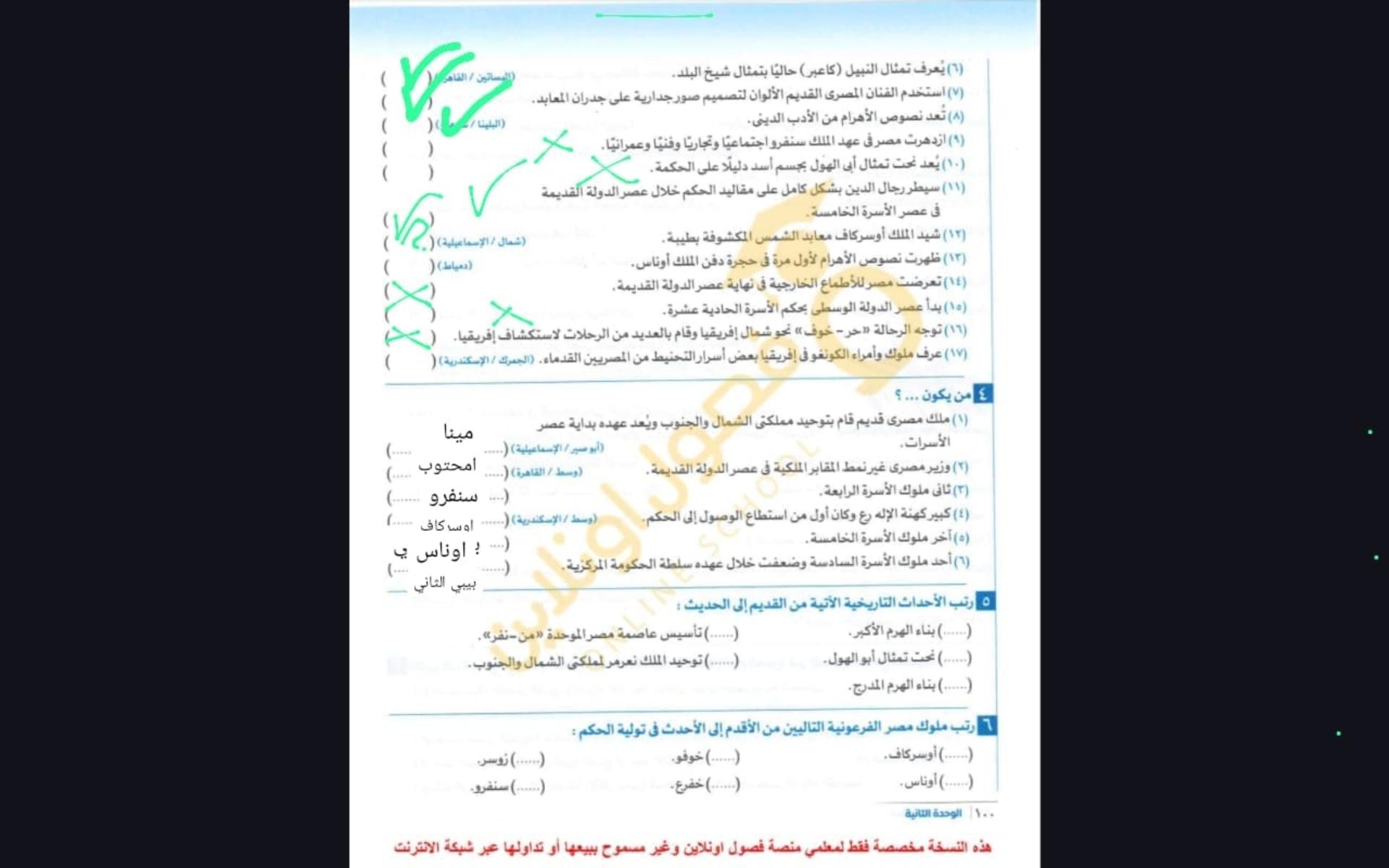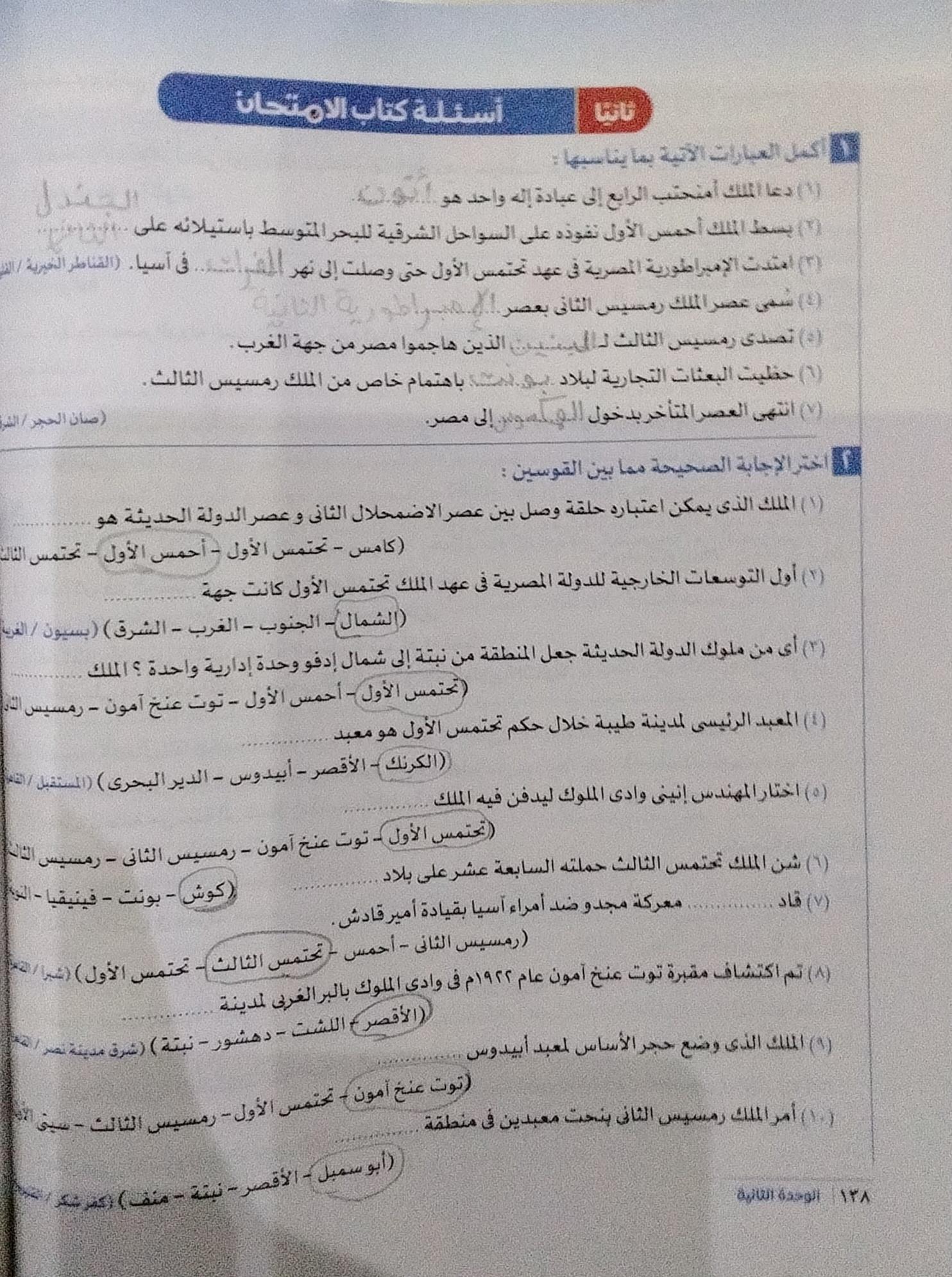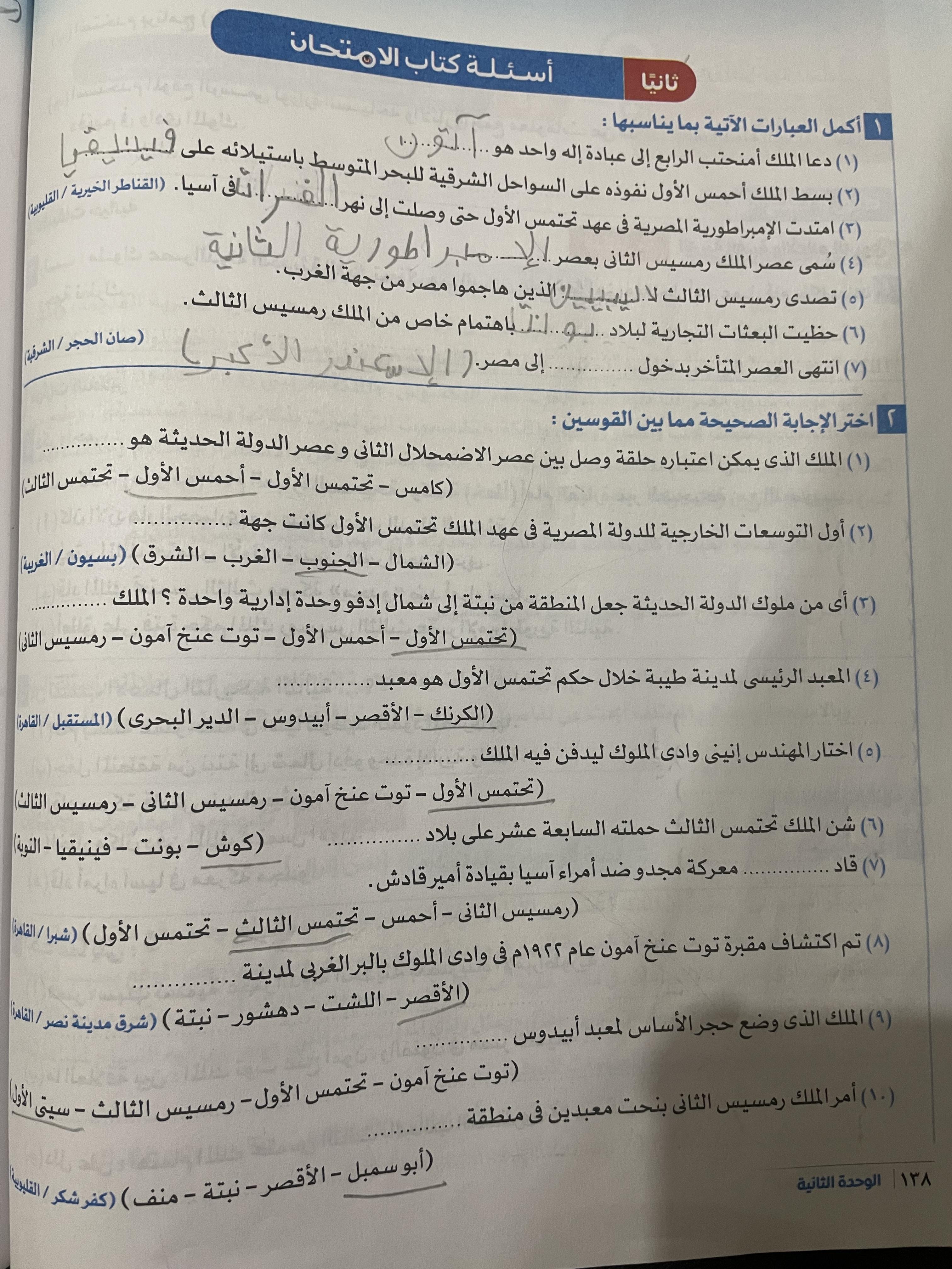 اخدنا اليوم الجزء التاني من الدوله الحديثه ووقفنا عند توت عنخ امون ولا يوجد واجب