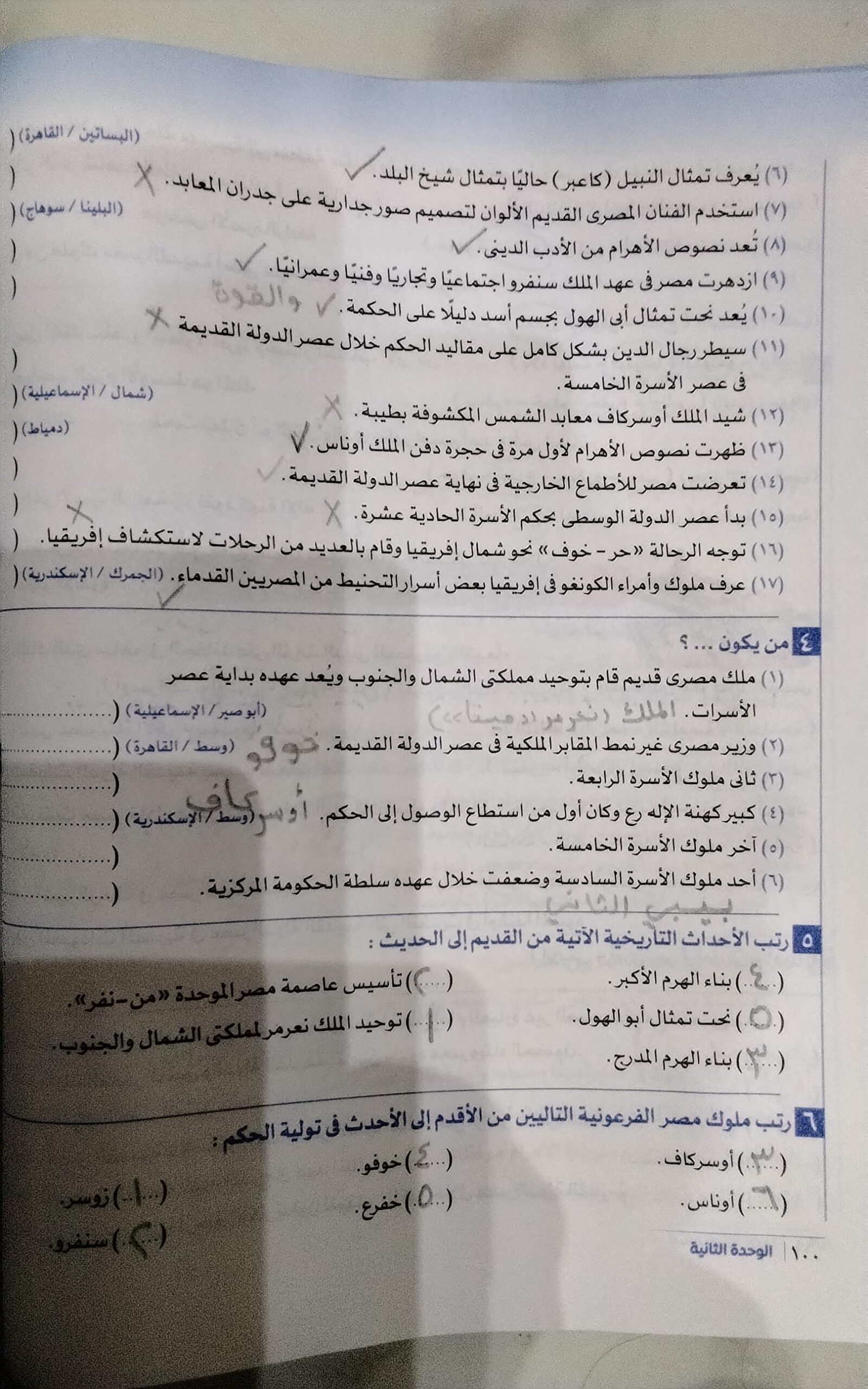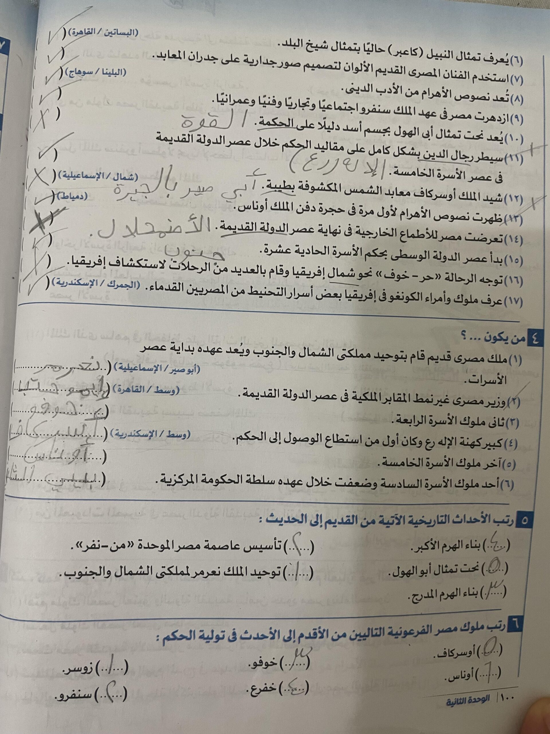 اخدنا الجزء التاني وحلينا تدريبات والواجب ص 100 و101 و102 لحد ما النتائج فقط