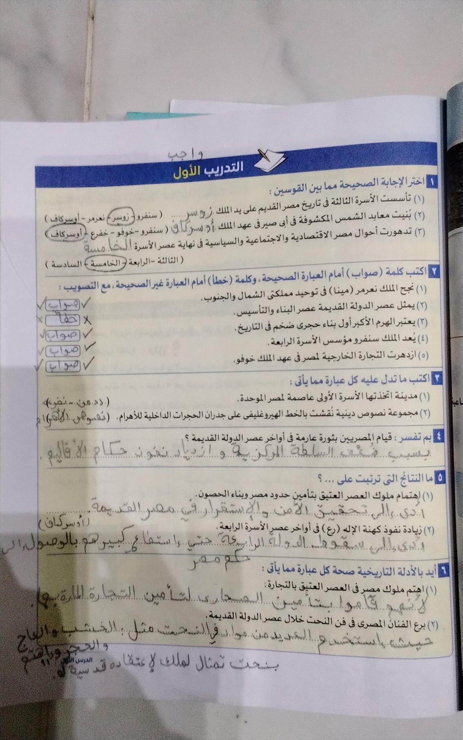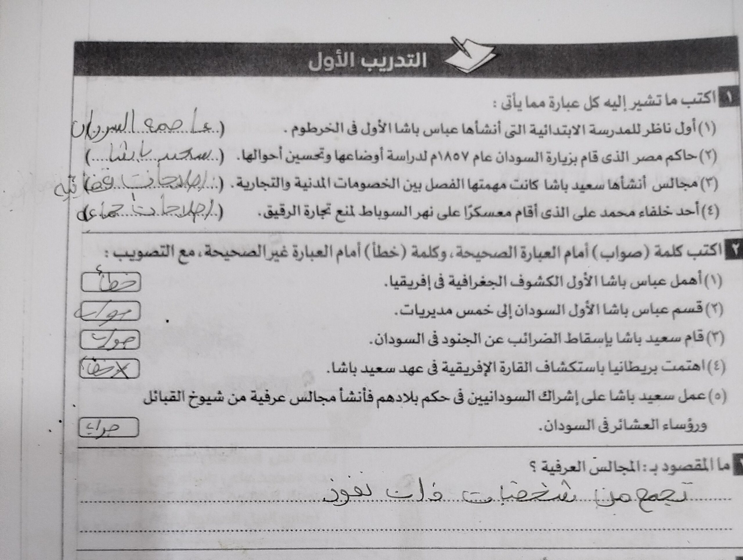 خلصنا الدوله الحديثه وحلينا جزء من التدريب الاول والتاني والواجب تدريبات كتاب الامتحان اول 3 صفحات