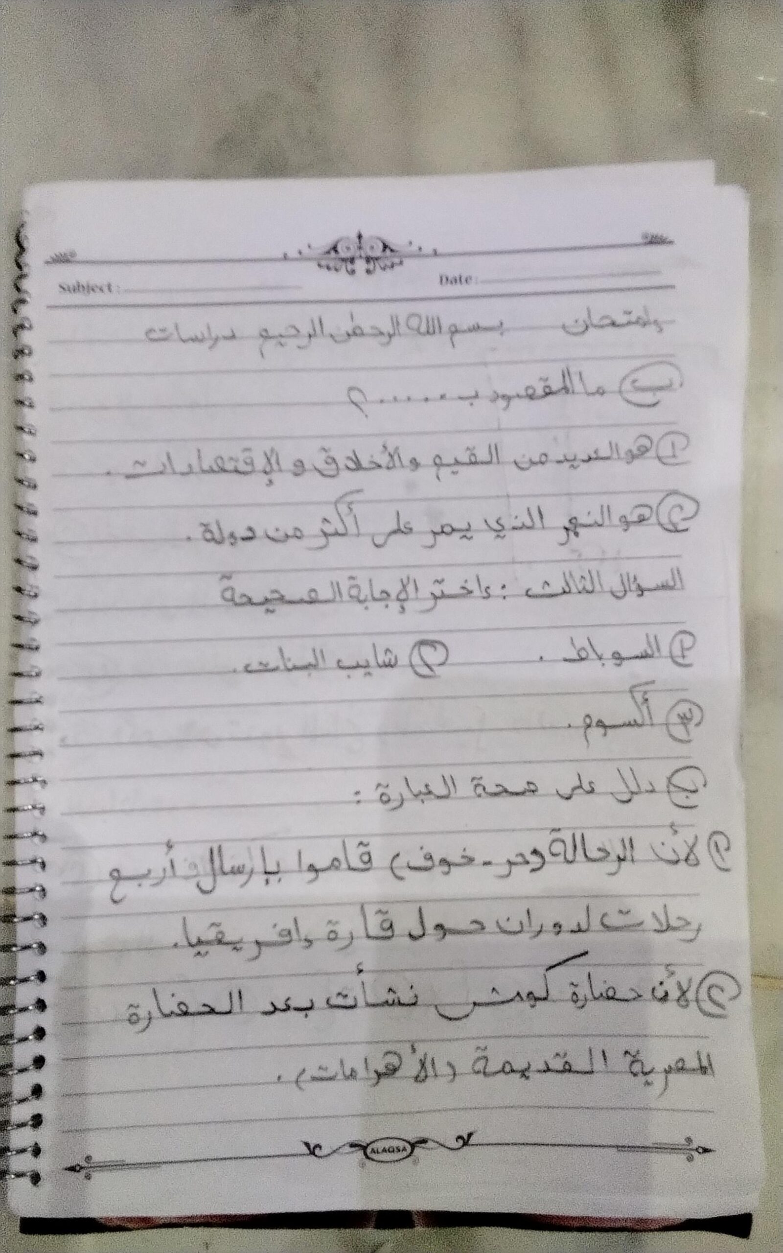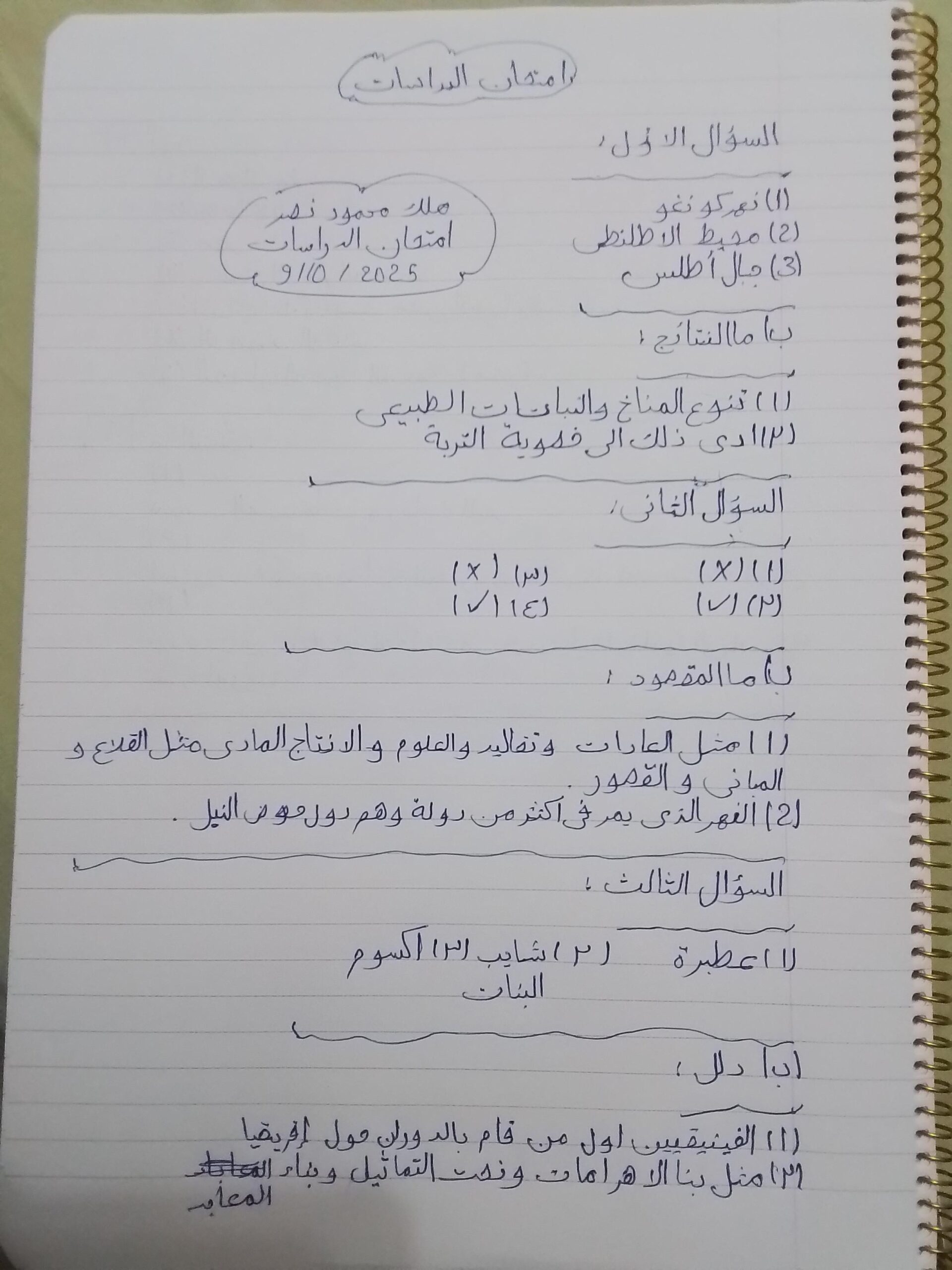 إختبار الدراسات الإجتماعية عبدالله أحمد. ❤️❤️يا أحلى ميس دراسات ❤️❤️