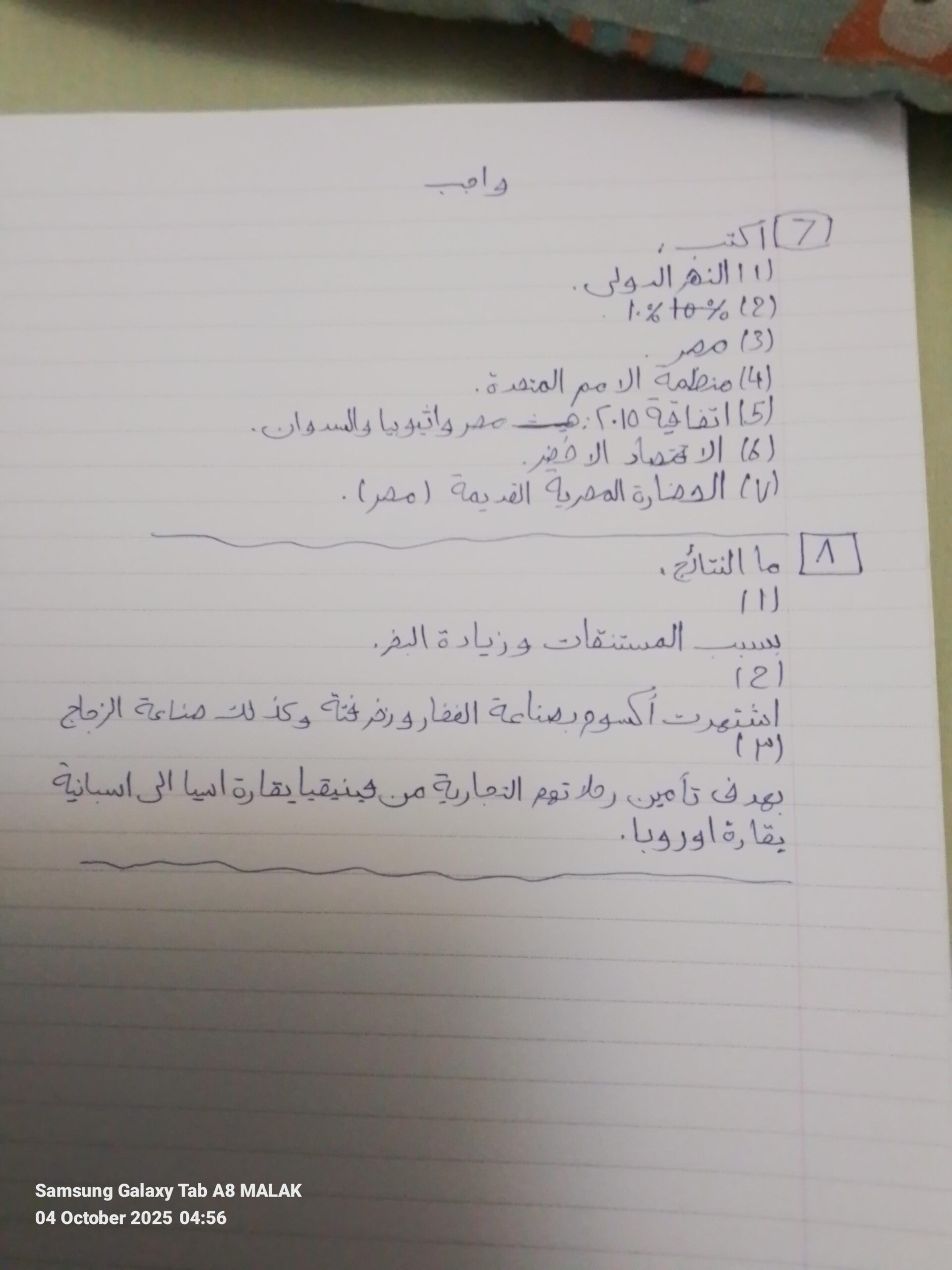 الواجب بتاع شهد 💗 🌷