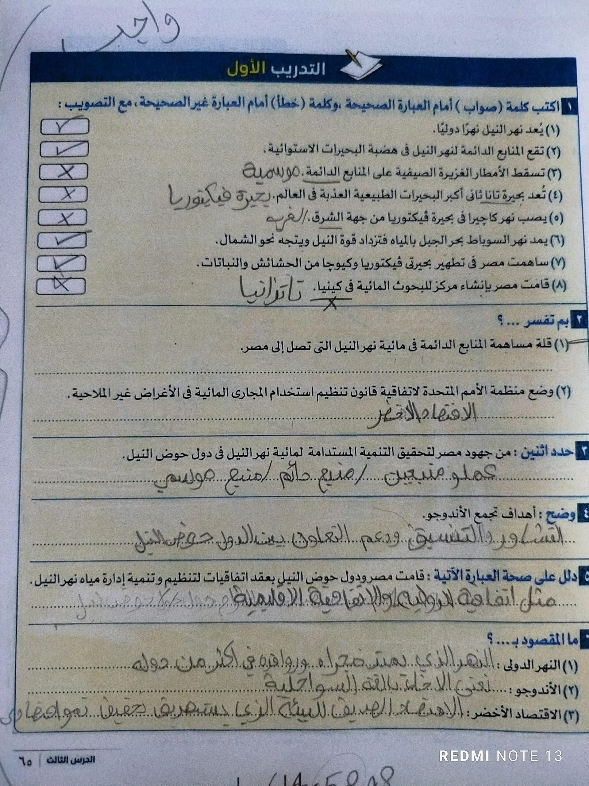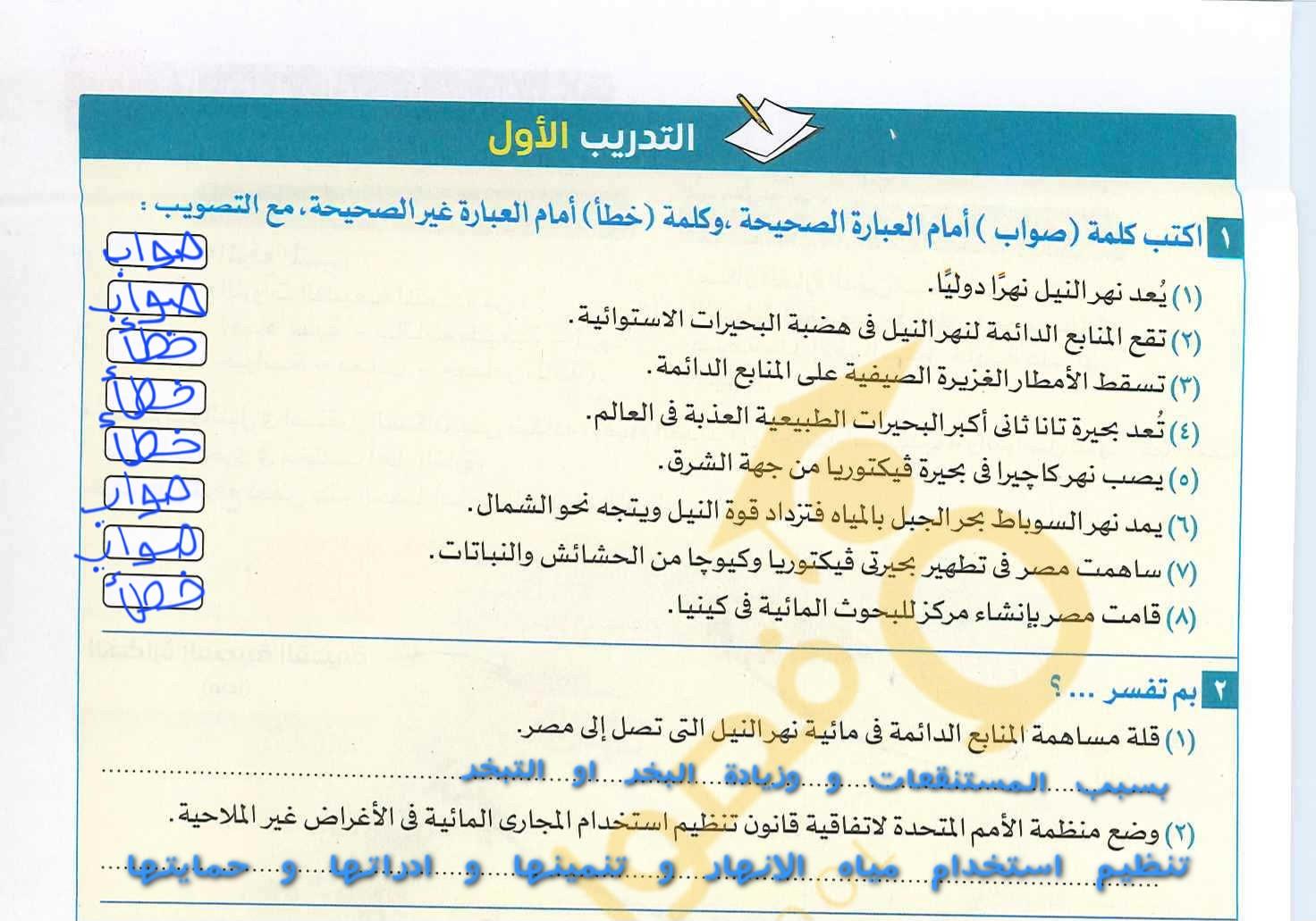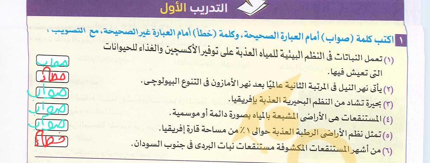 الواجب ص193 تدريب 1 عن الجزء الاول من النظم المائيع العذبه