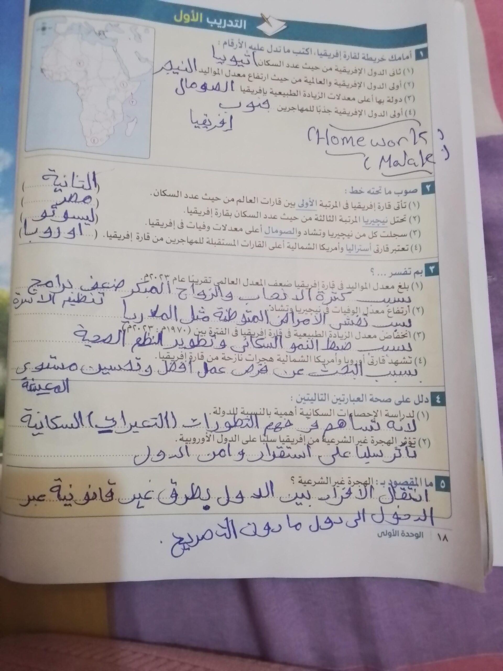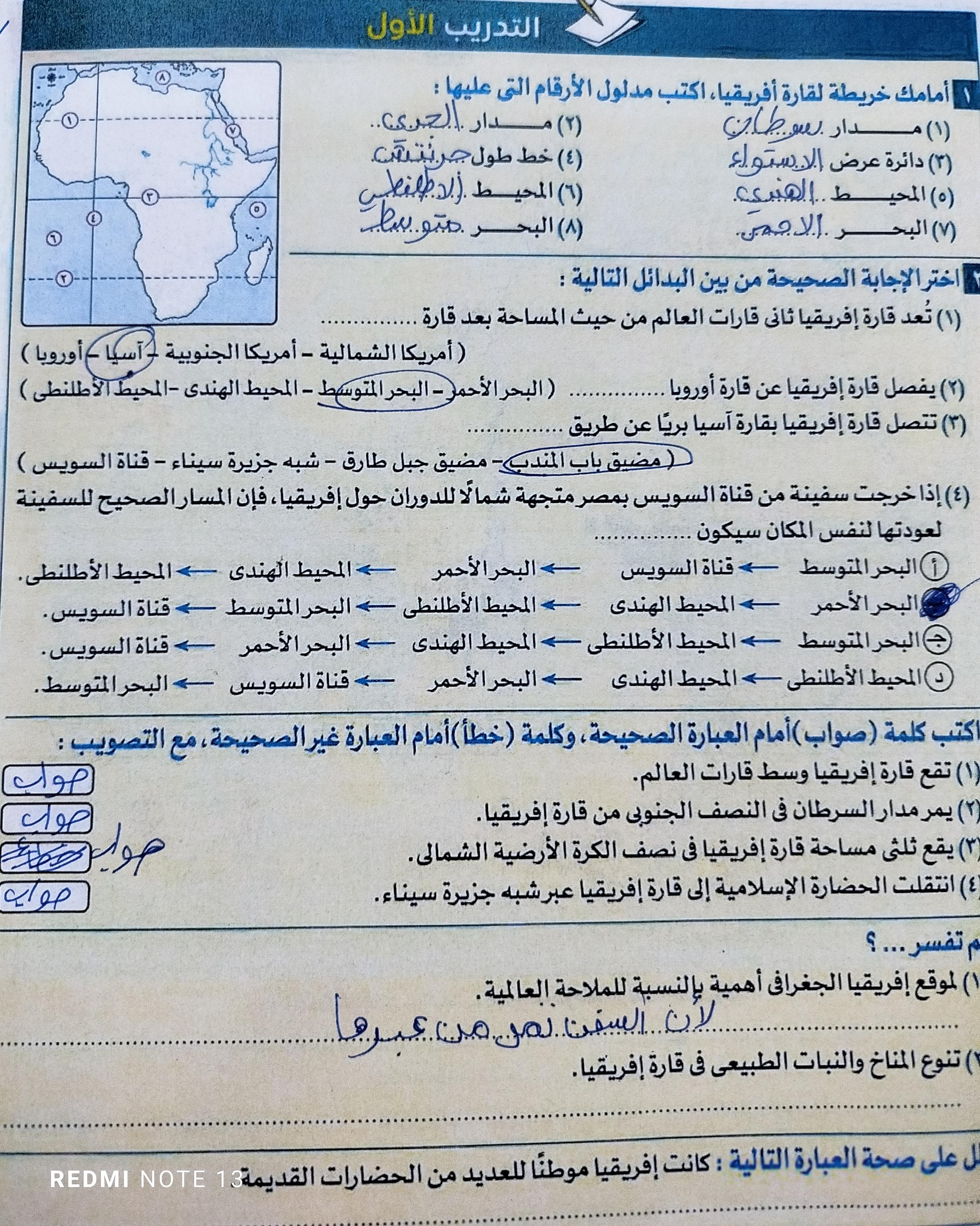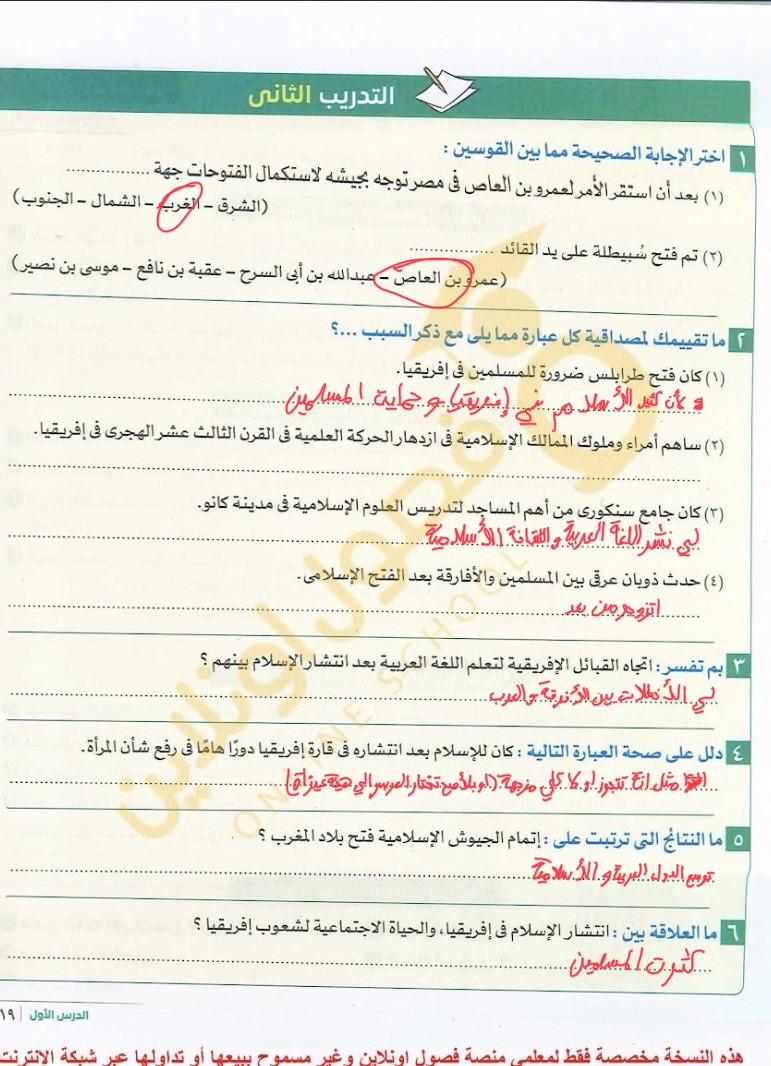 اخدنا اليوم الجزء الاول من انتشار الاسلام في افريقيا وحلينا تدريب 1 ولا يوجد واجب