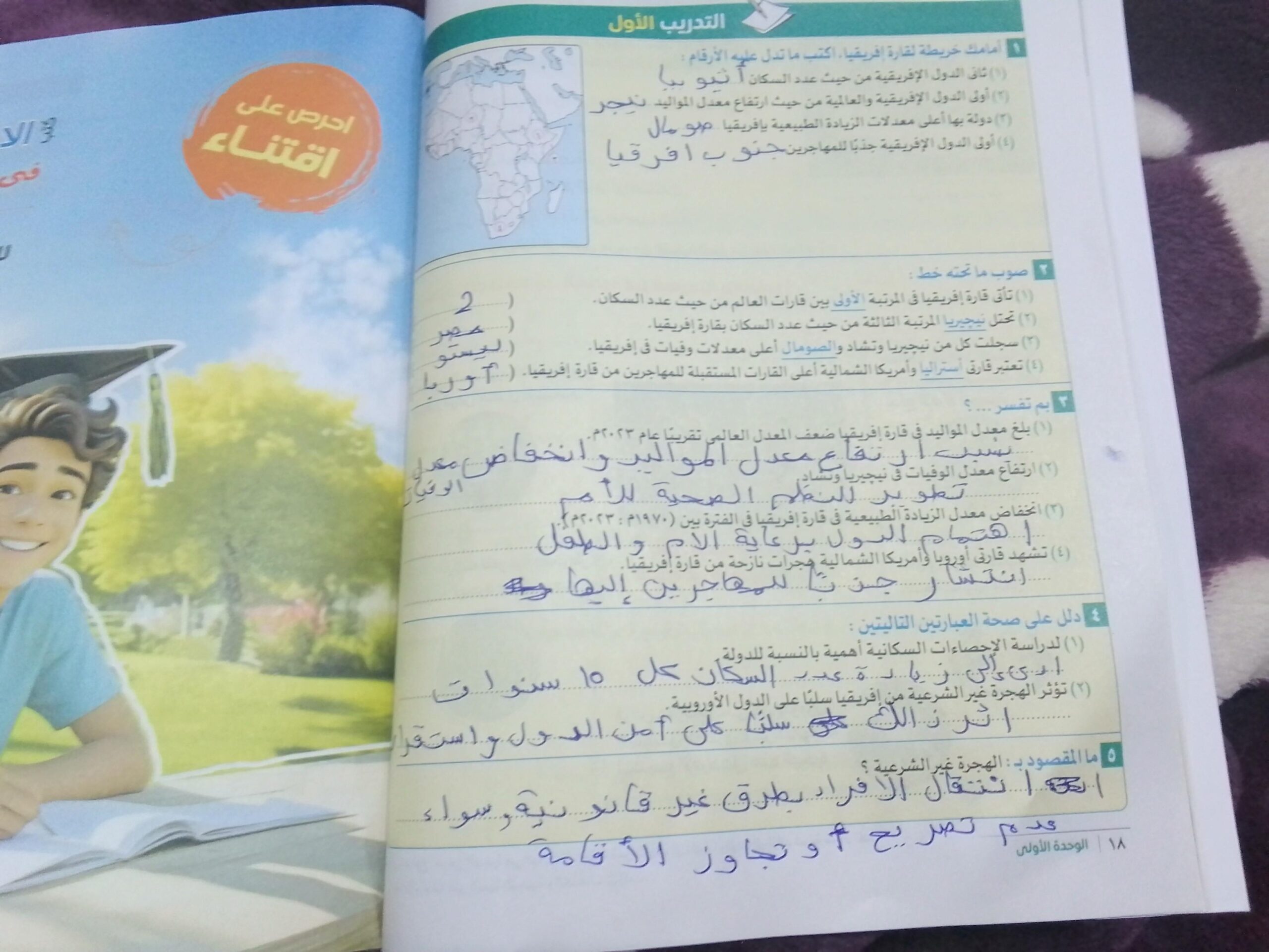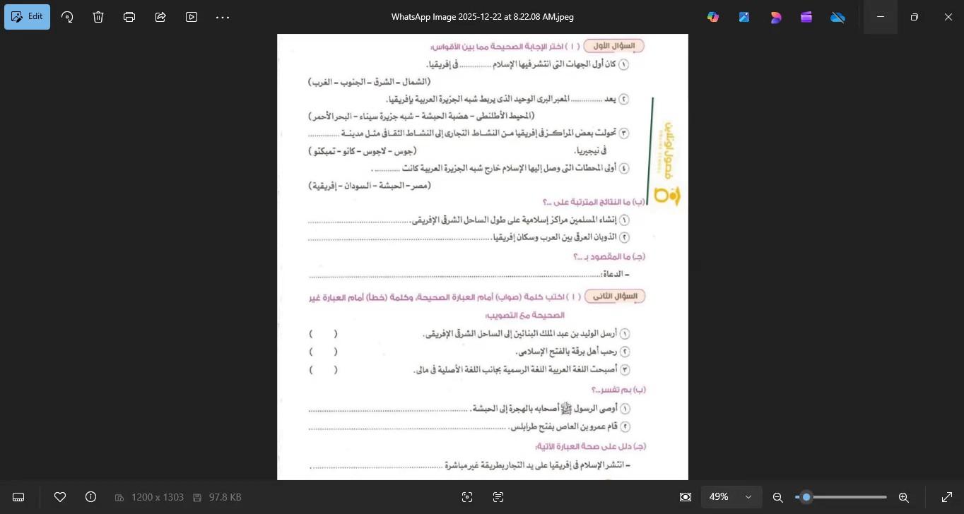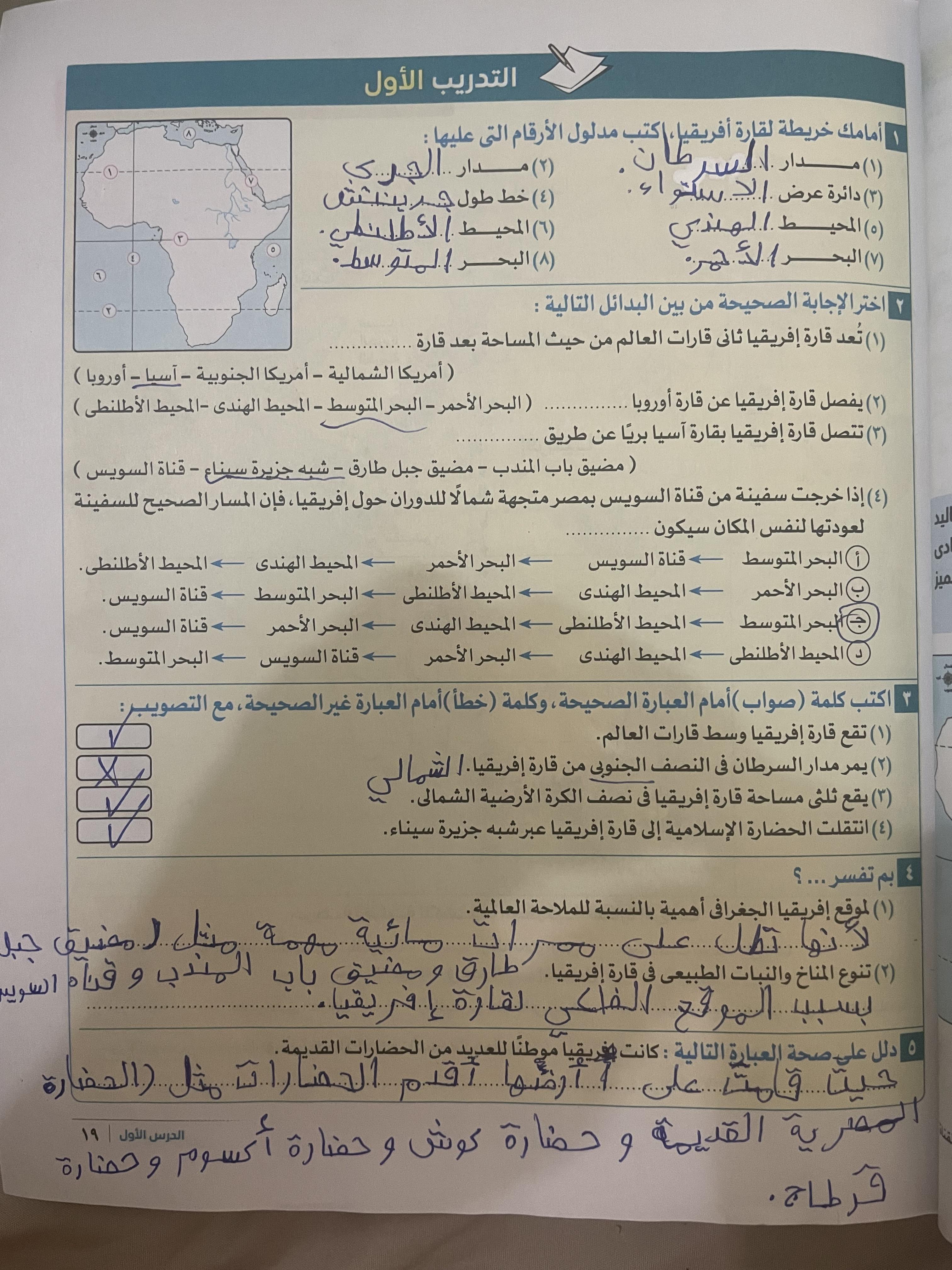 اخدنا اليوم الجزء الاول من انتشار الاسلام في افريقيا وحلينا تدريب 1 ولا يوجد واجب