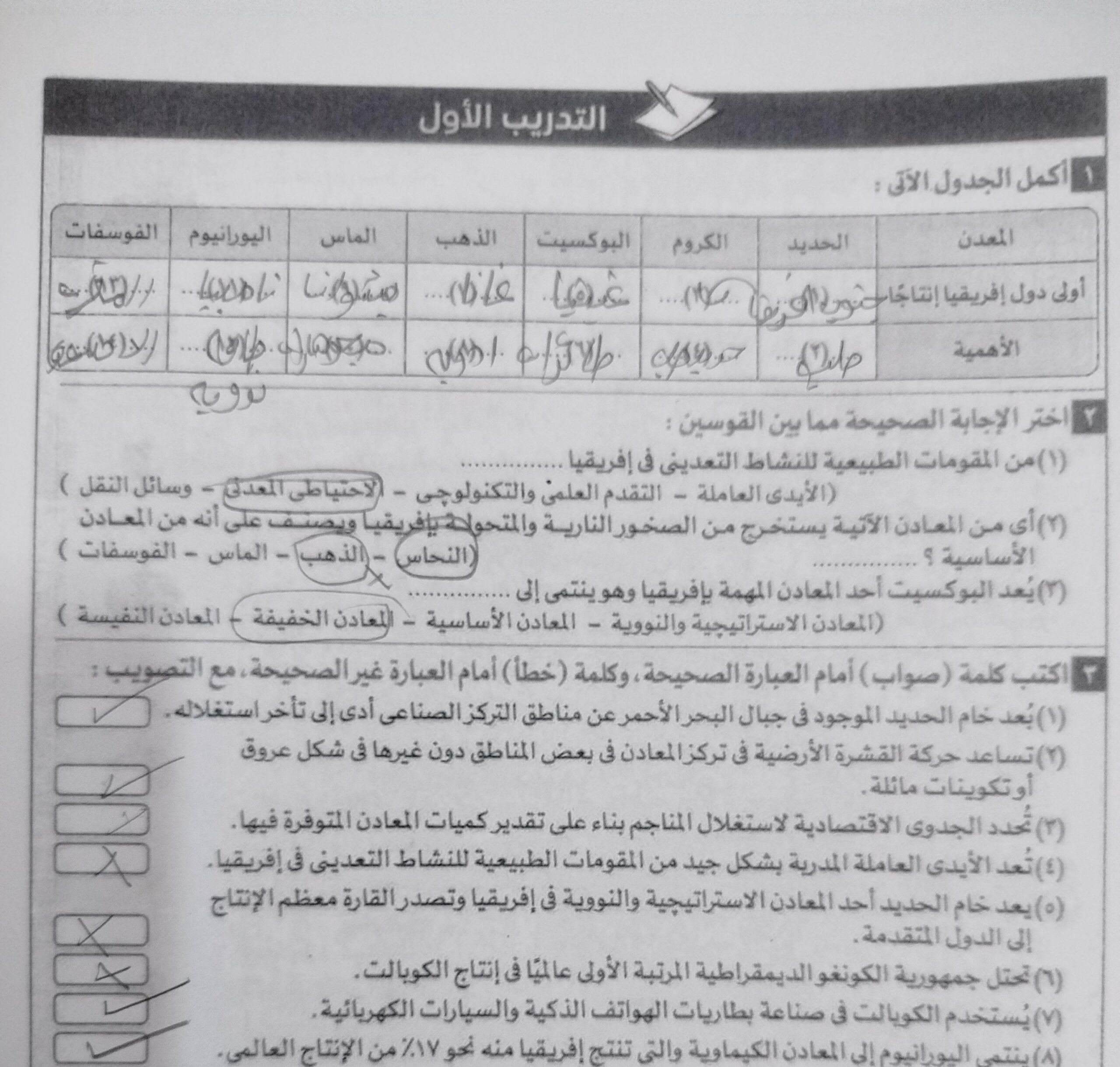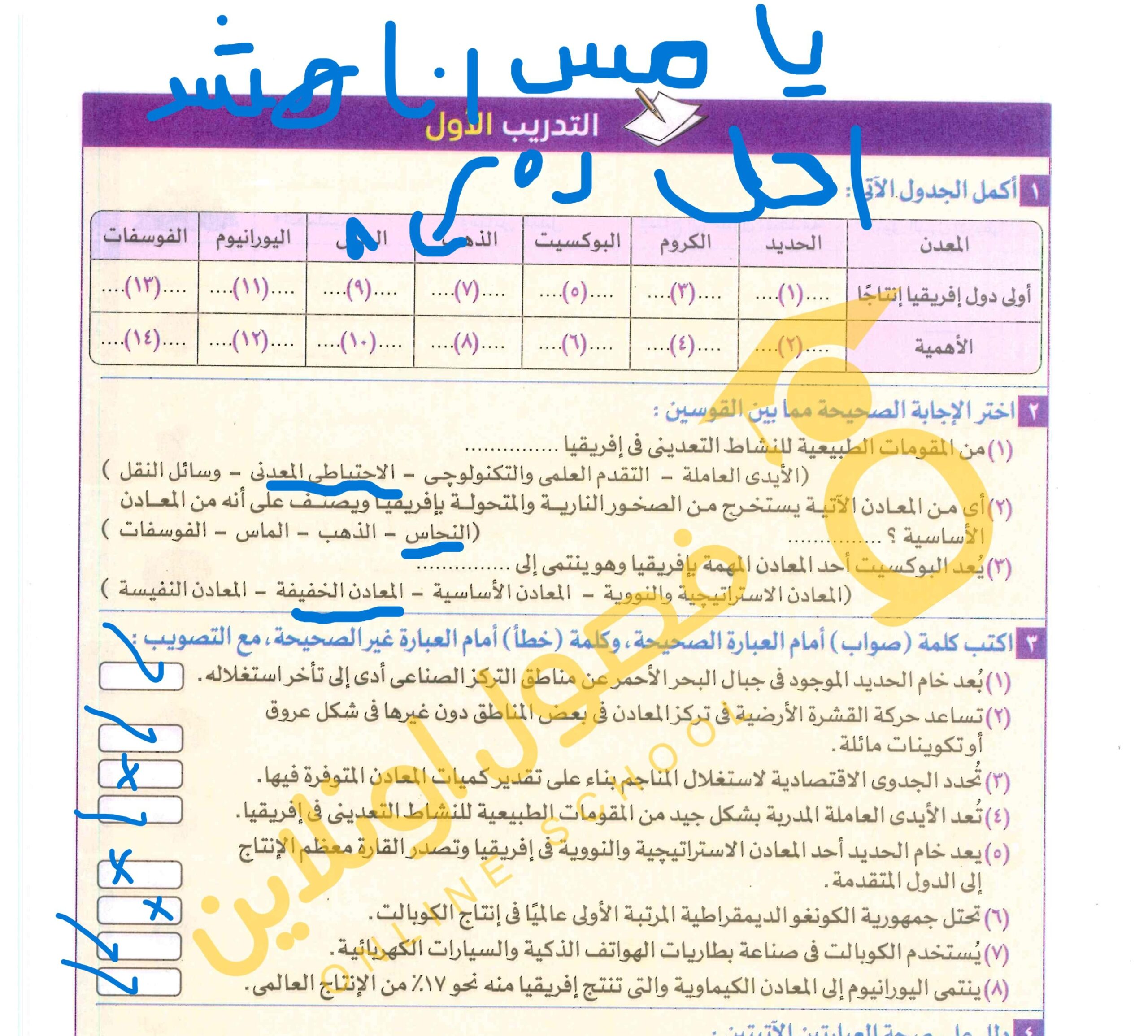 انتهينا من الدرس الاخير والواجب باقي تدريب 2 سؤال 3 ص 234