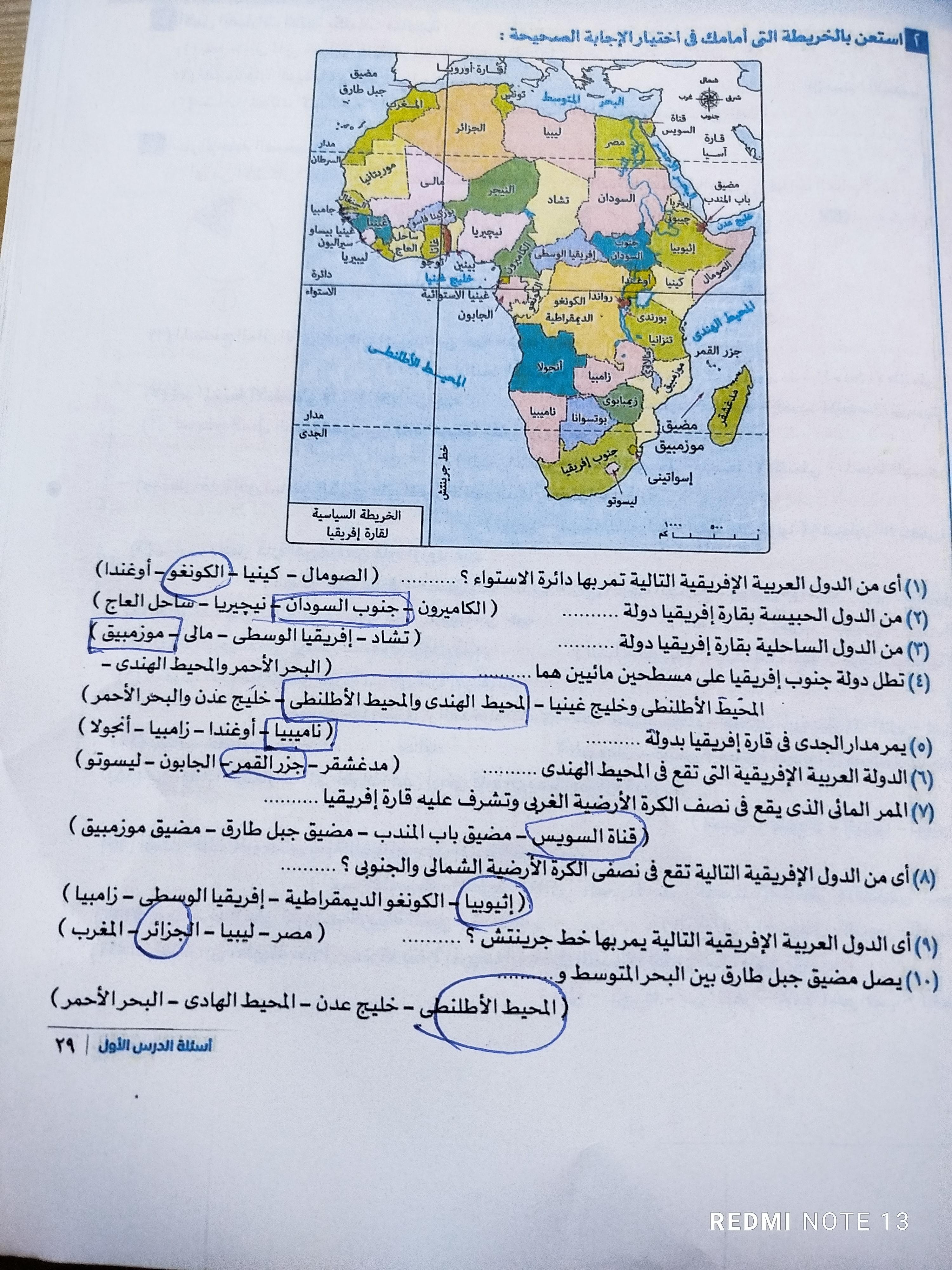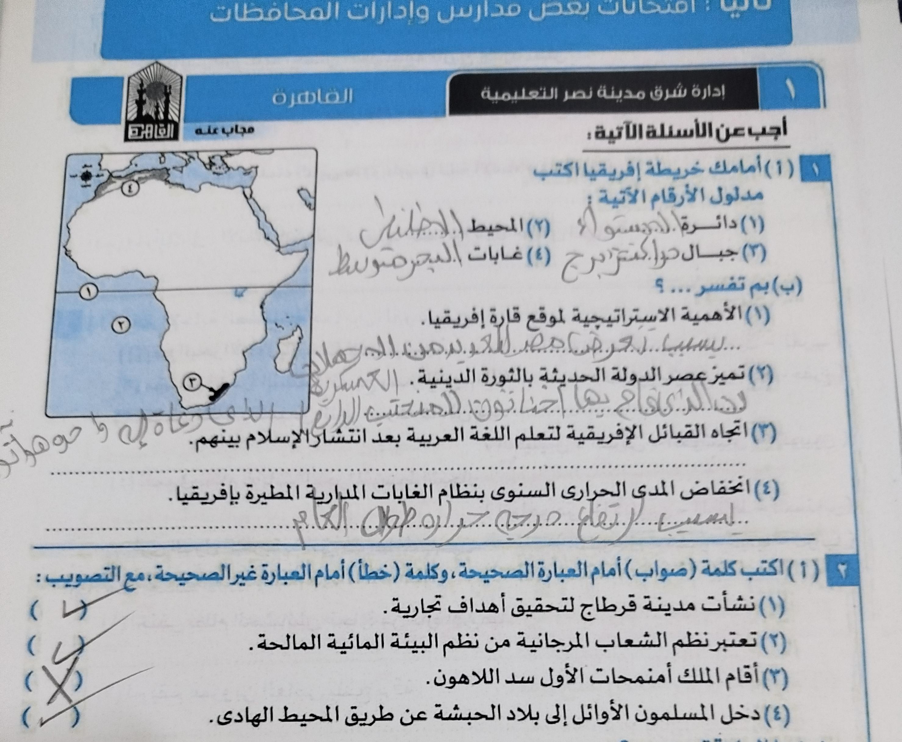 اخدنا اليوم الجزء الاول من الدرس التاني الوحده الرابعهدور مصر الحضاري في قاره افلريقيا وحلينا تدريب 1 ولا يوجد واجب