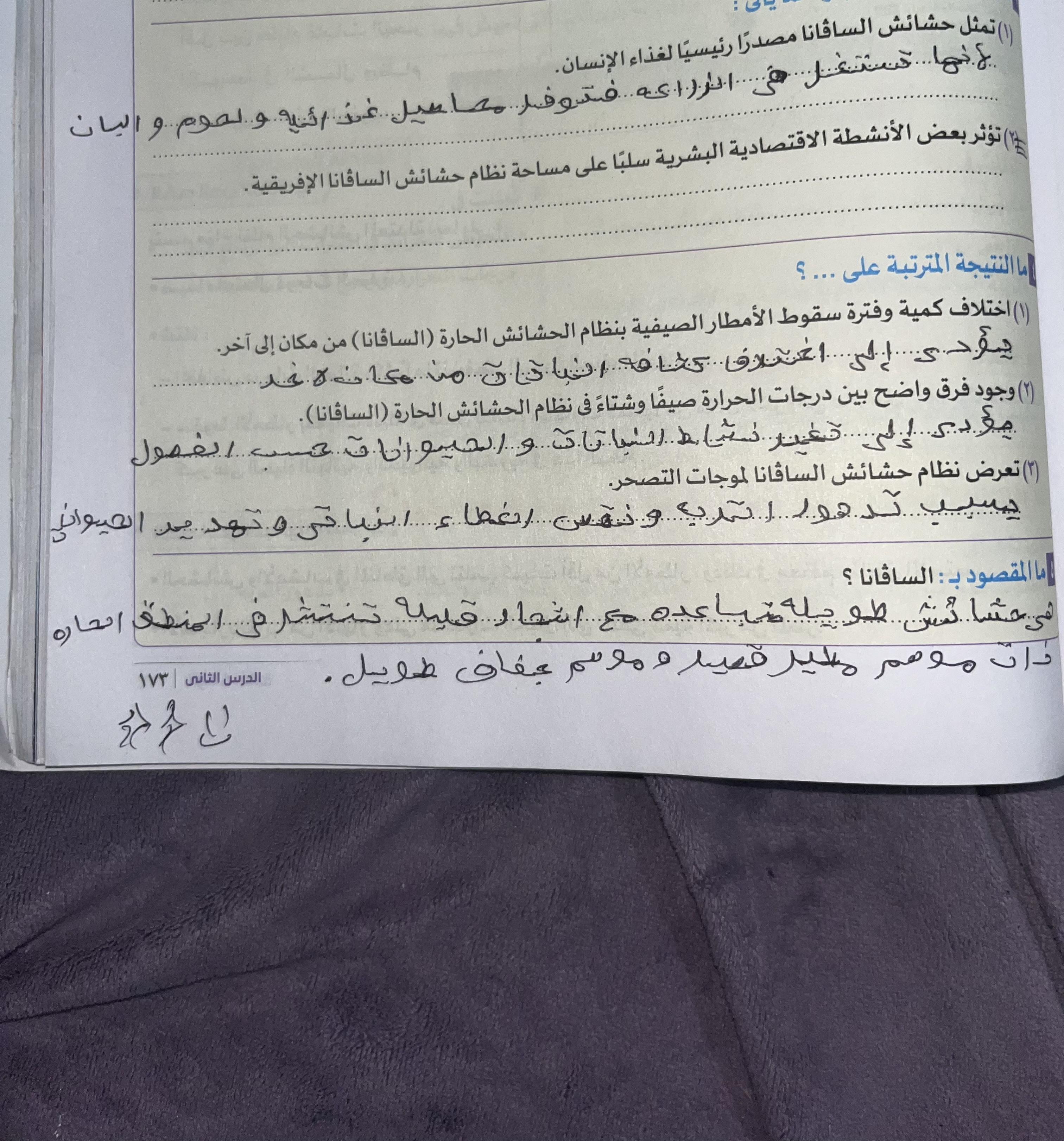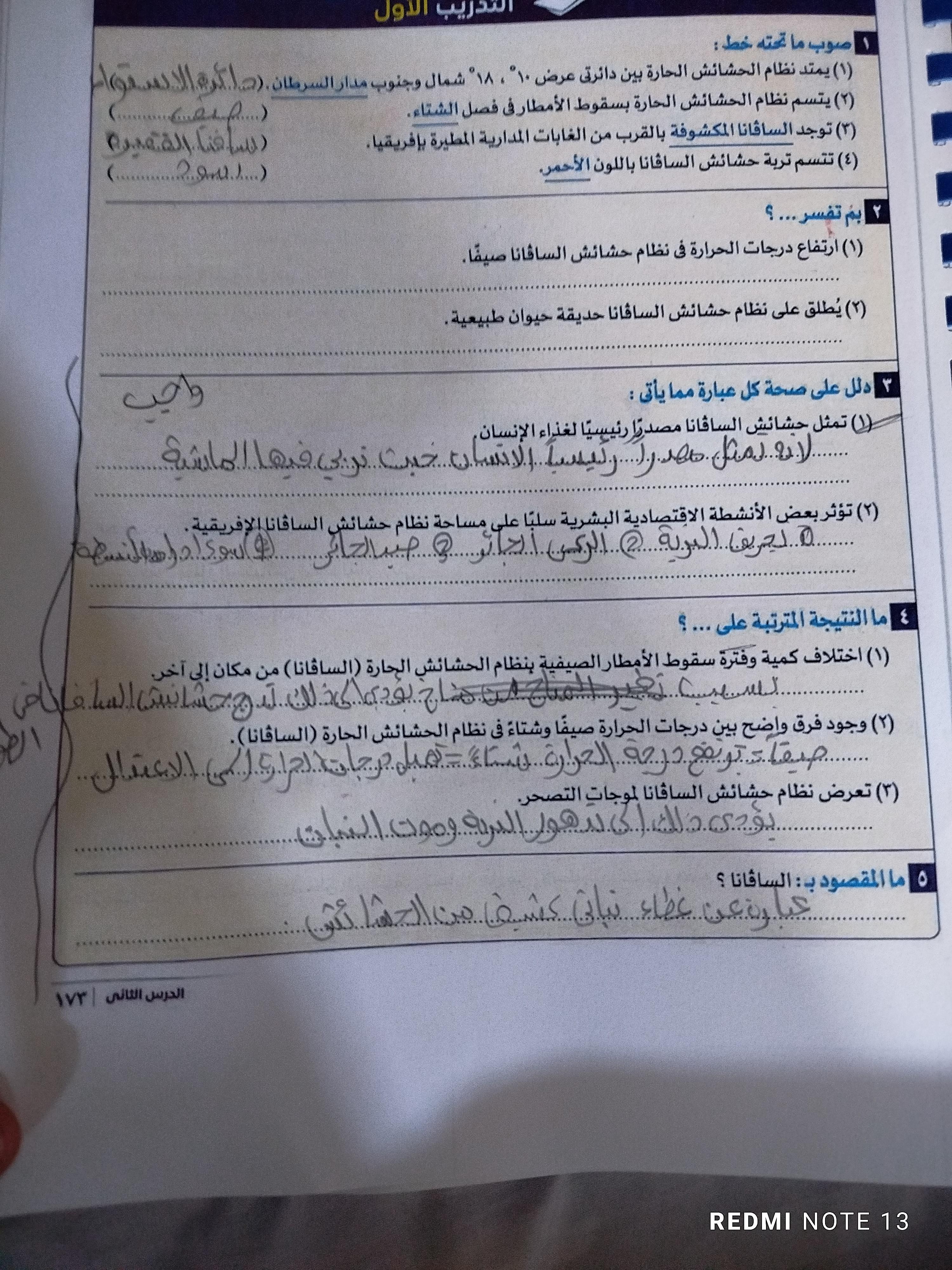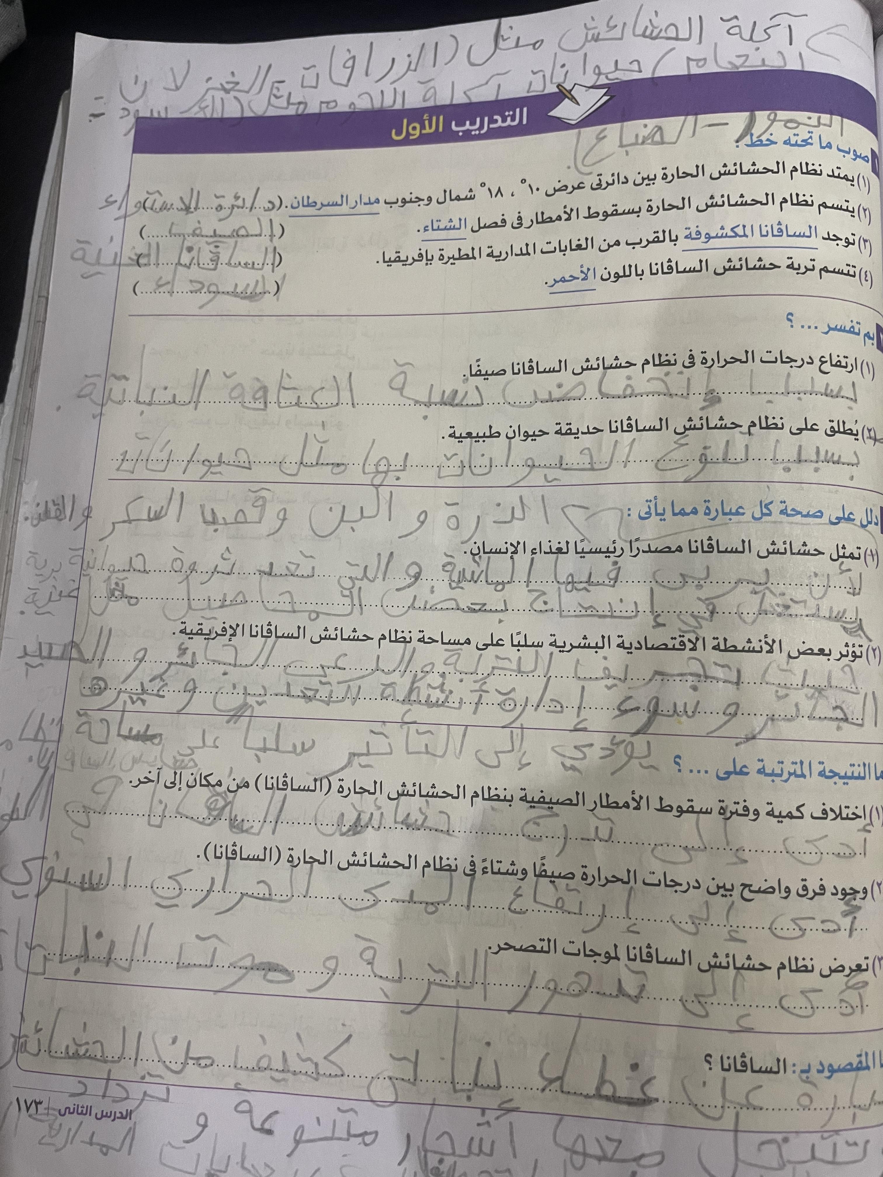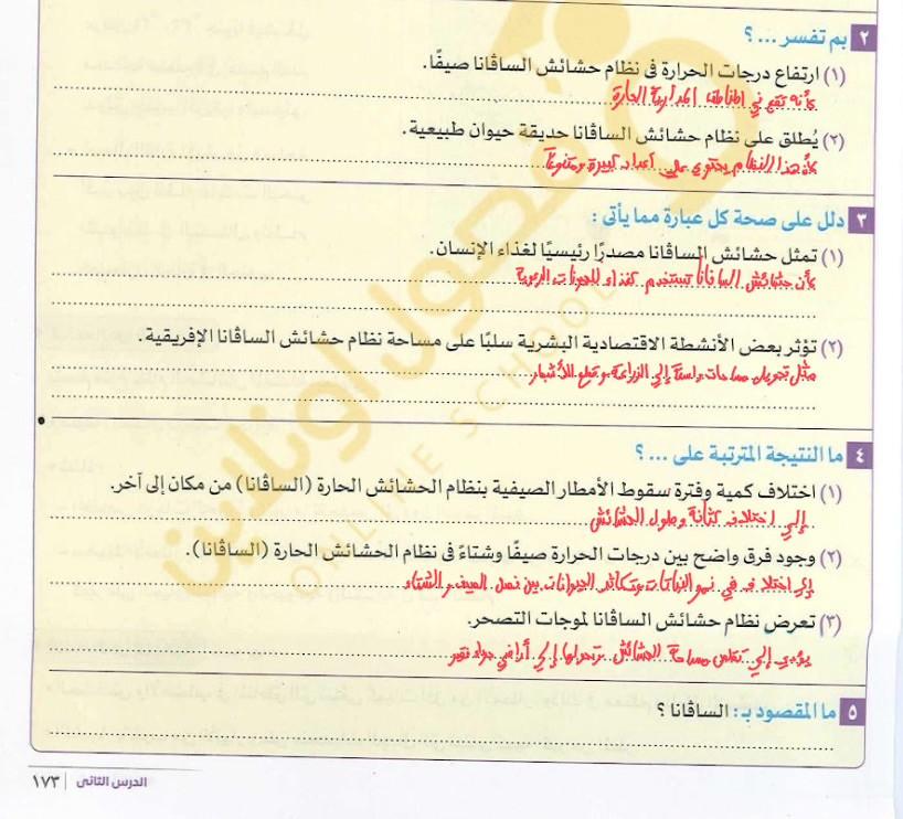 اخدنا الجزء الاول من نظام الحشائش وخدنا حشائش السافانا والواجب تدريب 1 ص 173