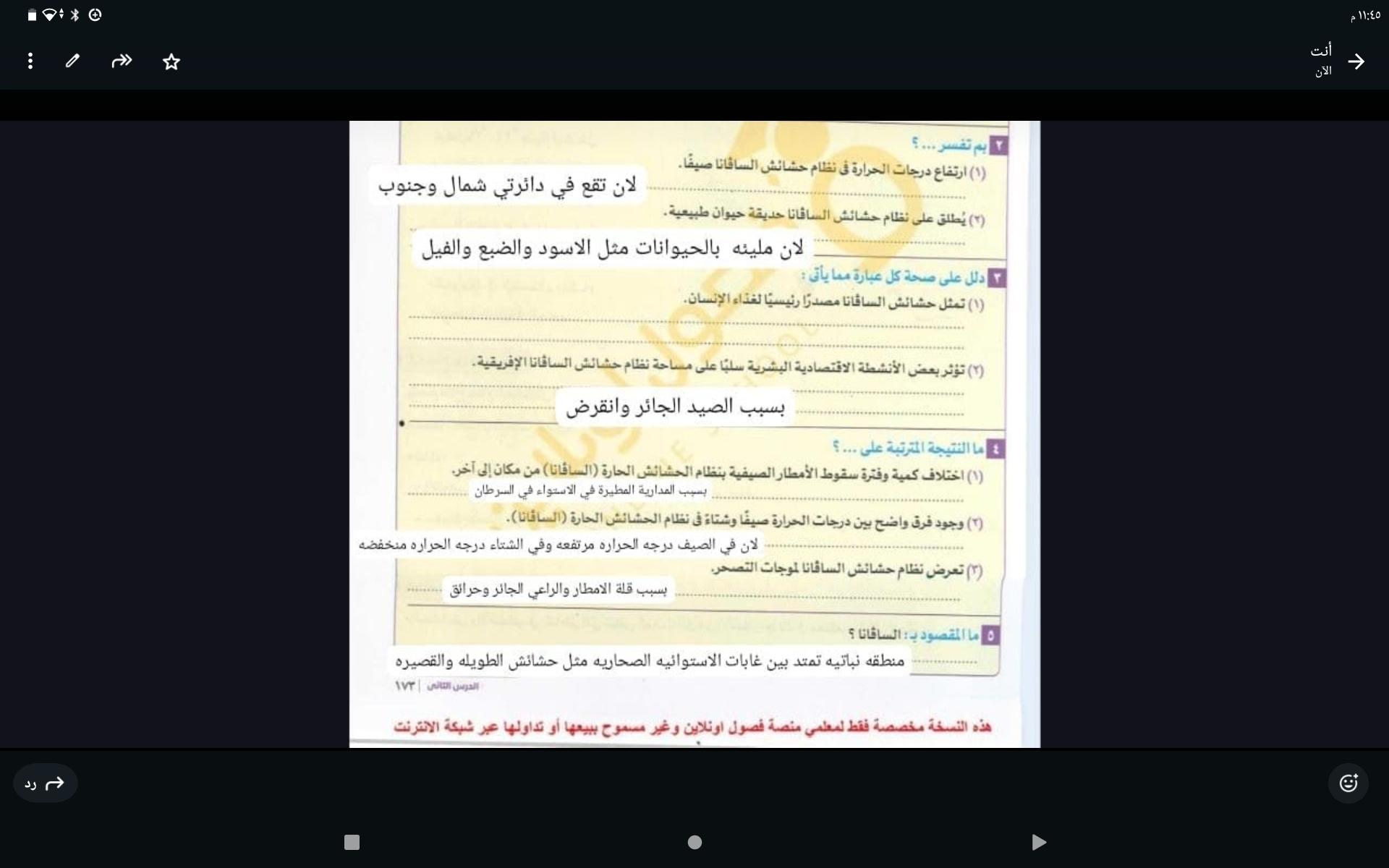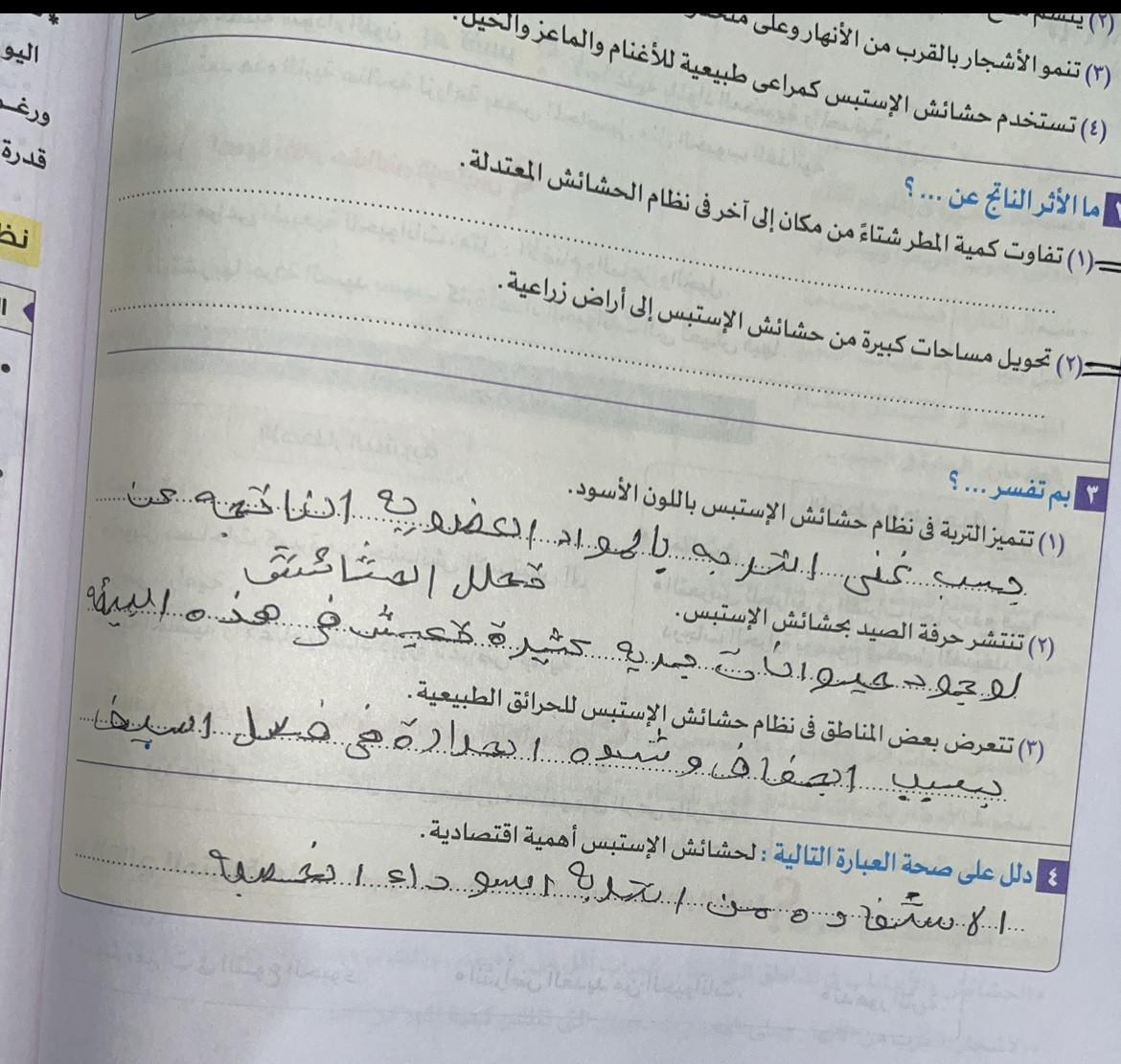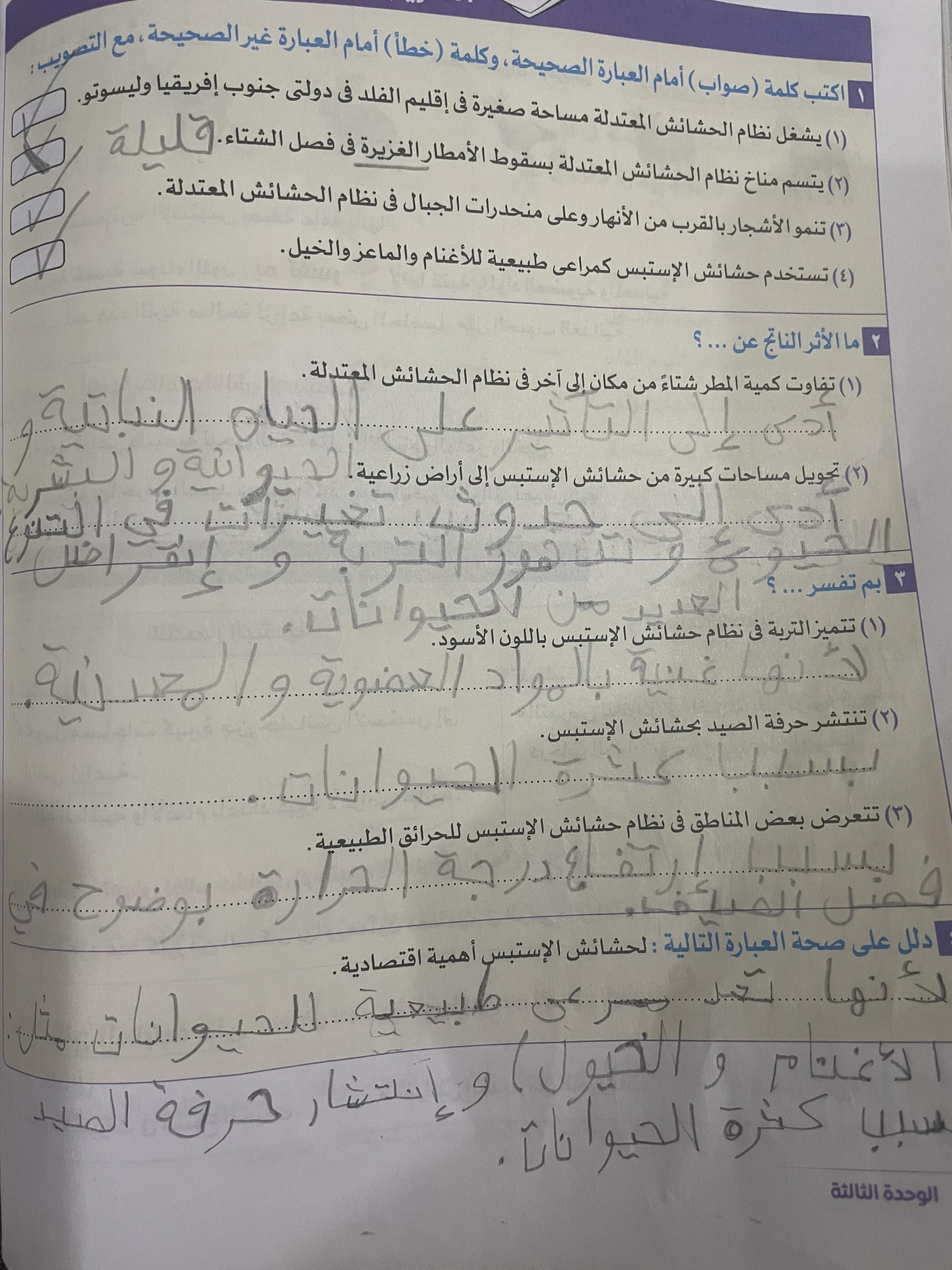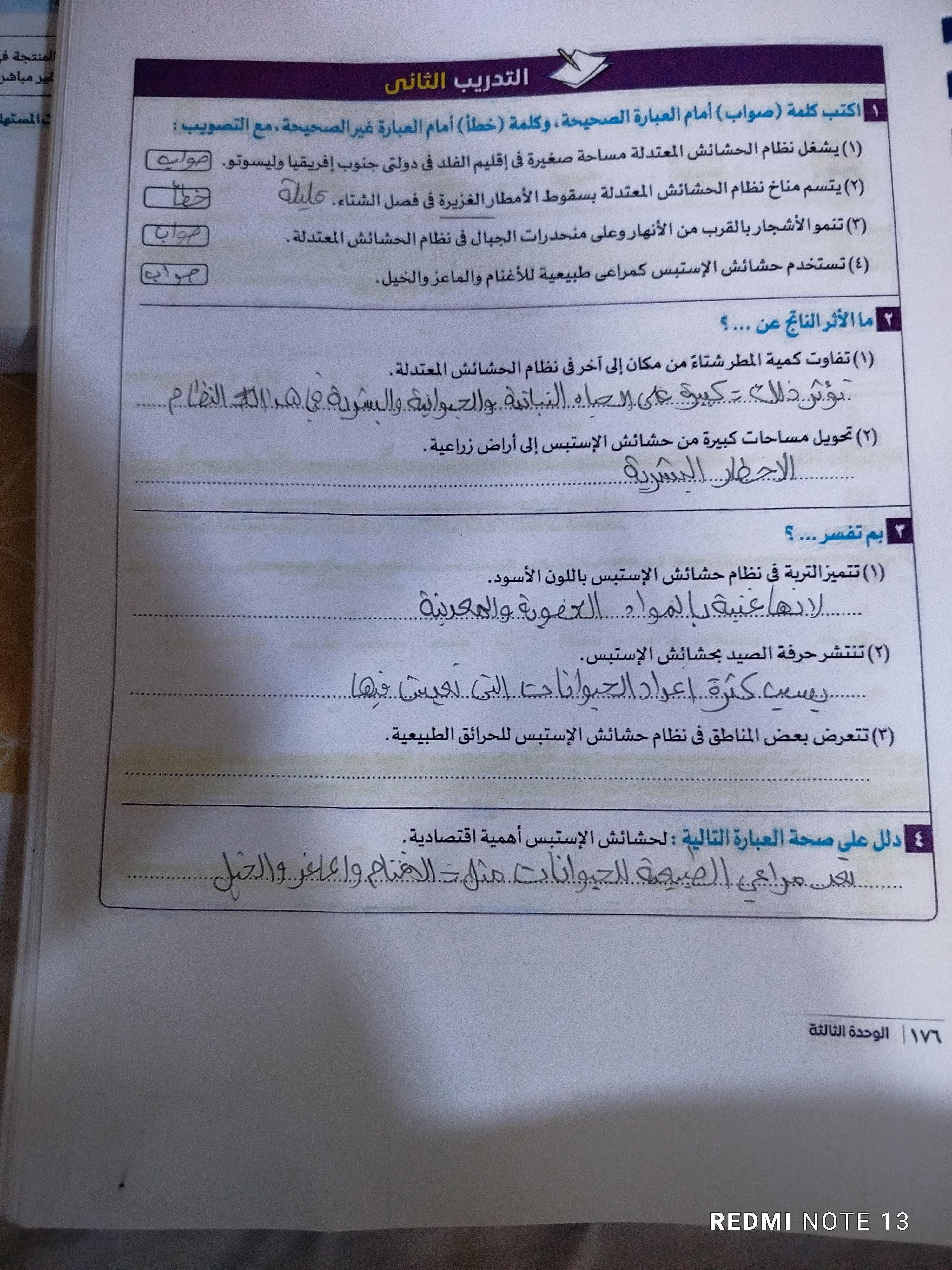 اخدنا الجزء الاول من نظام الحشائش وخدنا حشائش السافانا والواجب تدريب 1 ص 173