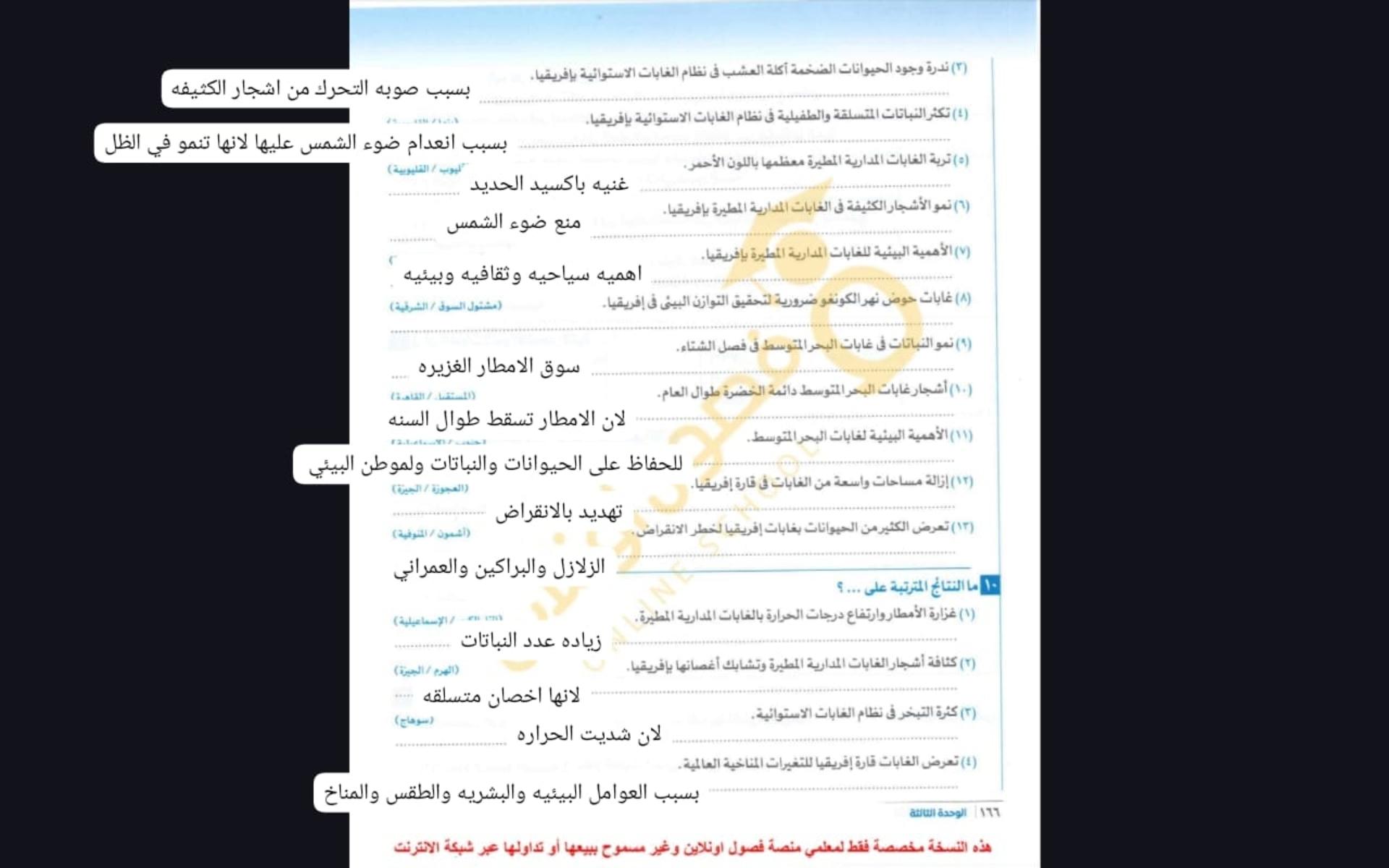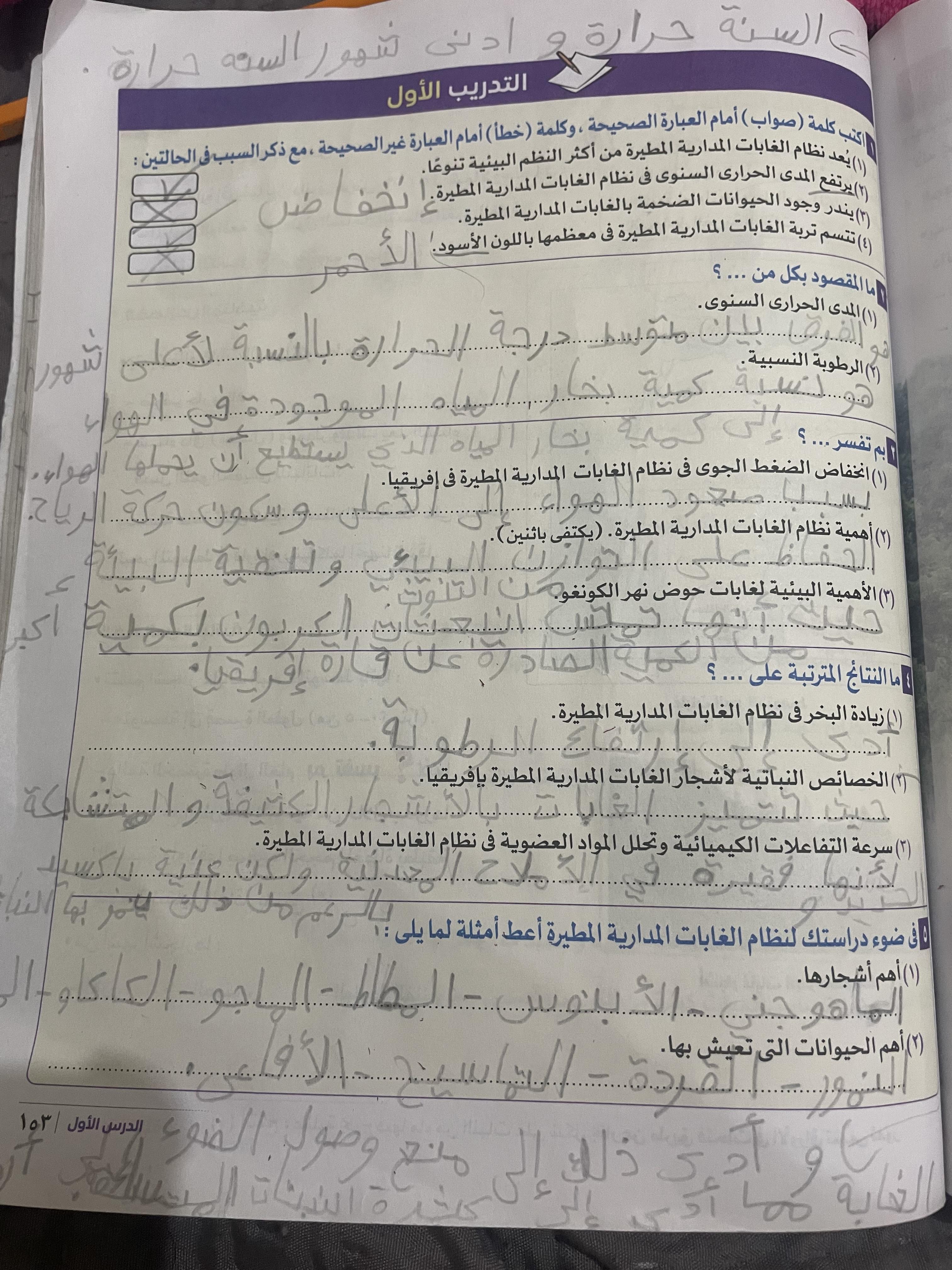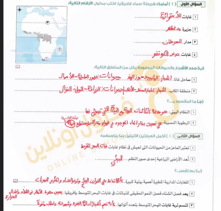 اخدنا الجزء الاول من الغابات المطيره الاستوائيه والواجب تدريب 1 و2 ونكمل الحصه الجايه ان شاء الله