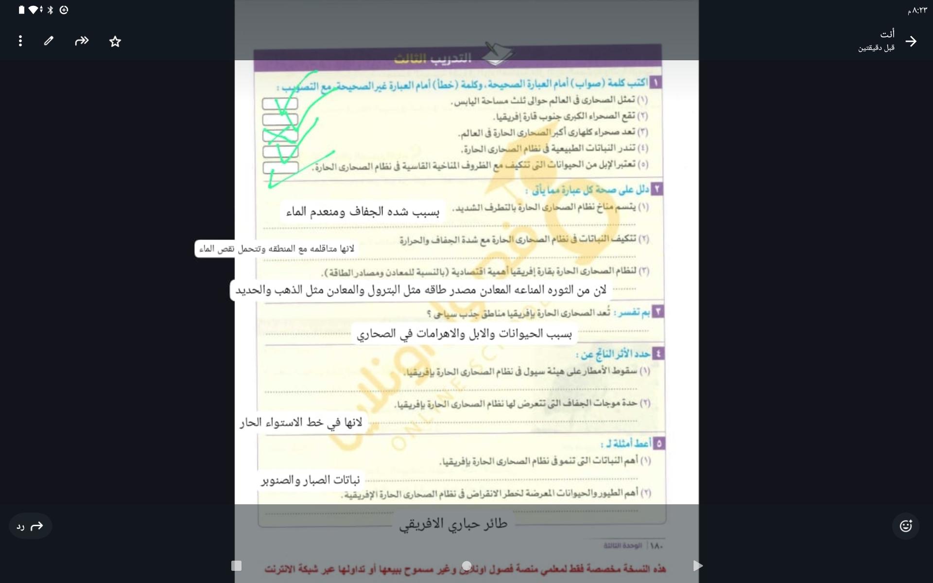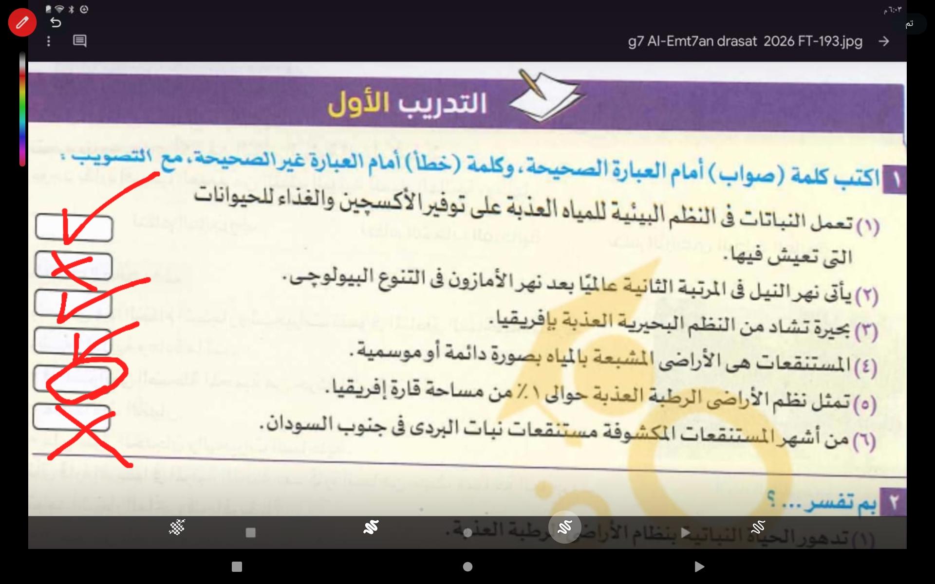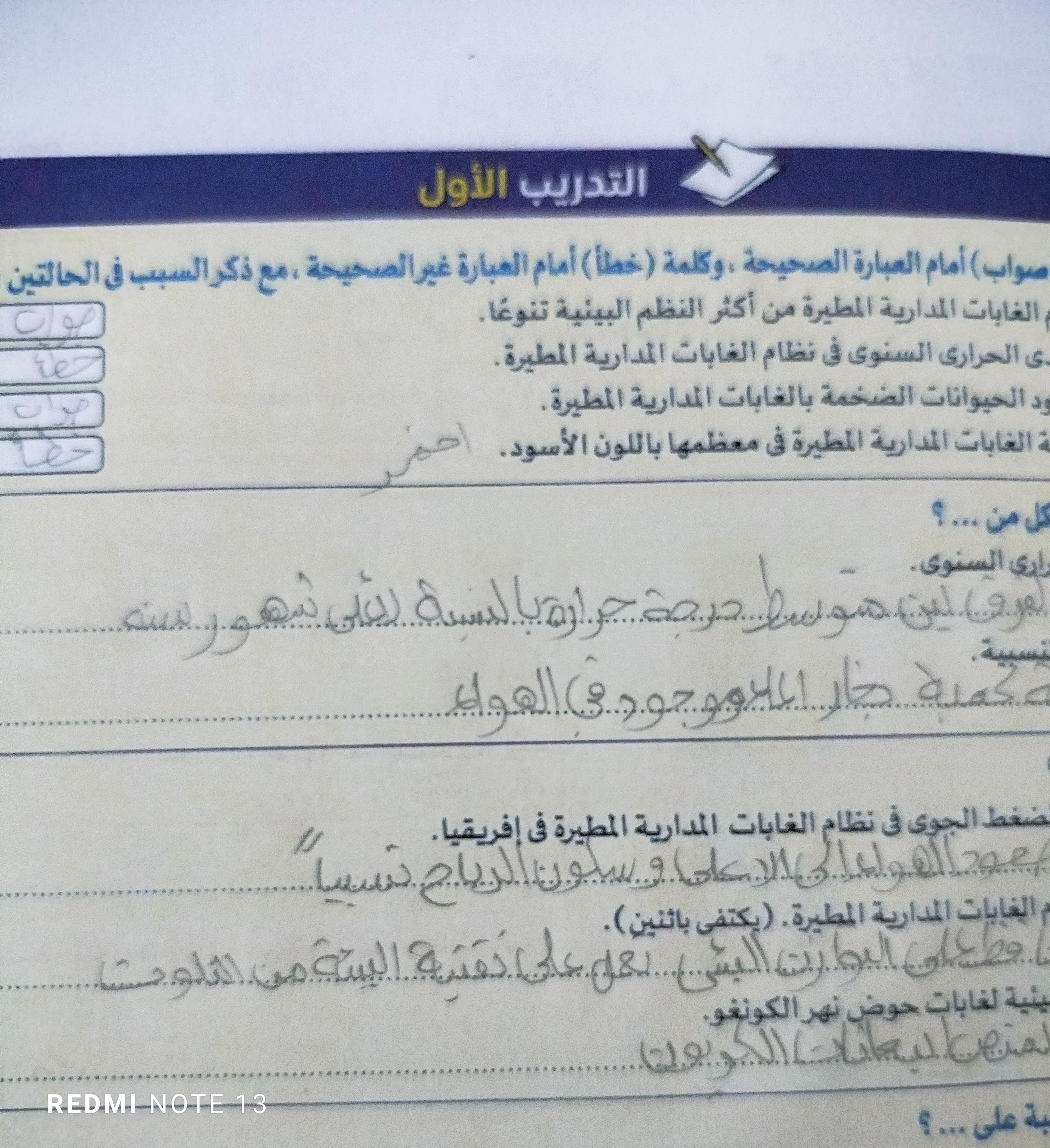 اخدنا الجزء الاول من الغابات المطيره الاستوائيه والواجب تدريب 1 و2 ونكمل الحصه الجايه ان شاء الله