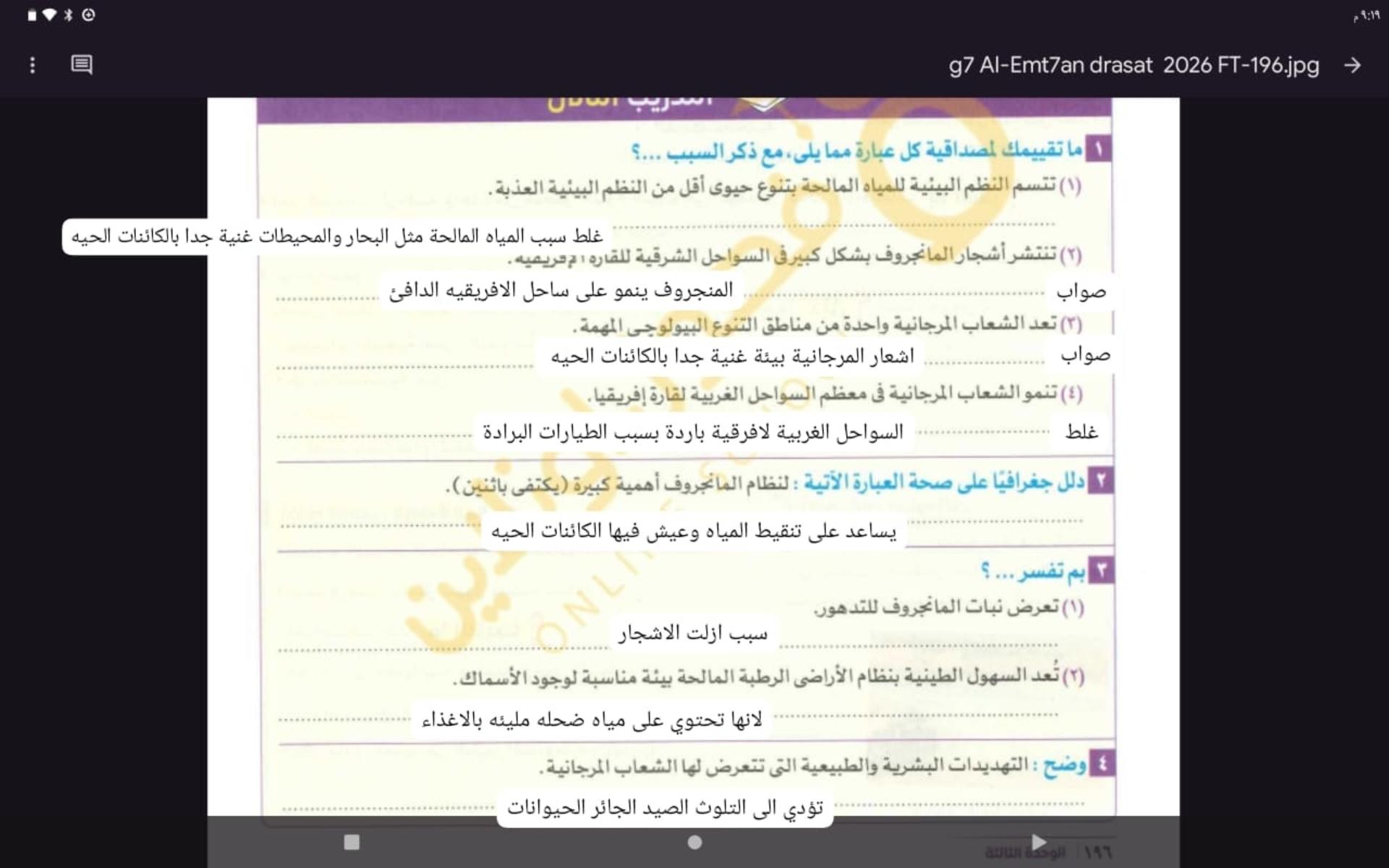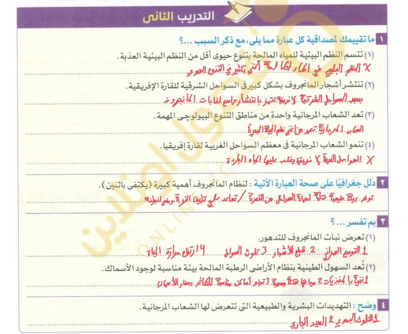 النظم المائيه المالحه اخدناها انهرده والواجب تدريب 2 ص 196