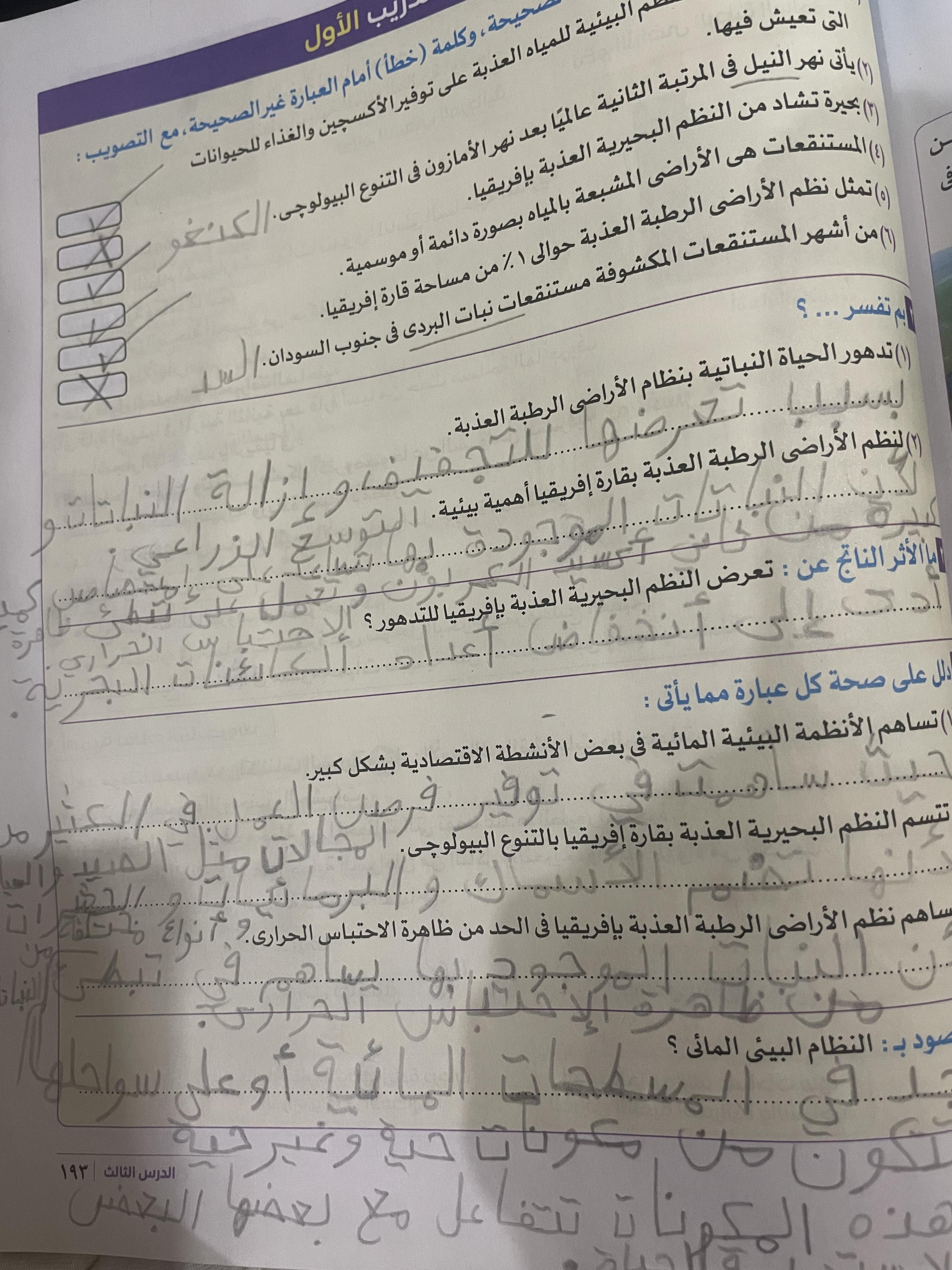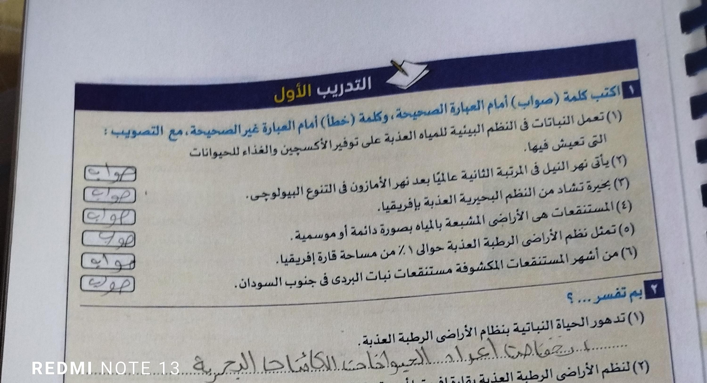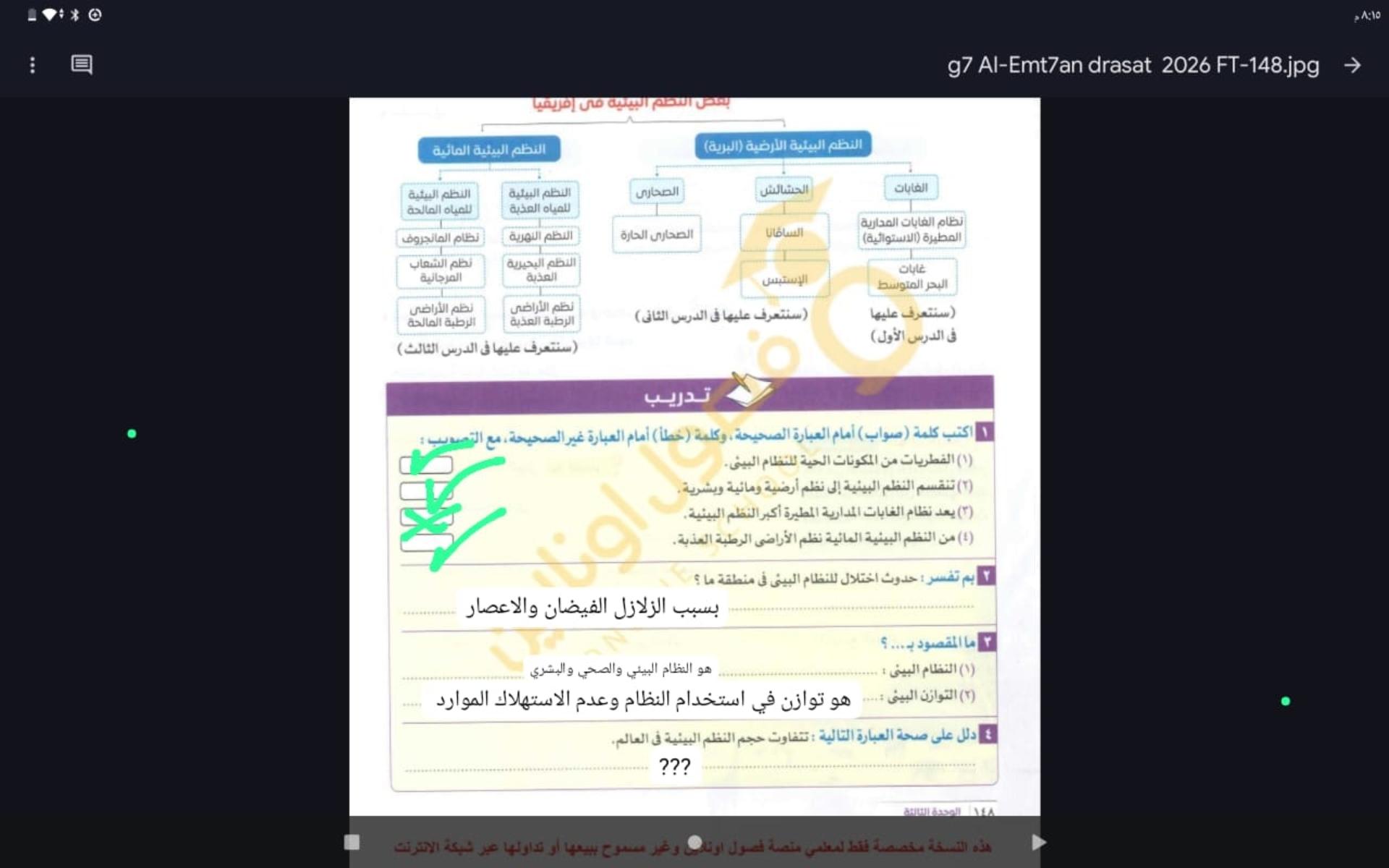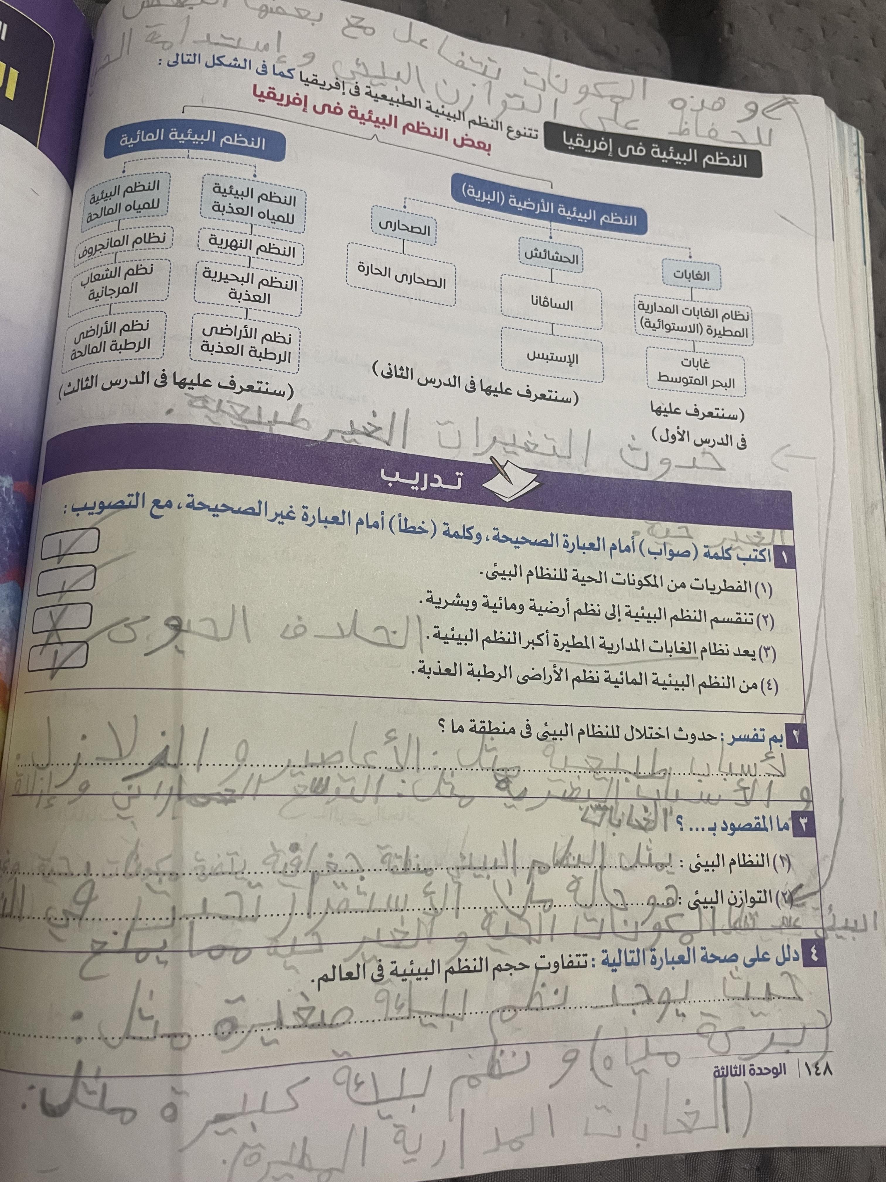 خلصنا انهرده النظم البيئيه وتدريب 2 والواجب تدريبات الدرس اول تلات صفحات