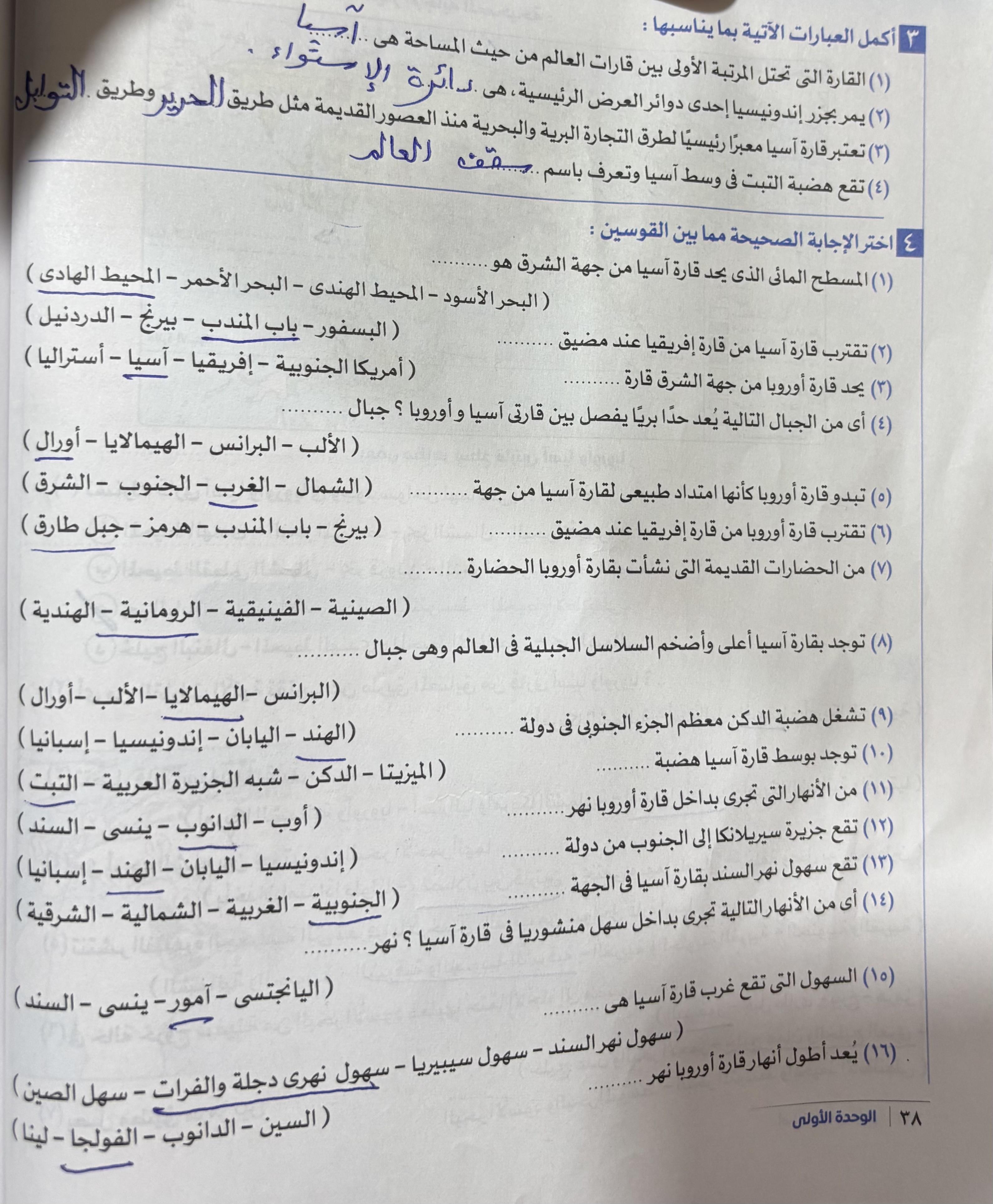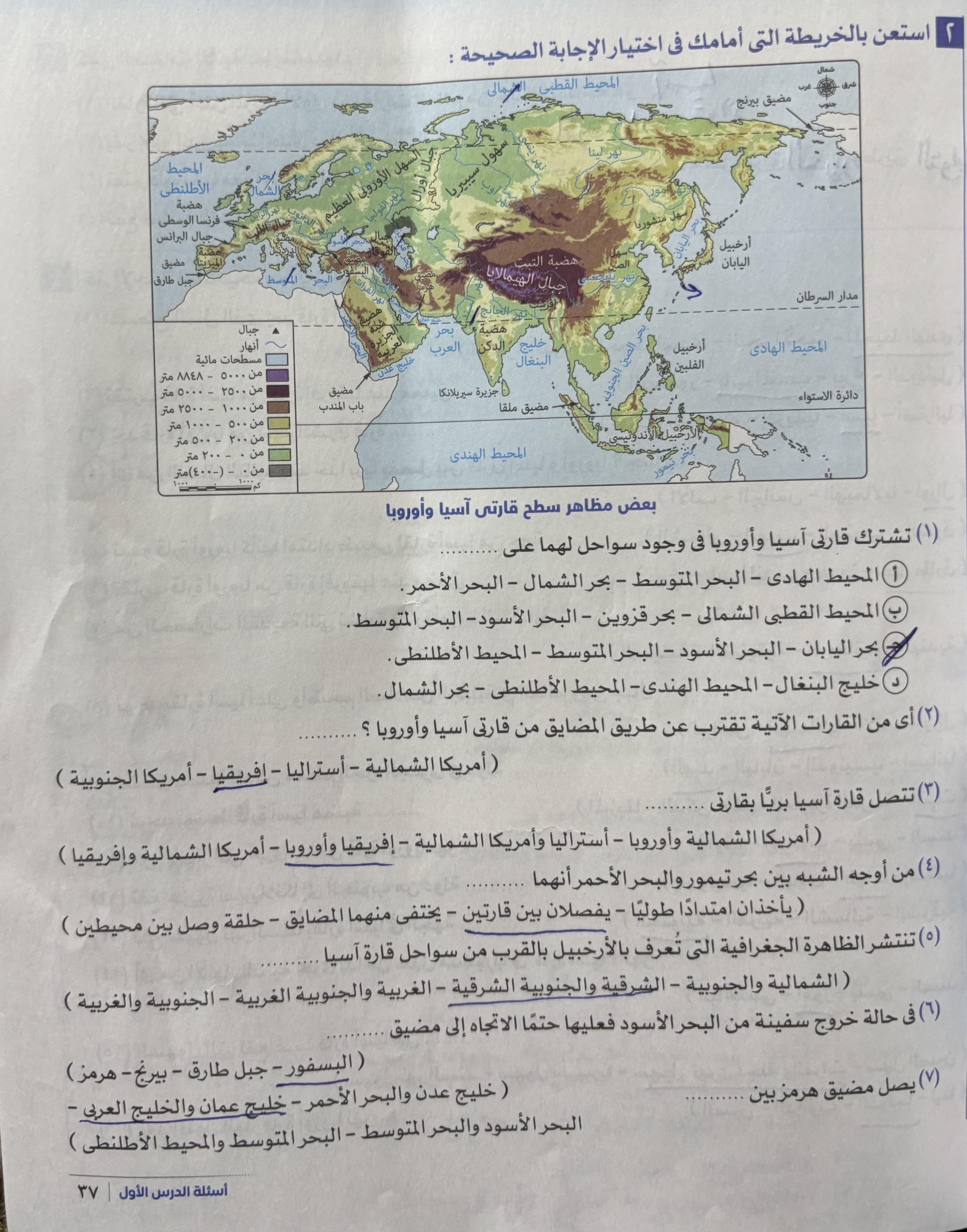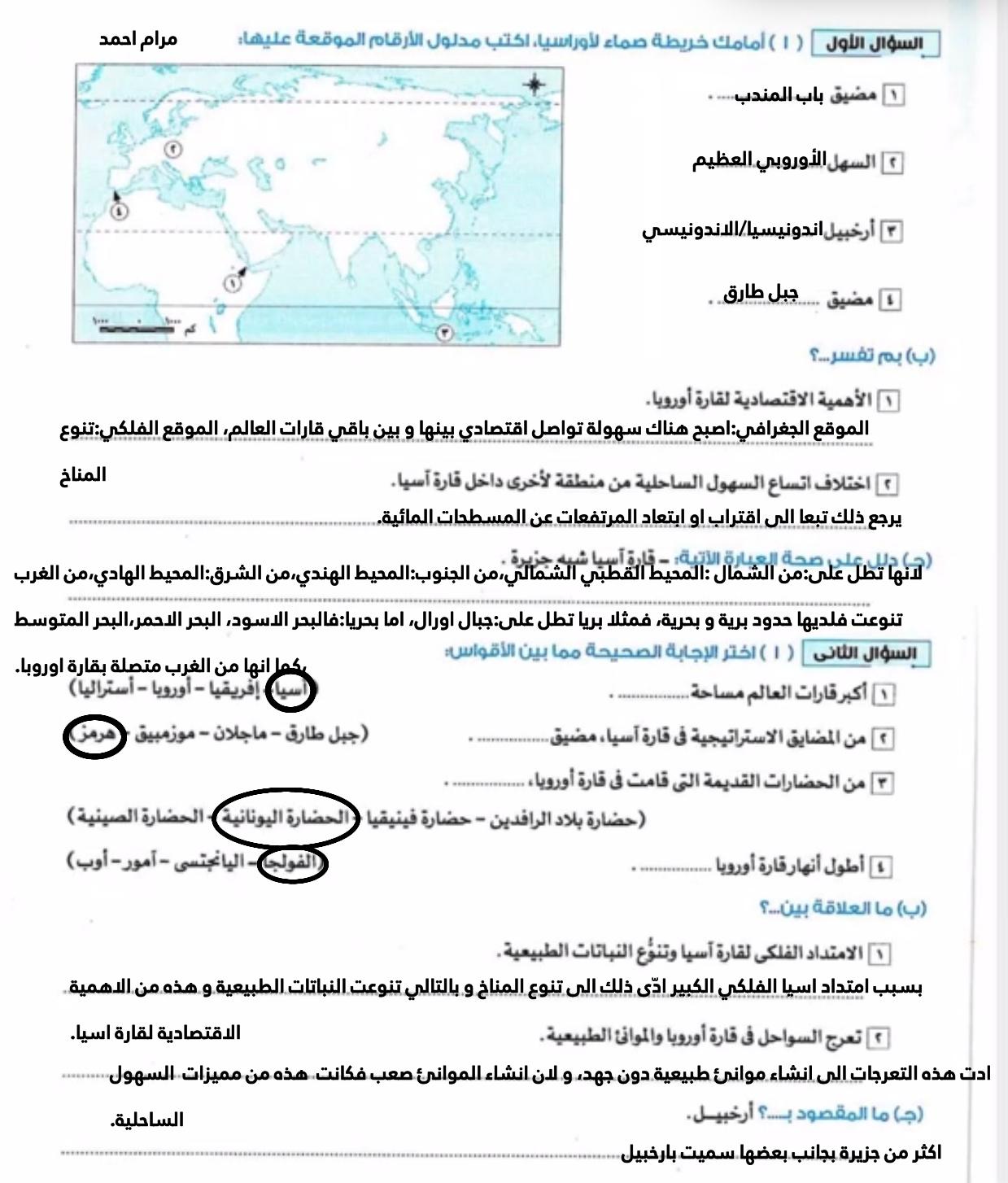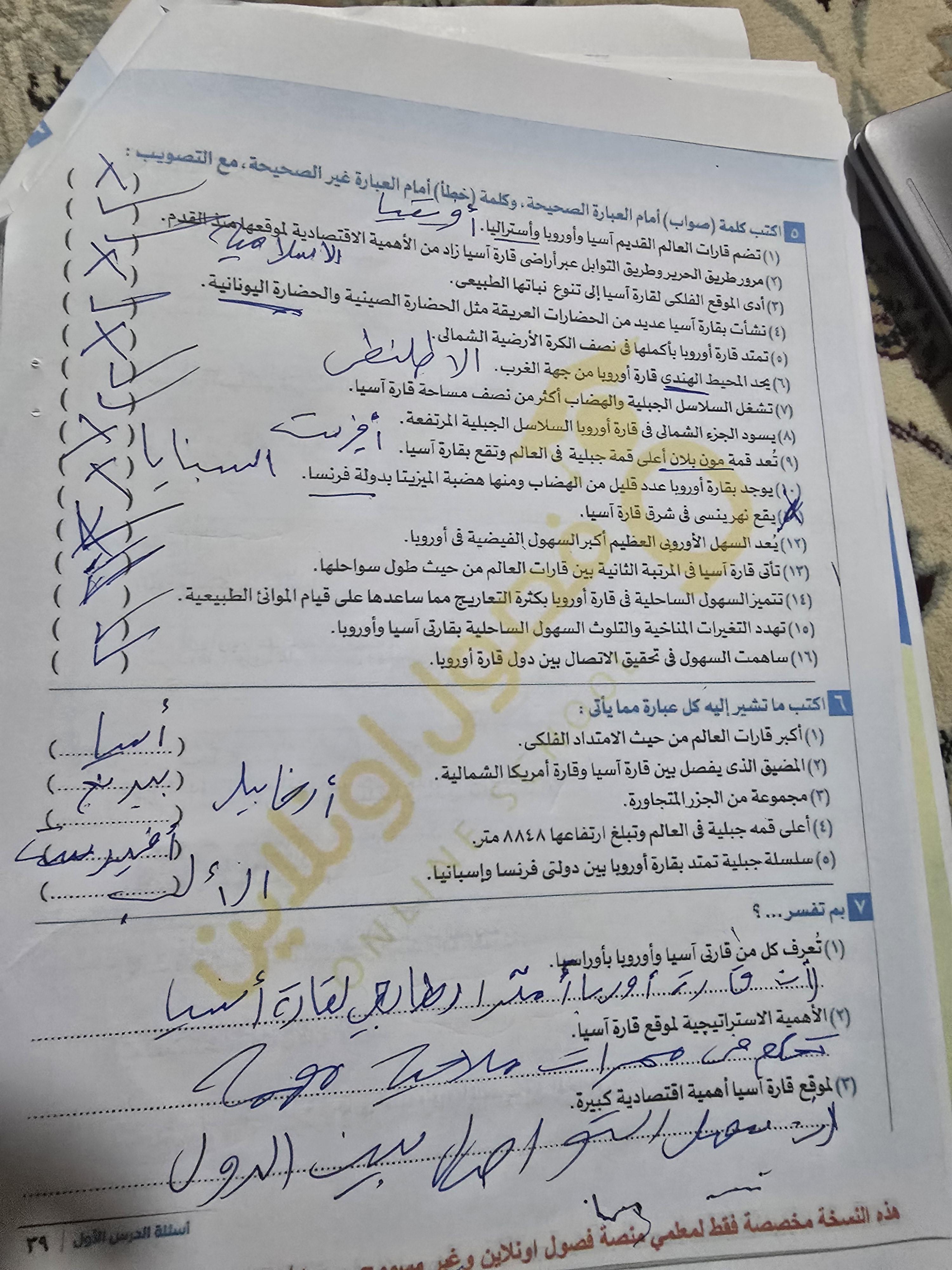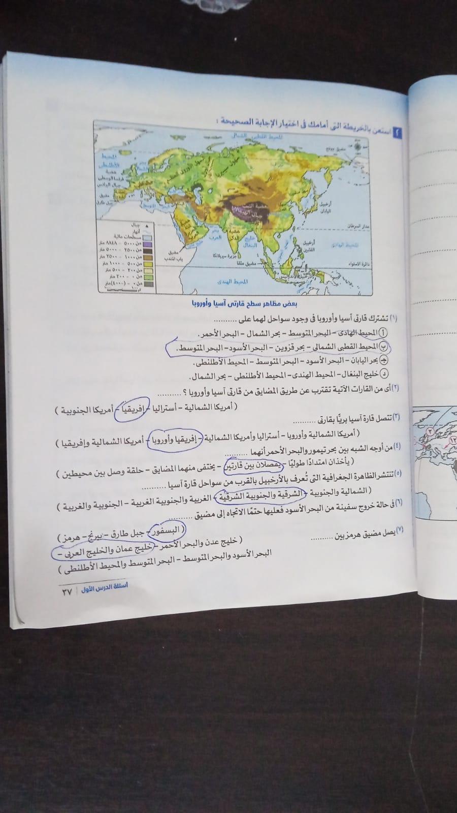 اخدنا اليوم مظاهر سطح اسيا واوربا والواجب التدريب الثالث ص 31 وتدريبات كتاب الامتحان اول تلات صفحات
