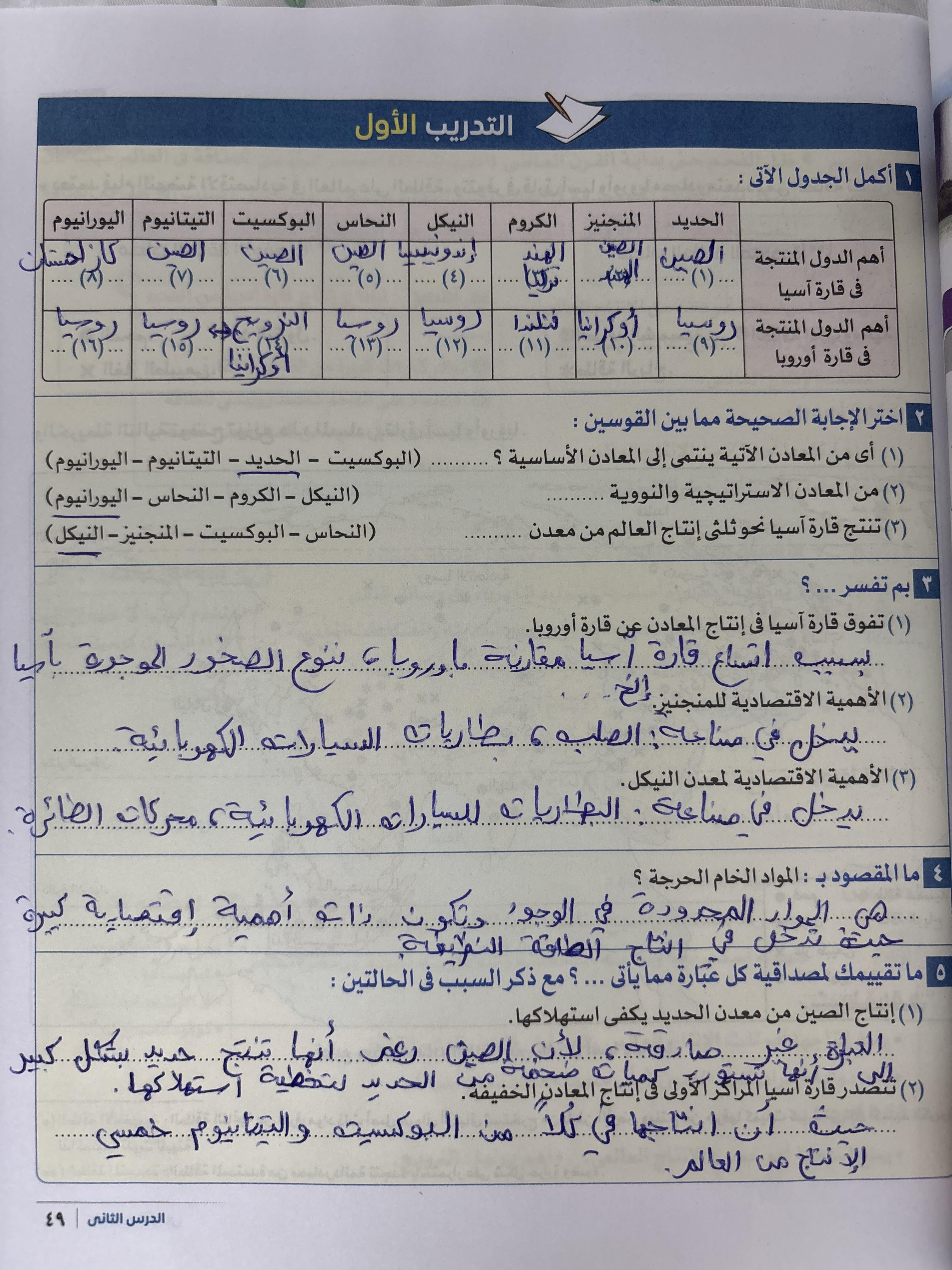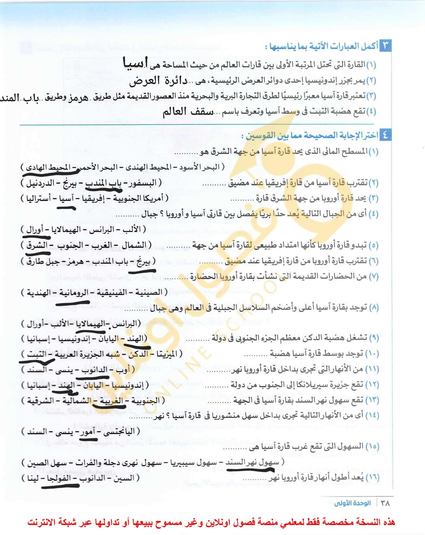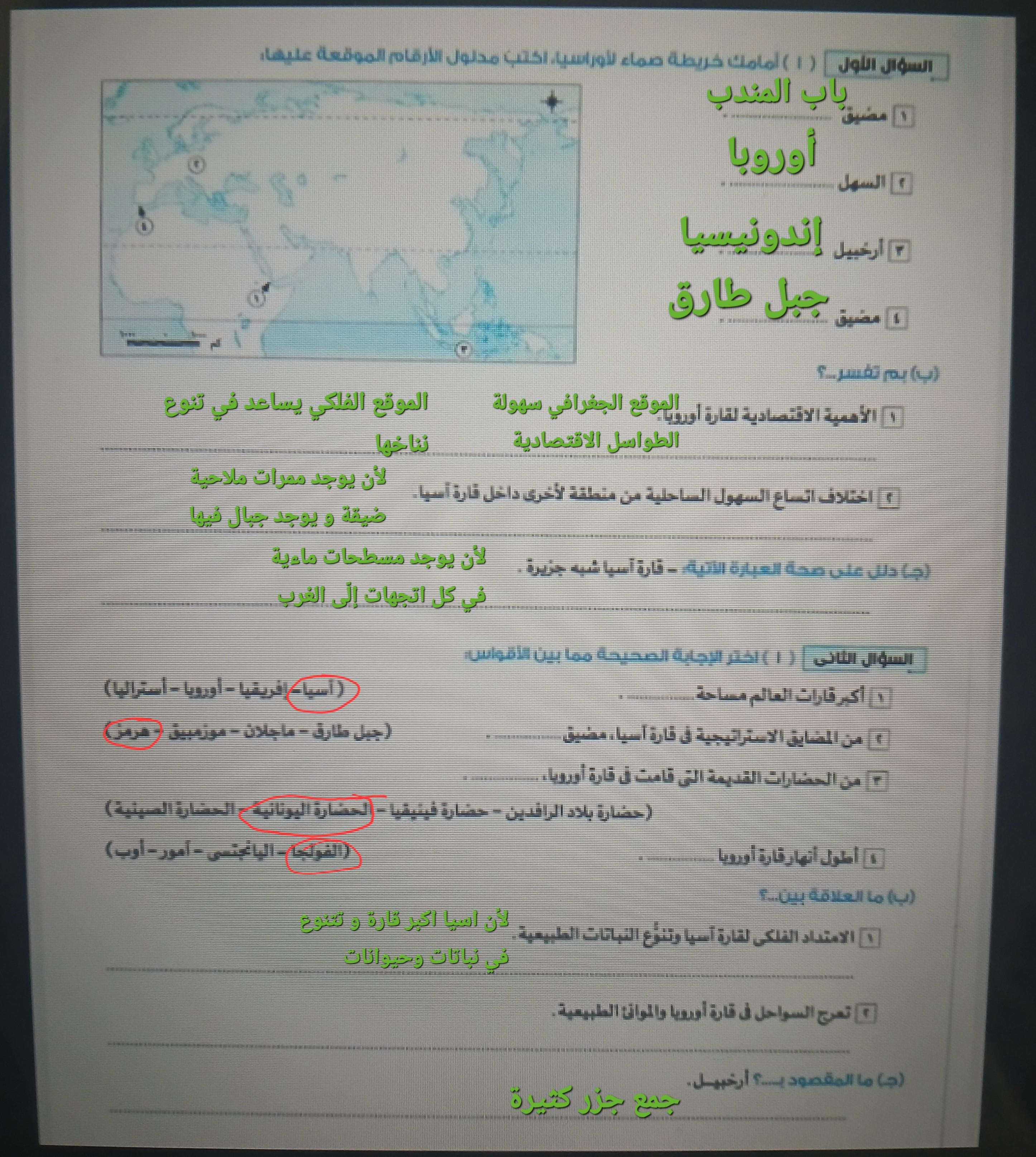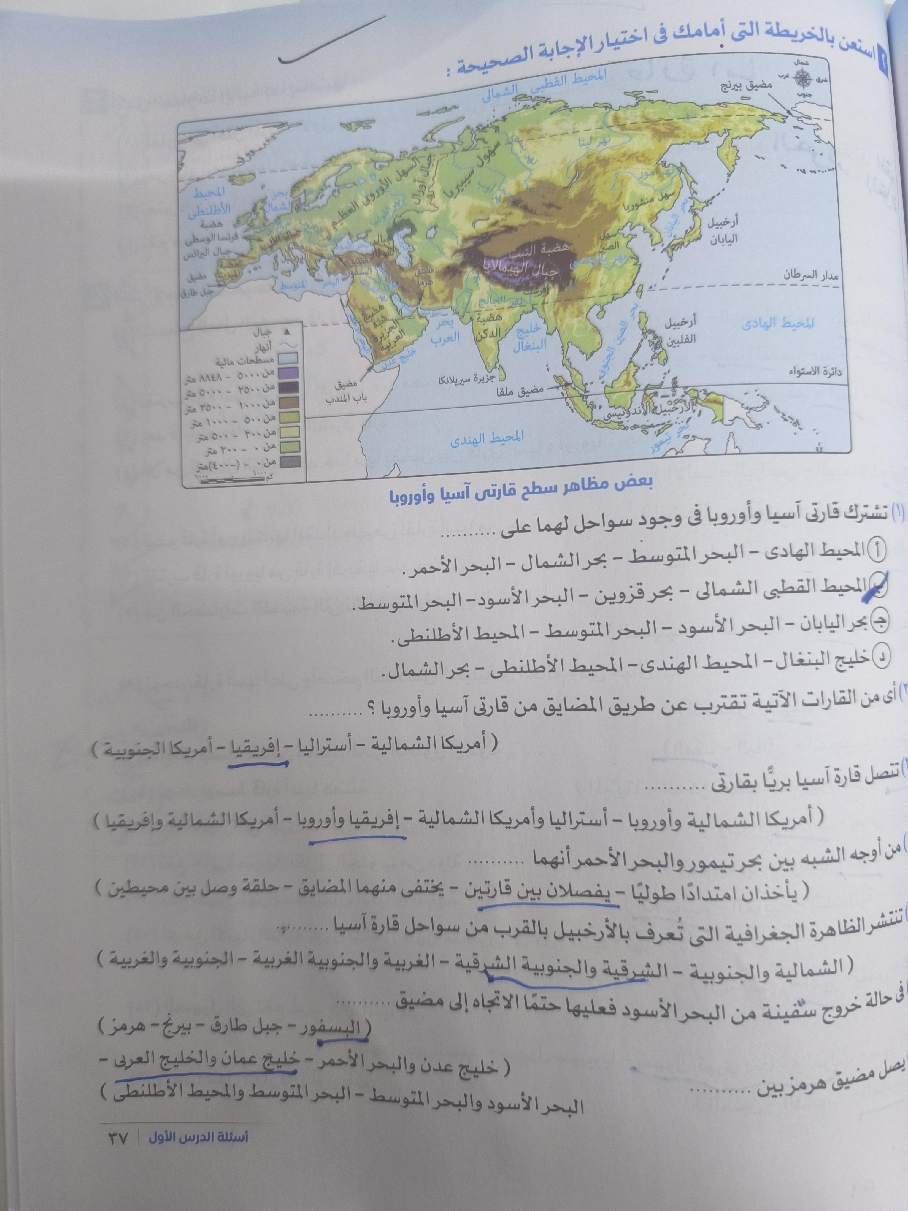 اخدنا اليوم مظاهر سطح اسيا واوربا والواجب التدريب الثالث ص 31 وتدريبات كتاب الامتحان اول تلات صفحات