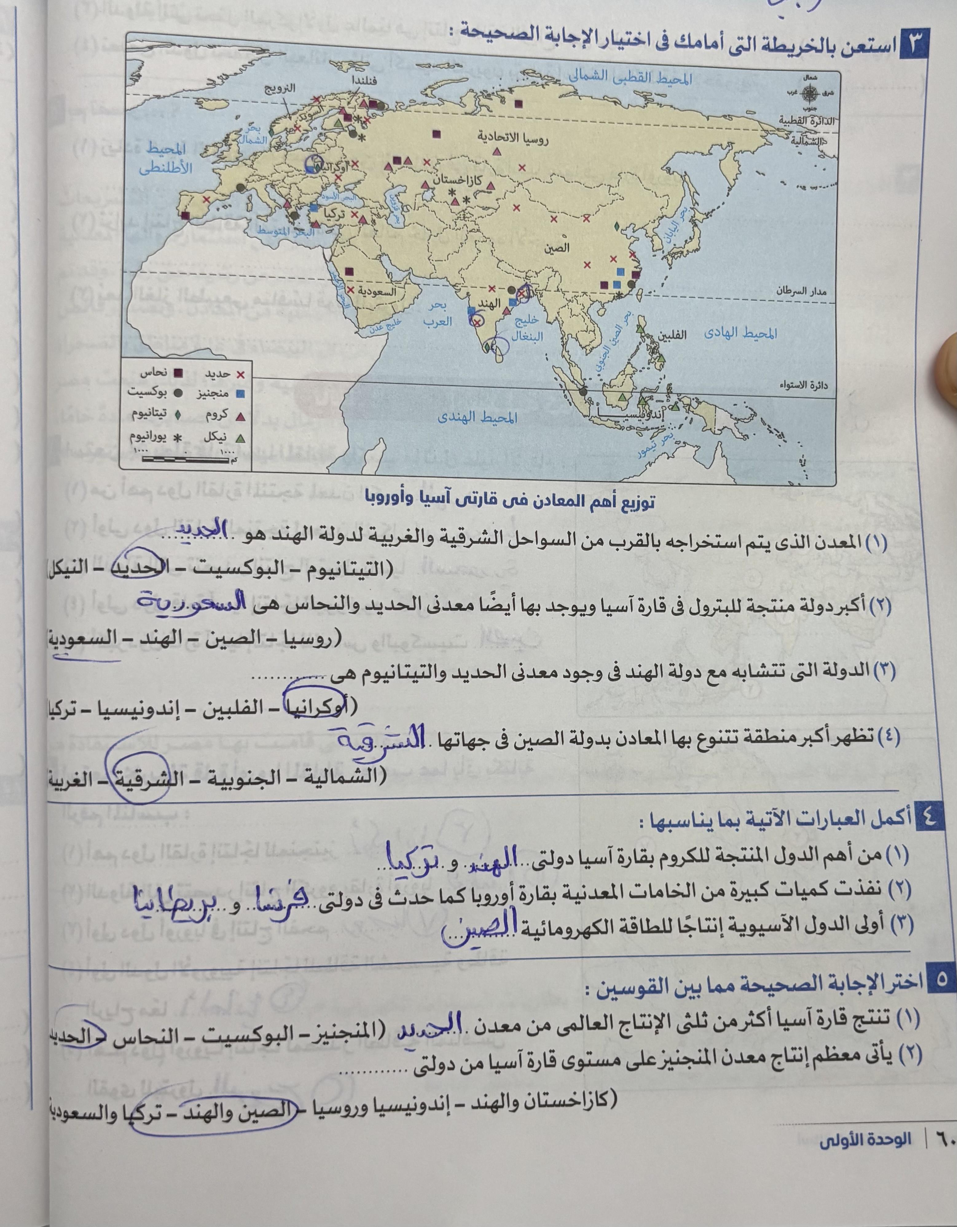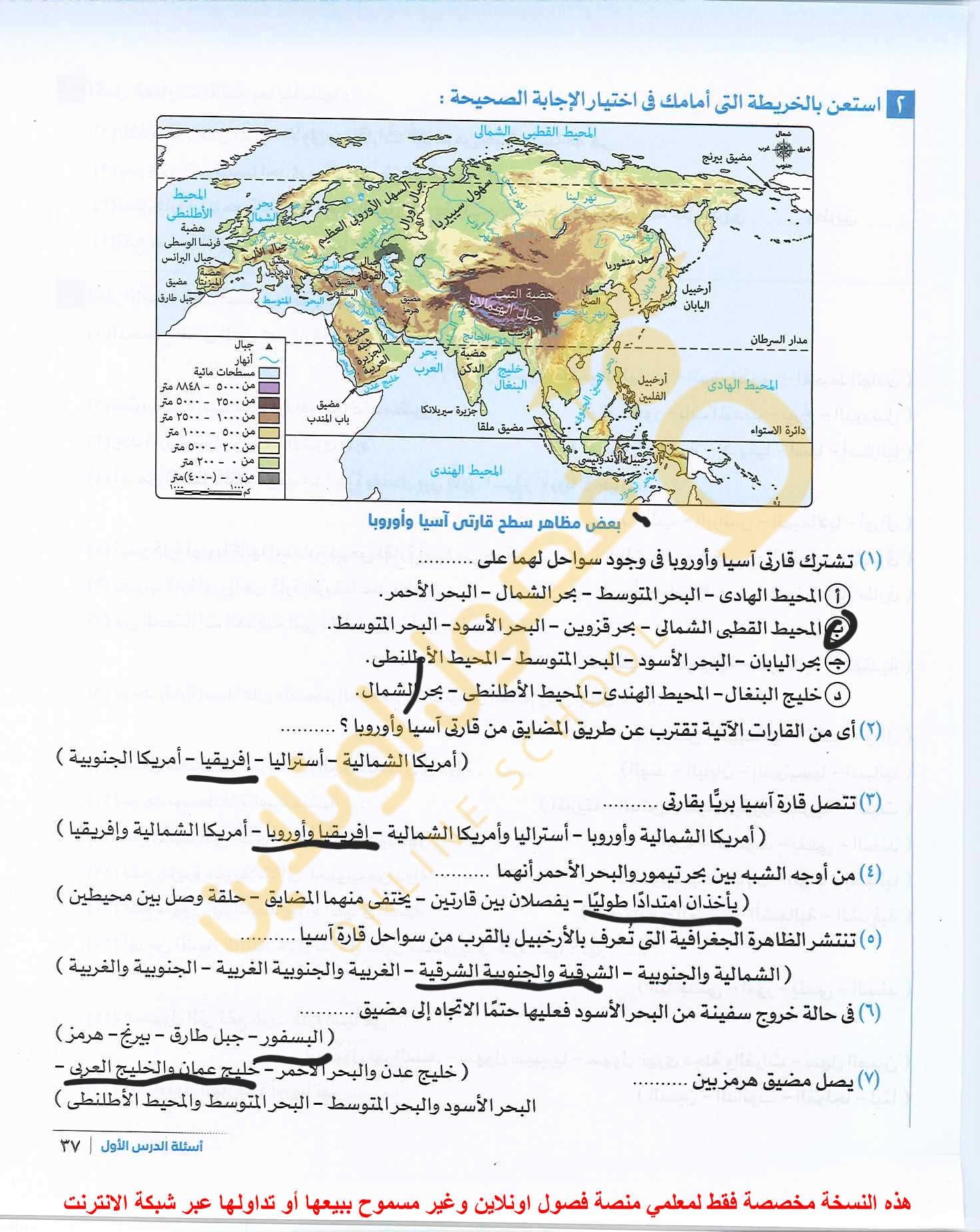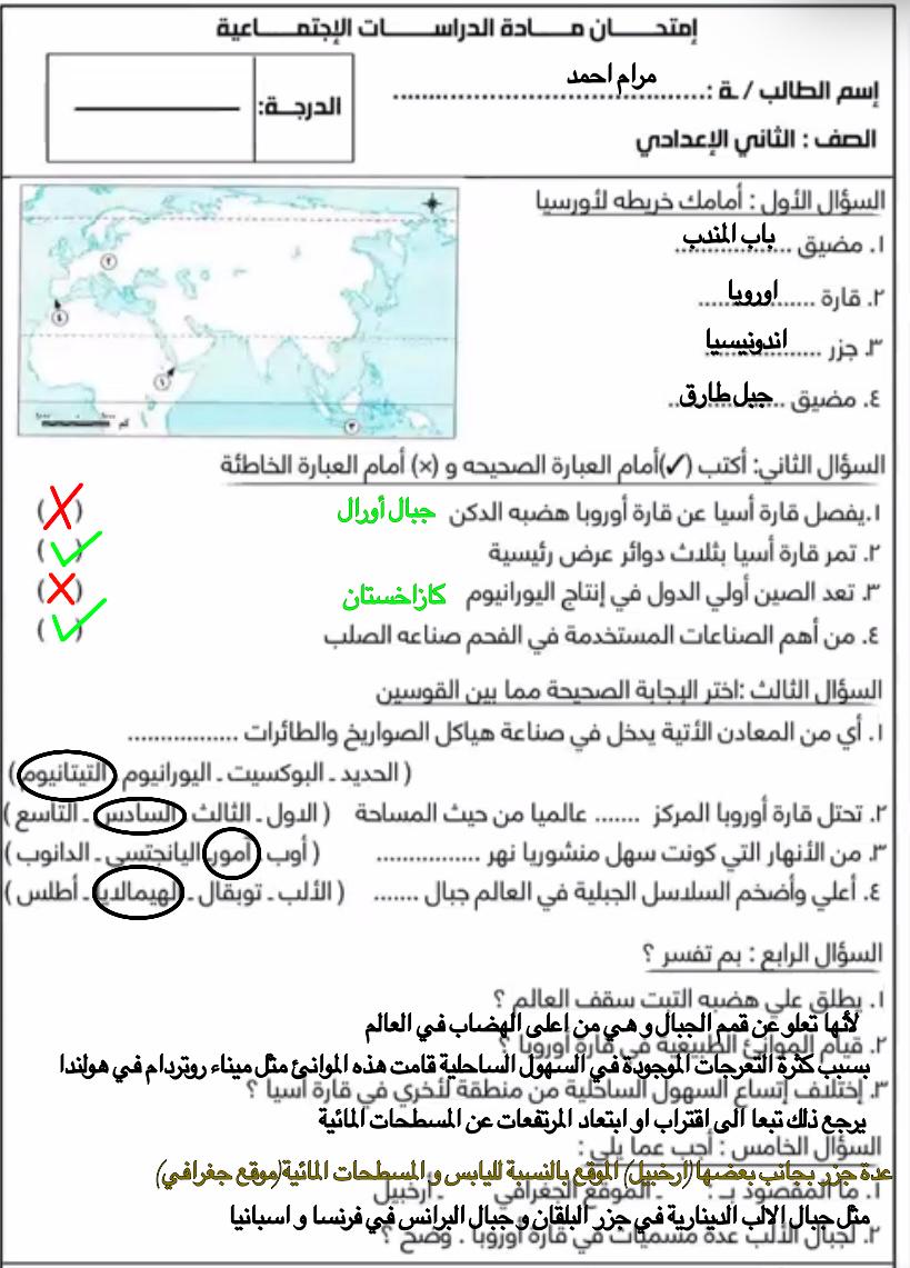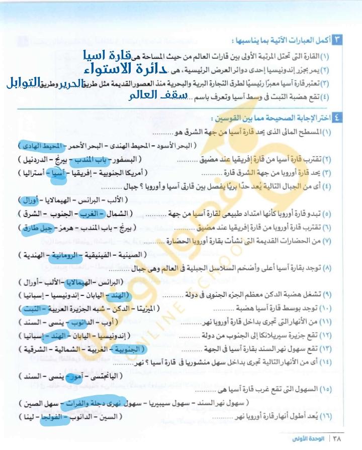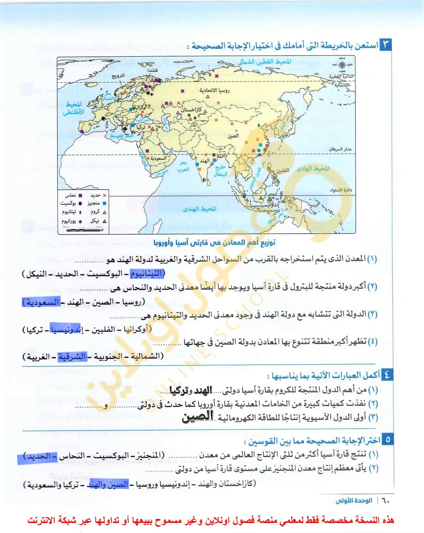 اخدنا اليوم مظاهر سطح اسيا واوربا والواجب التدريب الثالث ص 31 وتدريبات كتاب الامتحان اول تلات صفحات