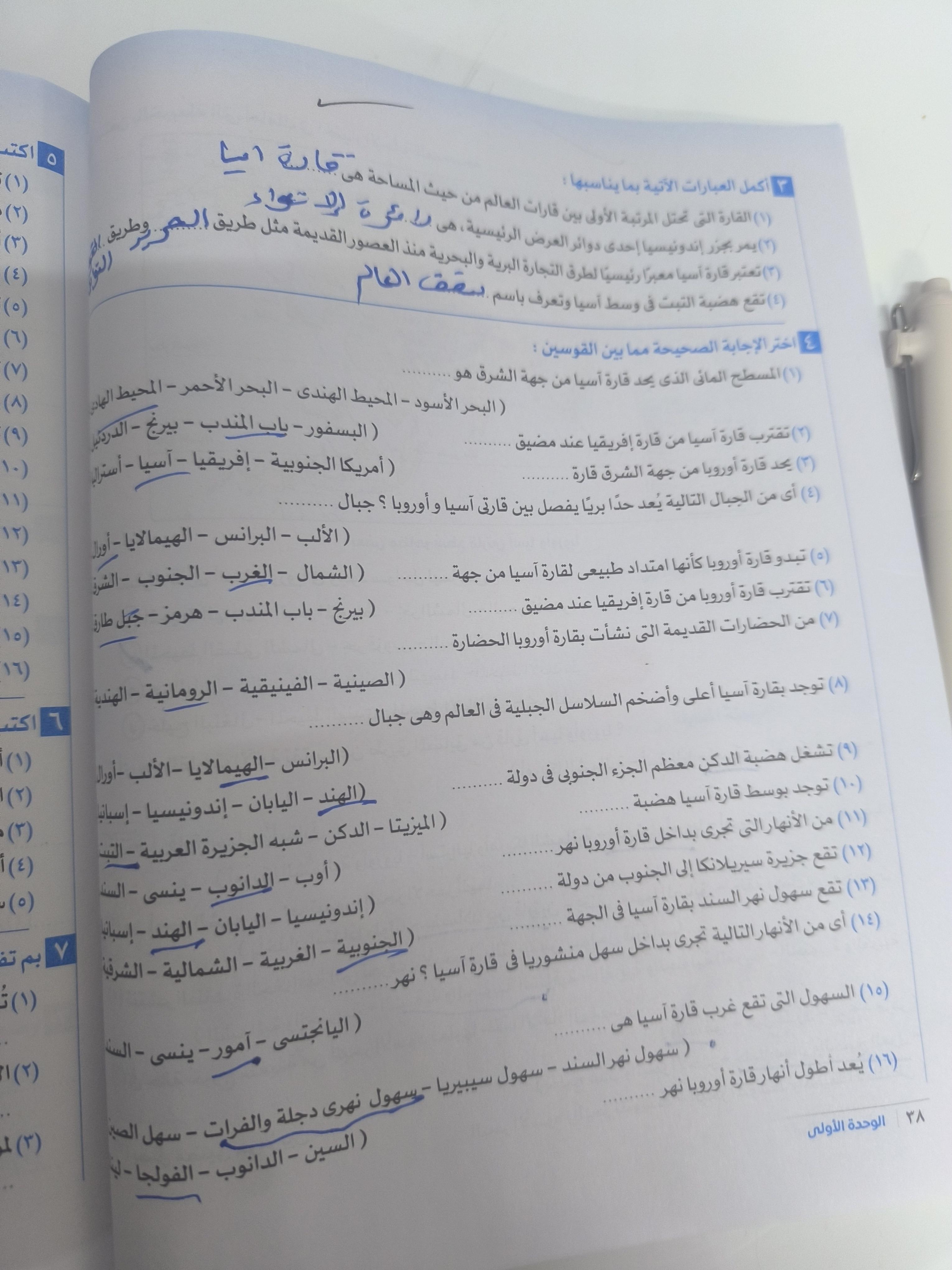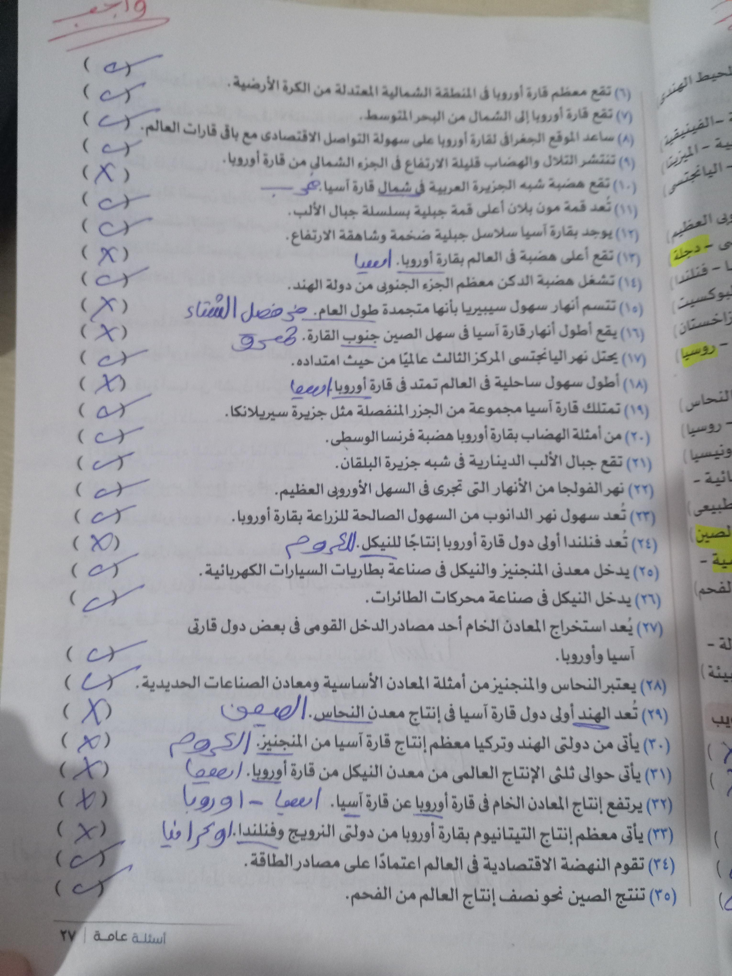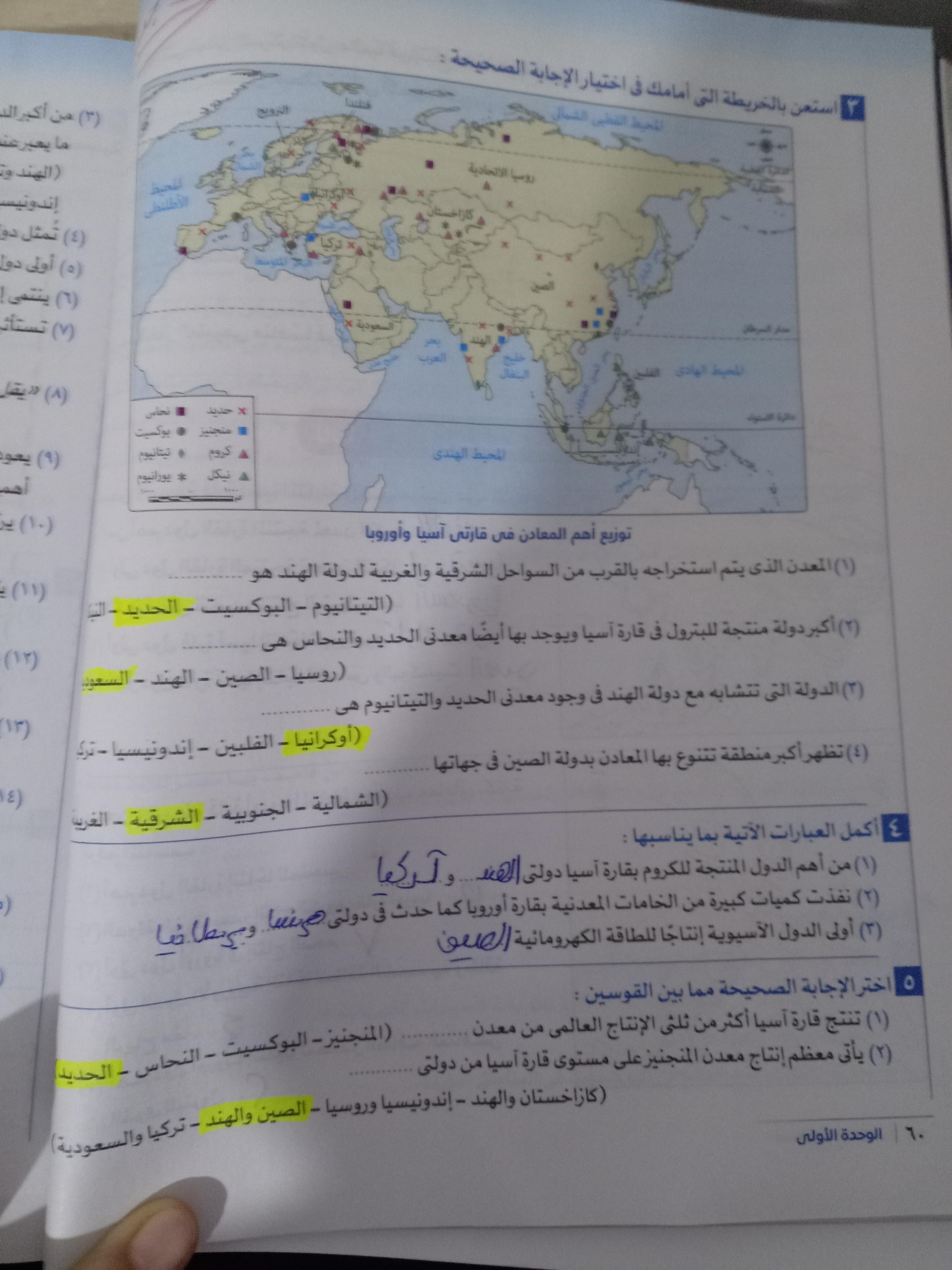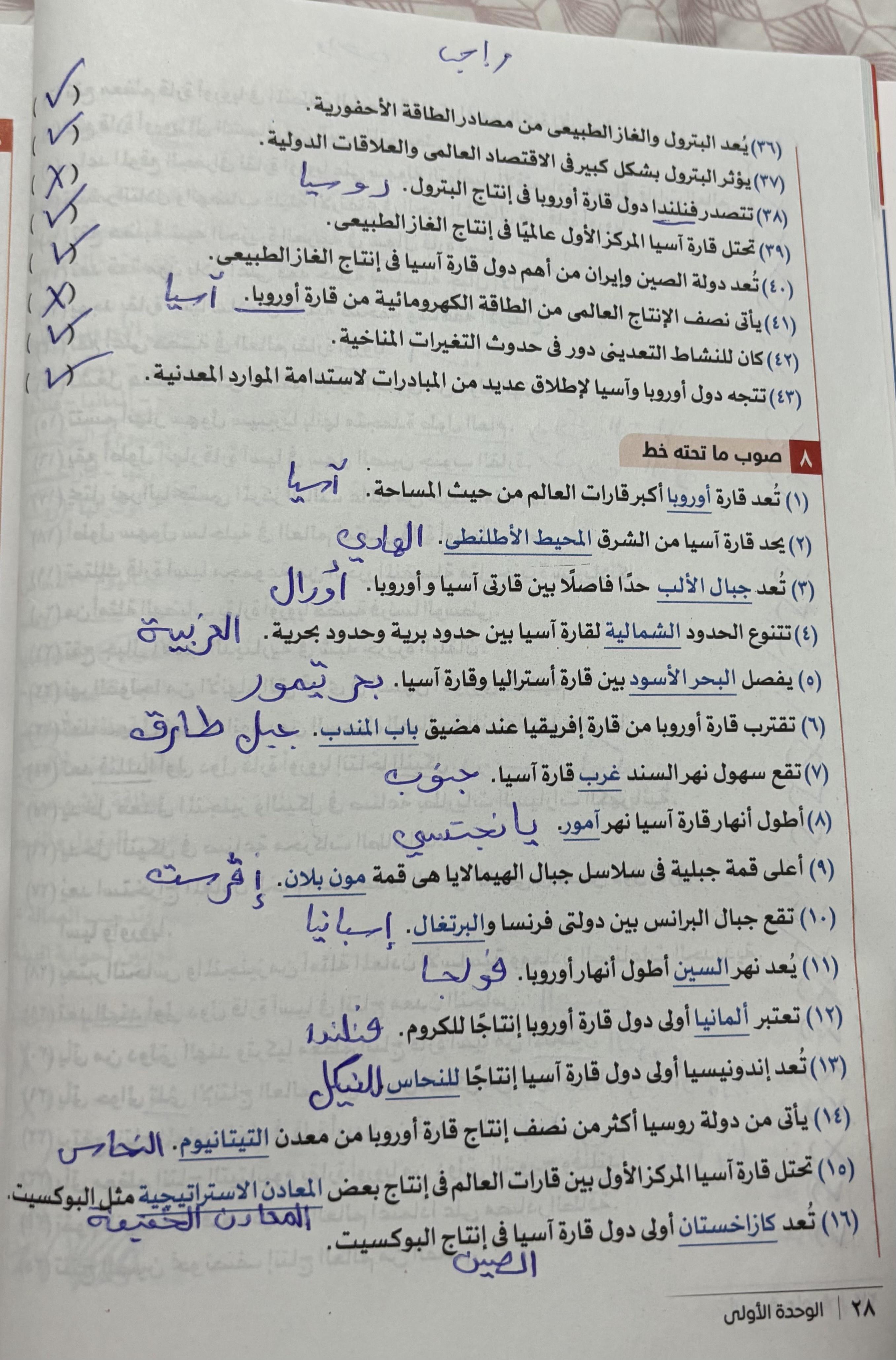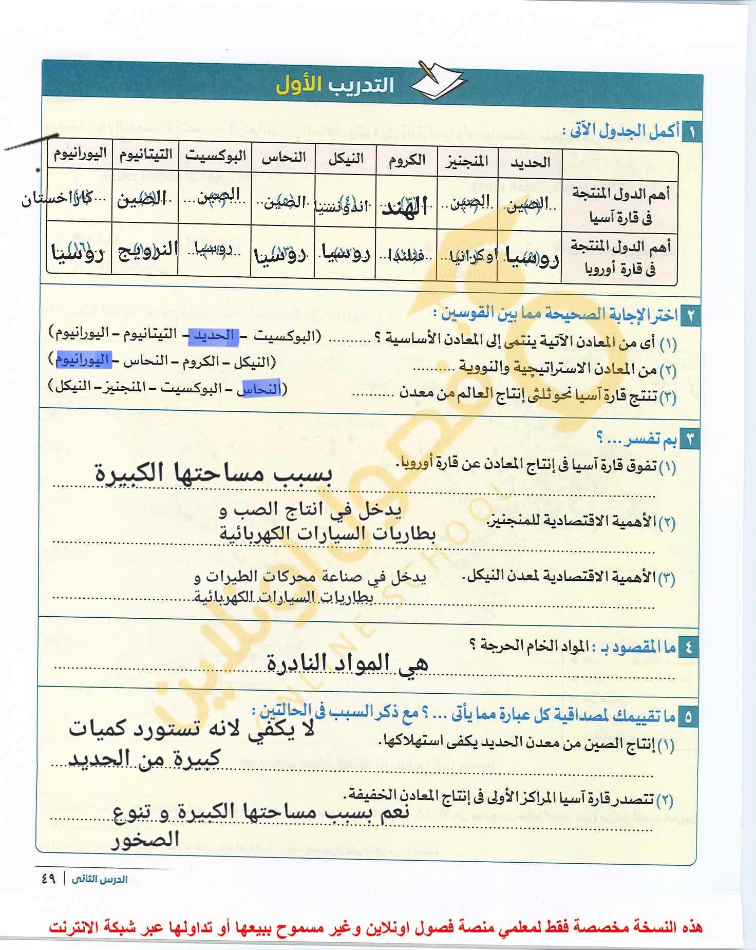 اخدنا اليوم مظاهر سطح اسيا واوربا والواجب التدريب الثالث ص 31 وتدريبات كتاب الامتحان اول تلات صفحات