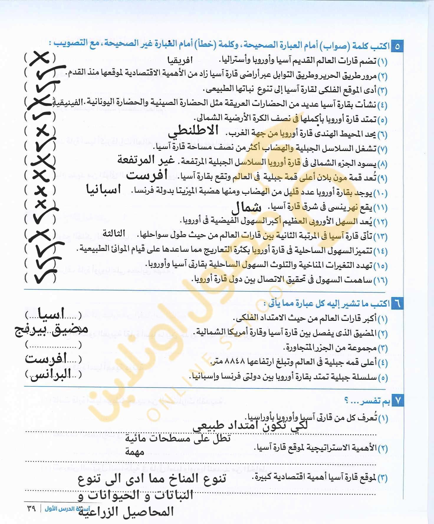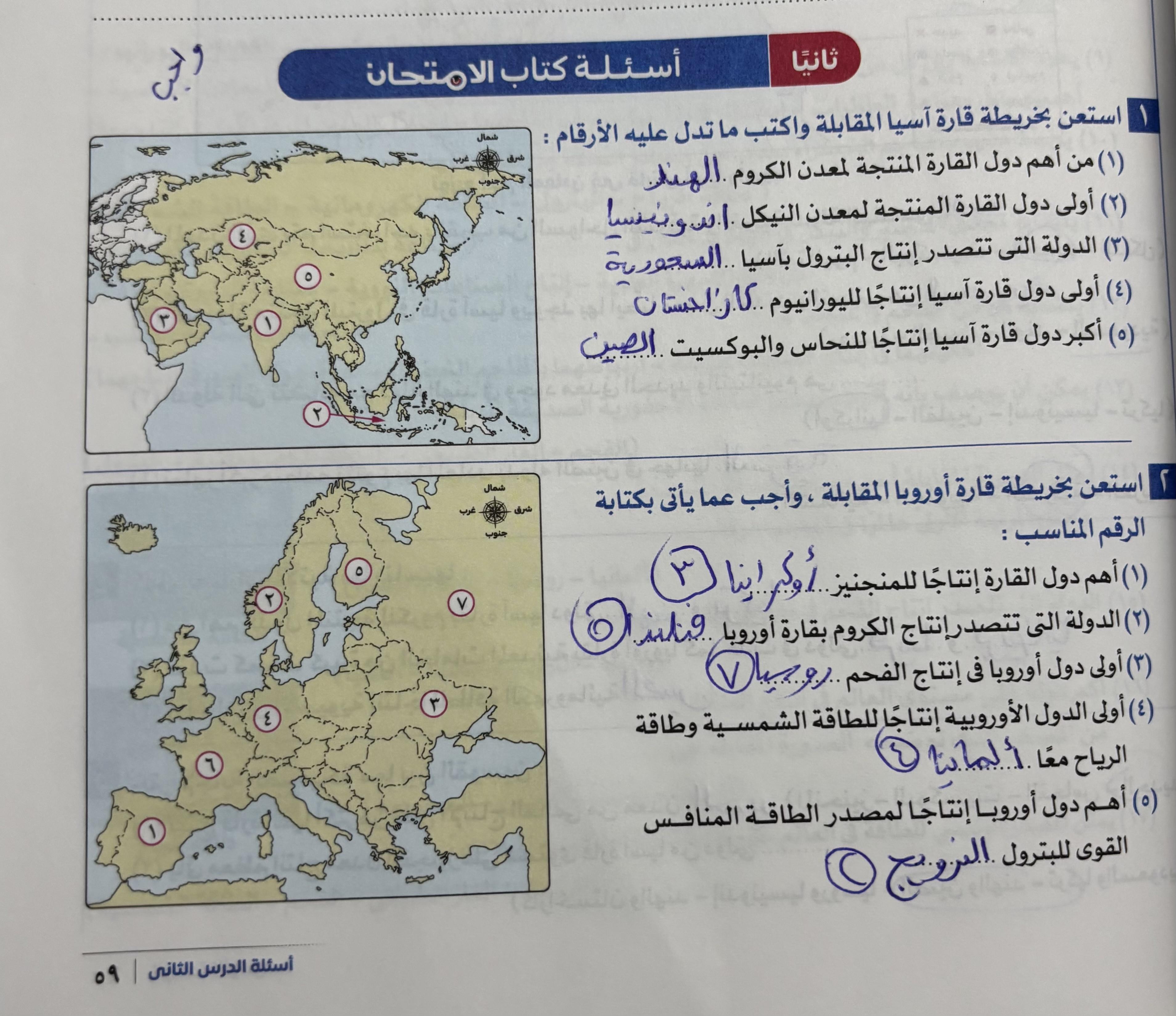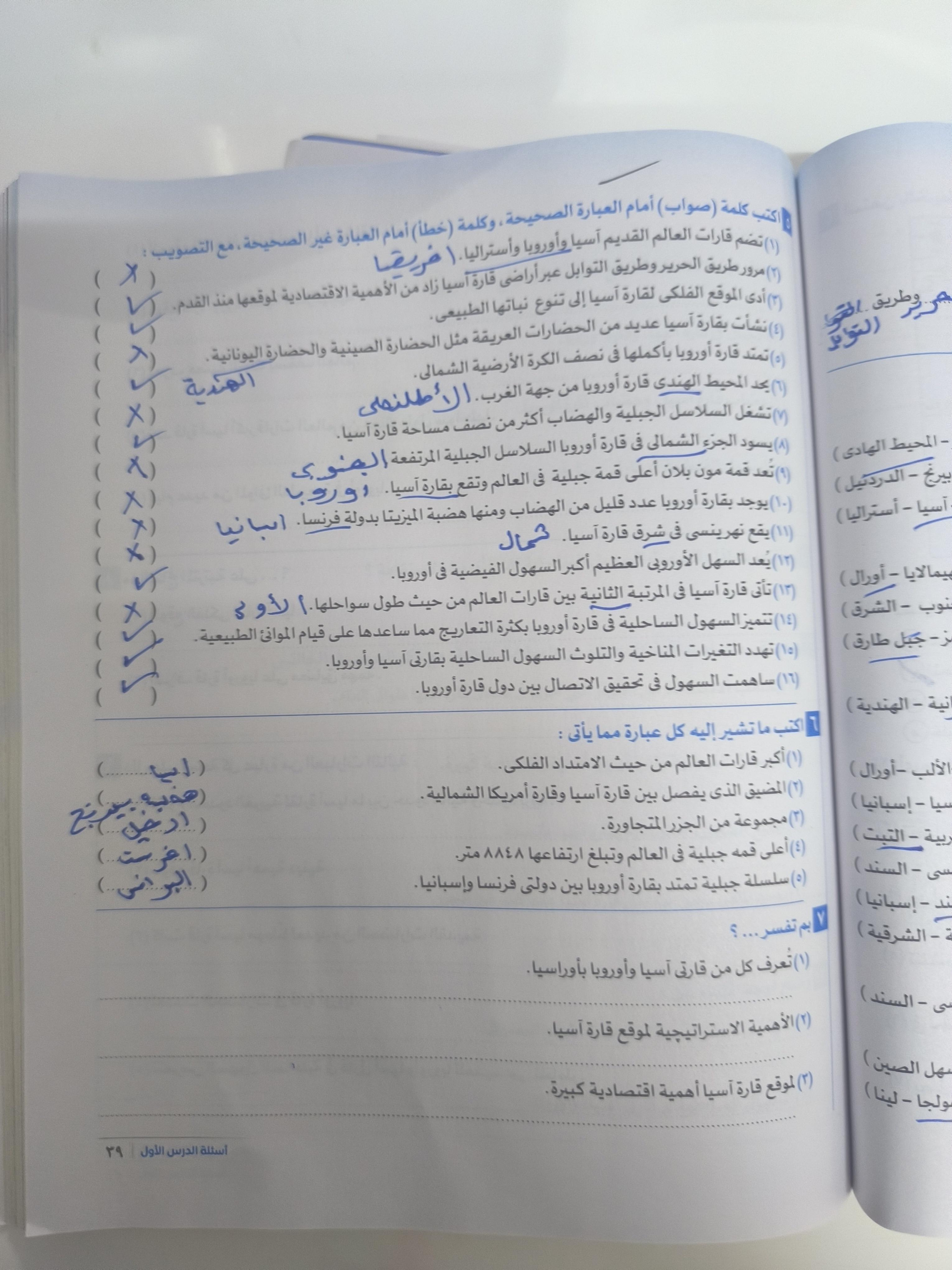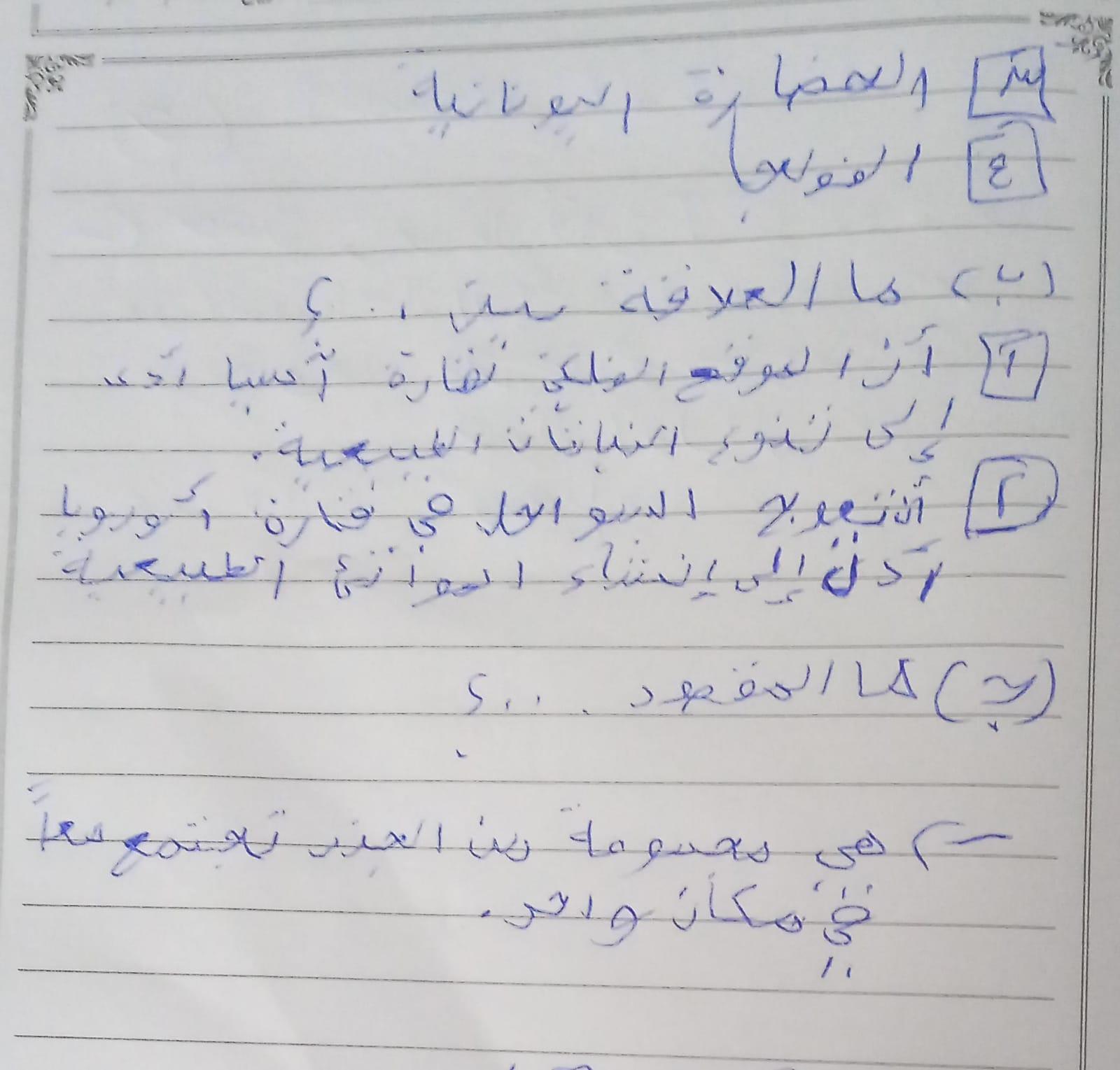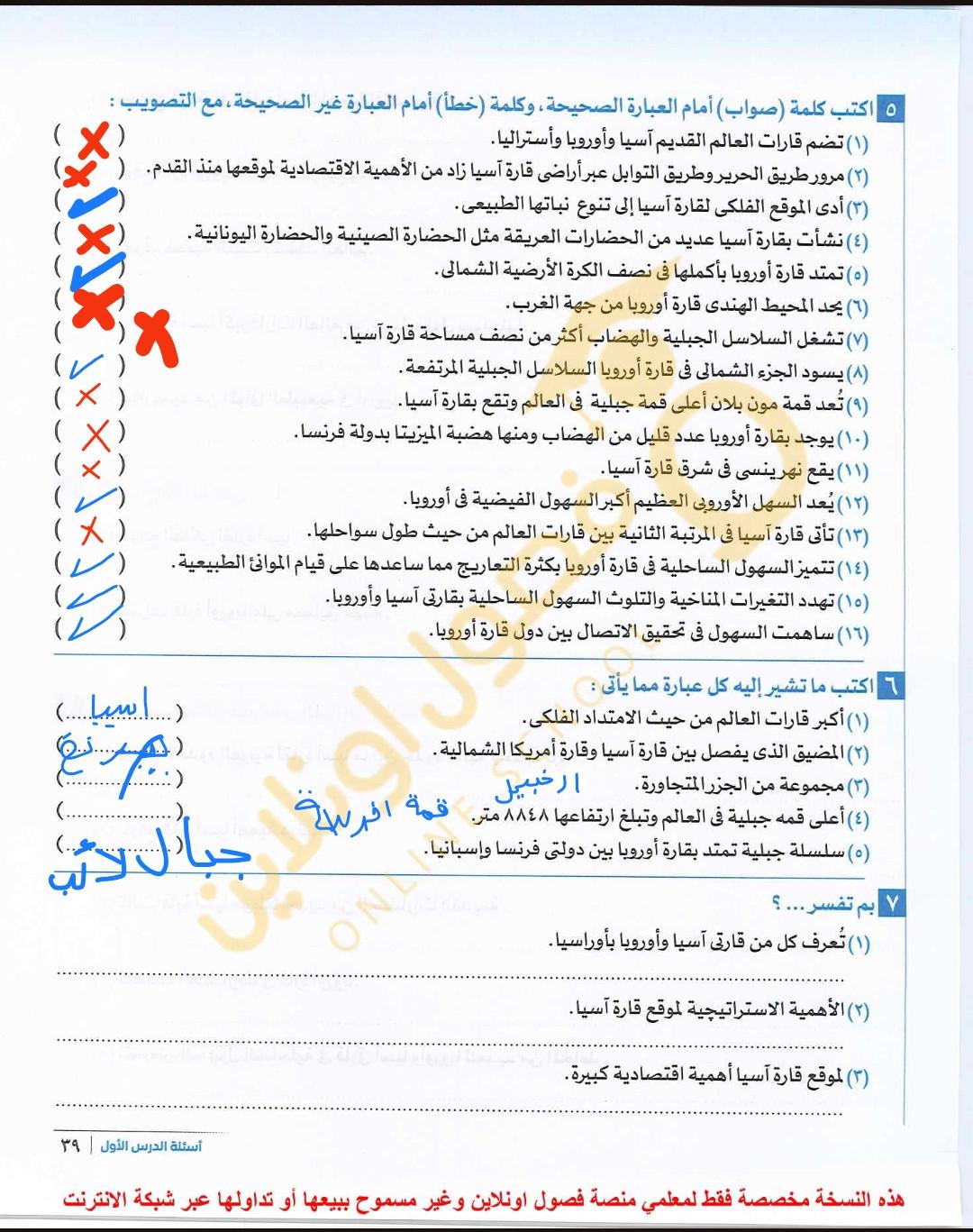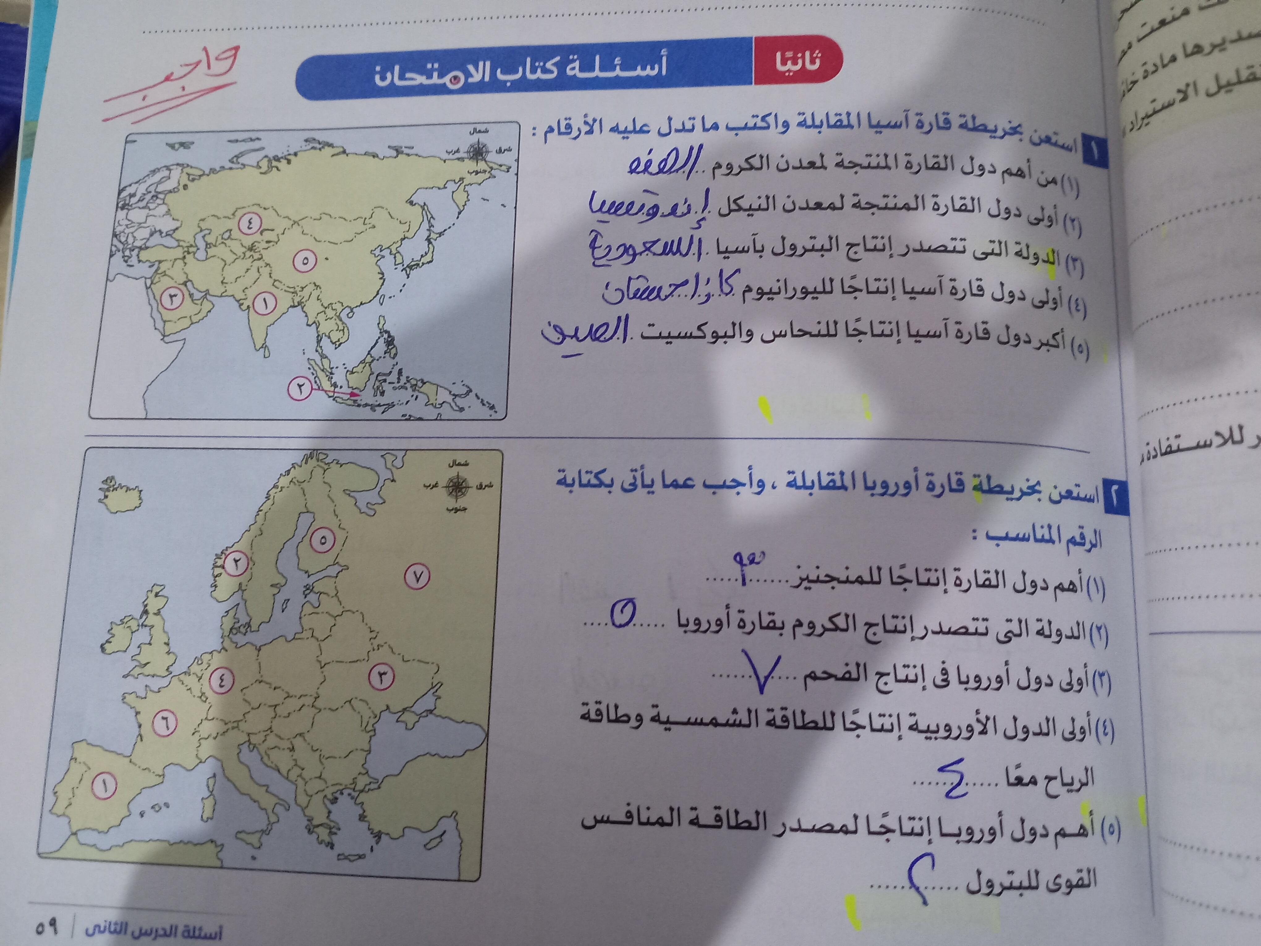 اخدنا اليوم الاهميات لقاره اسيا واوربا والموقع الجغرافي والفلكي لقاره اوربا والواجب باقي التدلريب الاول والتدريب التاني ص 25