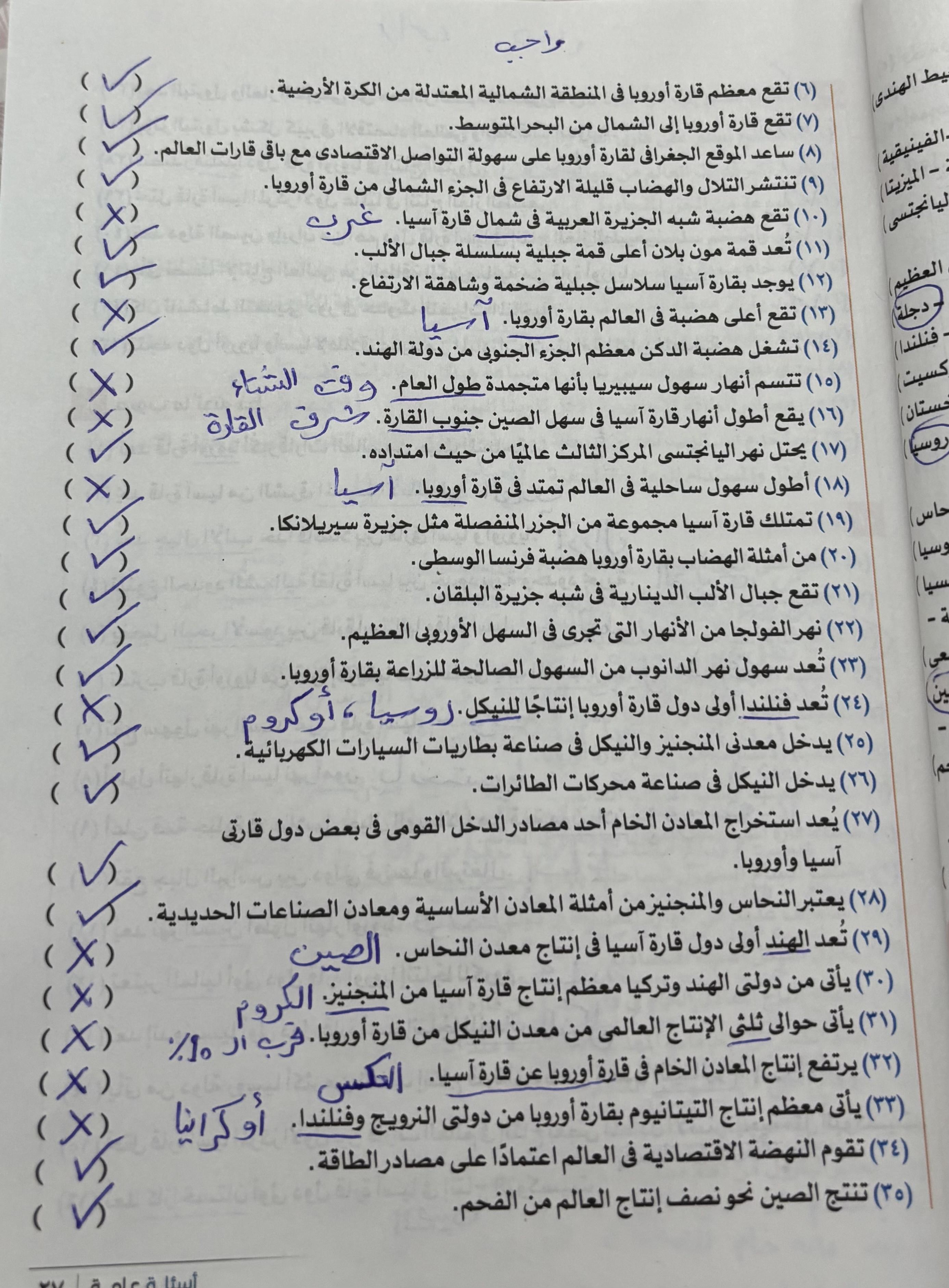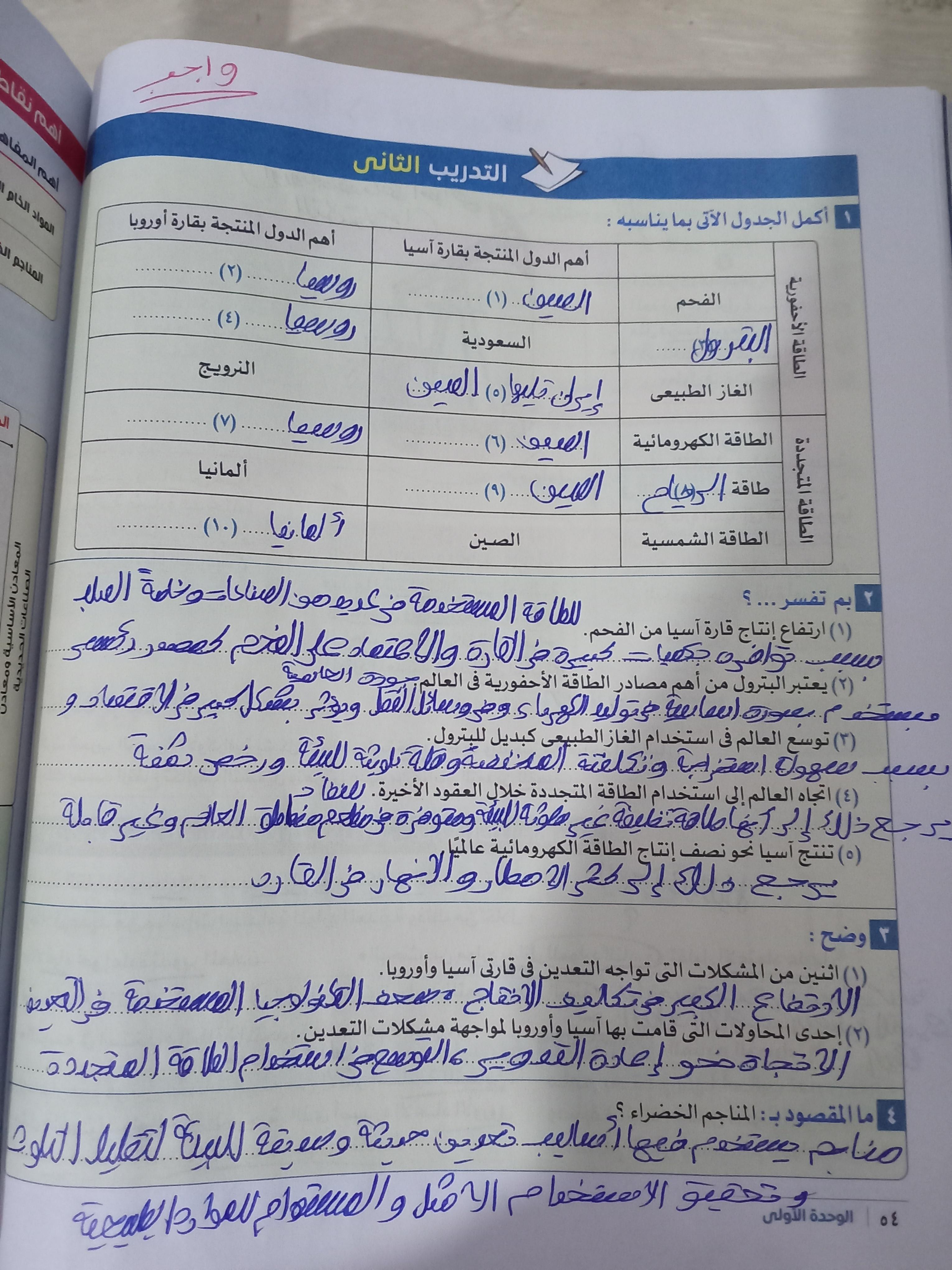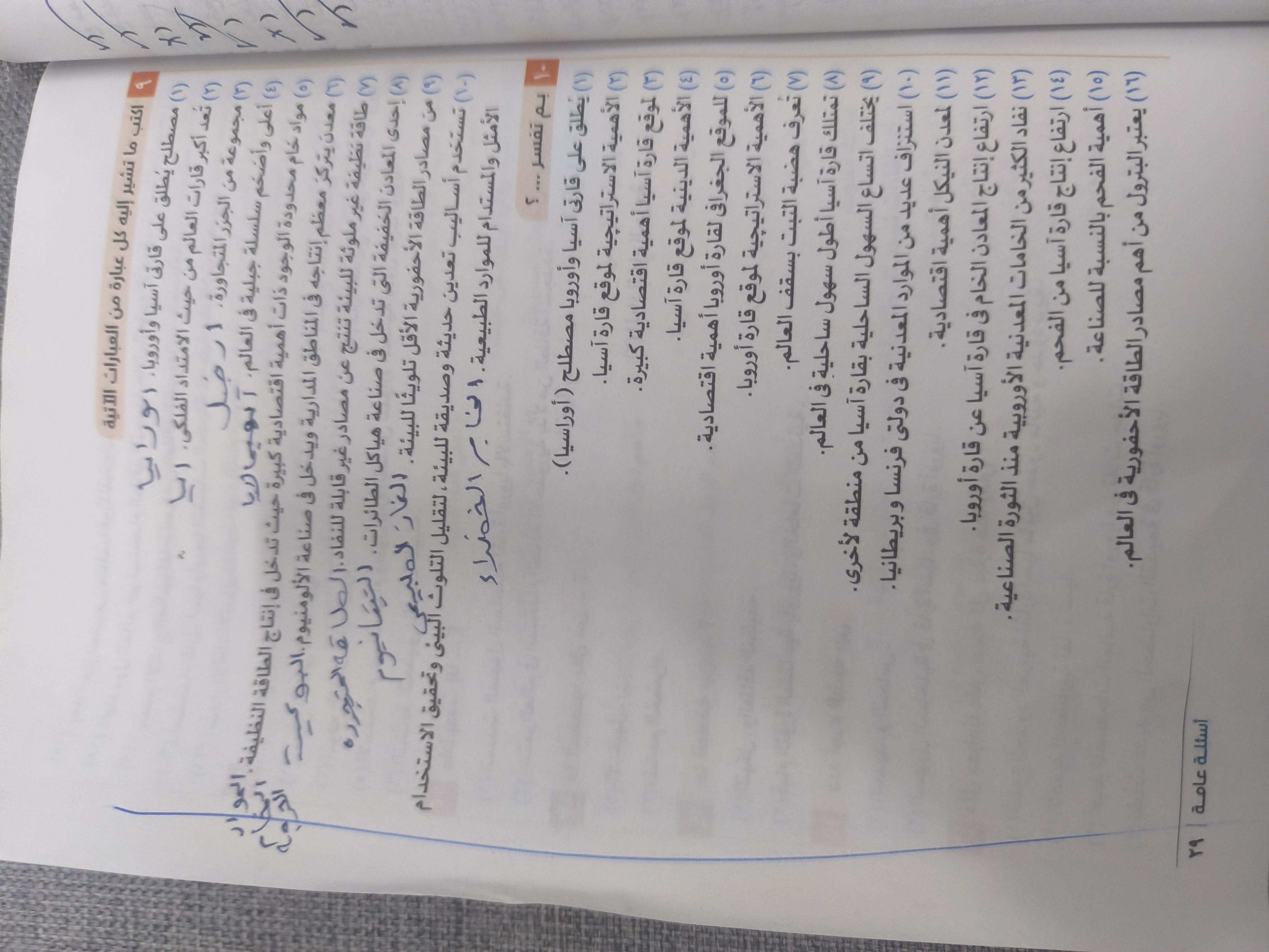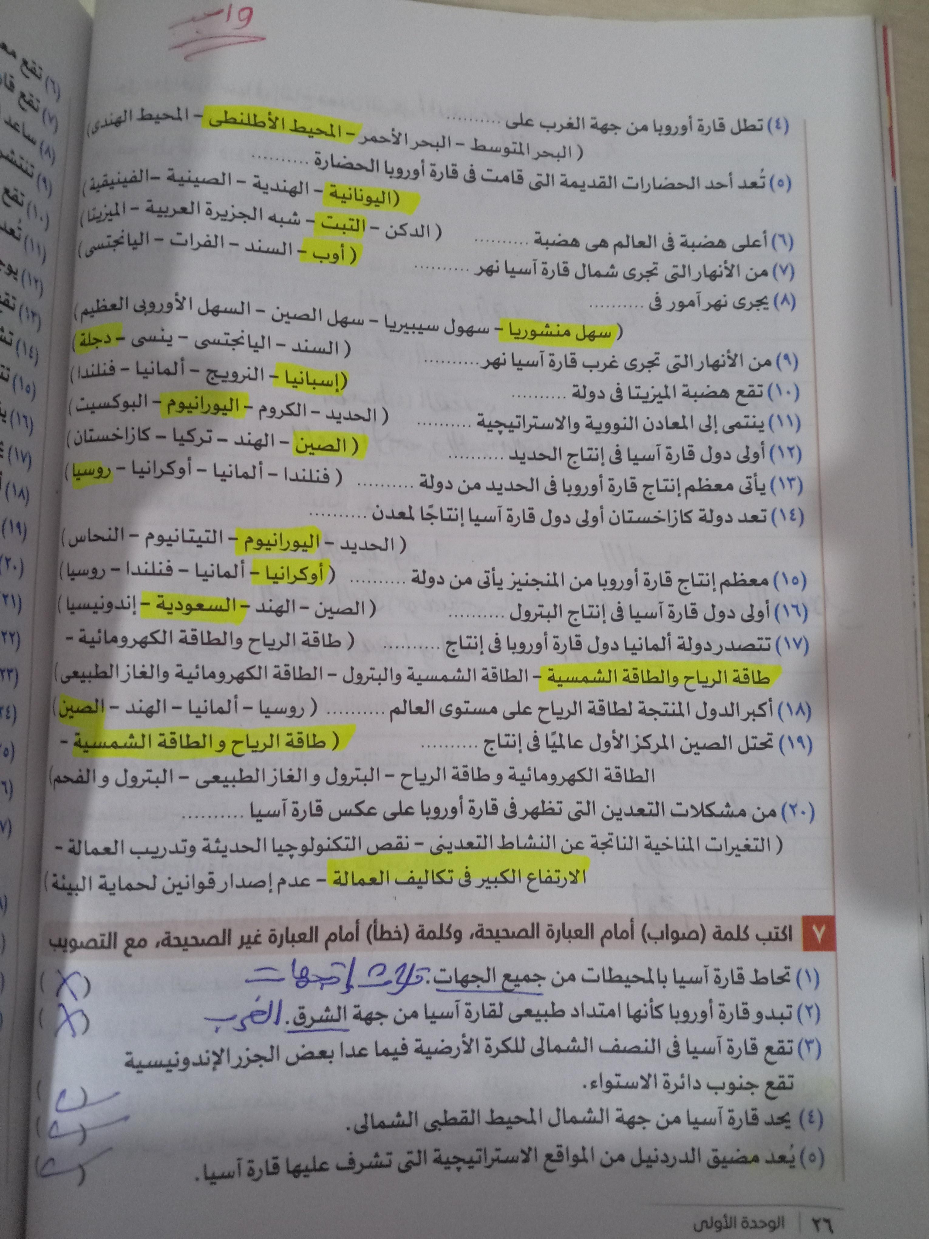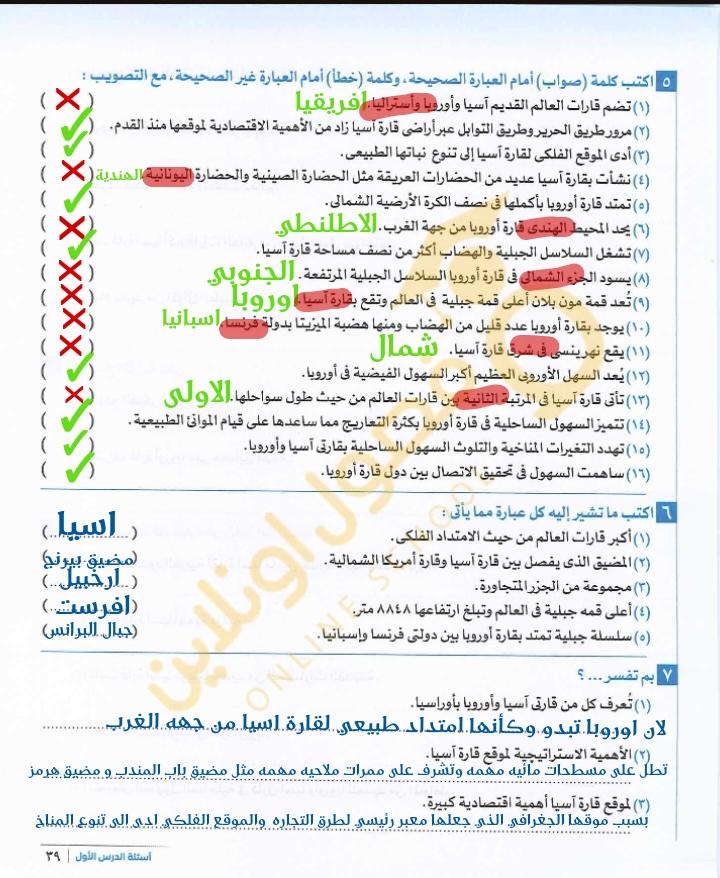 اخدنا اليوم الاهميات لقاره اسيا واوربا والموقع الجغرافي والفلكي لقاره اوربا والواجب باقي التدلريب الاول والتدريب التاني ص 25