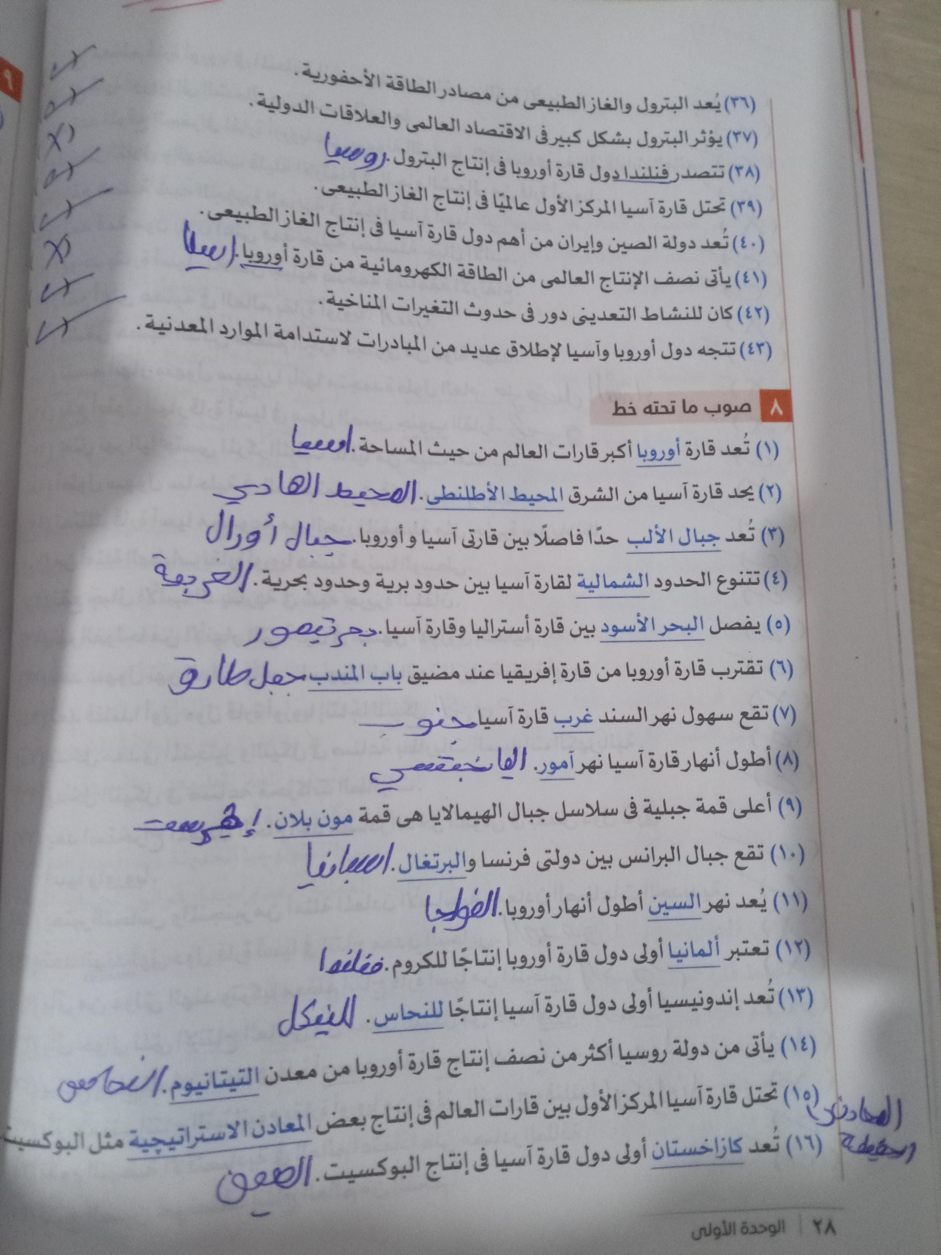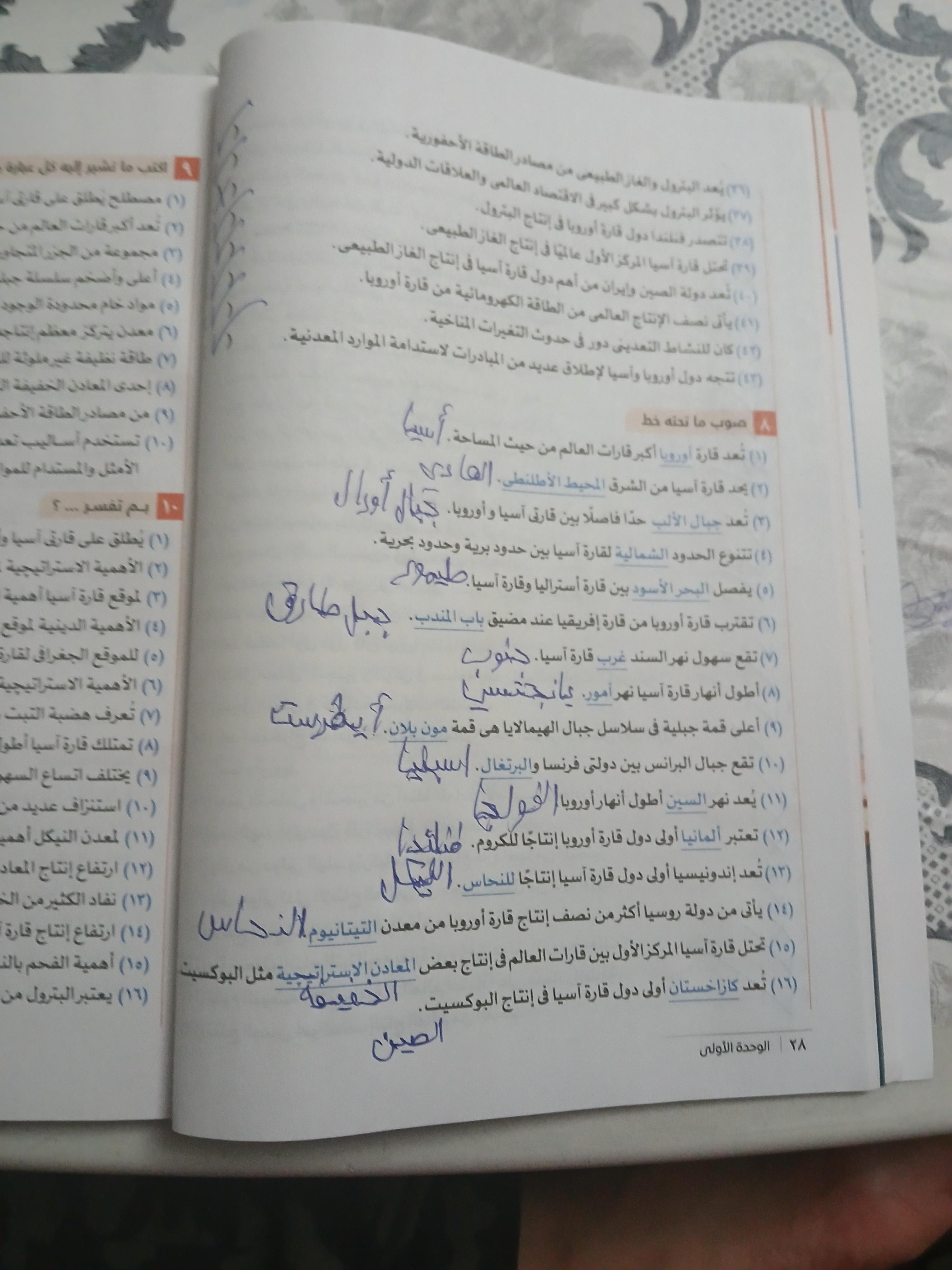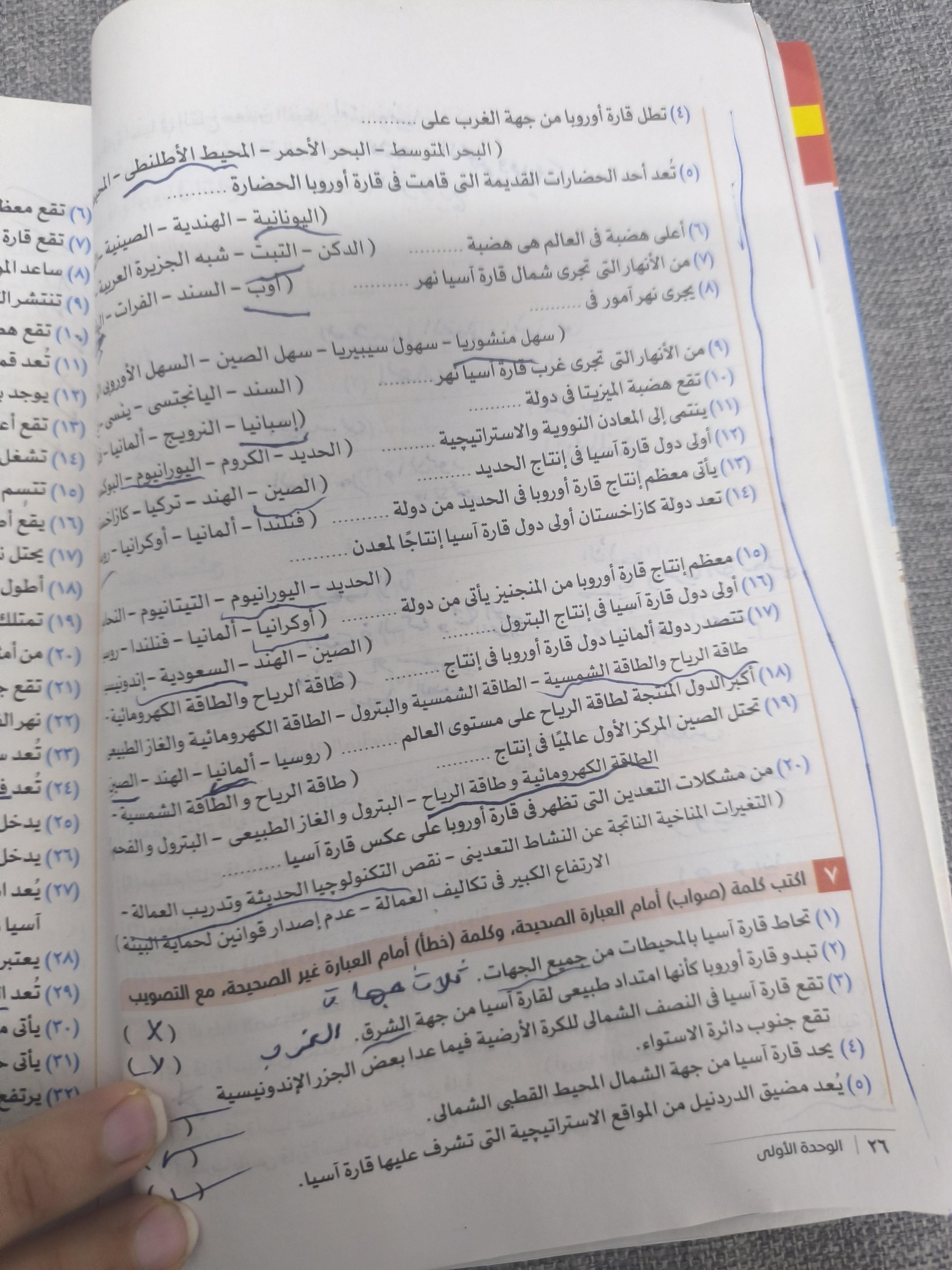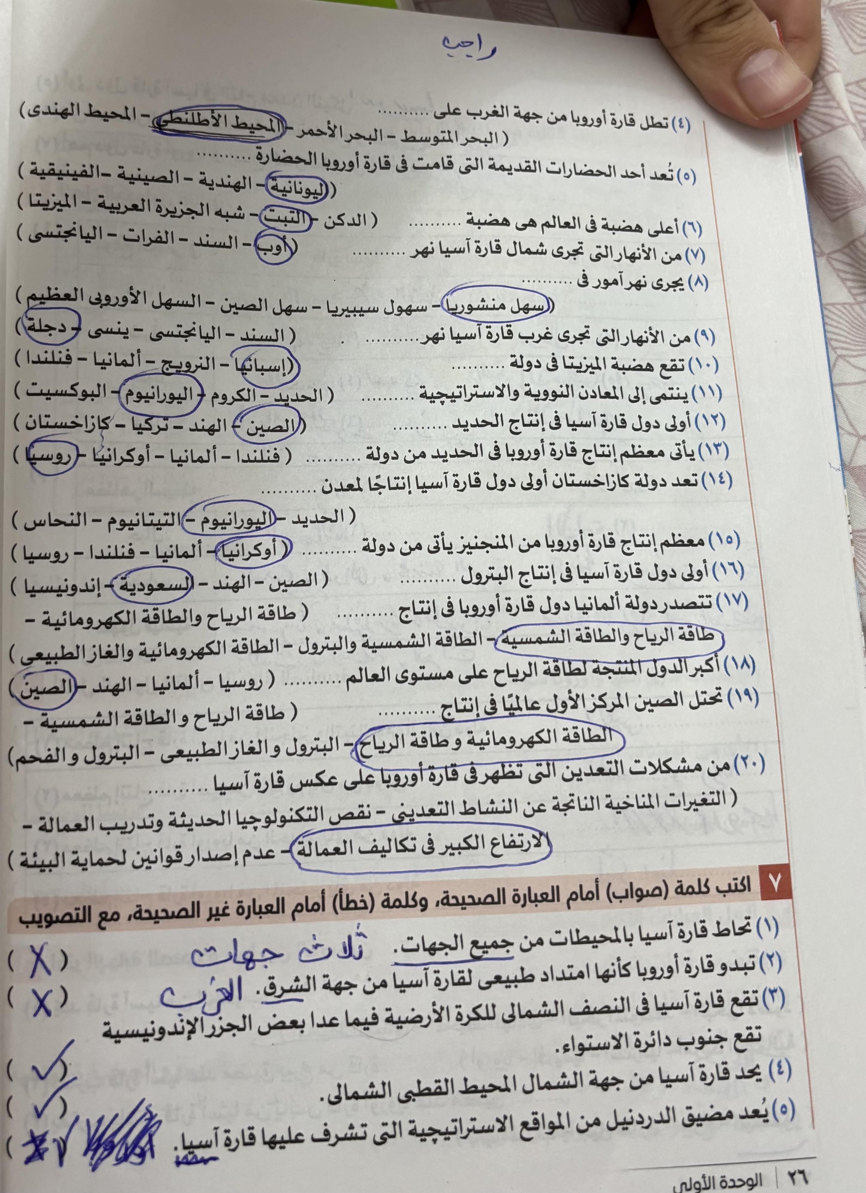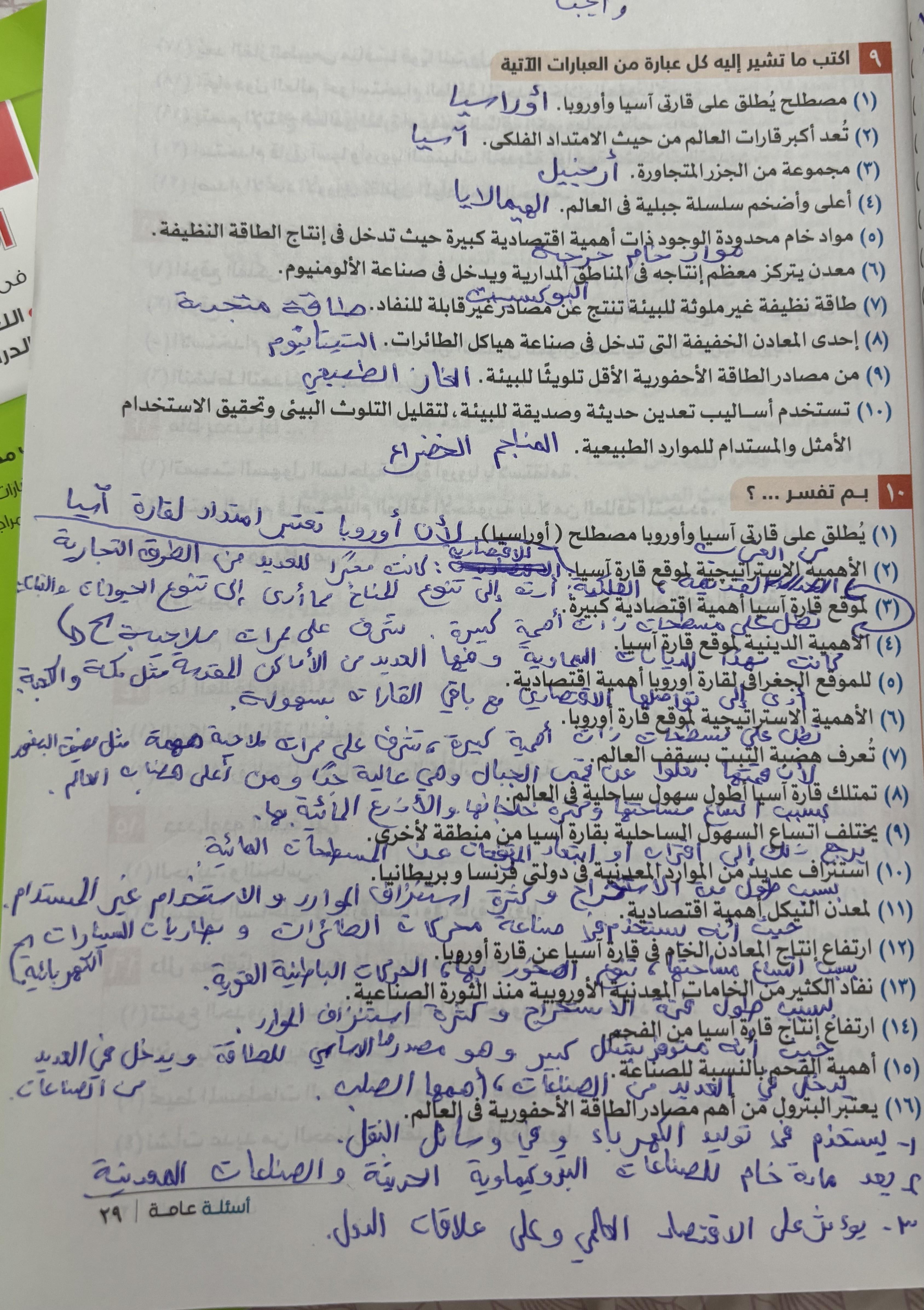 اخدنا اليوم الاهميات لقاره اسيا واوربا والموقع الجغرافي والفلكي لقاره اوربا والواجب باقي التدلريب الاول والتدريب التاني ص 25
