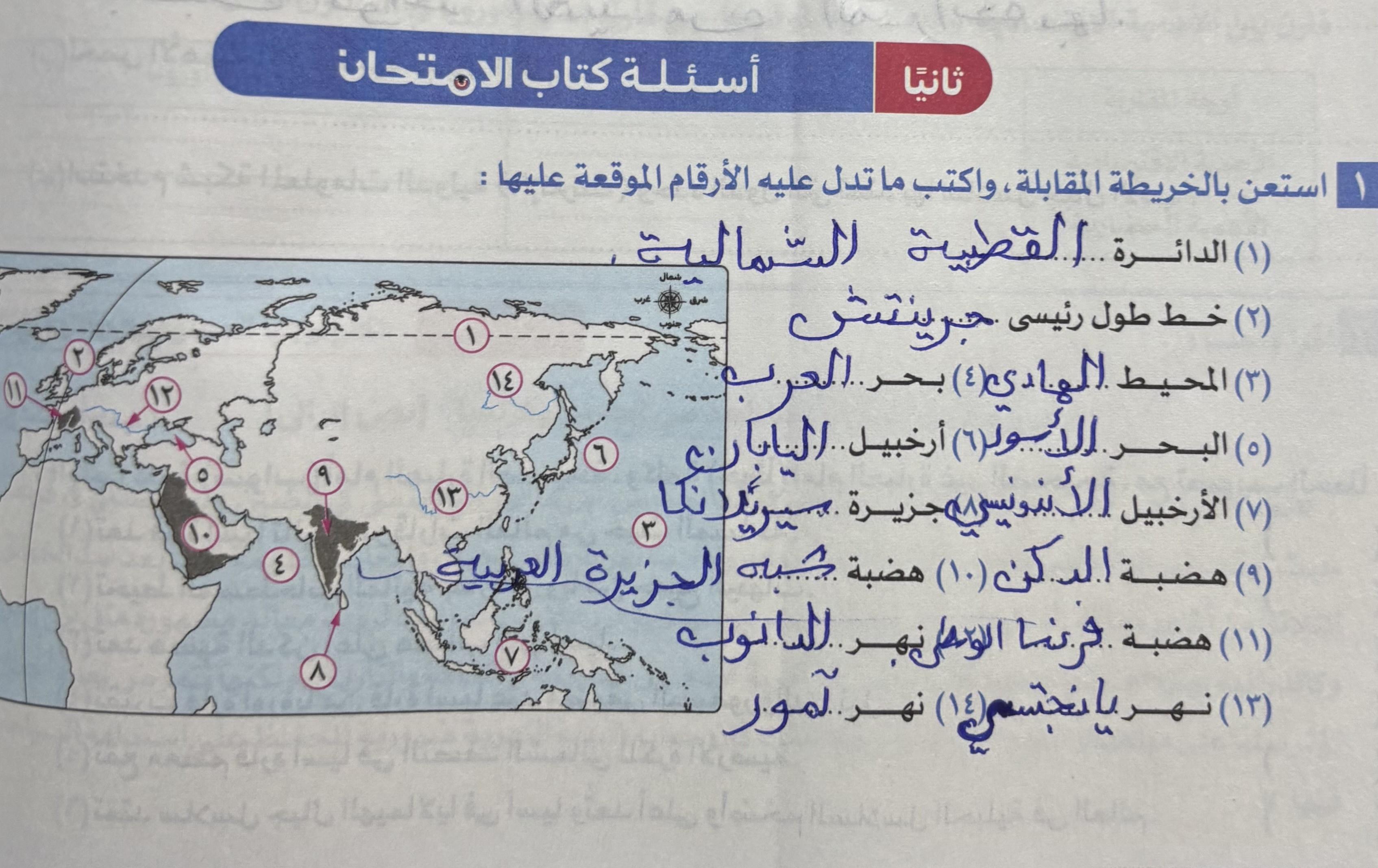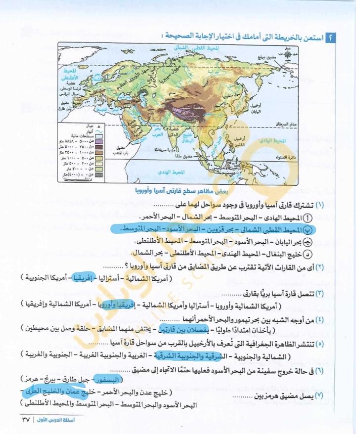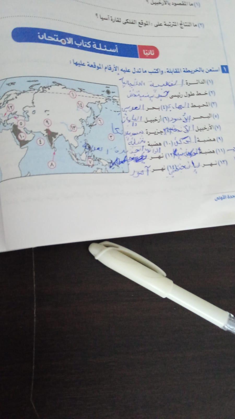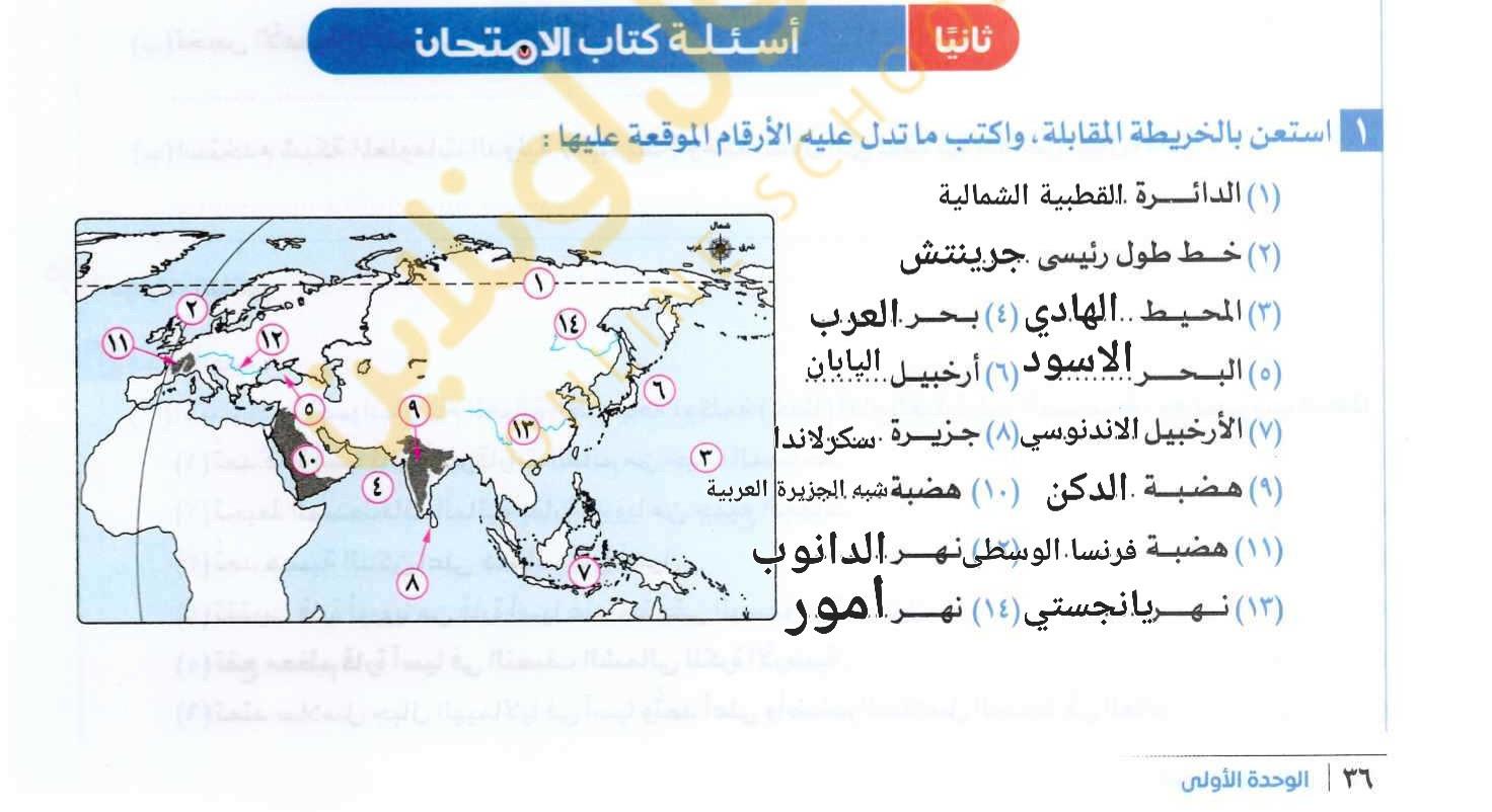 واجب اليوم الجزء الاول موقع ومظاهر سطح اسيا