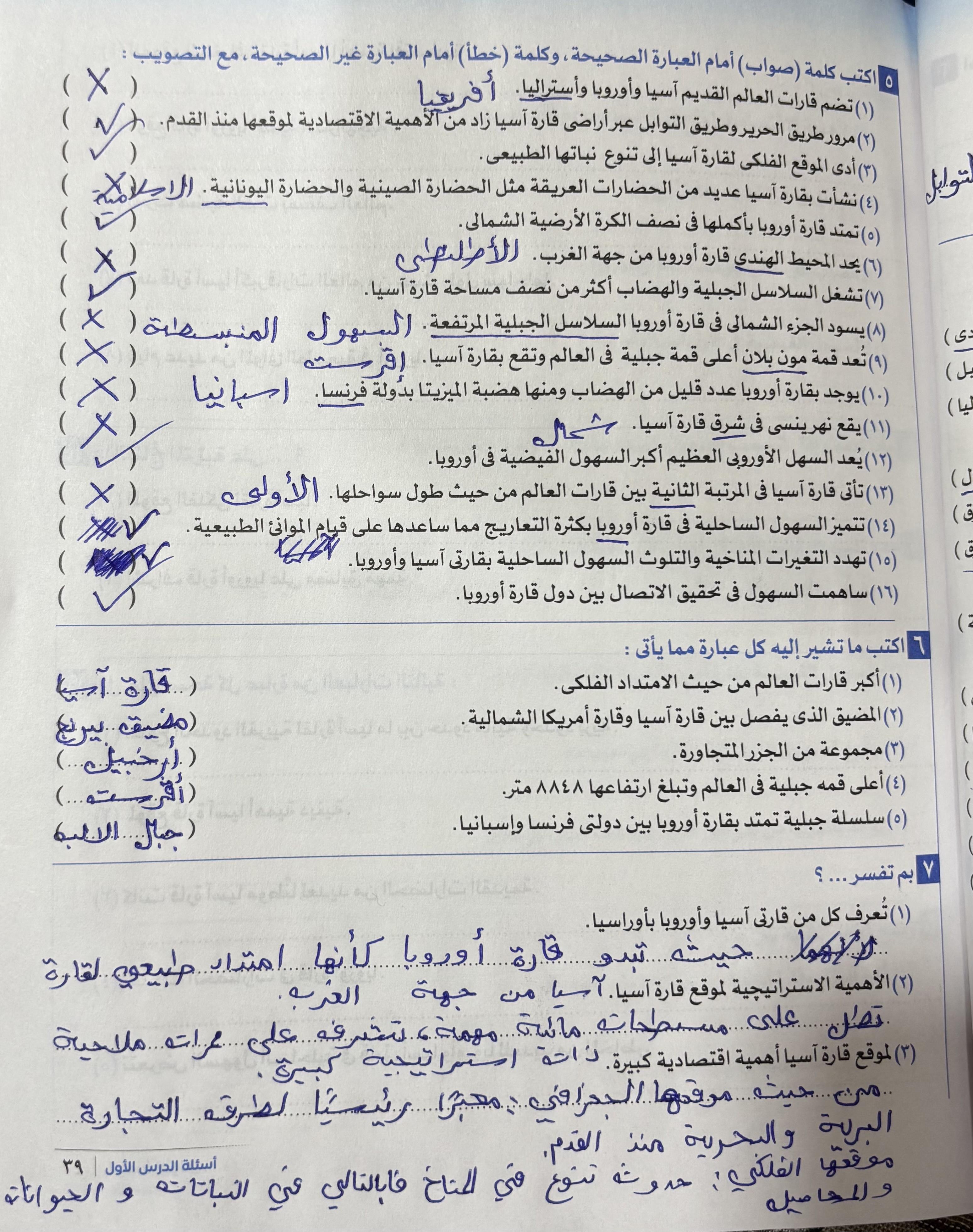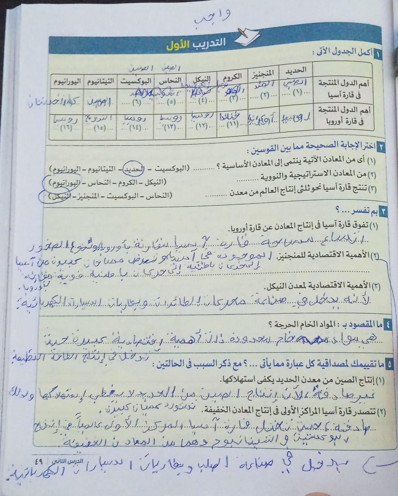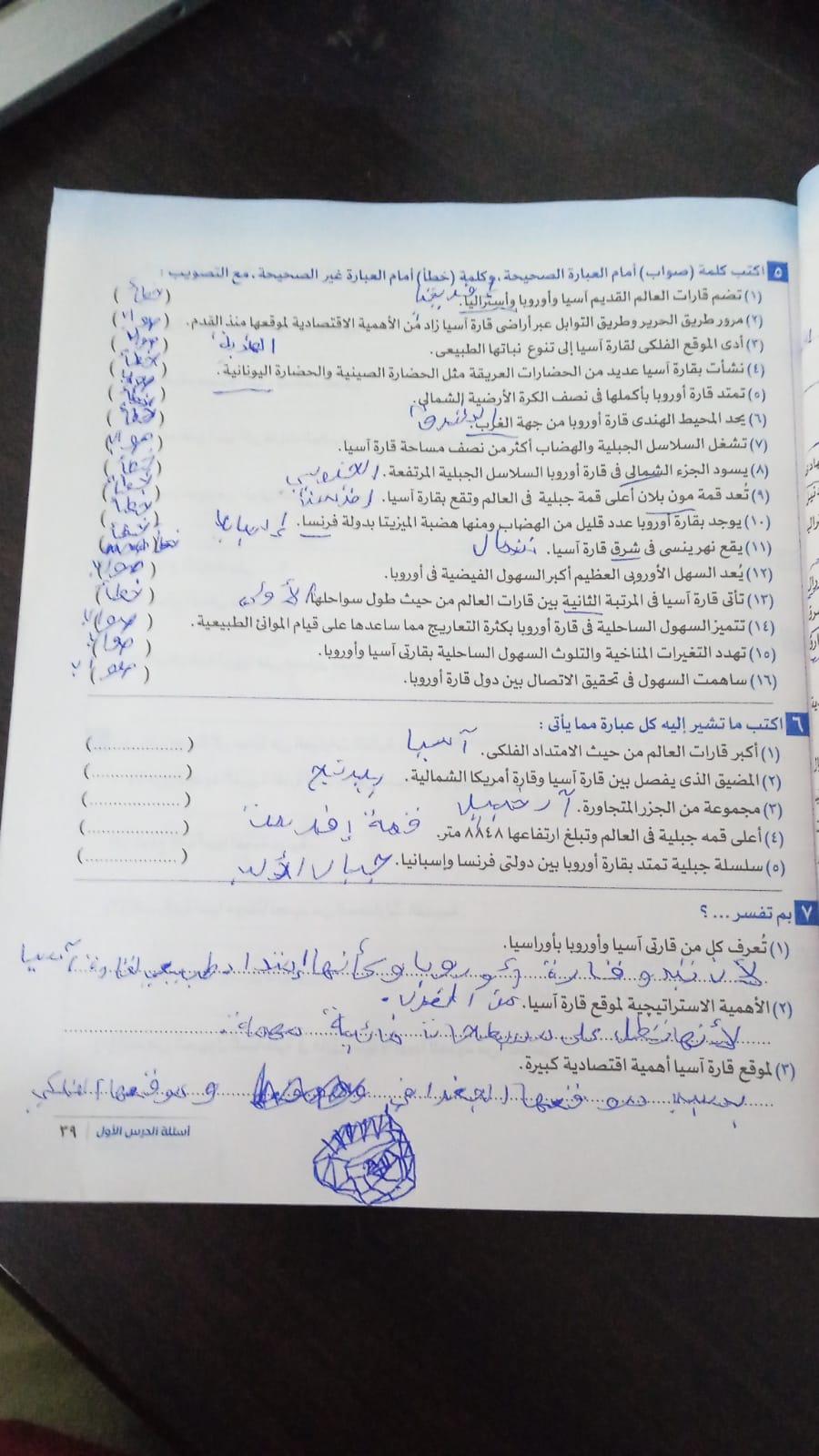 حلينا اليوم جزء من تدريبات كتاب الامتحان والواجب ص 39