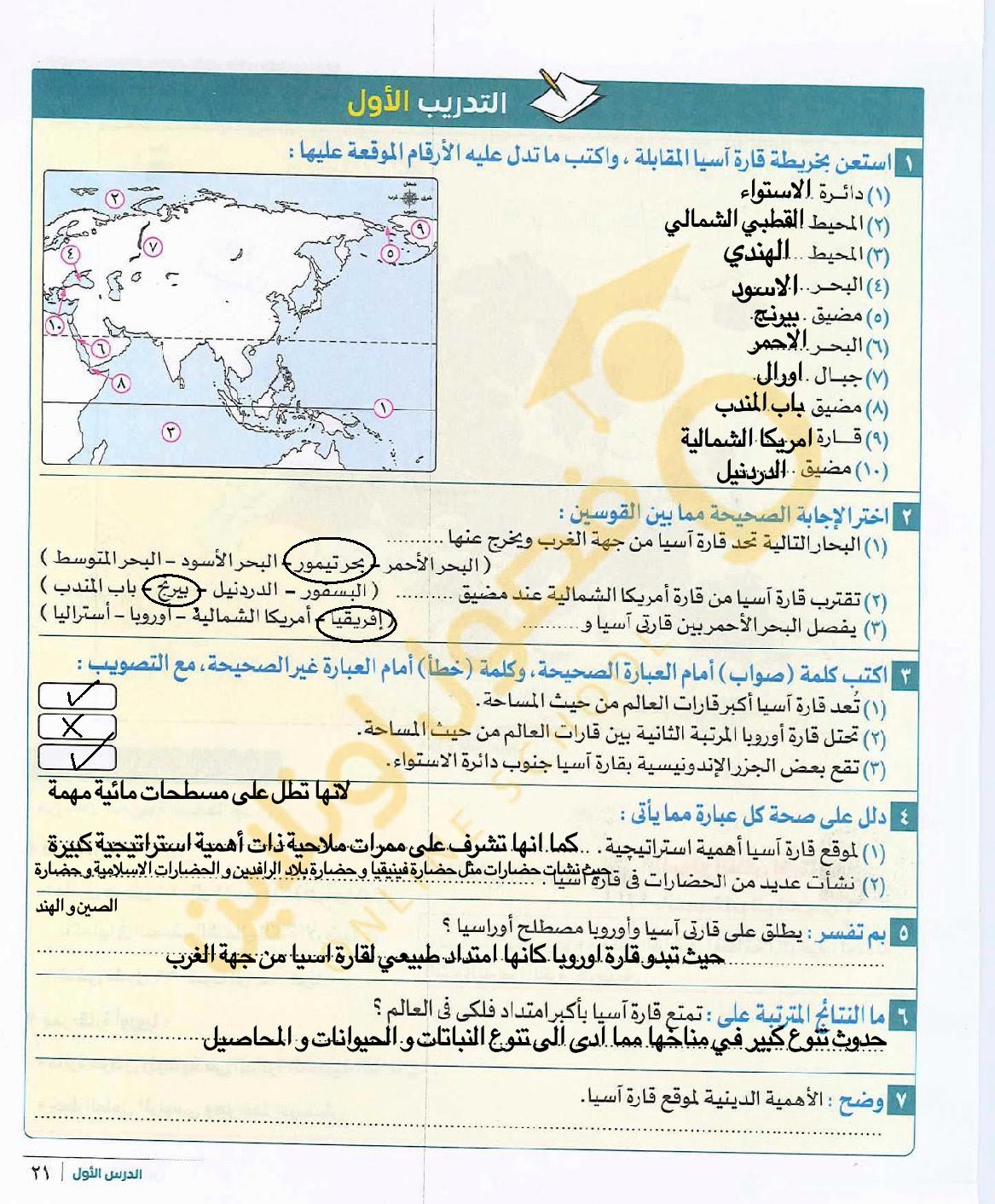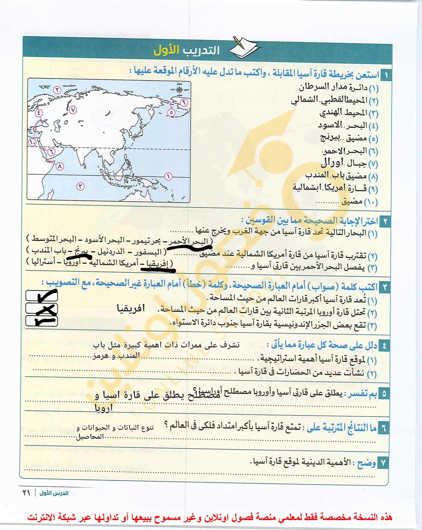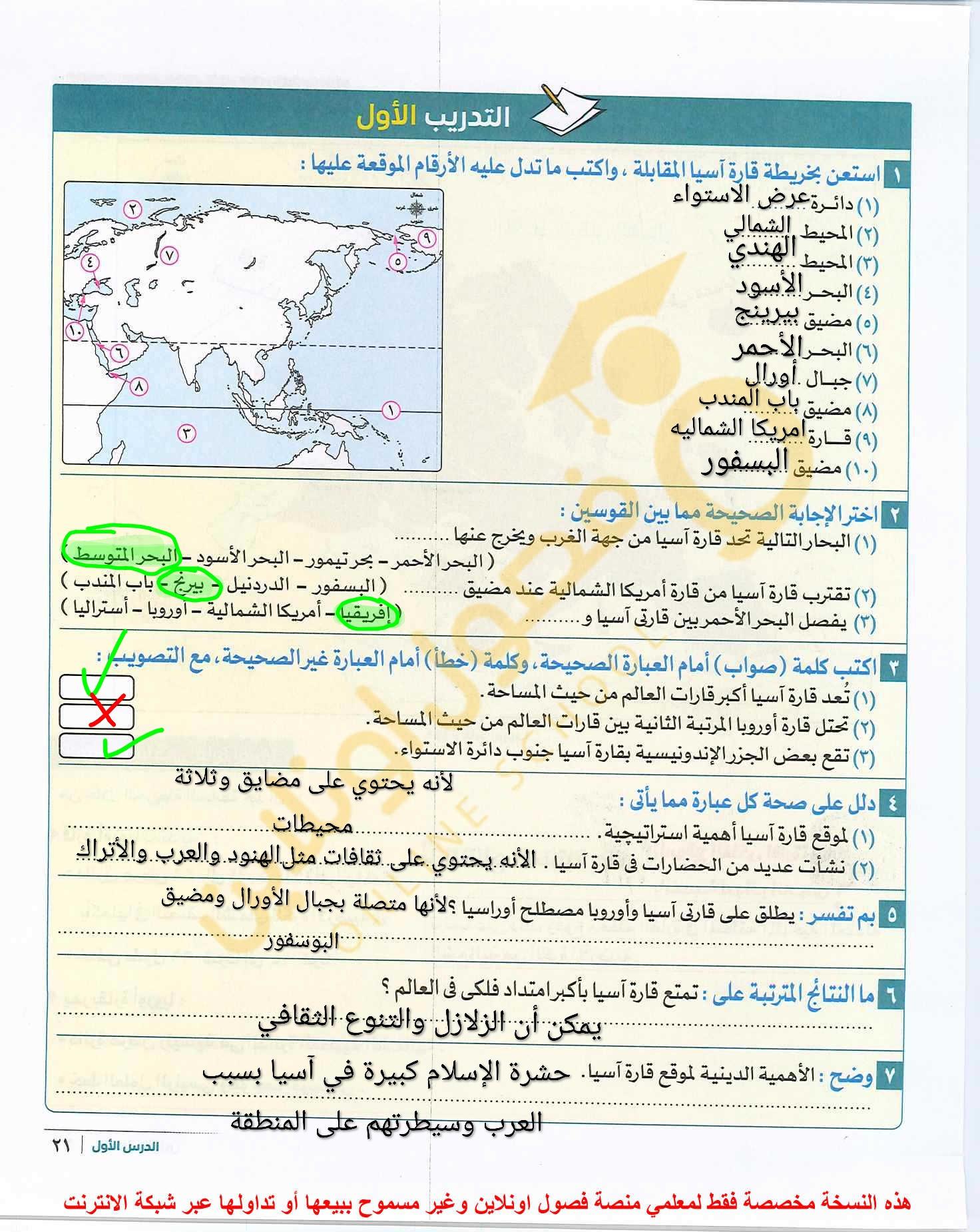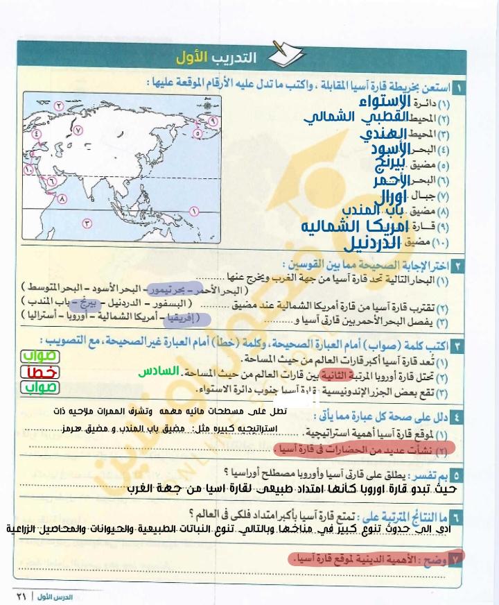 اخدنا اليوم الجزء الاول موقع ومظاهر سطح اسيا والواجب ص 21