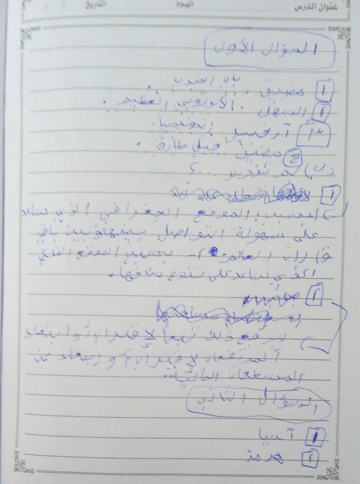 واجب الدراسات الاجتماعية ليوم ١/٣/١٤٤٧
