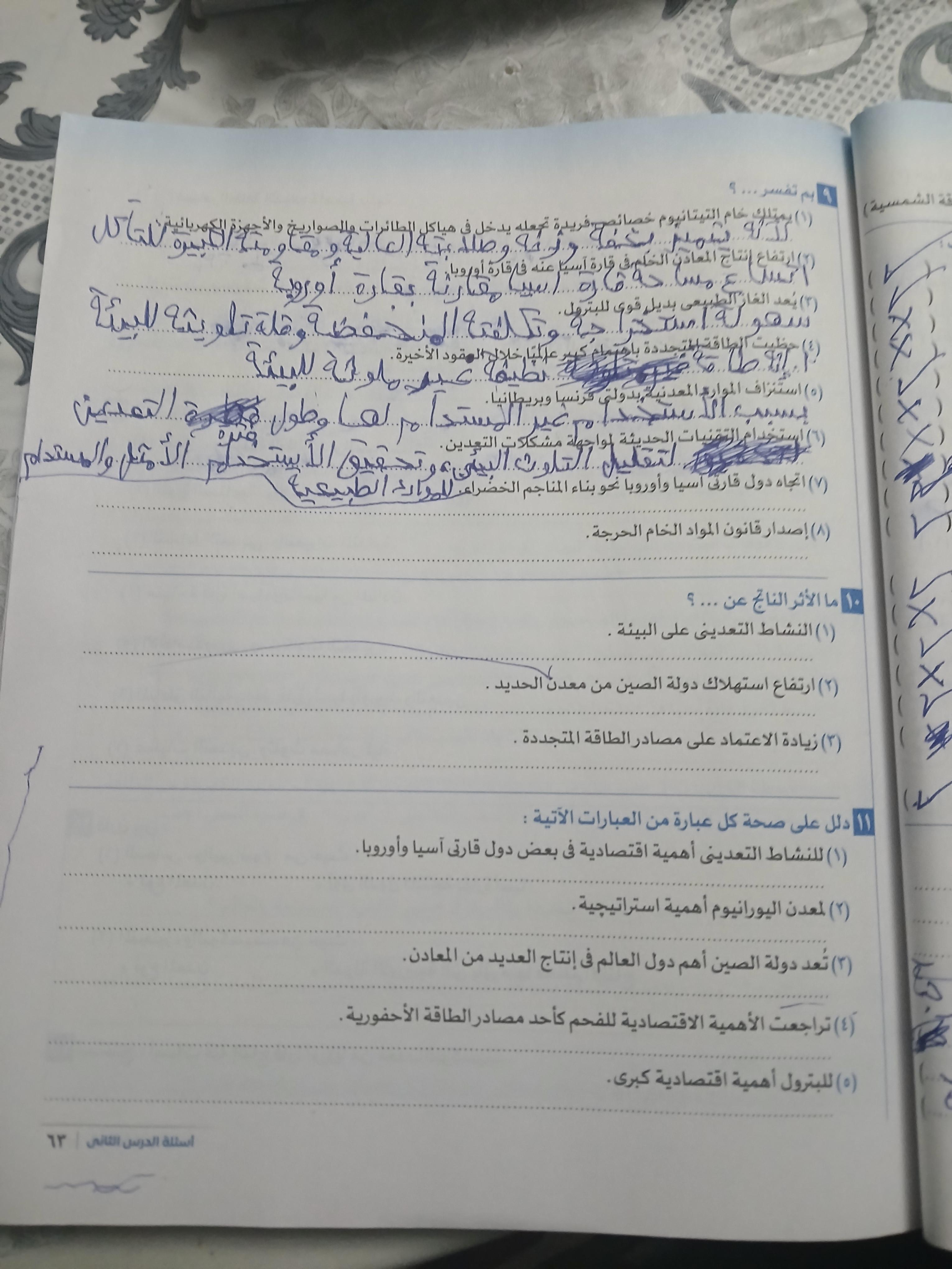 حلينا تدريبات الدرس والواجب ص 63 سؤال 10 و9