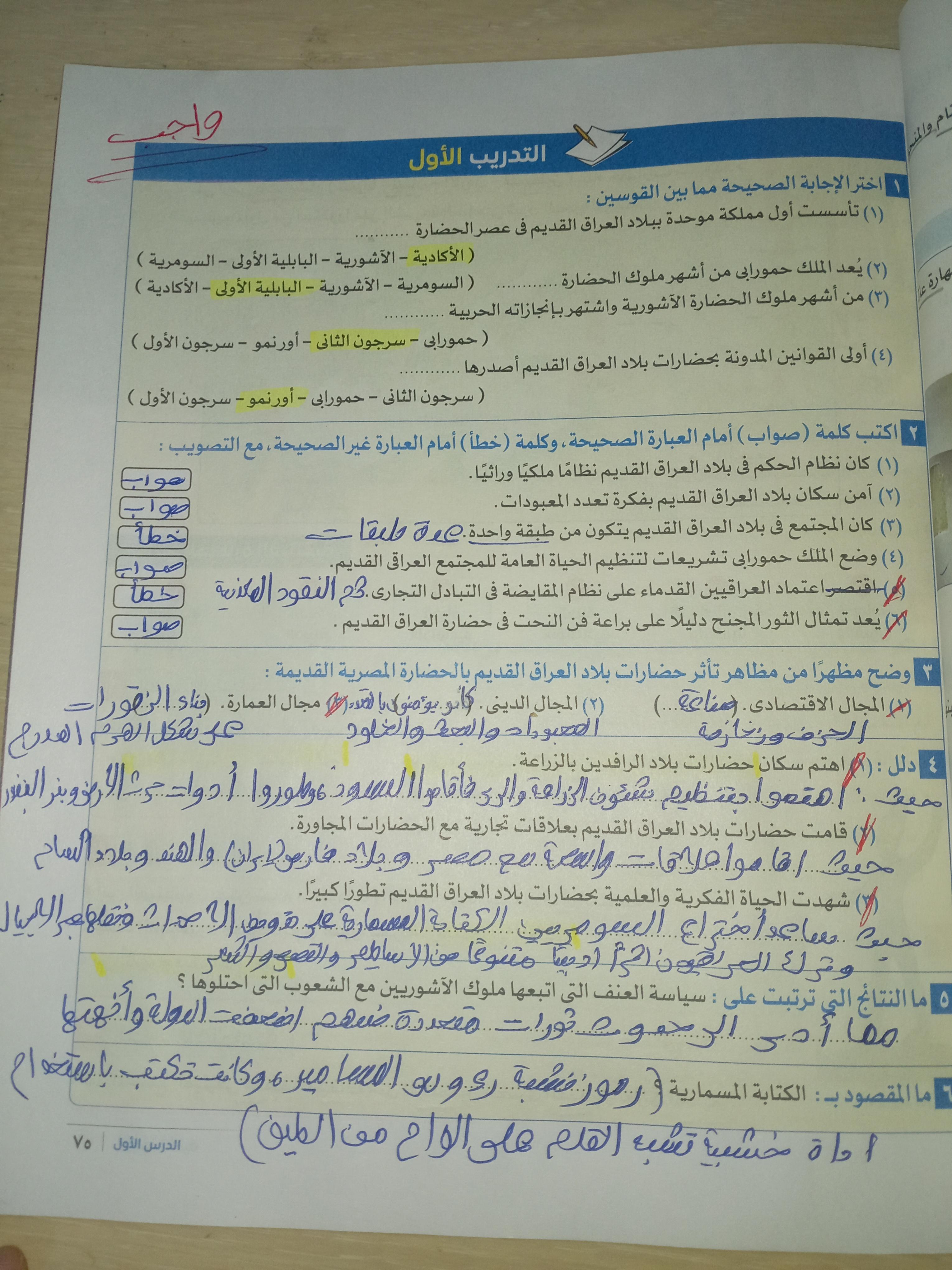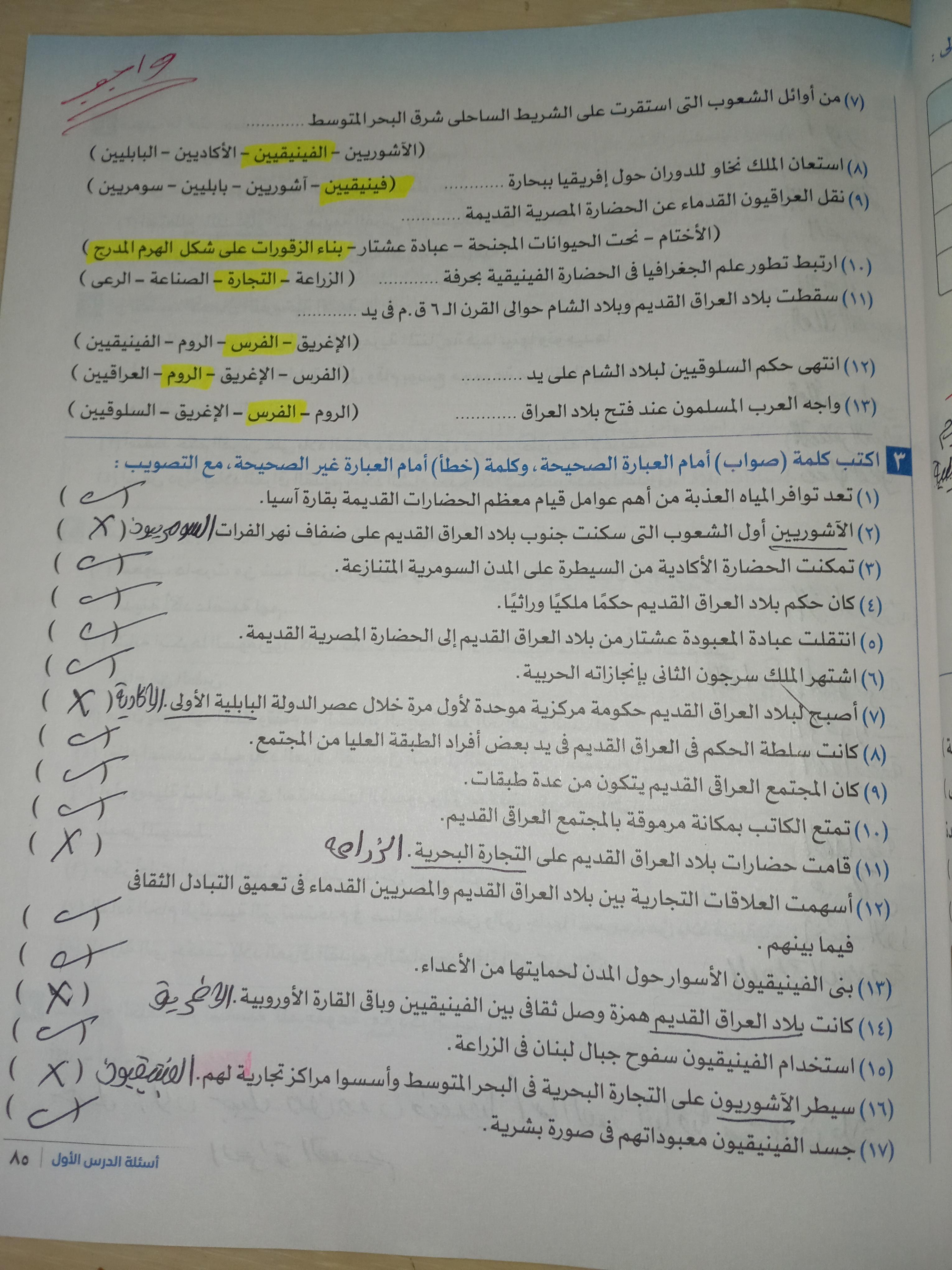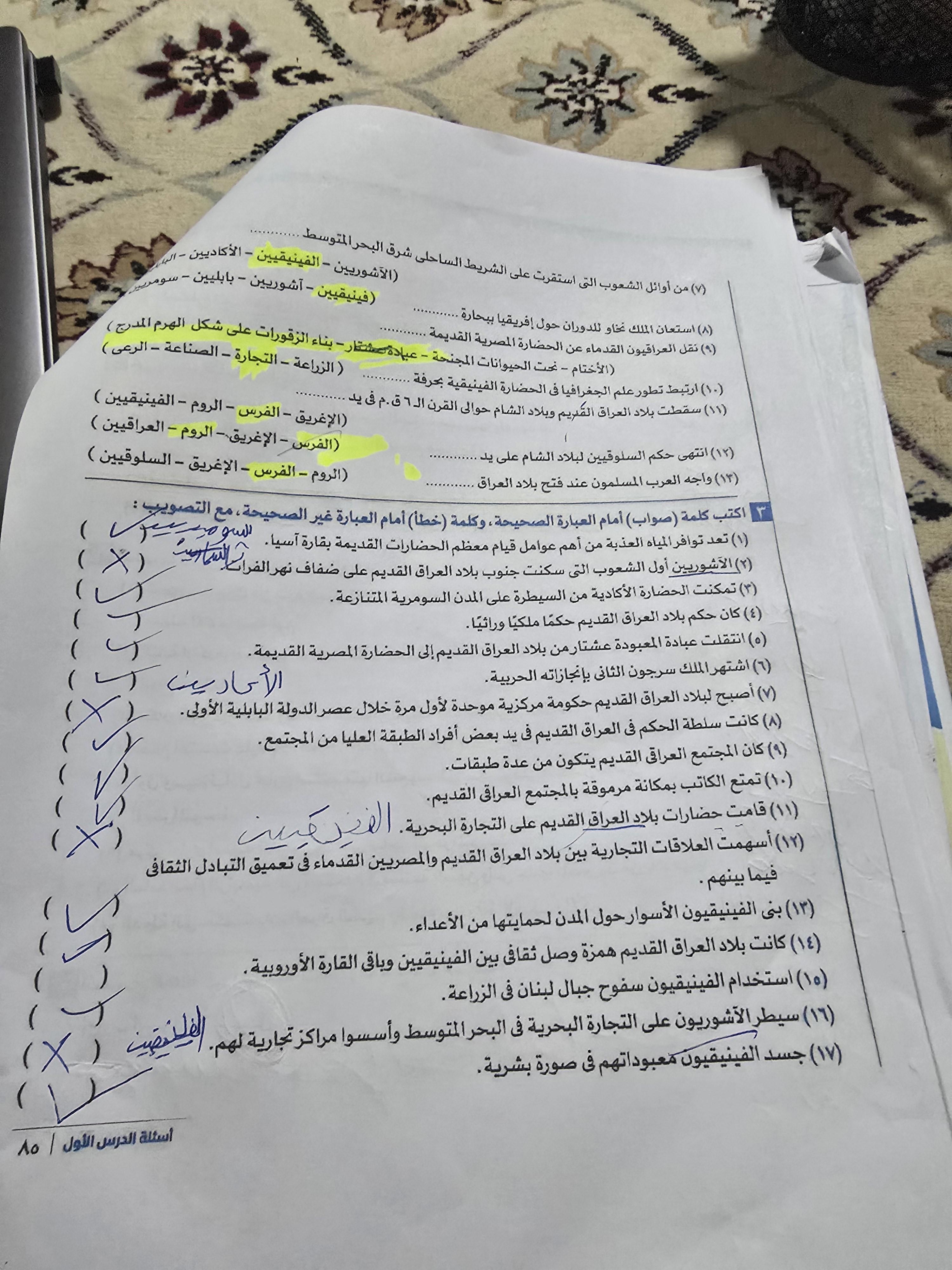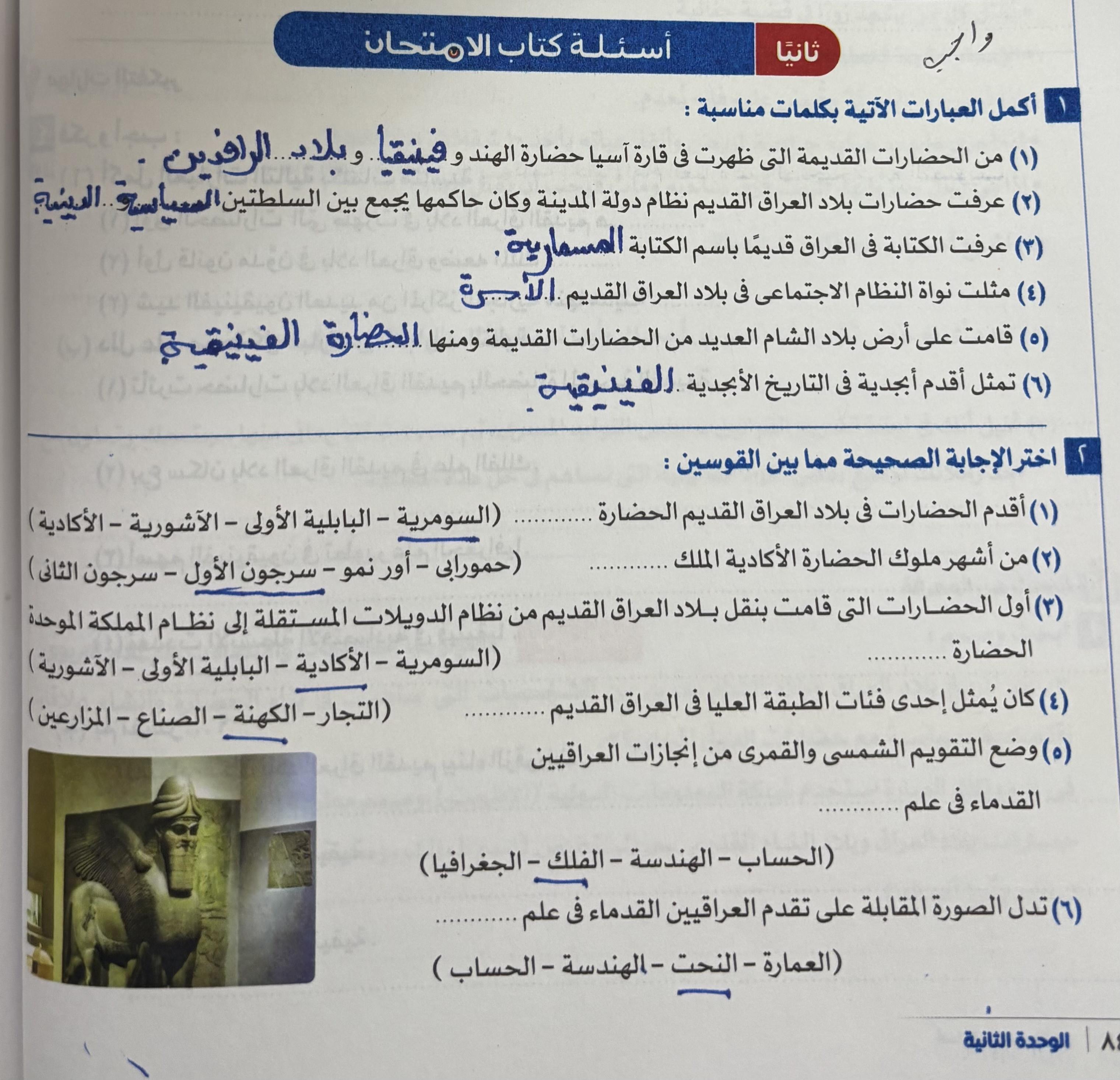 خلصنا الحمد لله الحضاره العراقيه وفينيقا والواجب تدريب 1 و2 اليوم
