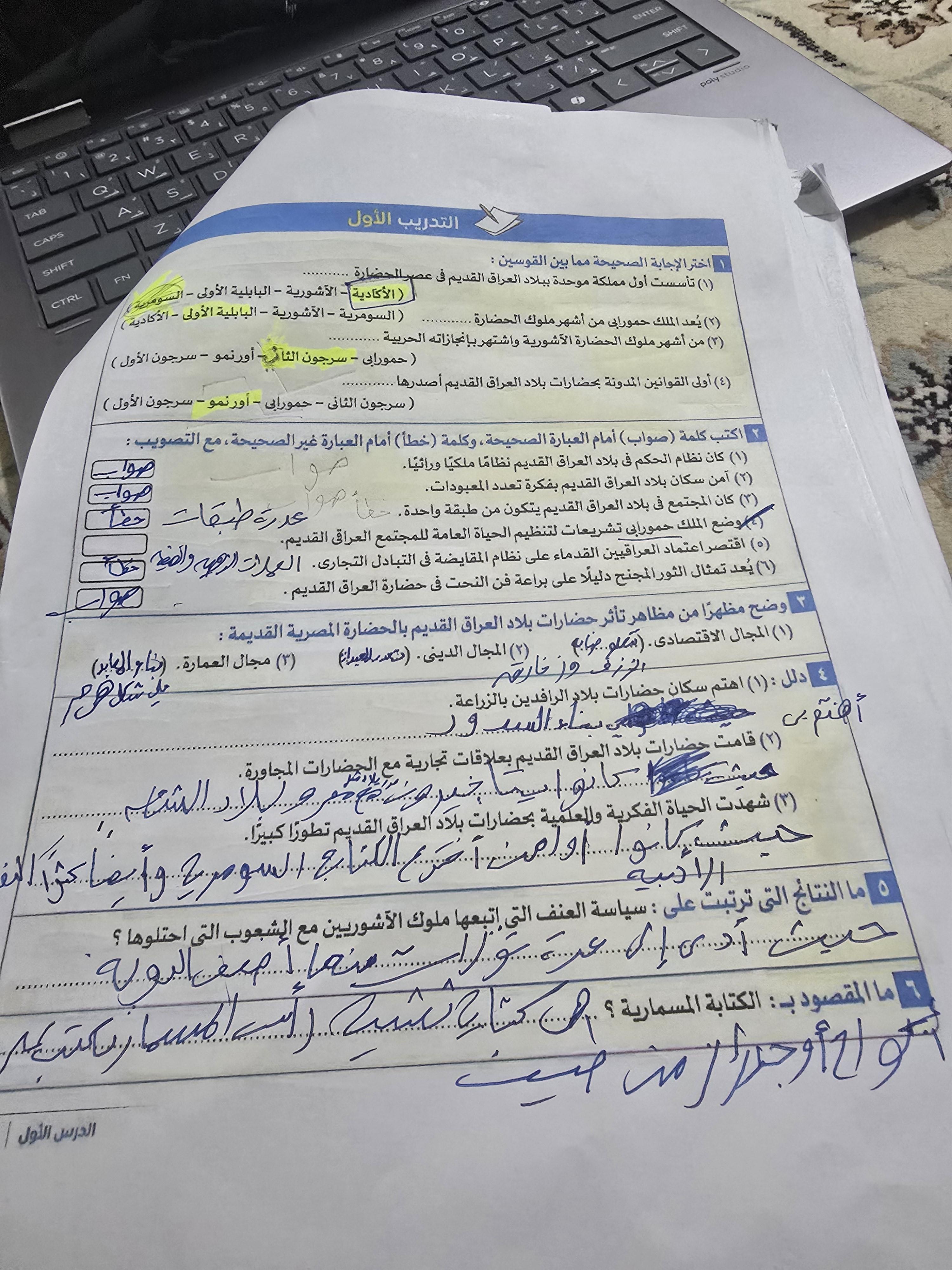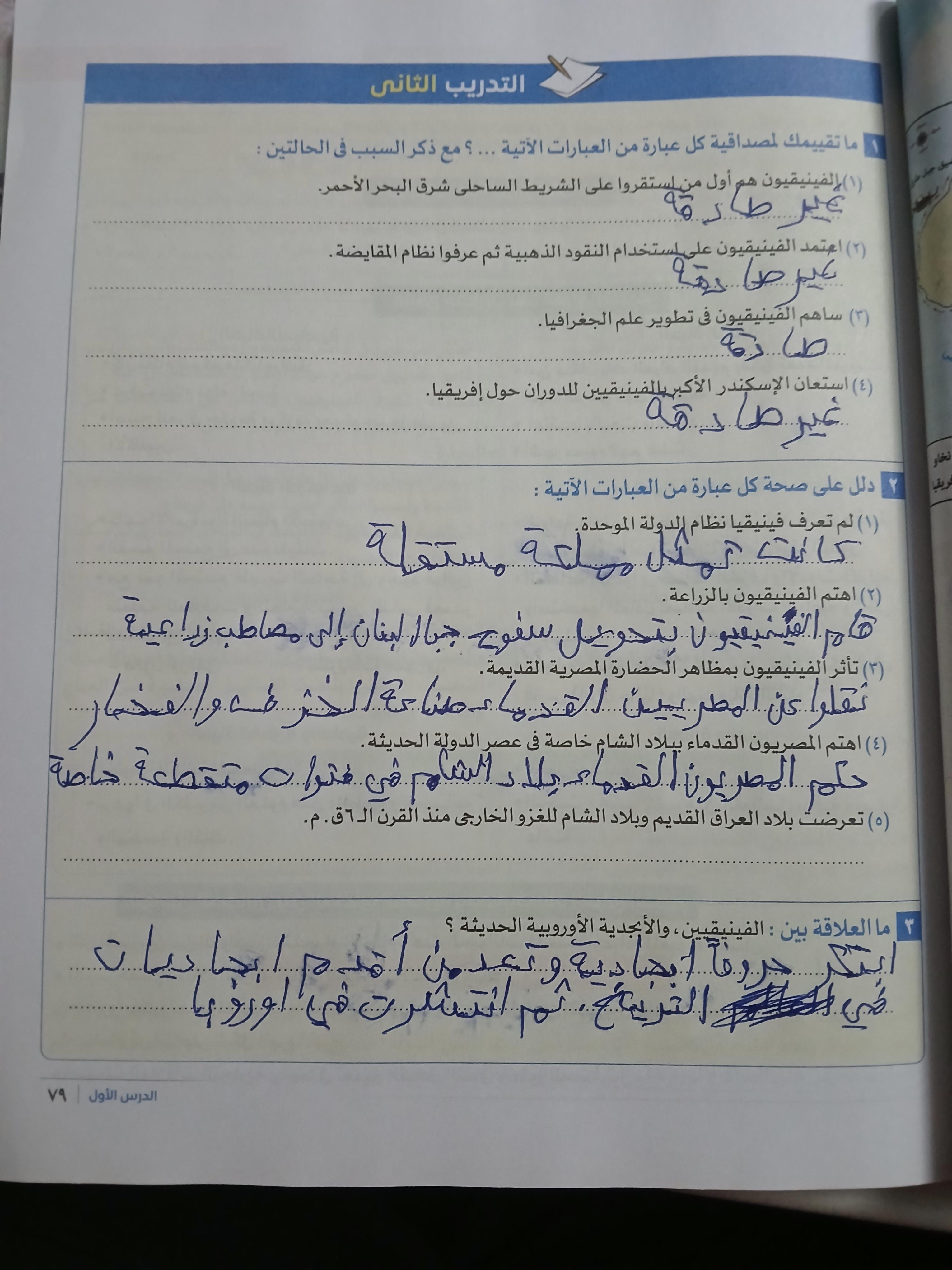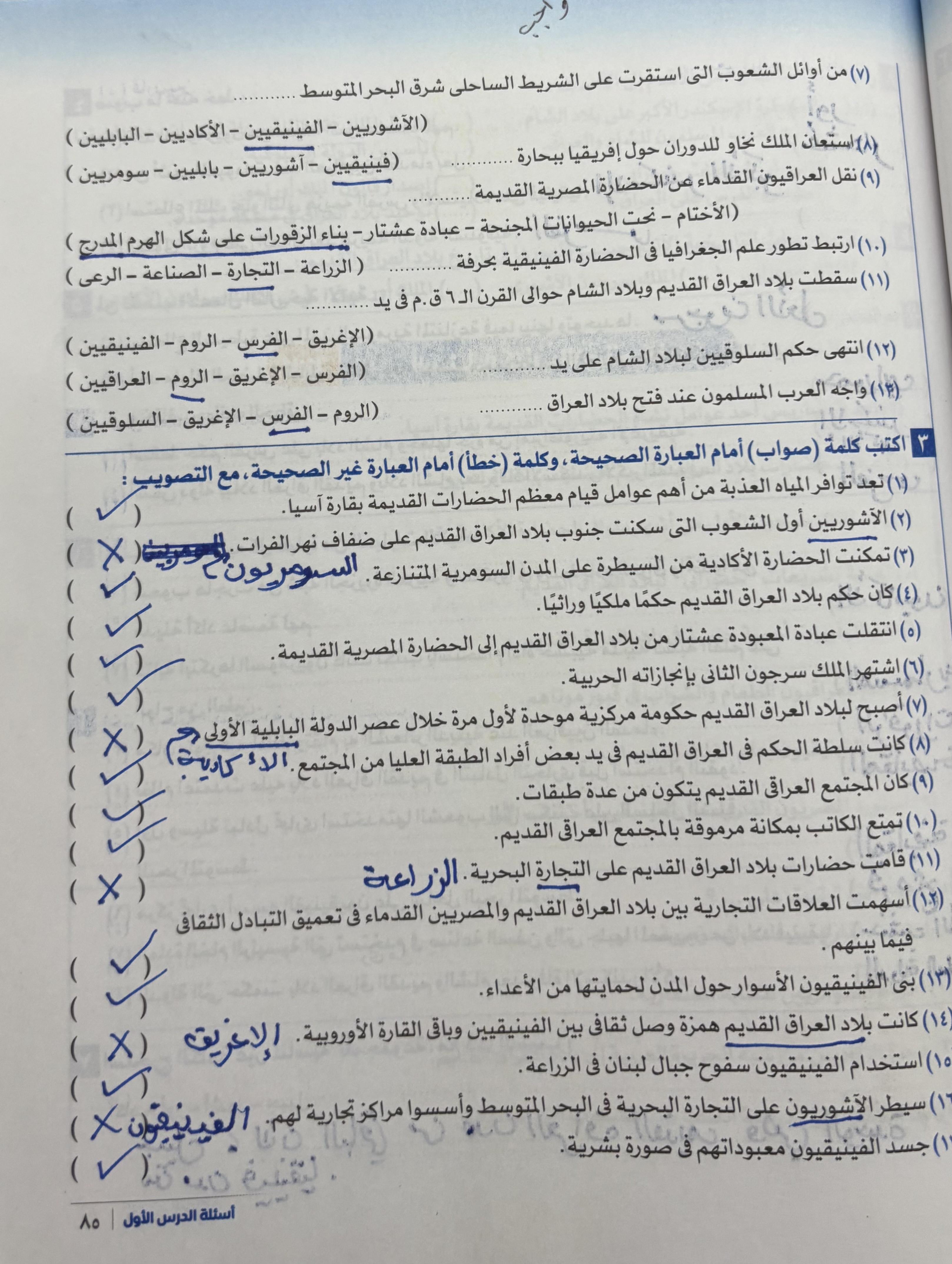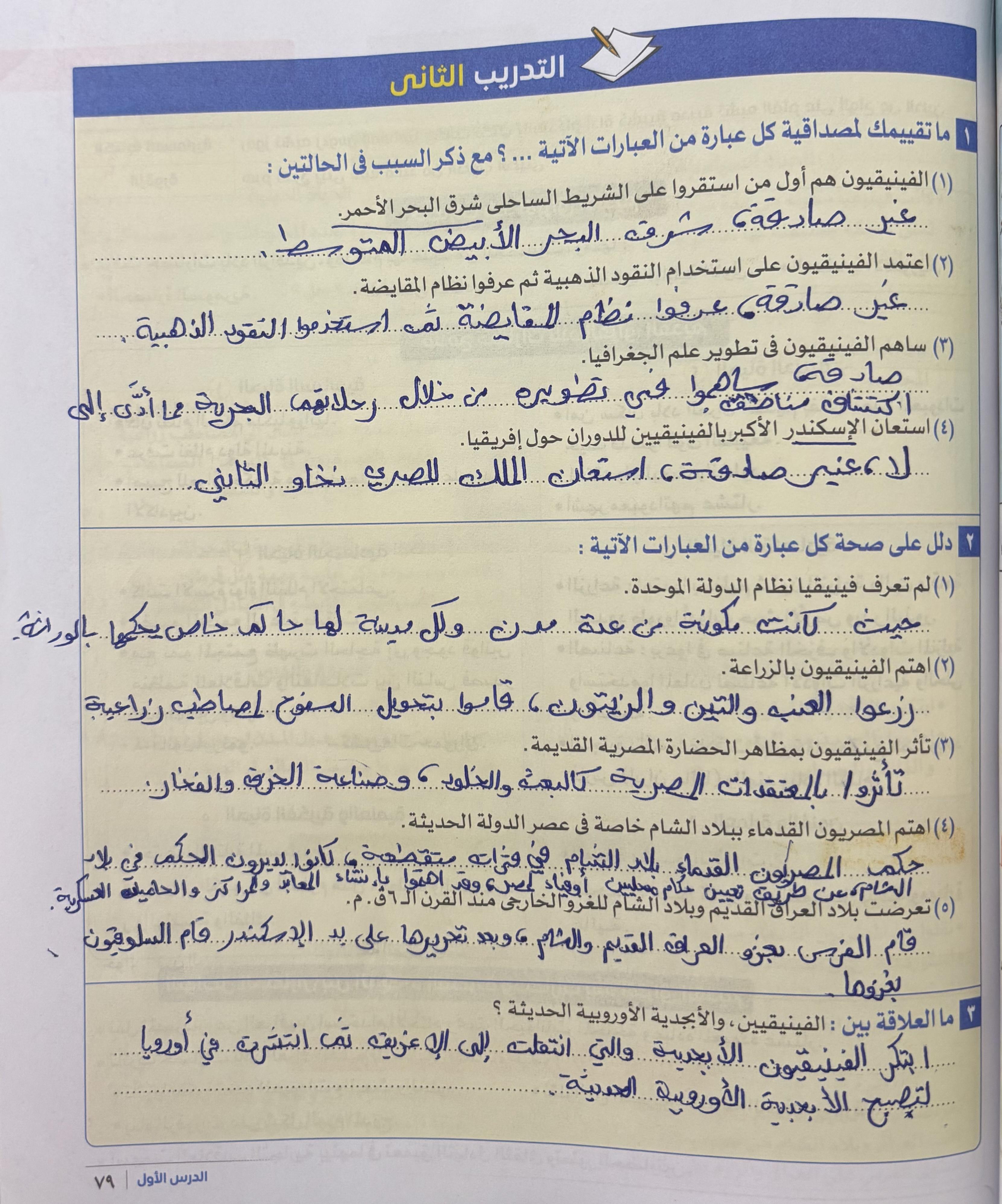 خلصنا الحمد لله الحضاره العراقيه وفينيقا والواجب تدريب 1 و2 اليوم