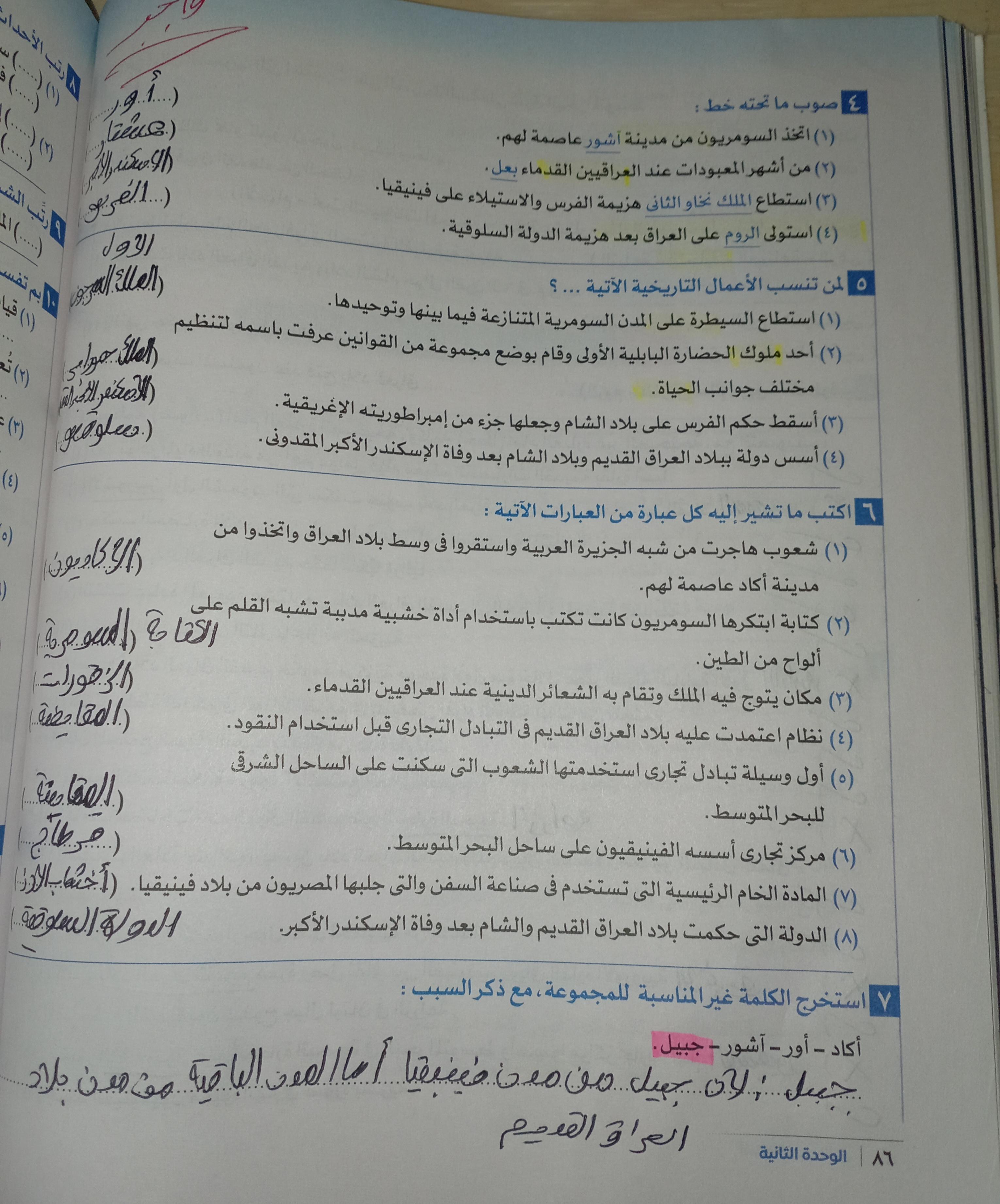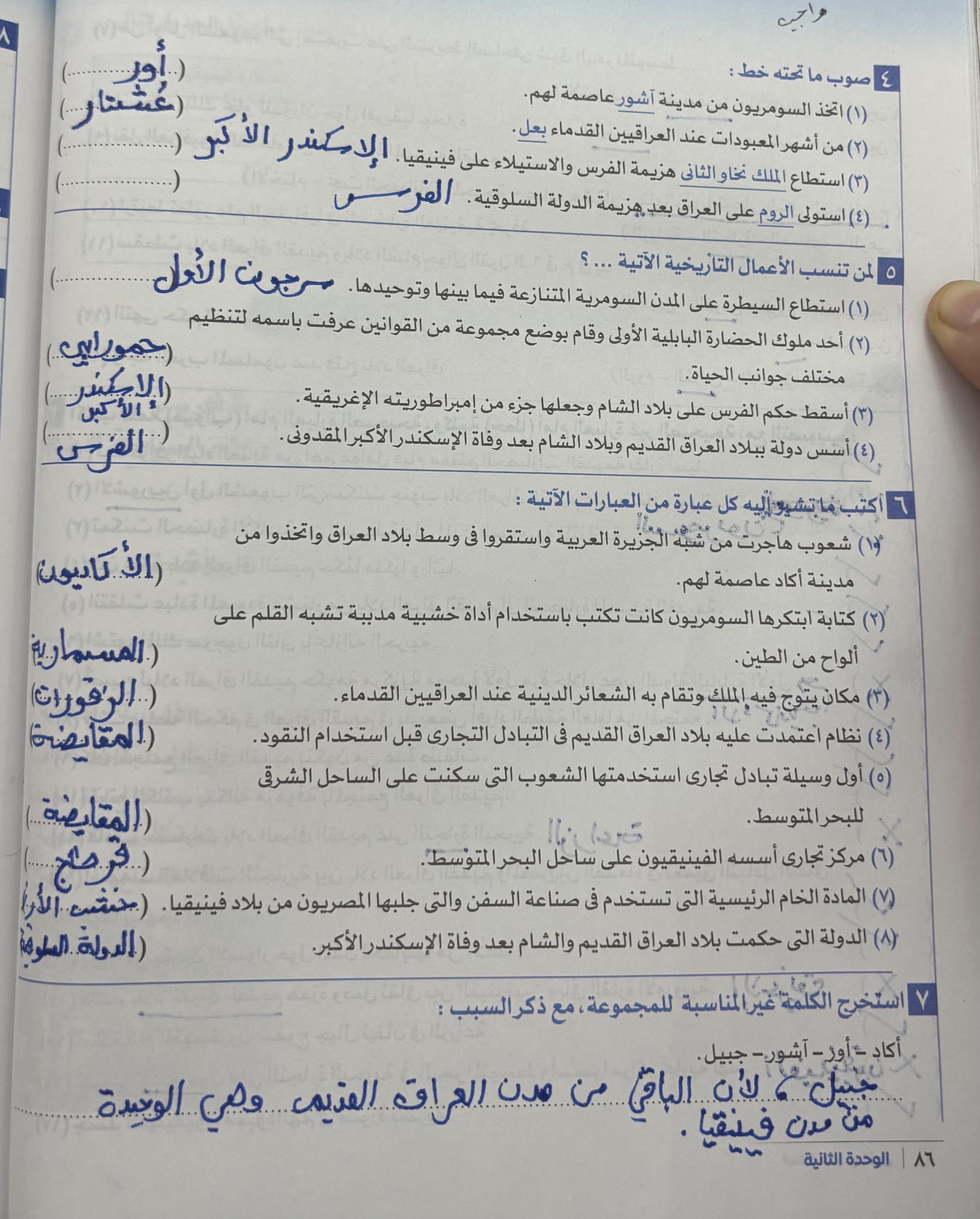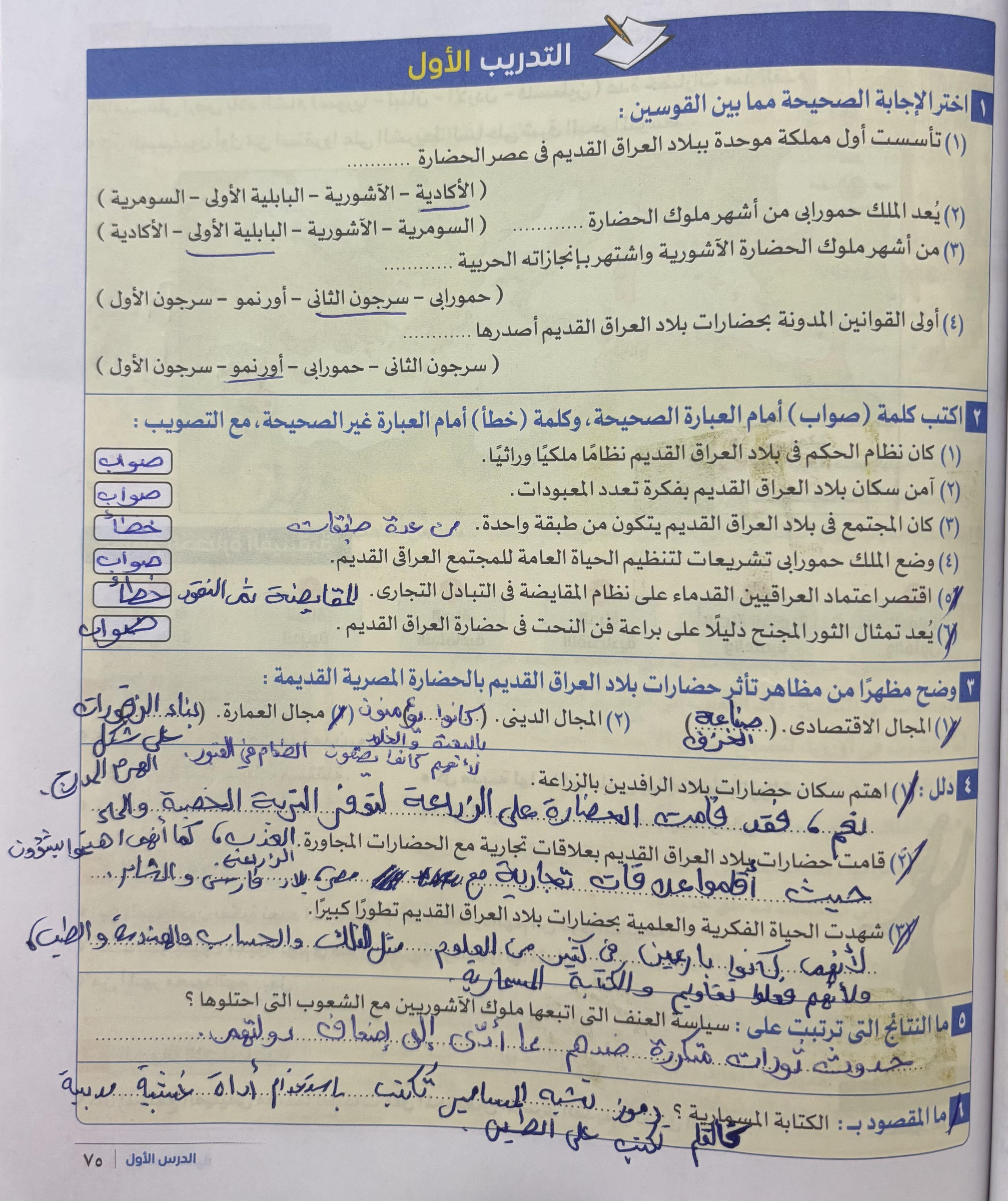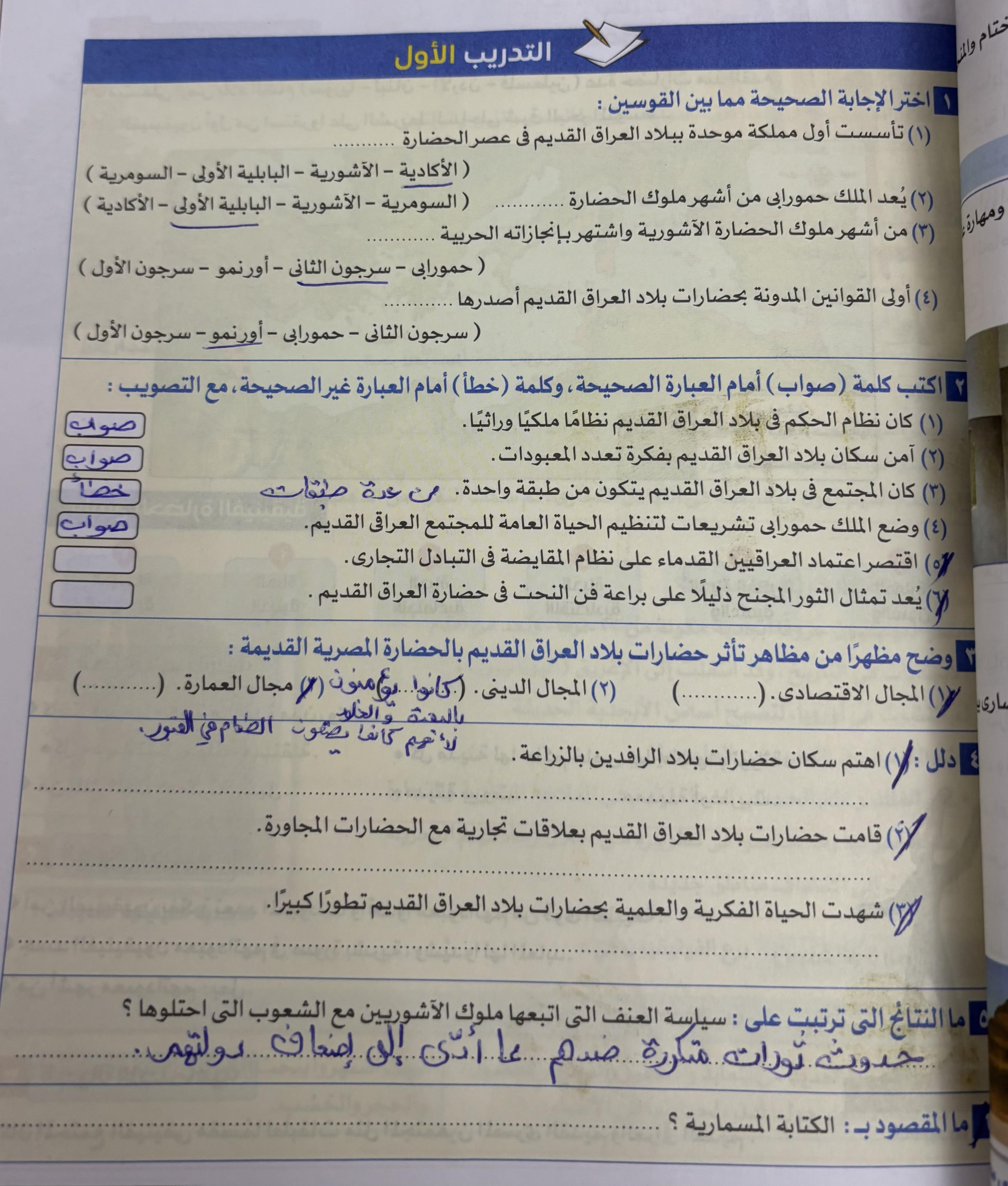 خلصنا الحمد لله الحضاره العراقيه وفينيقا والواجب تدريب 1 و2 اليوم