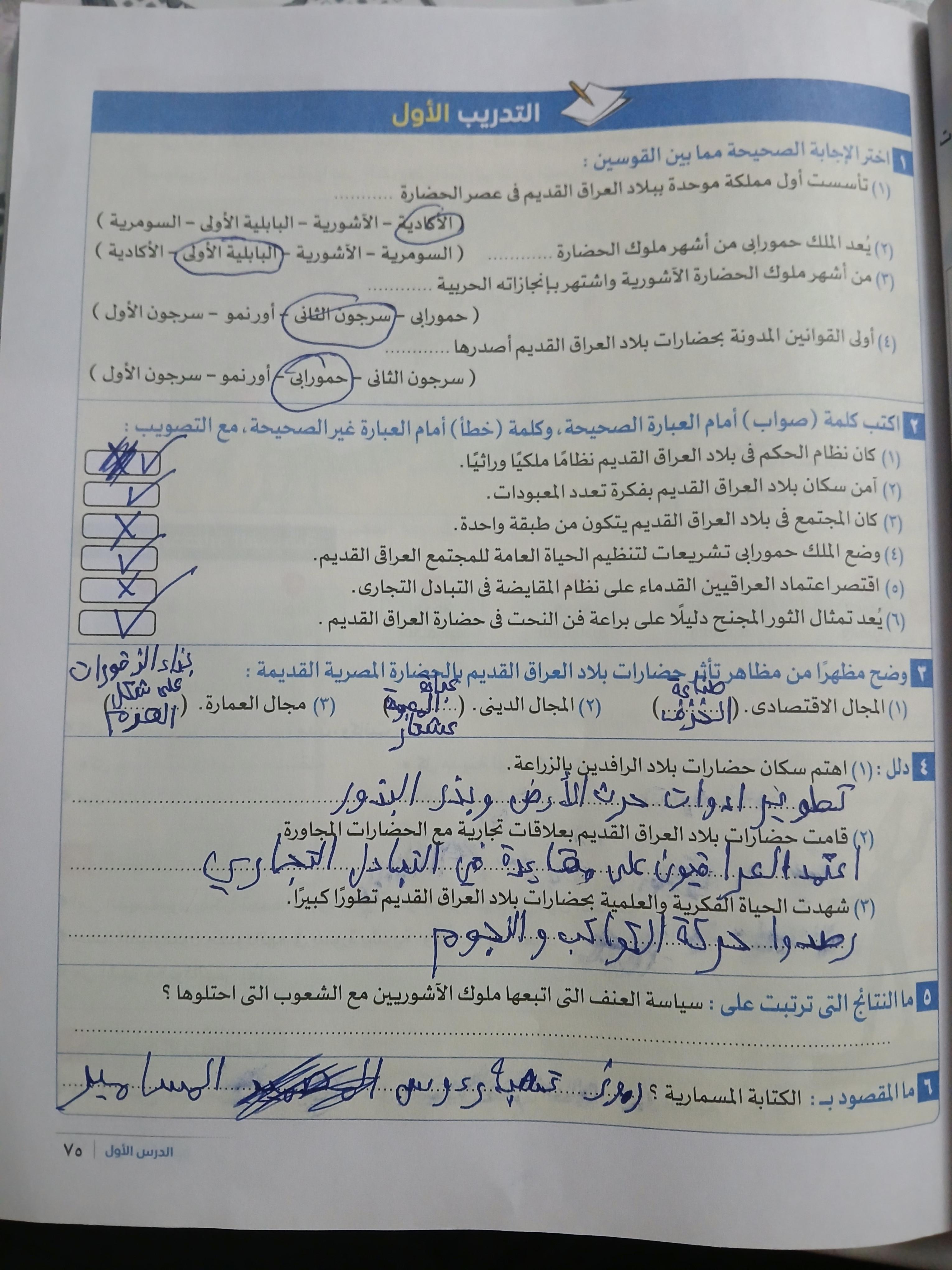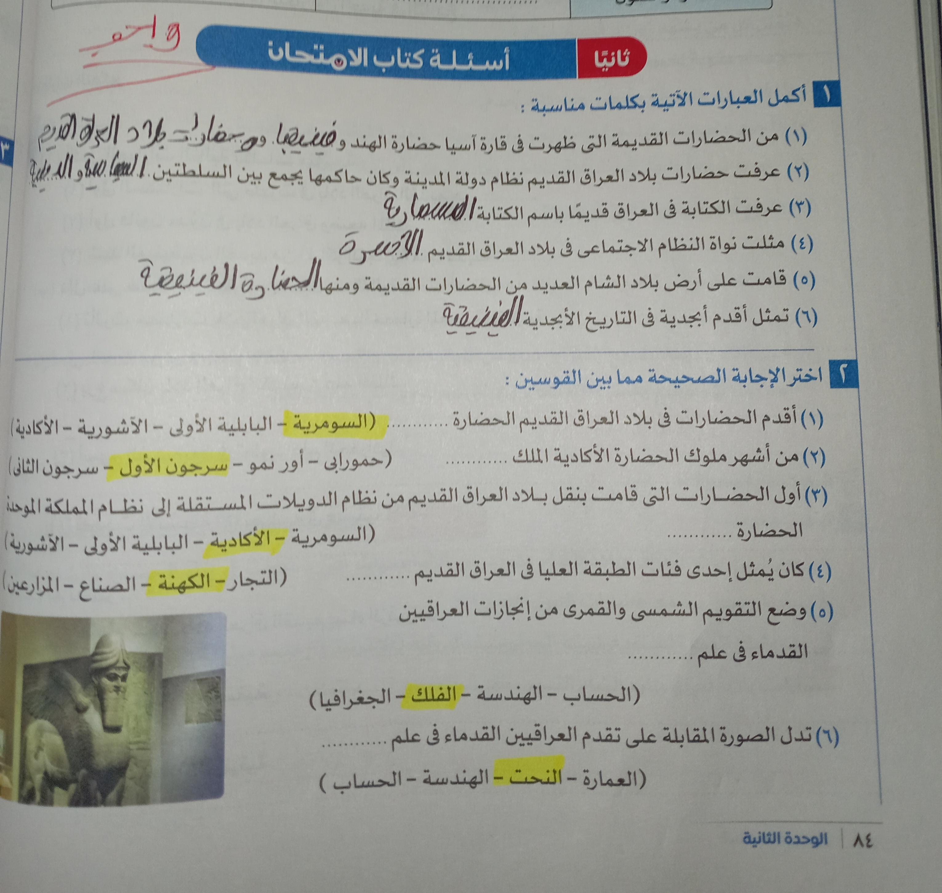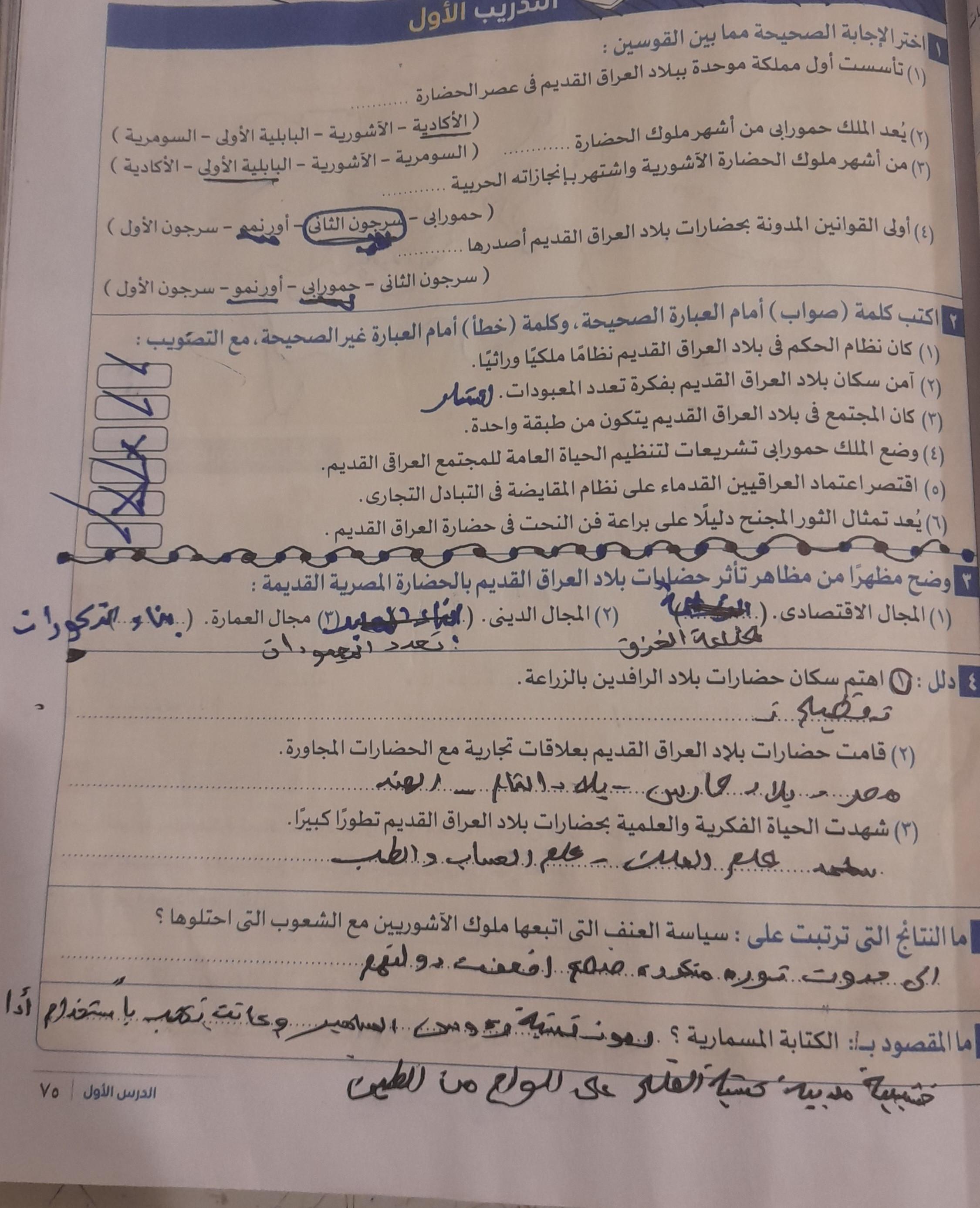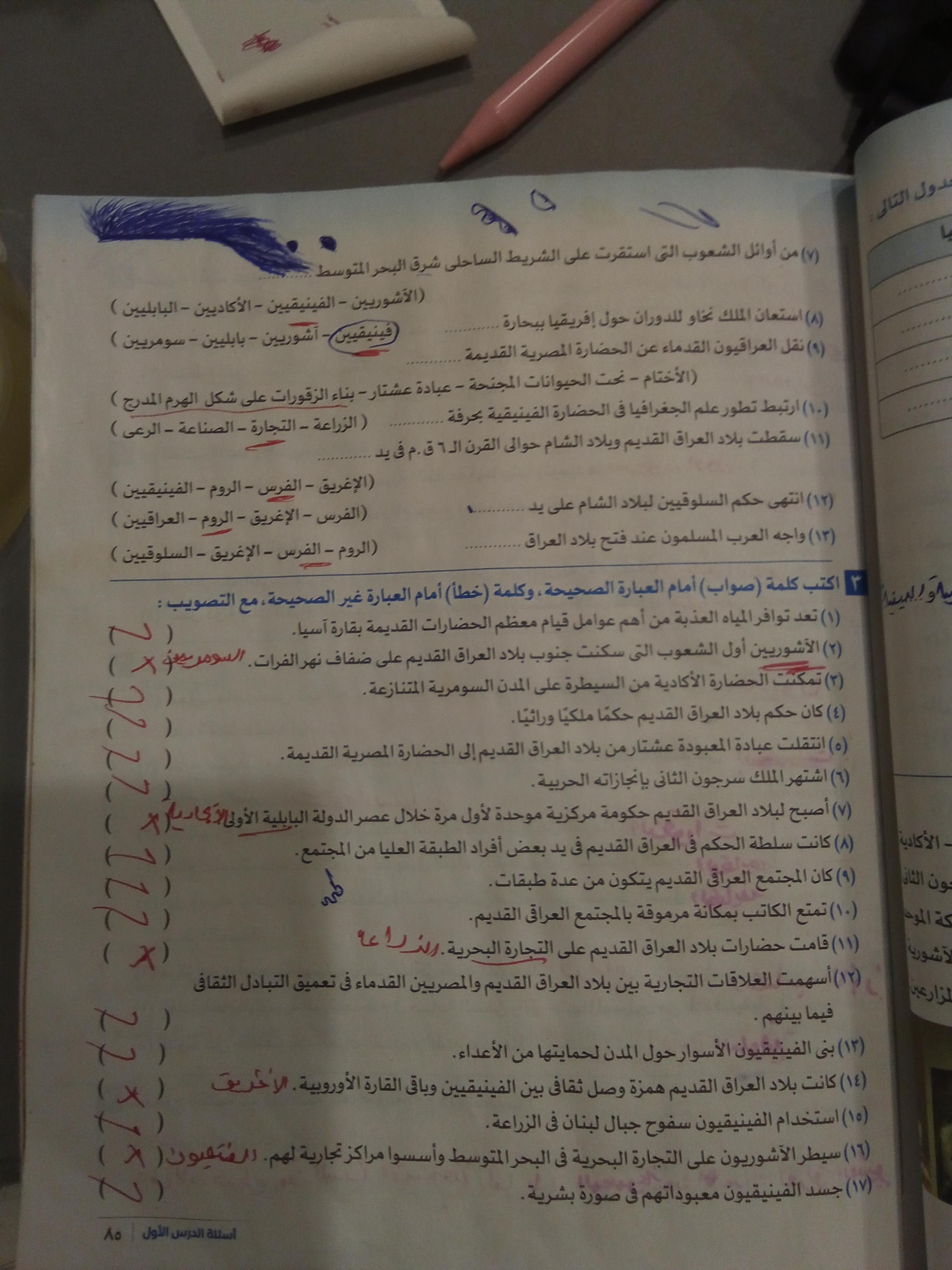 خلصنا الحمد لله الحضاره العراقيه وفينيقا والواجب تدريب 1 و2 اليوم