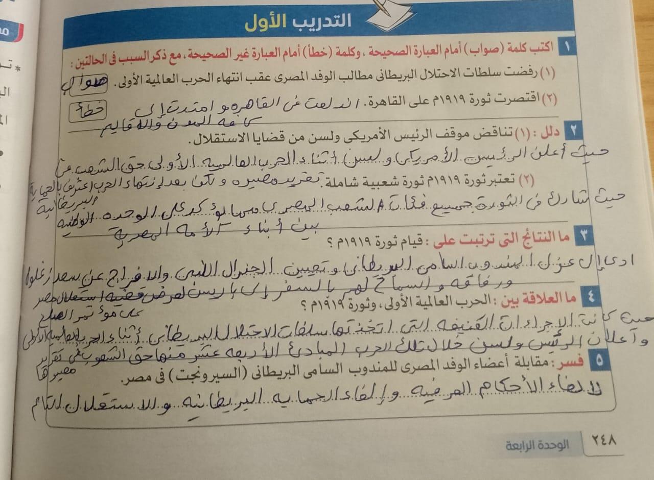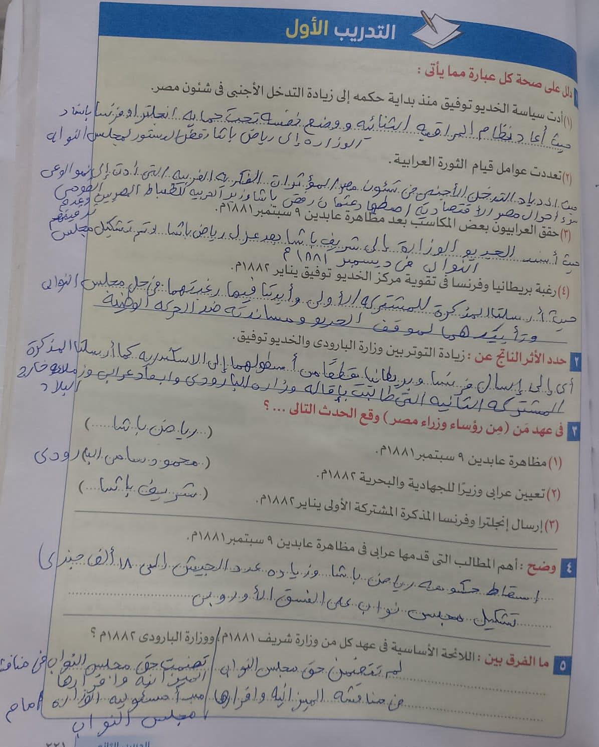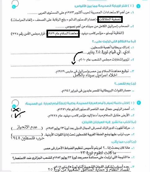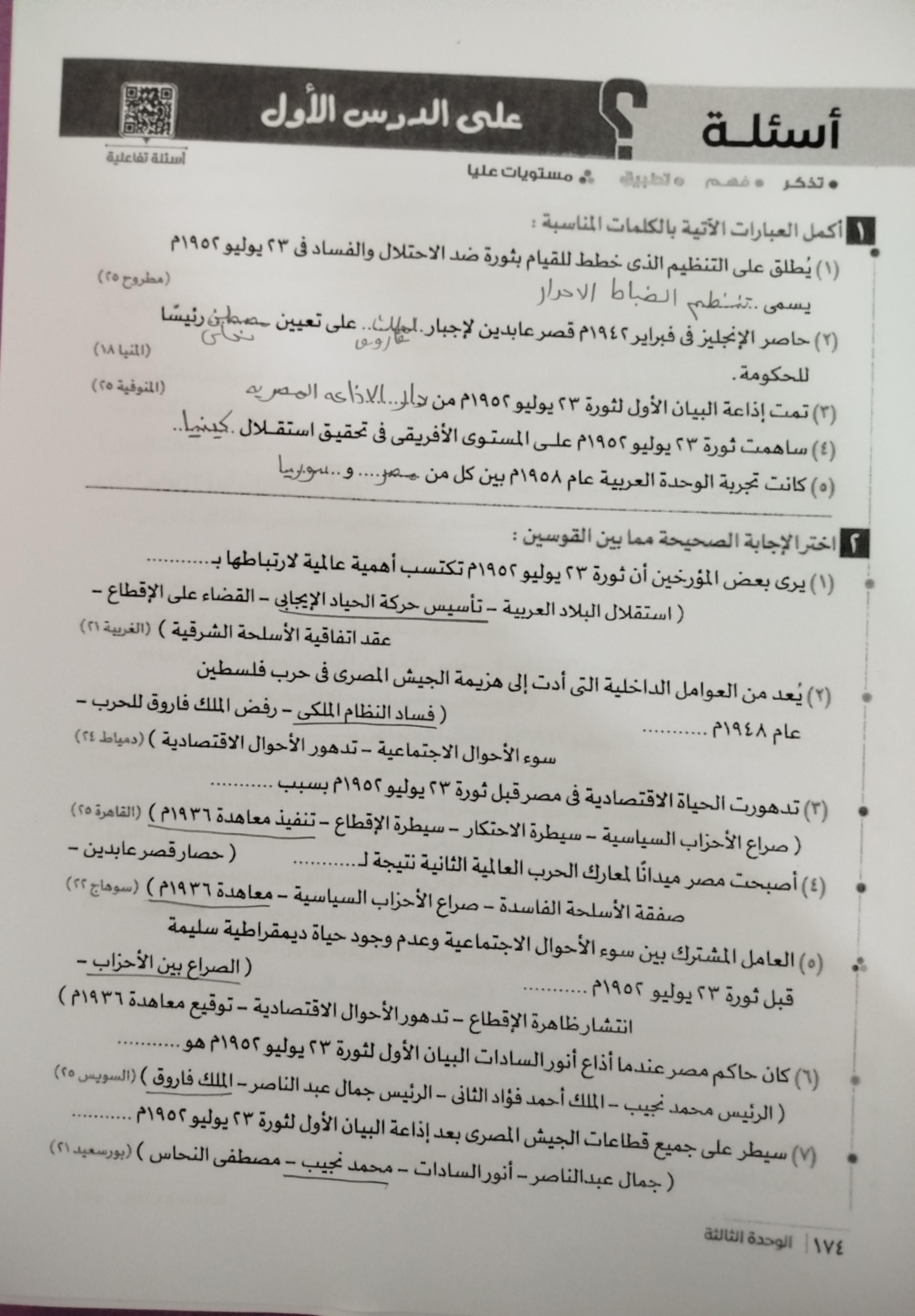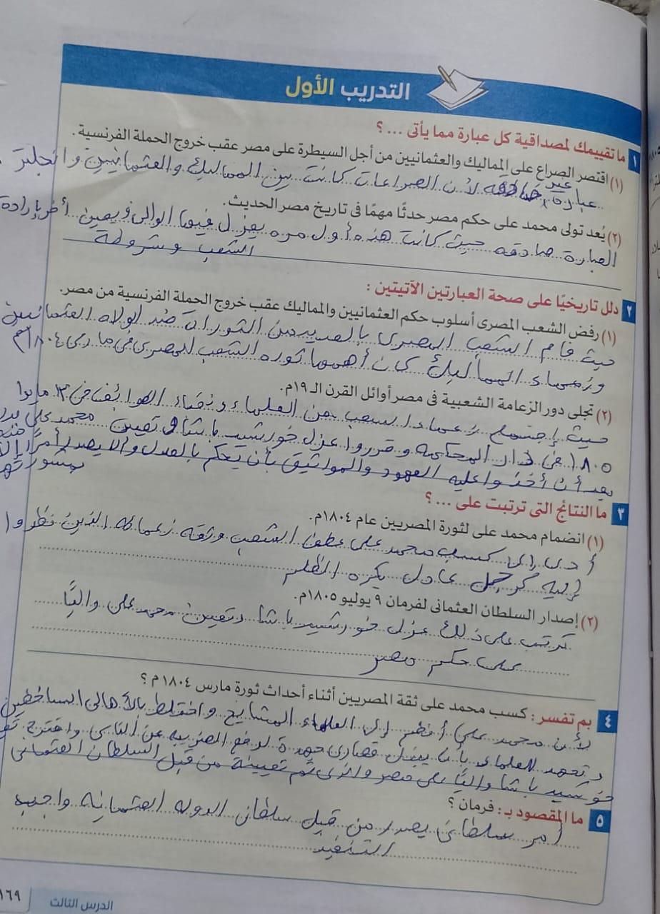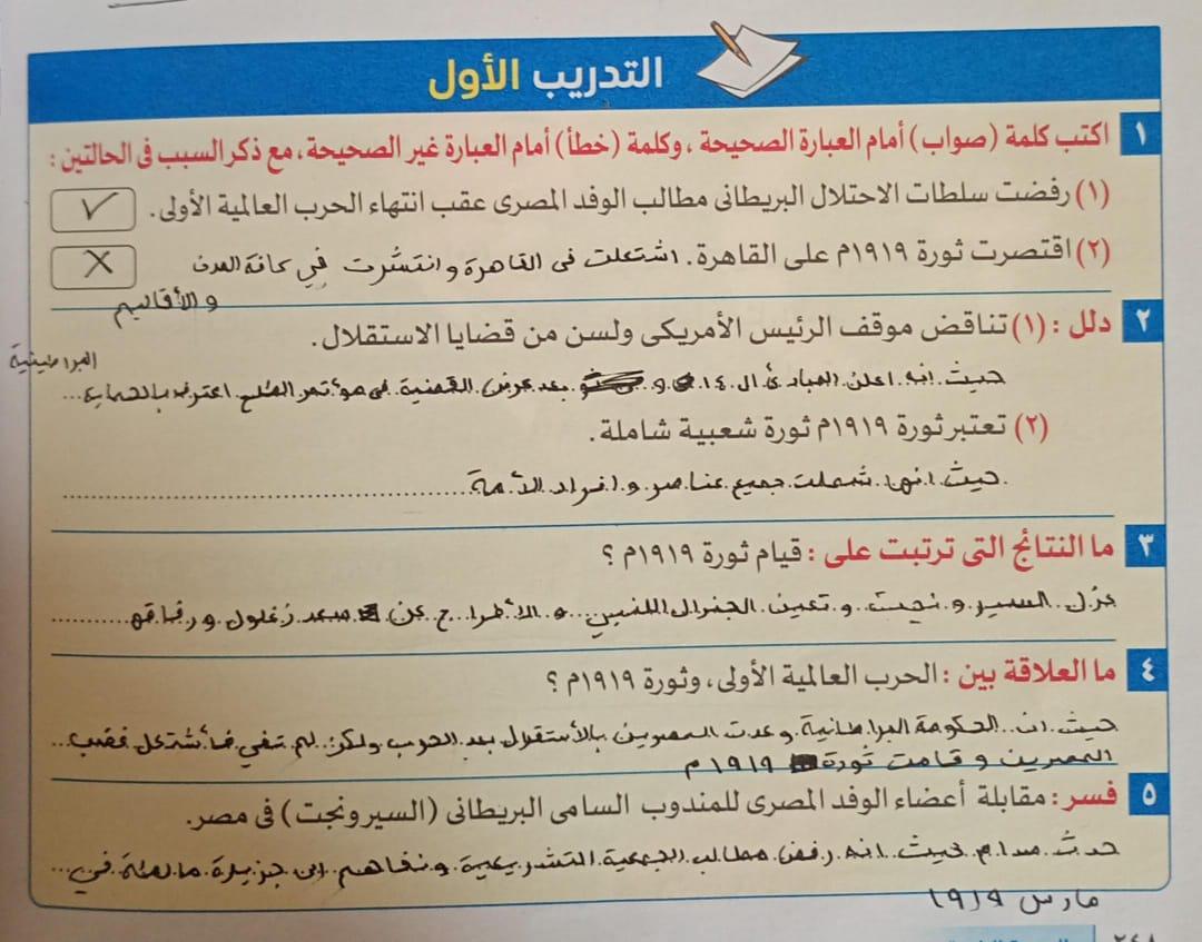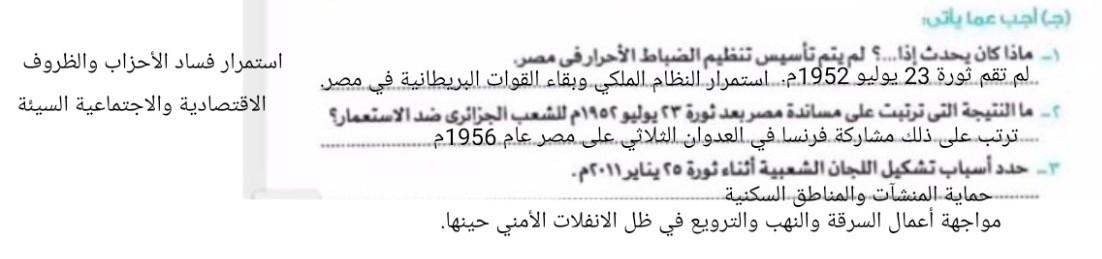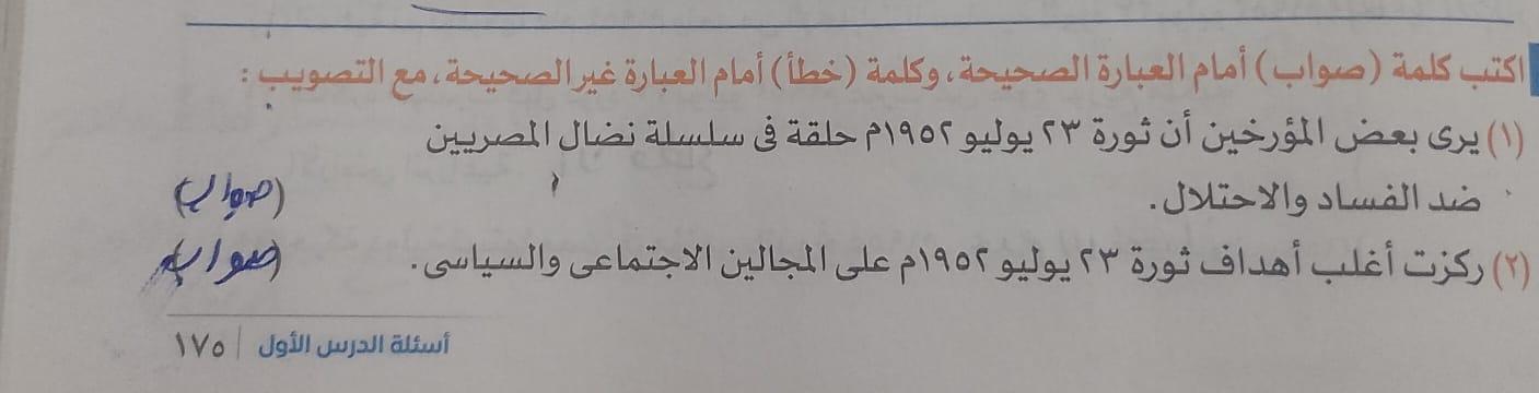 اخدنا اليوم الجزء الاول من ثوره يوليو وحلينا تدريب 1